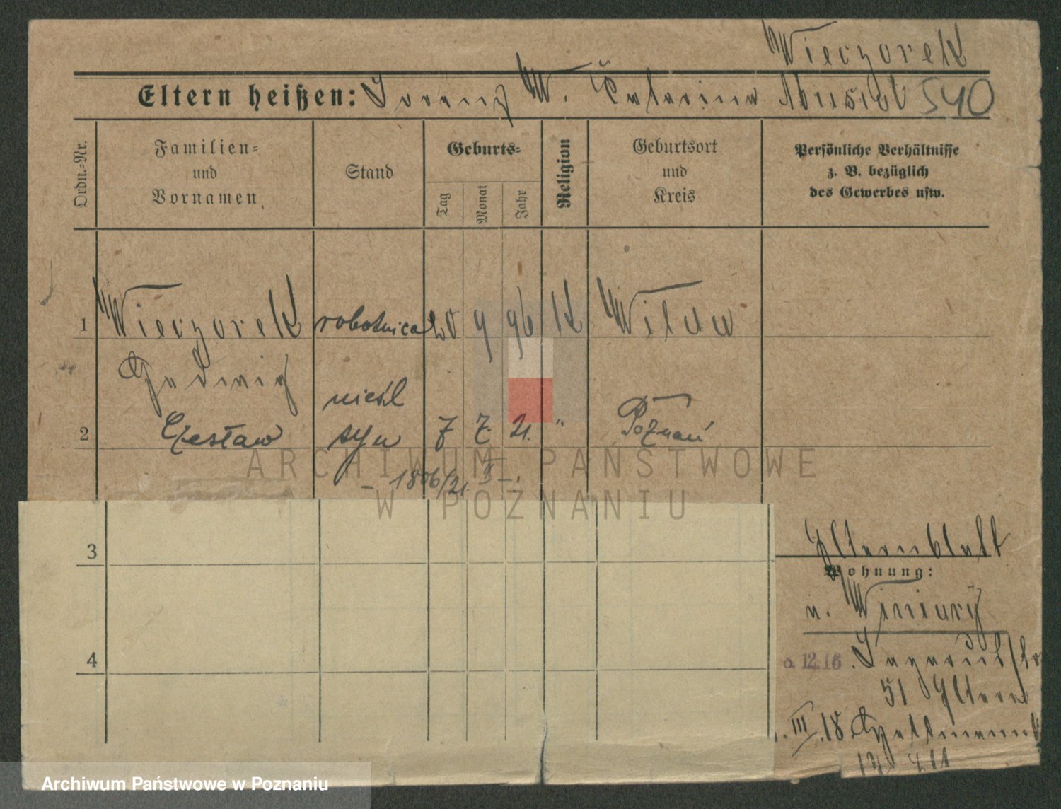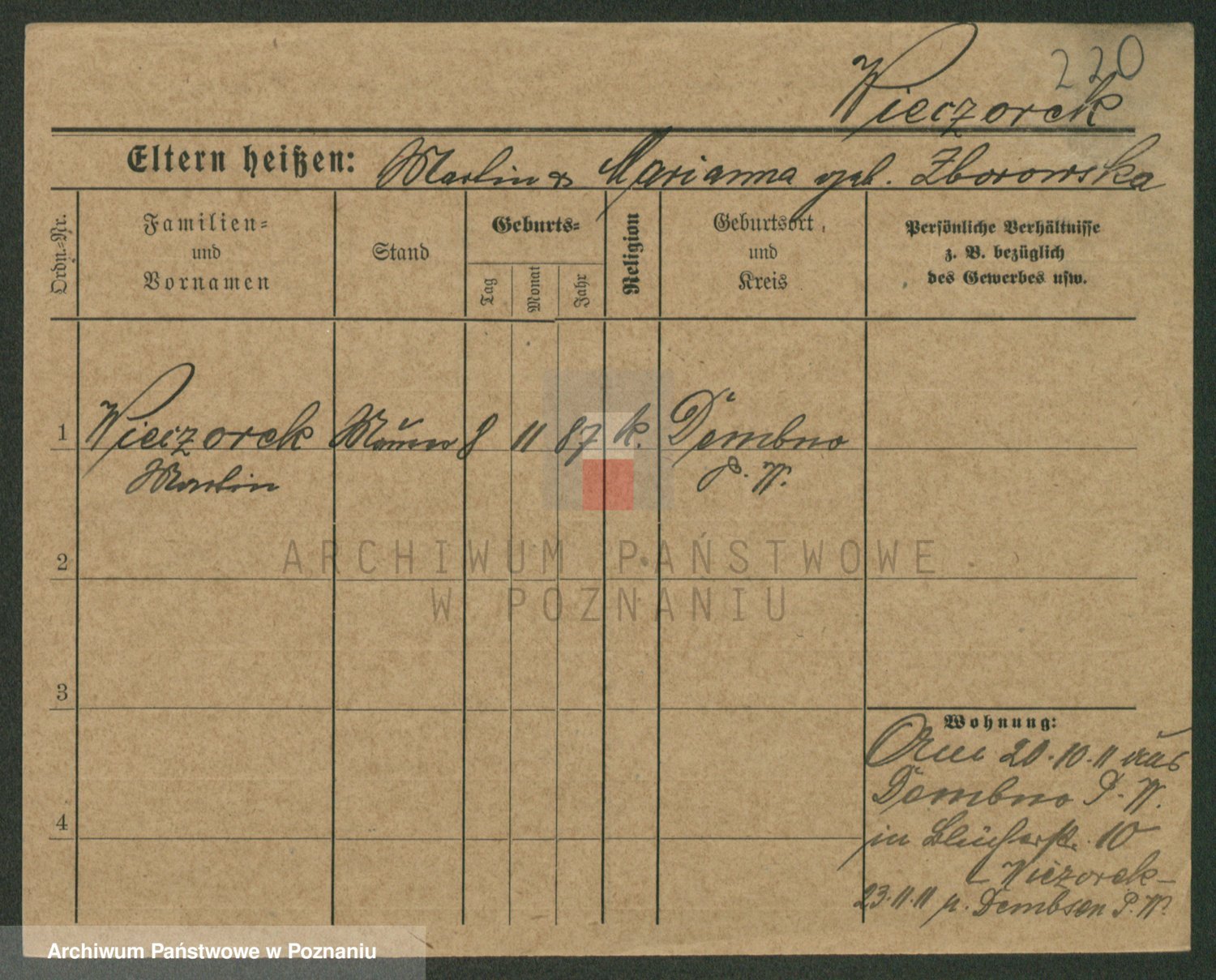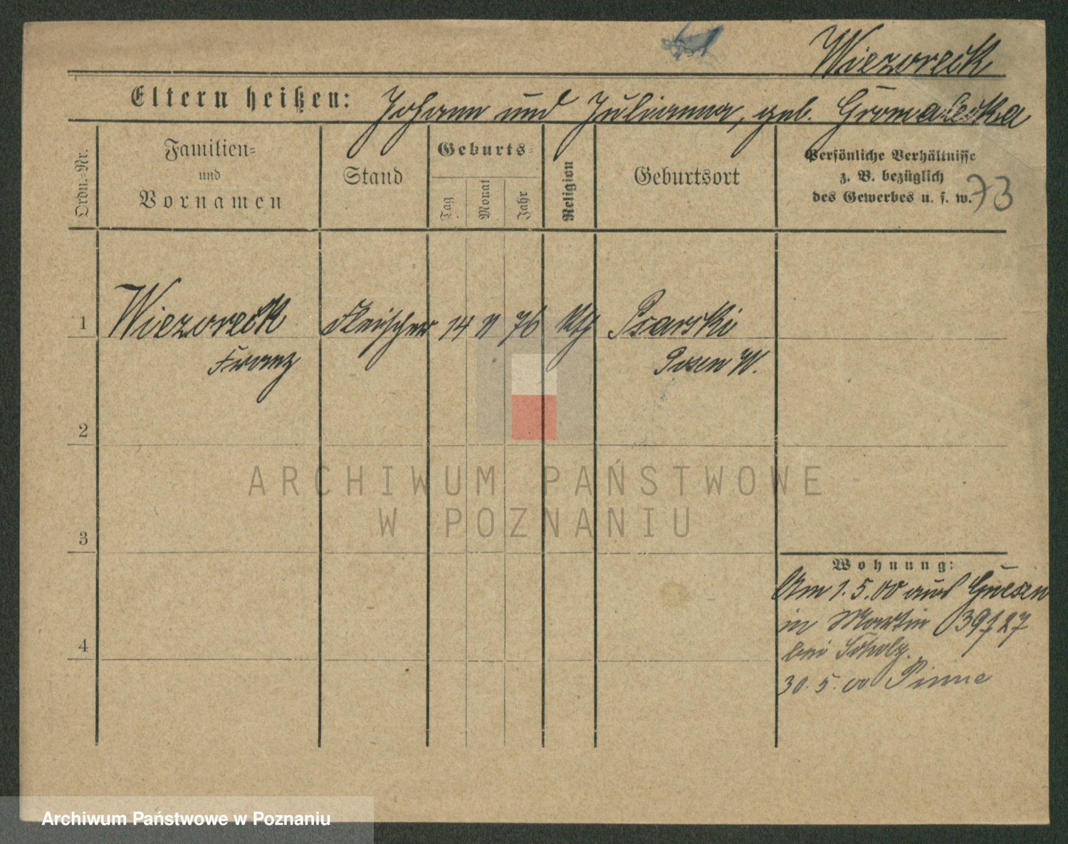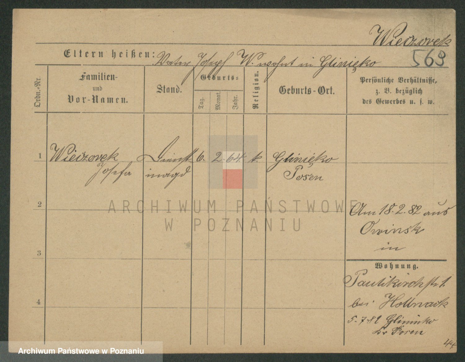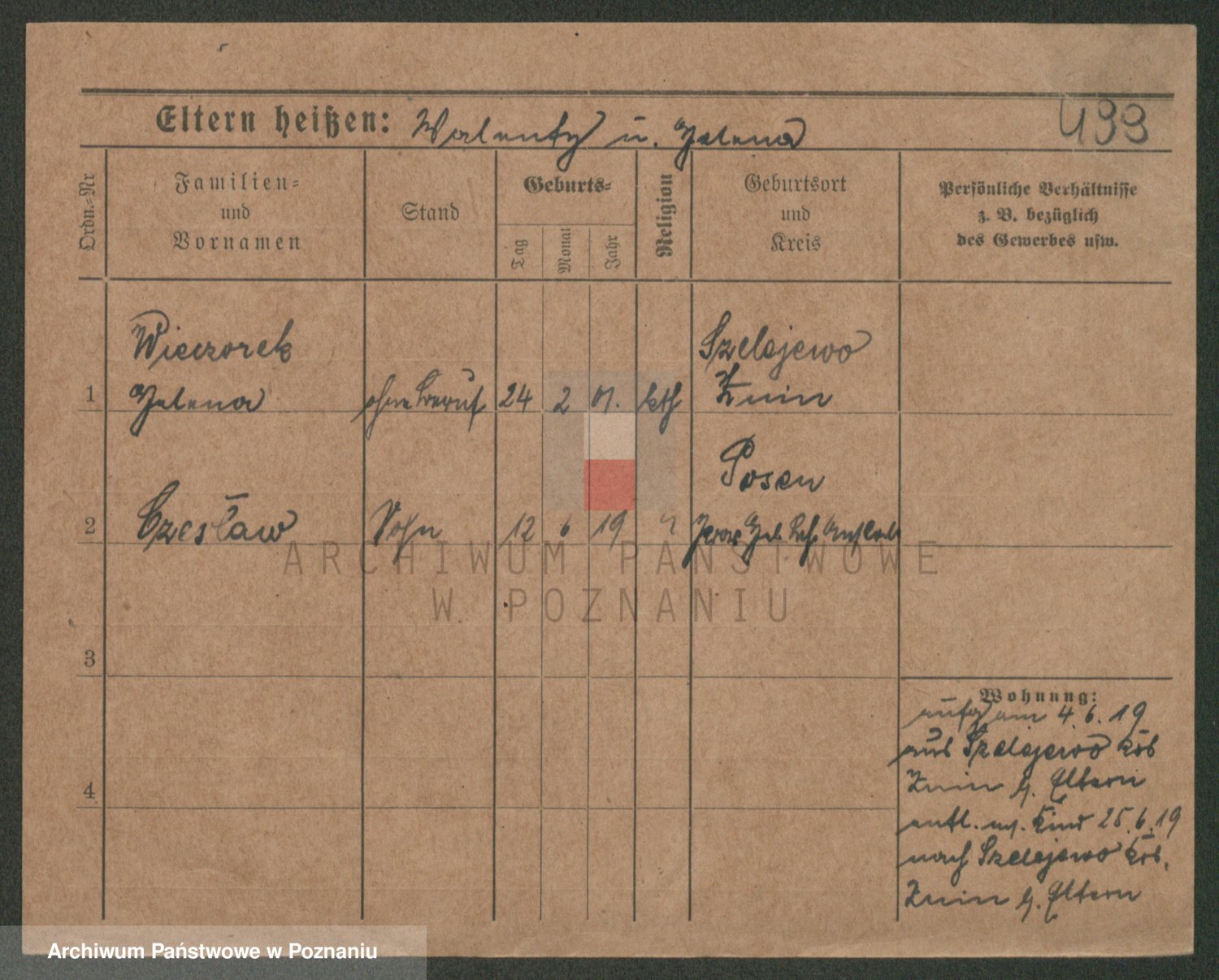 Podgląd karty osobowej dostępny jest po kliknięciu na nazwisko lub ikonkę karty. Można dokonywać powiększenia (ikony na górze) lub przechodzić między kolejnymi skanami (strzałki po bokach).