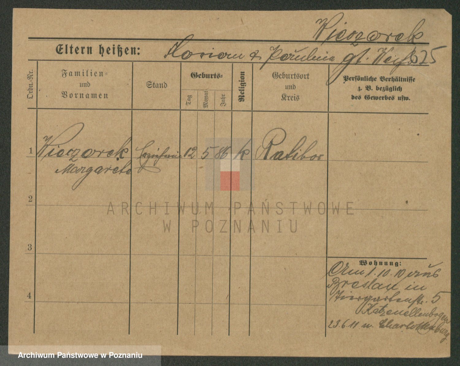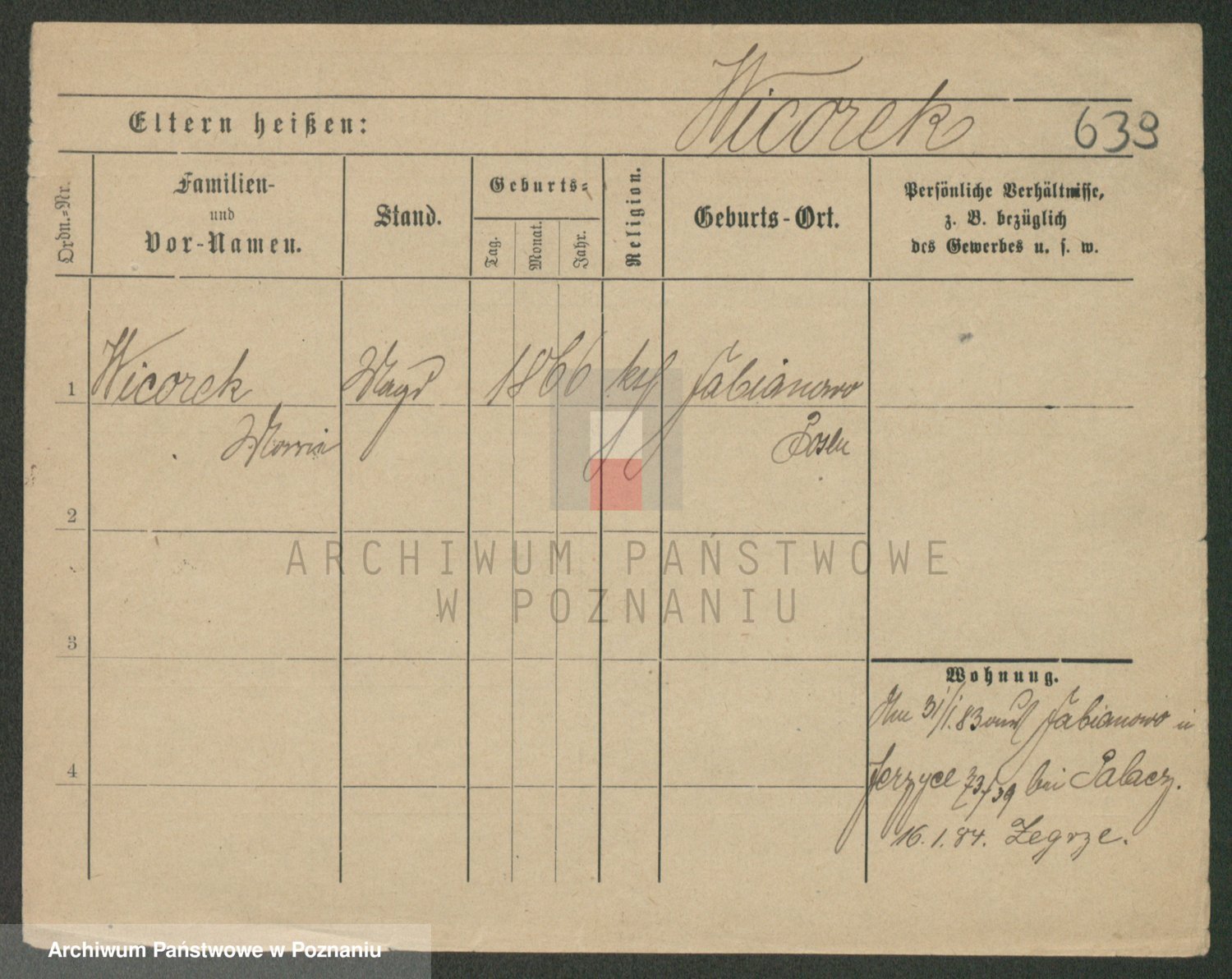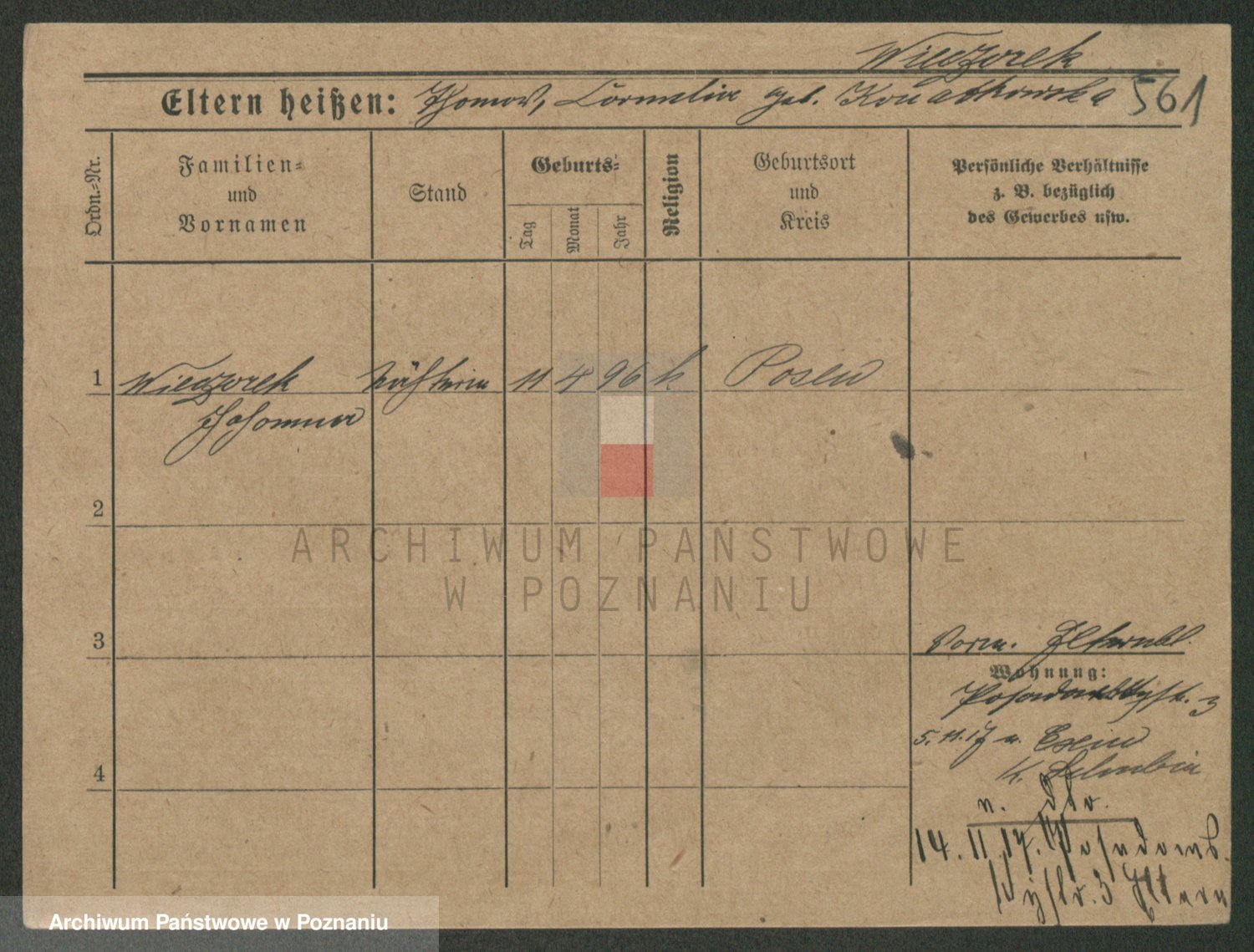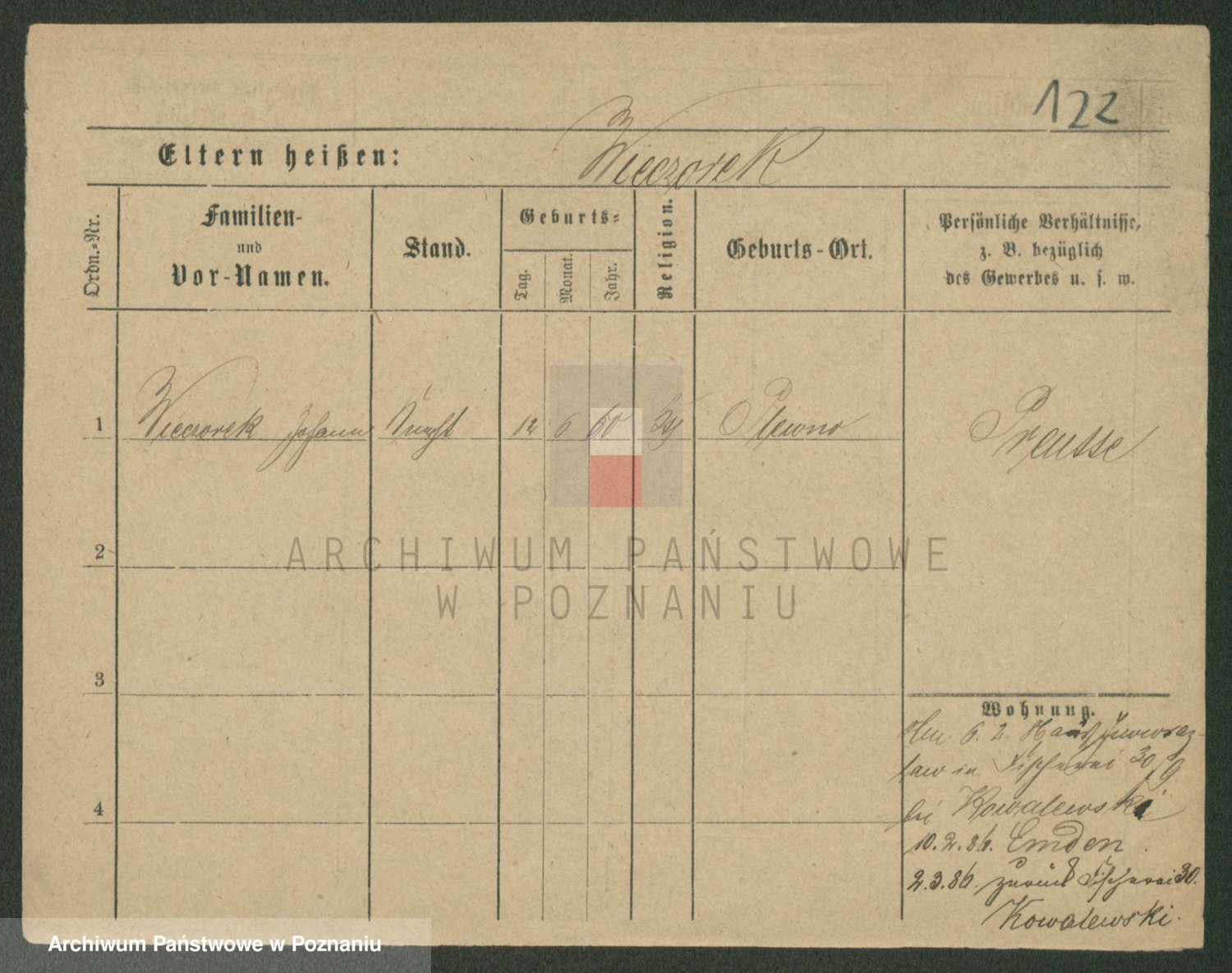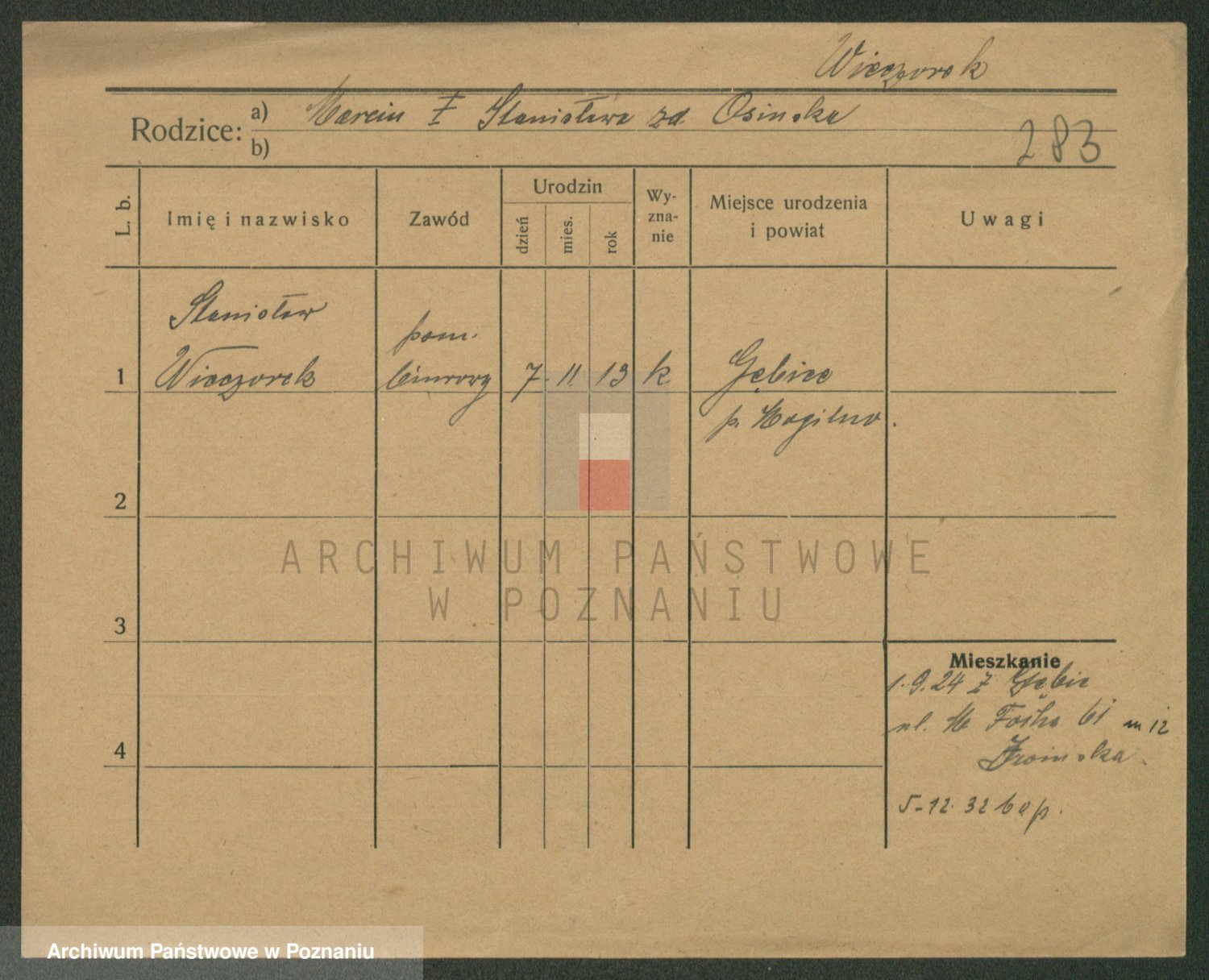 Podgląd karty osobowej dostępny jest po kliknięciu na nazwisko lub ikonkę karty. Można dokonywać powiększenia (ikony na górze) lub przechodzić między kolejnymi skanami (strzałki po bokach).