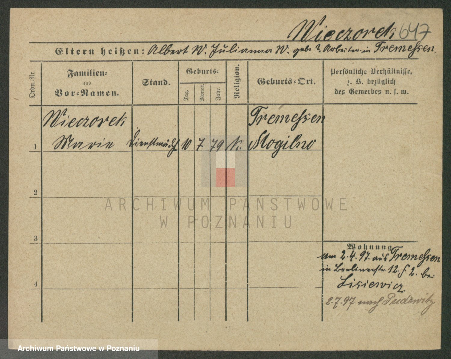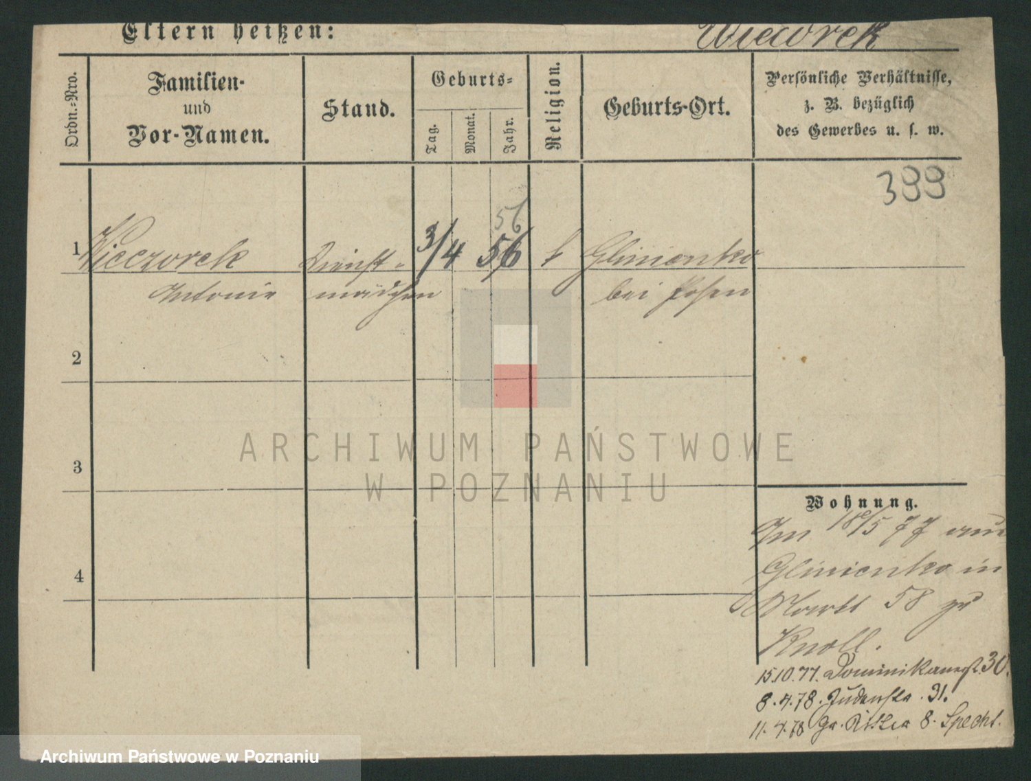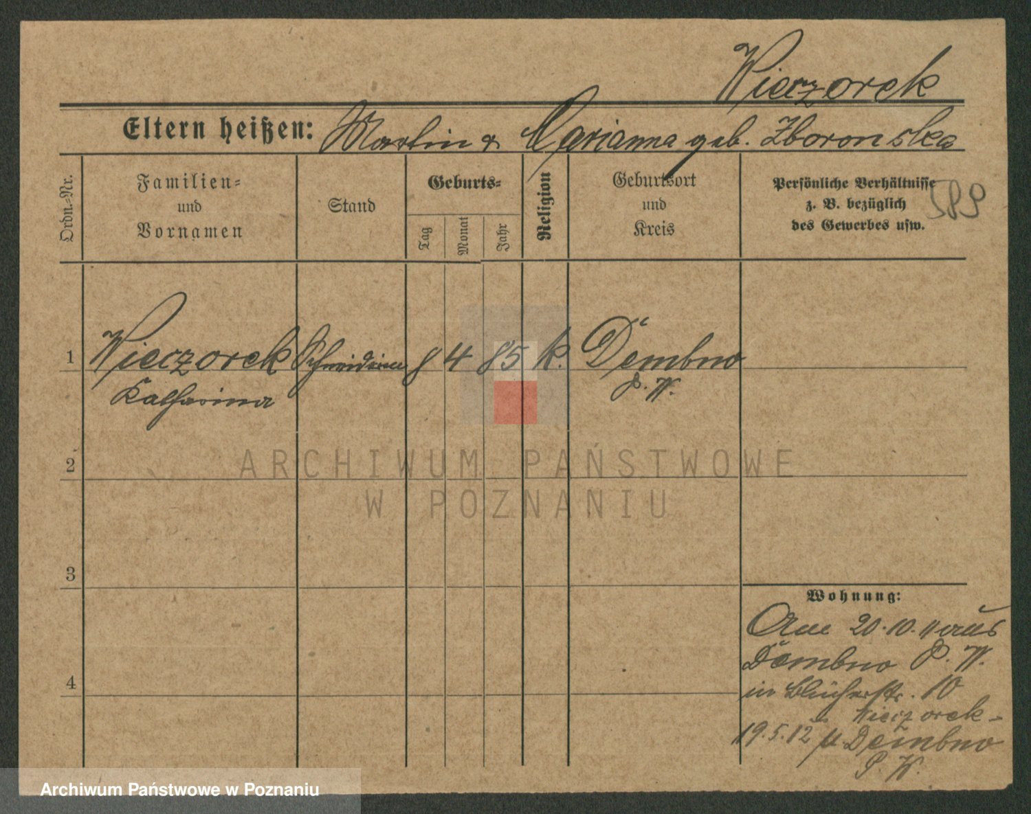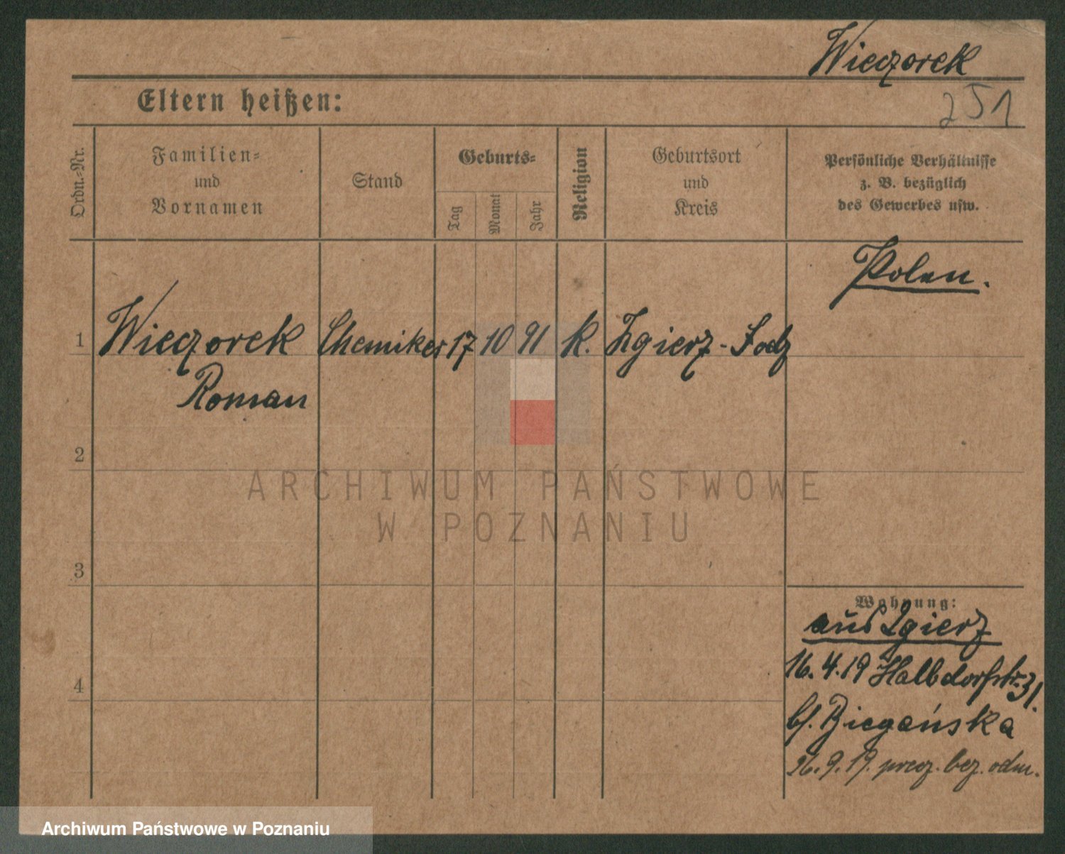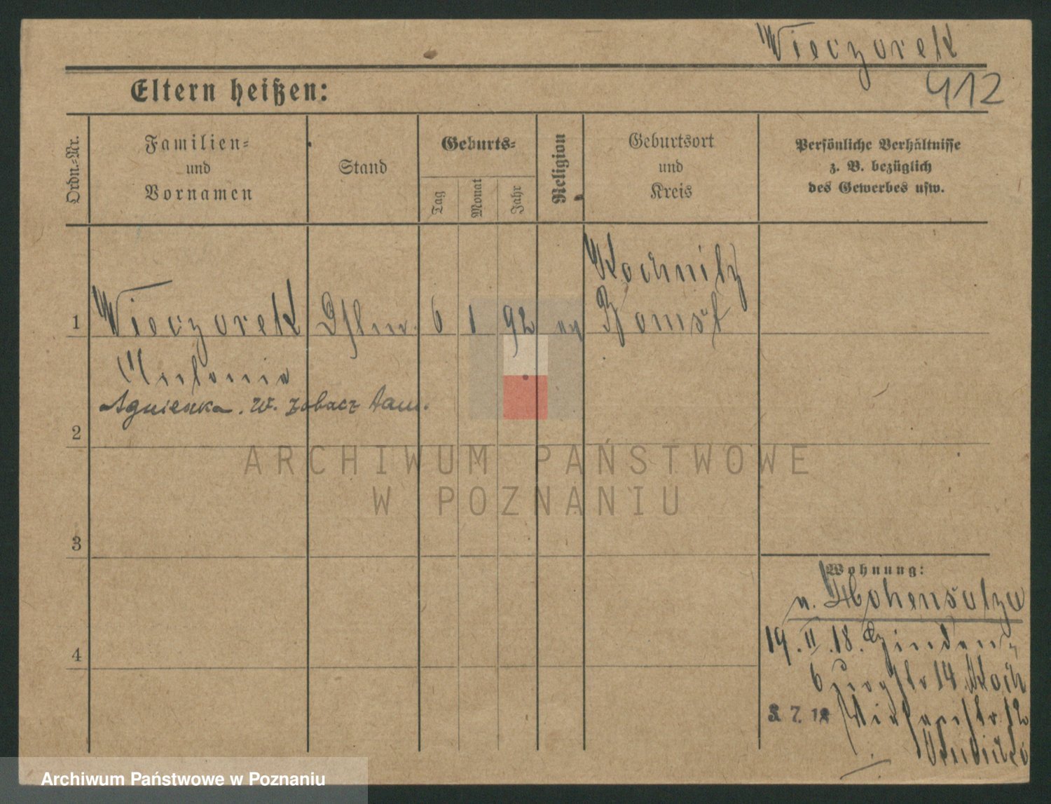 Podgląd karty osobowej dostępny jest po kliknięciu na nazwisko lub ikonkę karty. Można dokonywać powiększenia (ikony na górze) lub przechodzić między kolejnymi skanami (strzałki po bokach).