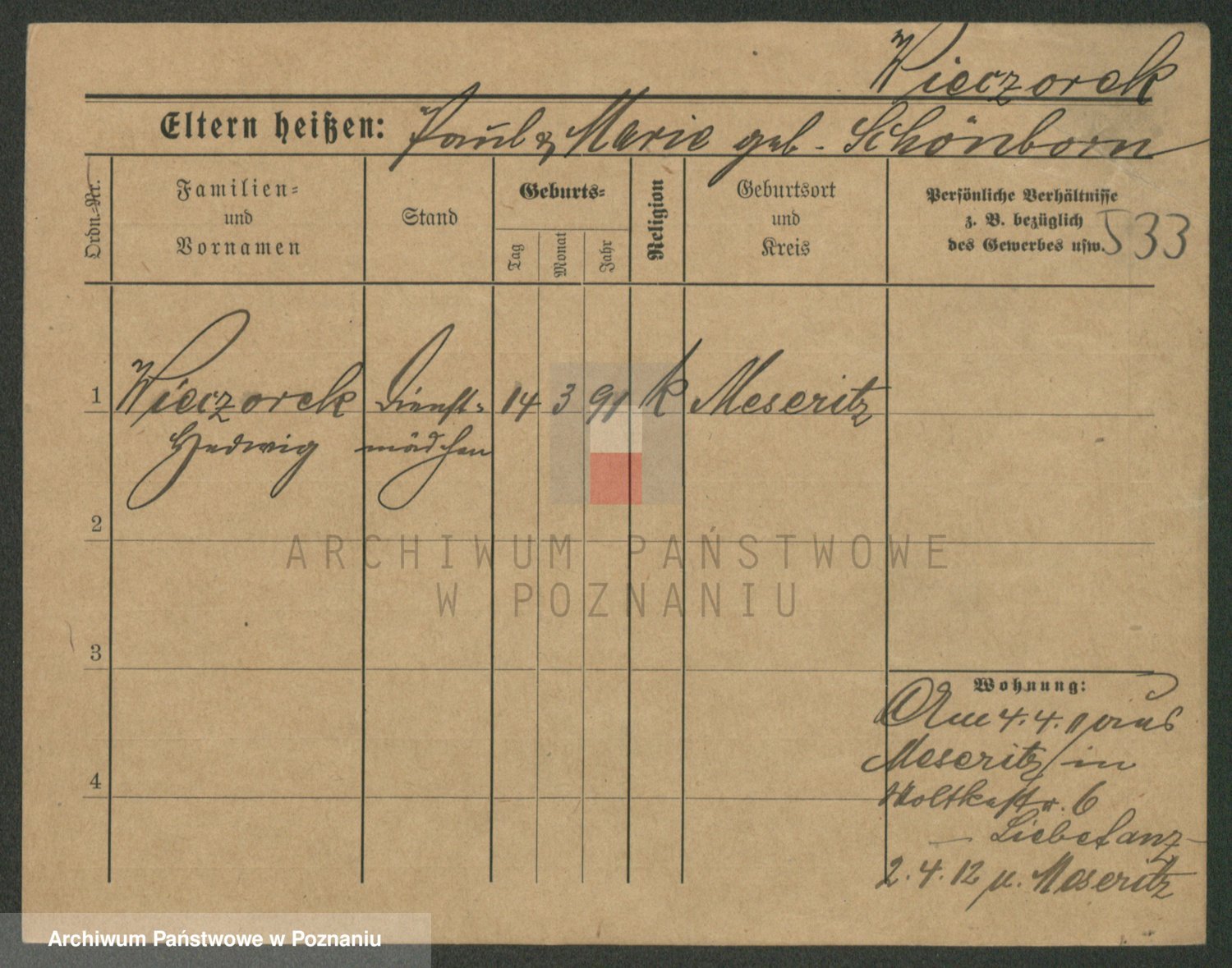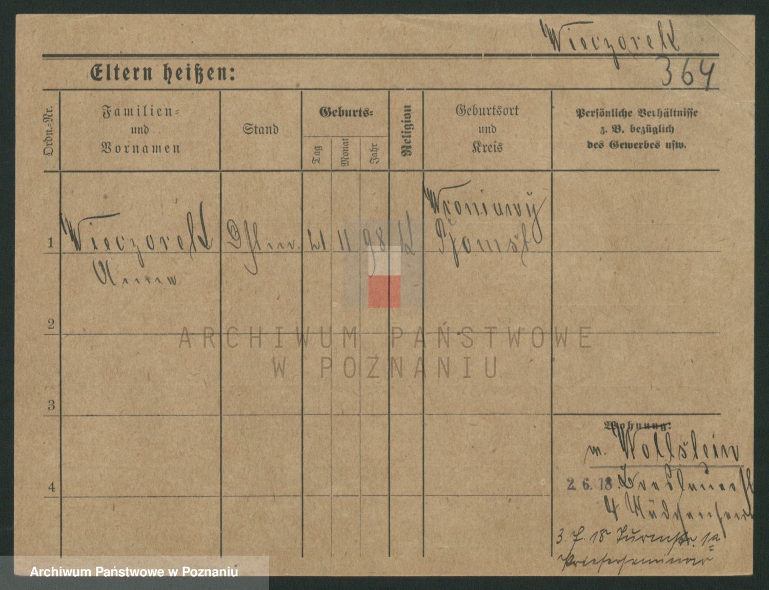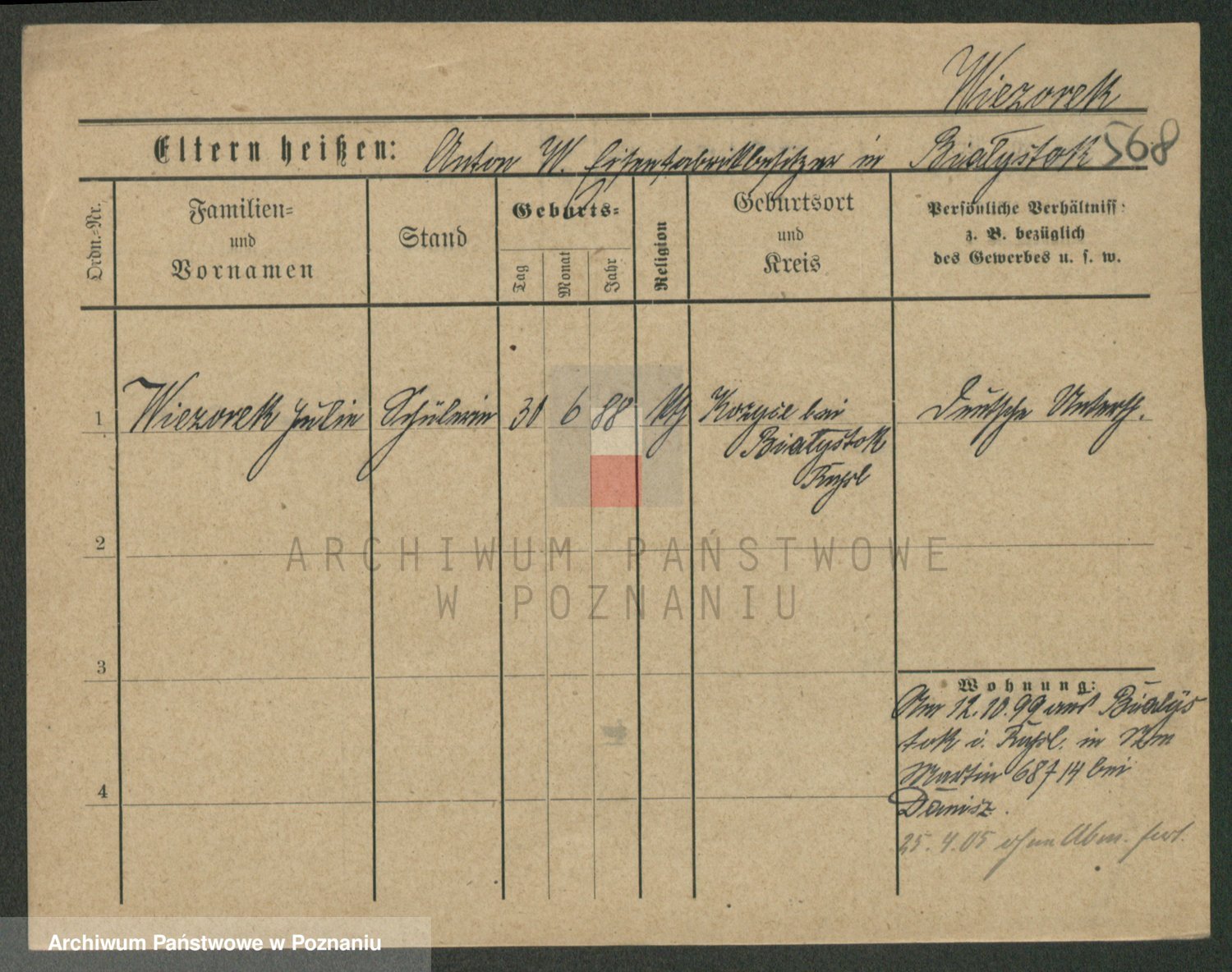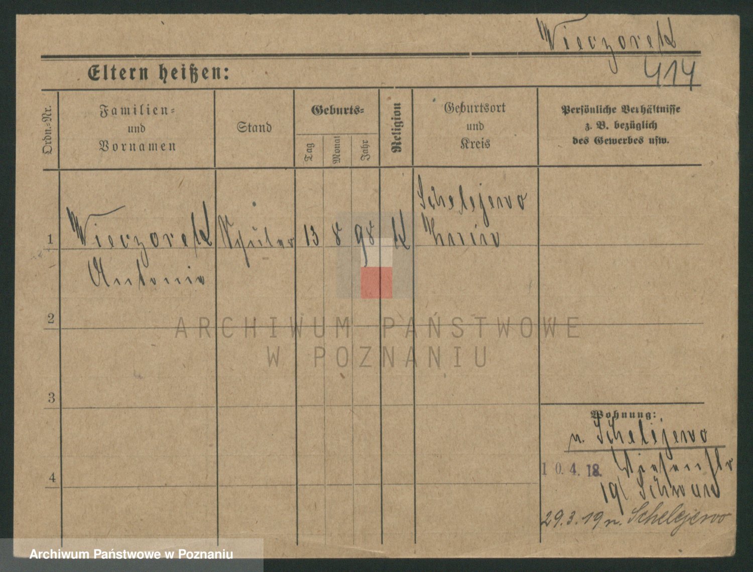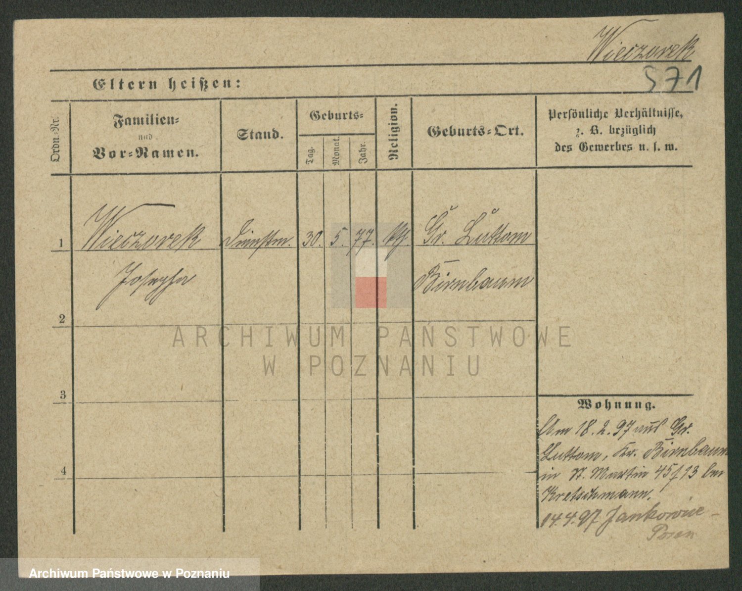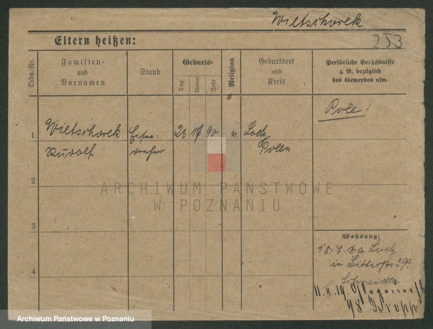 Podgląd karty osobowej dostępny jest po kliknięciu na nazwisko lub ikonkę karty. Można dokonywać powiększenia (ikony na górze) lub przechodzić między kolejnymi skanami (strzałki po bokach).