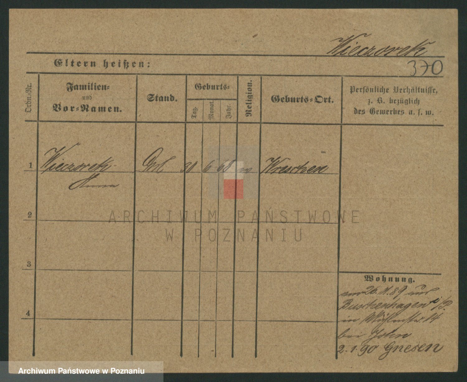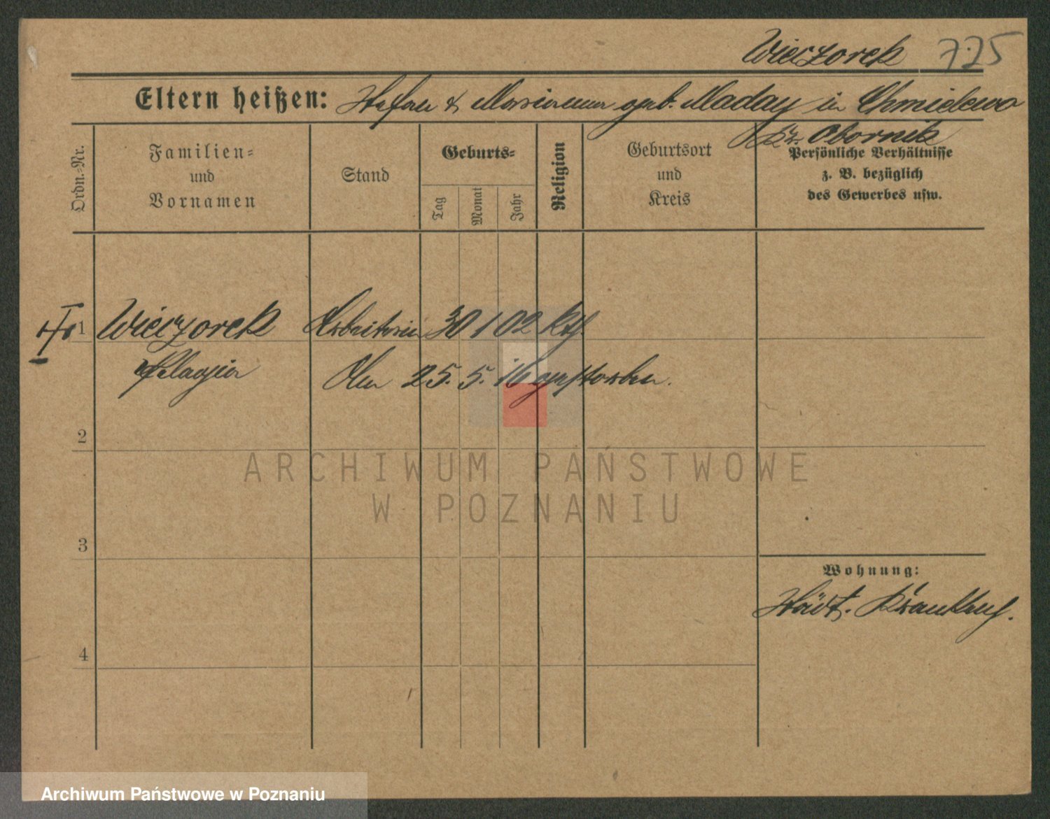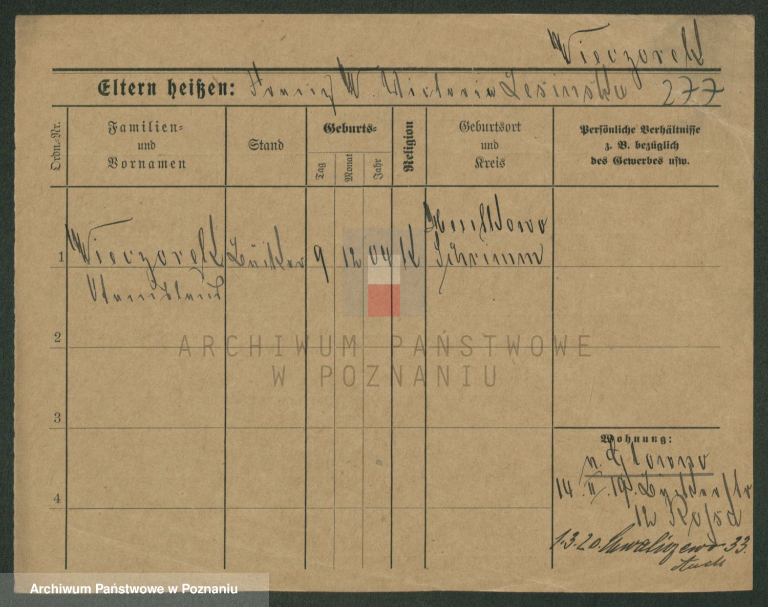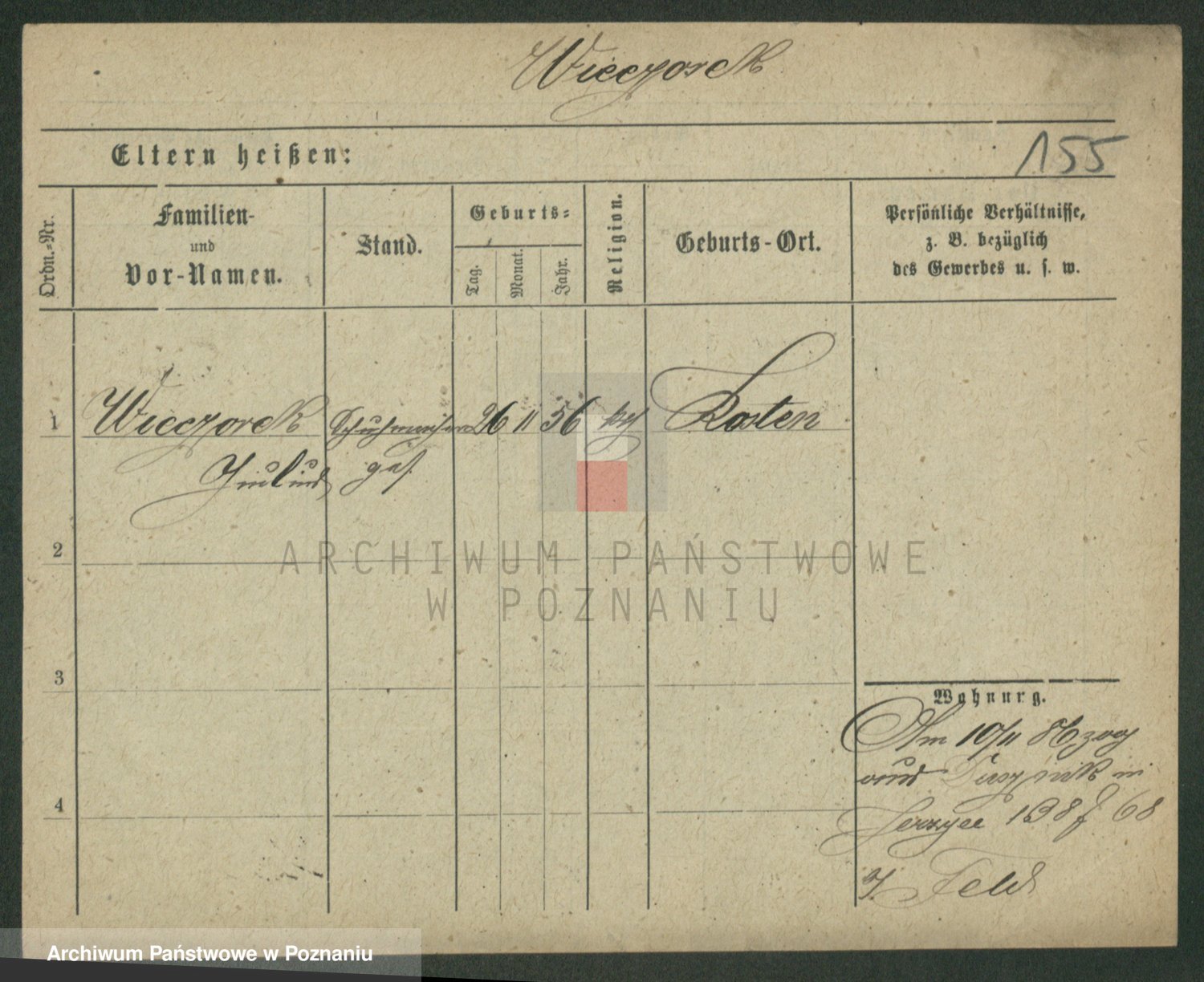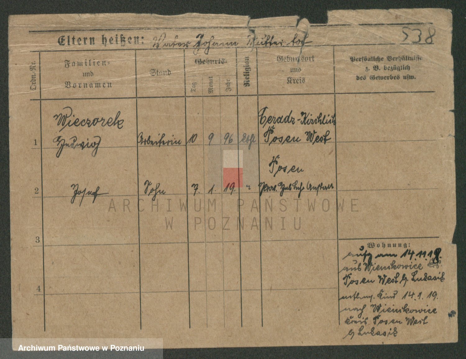 Podgląd karty osobowej dostępny jest po kliknięciu na nazwisko lub ikonkę karty. Można dokonywać powiększenia (ikony na górze) lub przechodzić między kolejnymi skanami (strzałki po bokach).