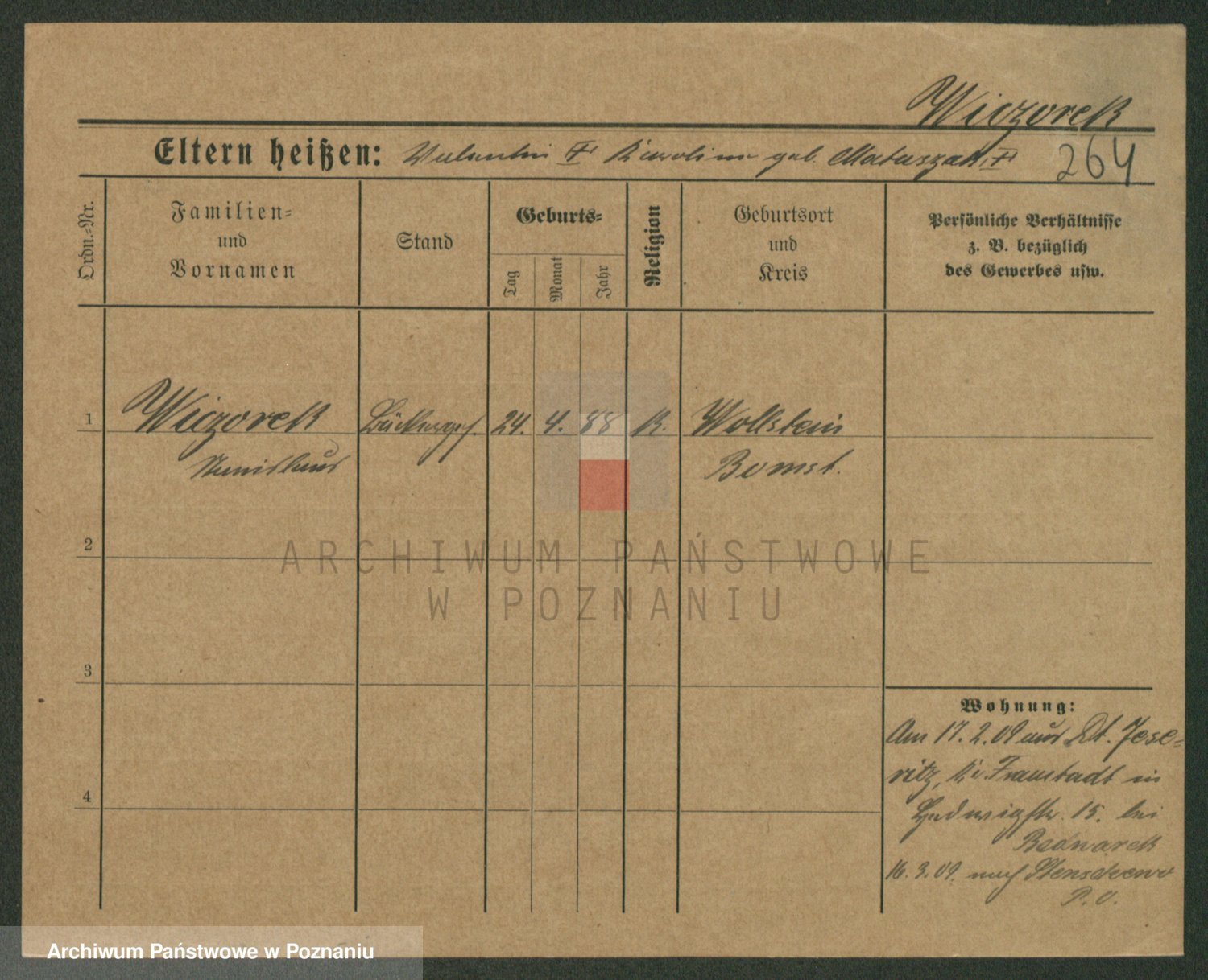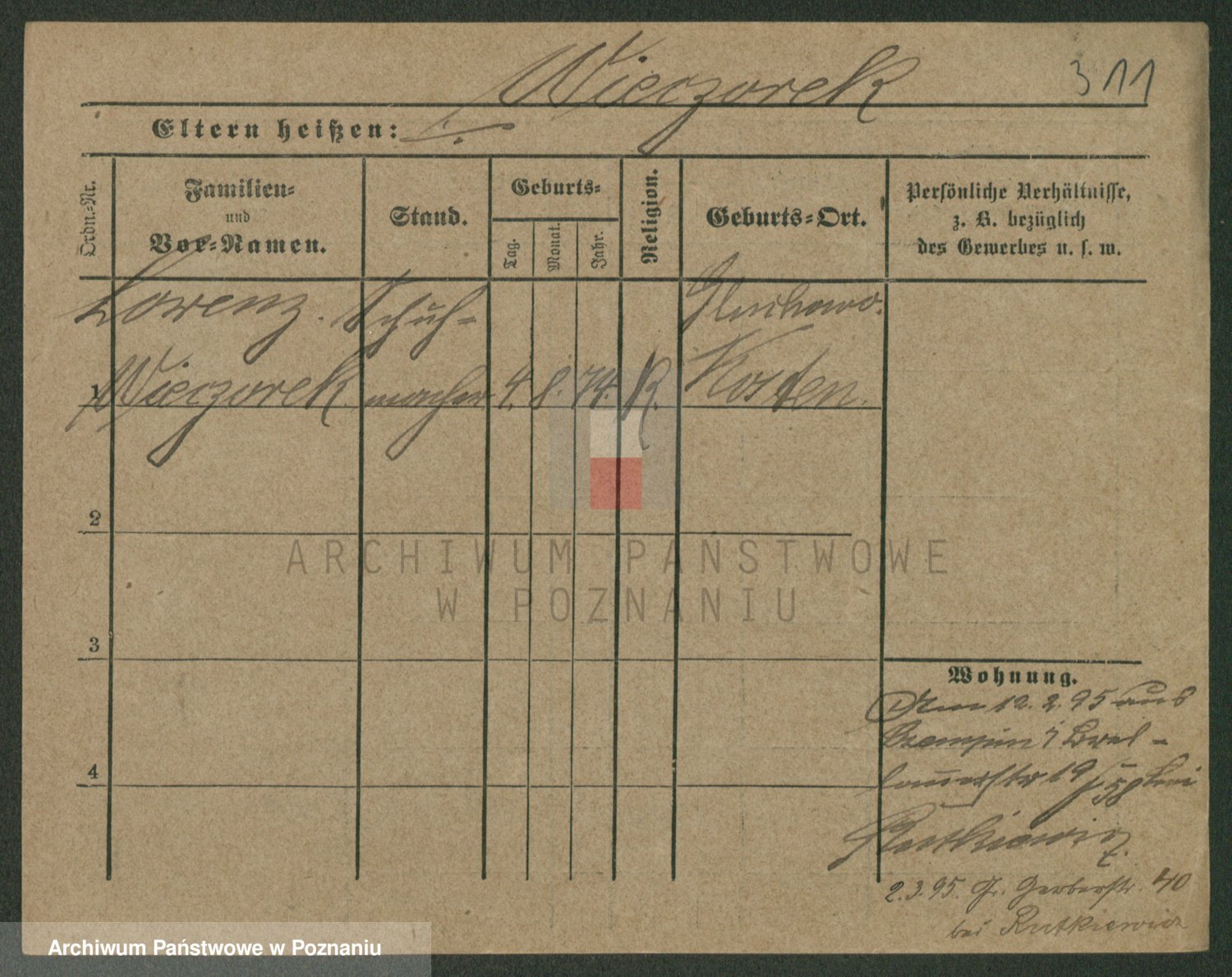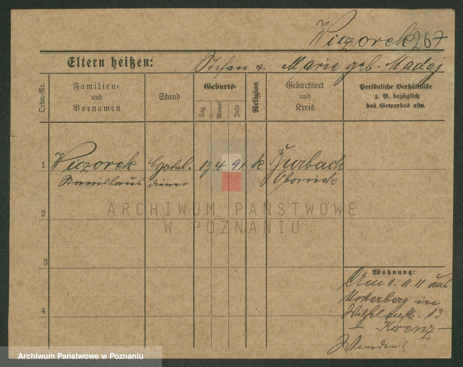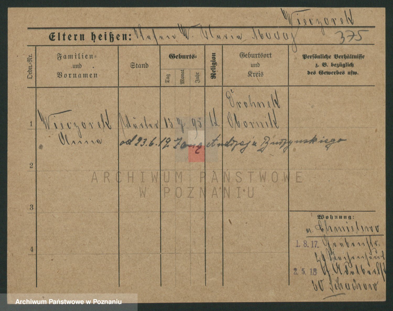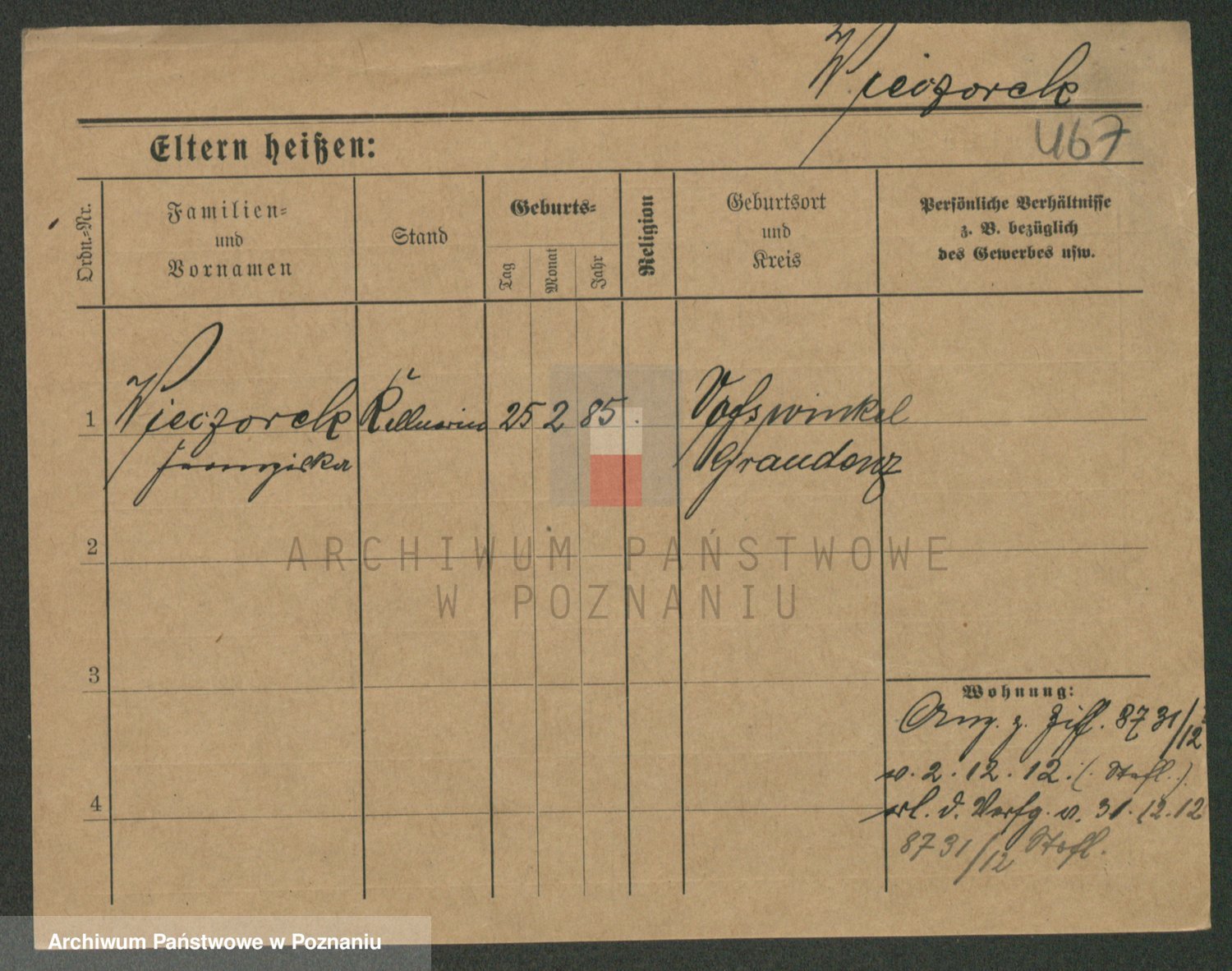 Podgląd karty osobowej dostępny jest po kliknięciu na nazwisko lub ikonkę karty. Można dokonywać powiększenia (ikony na górze) lub przechodzić między kolejnymi skanami (strzałki po bokach).