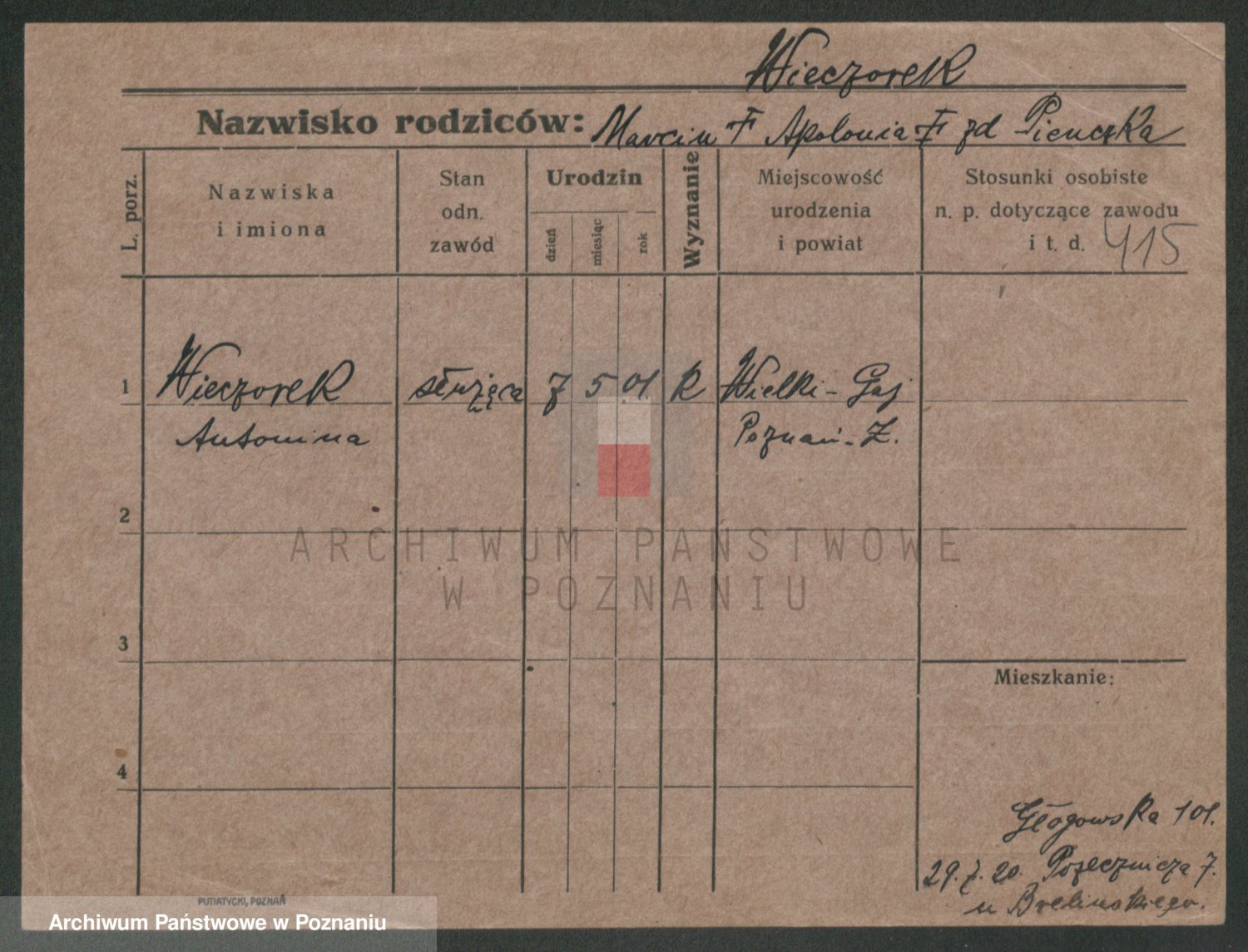 Wieczorek, Stanislawa