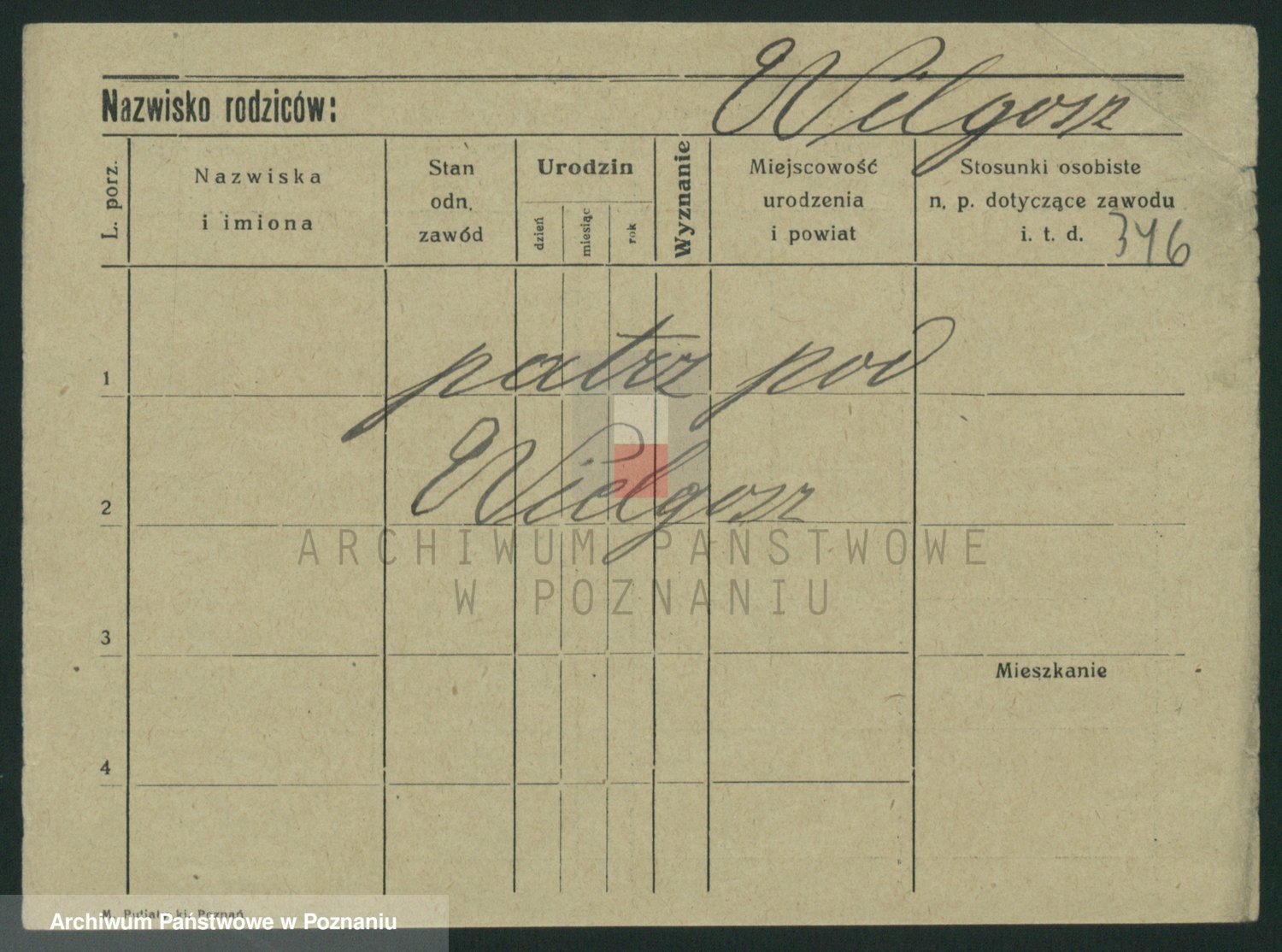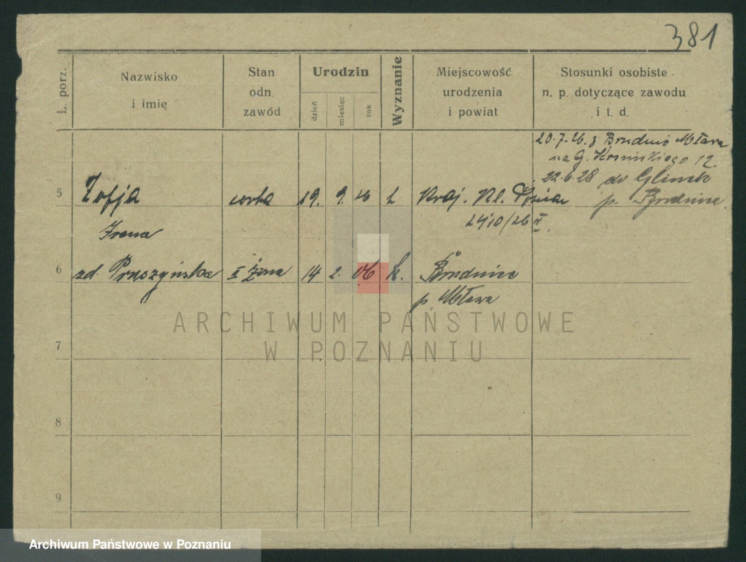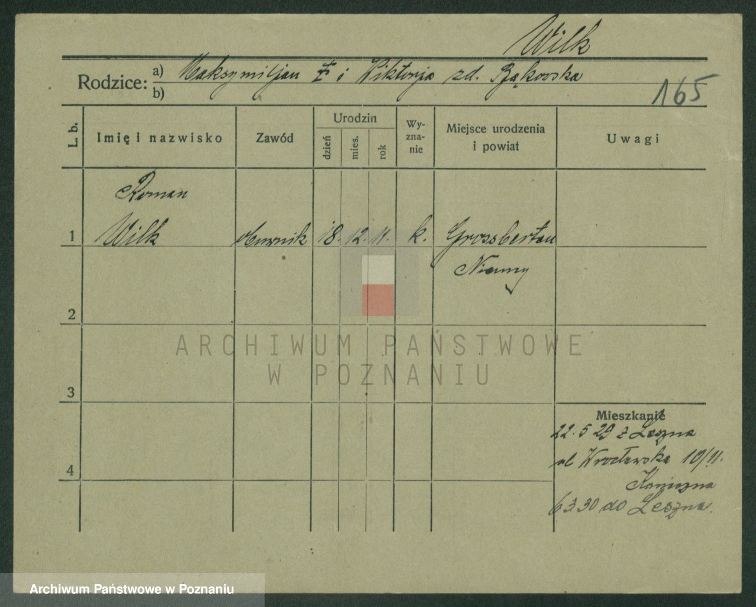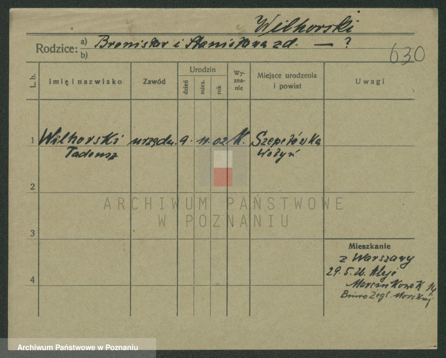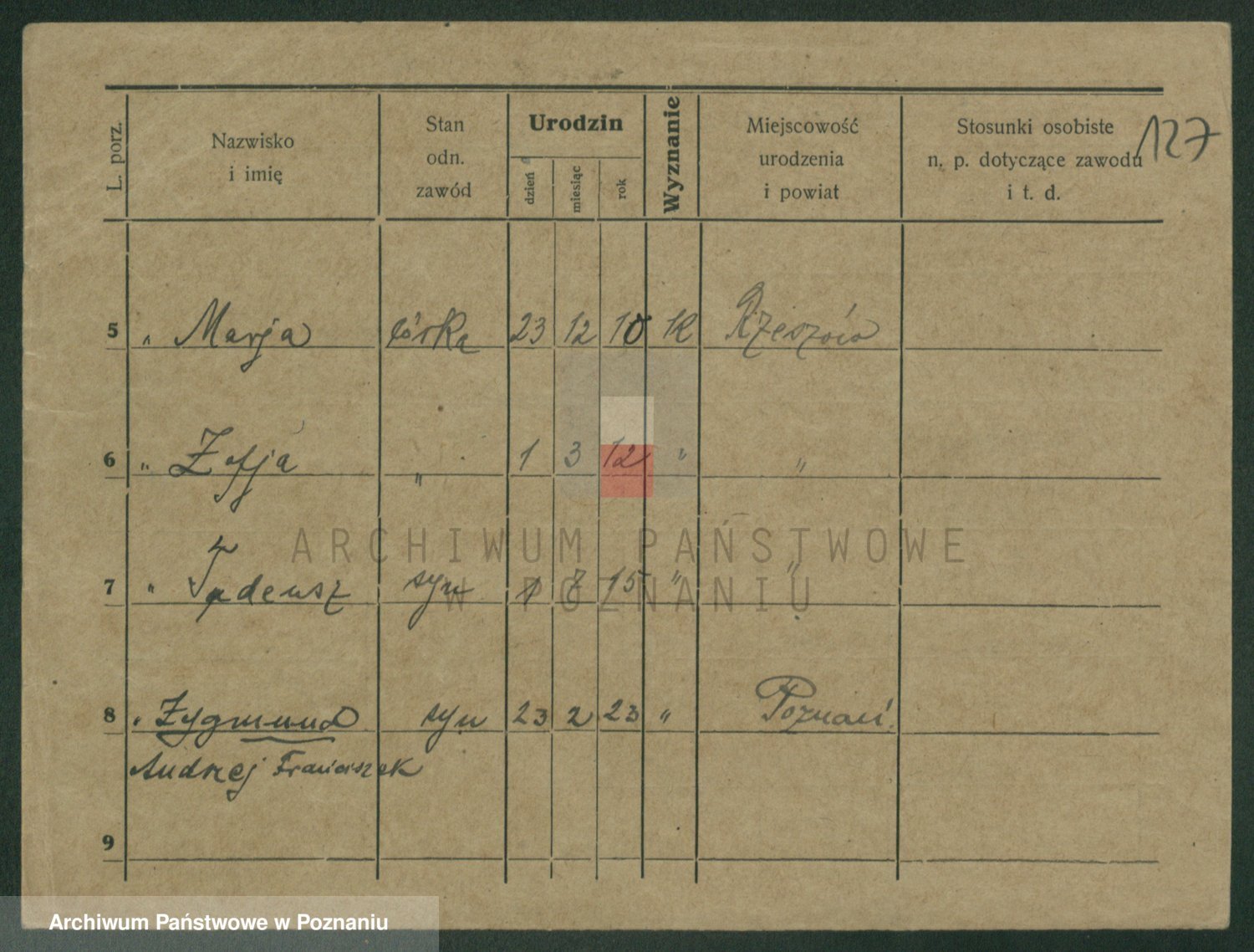 Podgląd karty osobowej dostępny jest po kliknięciu na nazwisko lub ikonkę karty. Można dokonywać powiększenia (ikony na górze) lub przechodzić między kolejnymi skanami (strzałki po bokach).