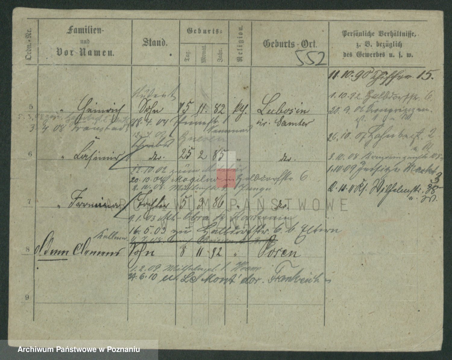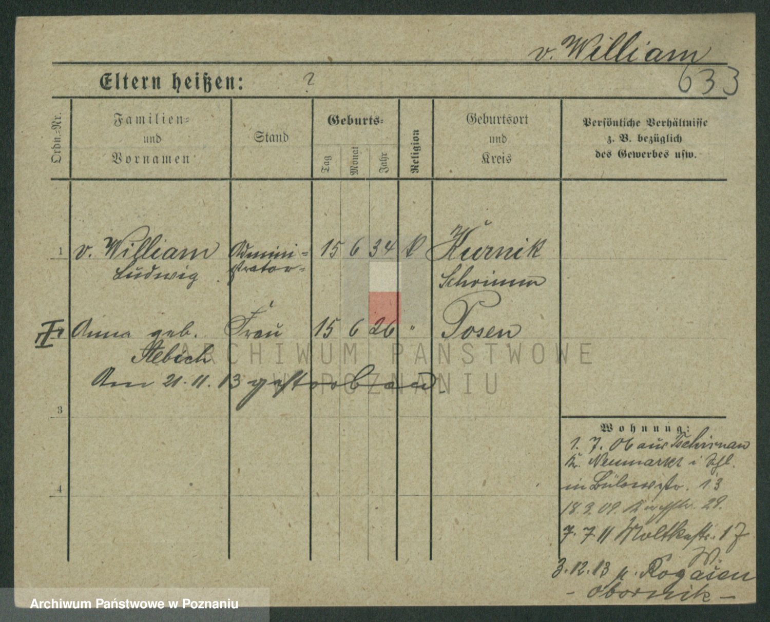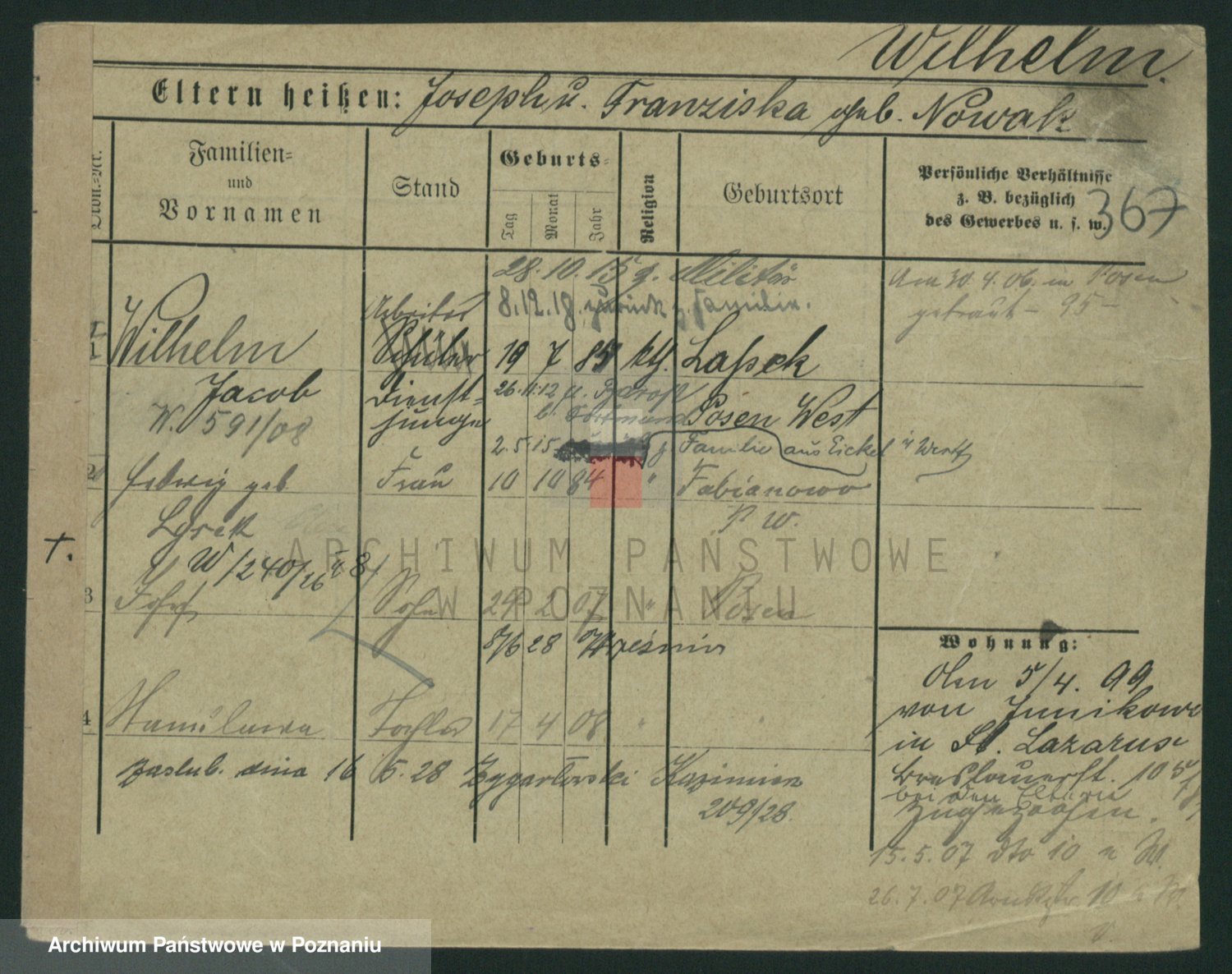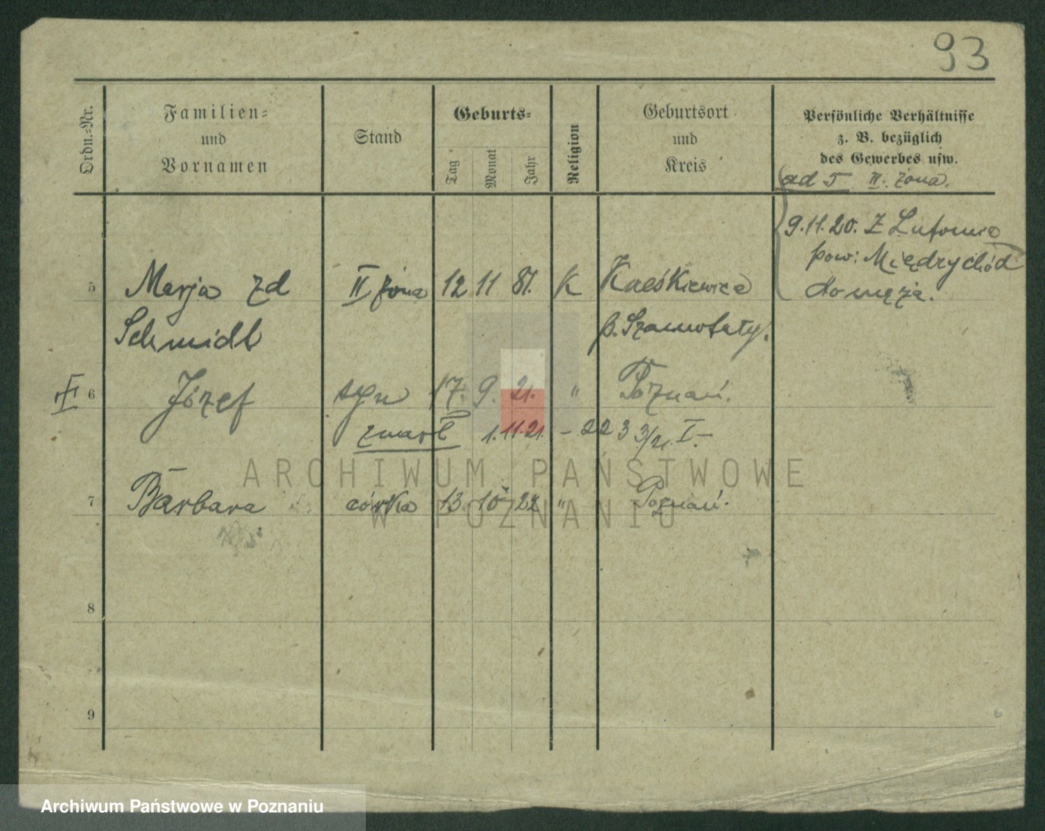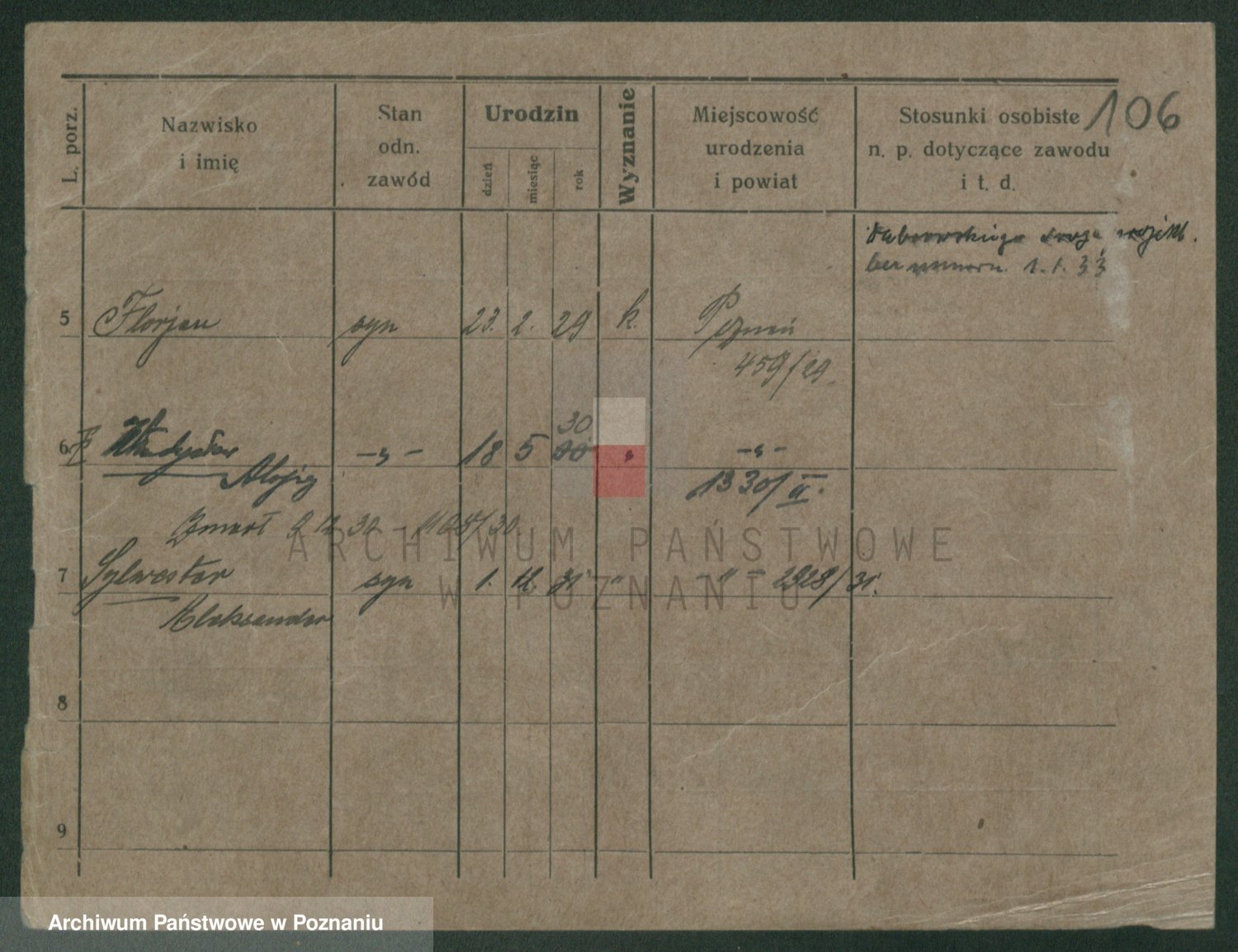 Podgląd karty osobowej dostępny jest po kliknięciu na nazwisko lub ikonkę karty. Można dokonywać powiększenia (ikony na górze) lub przechodzić między kolejnymi skanami (strzałki po bokach).
