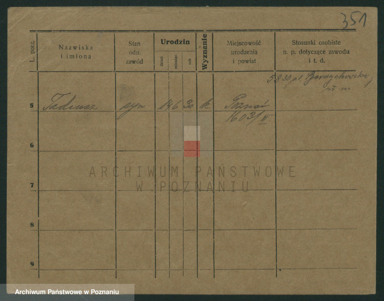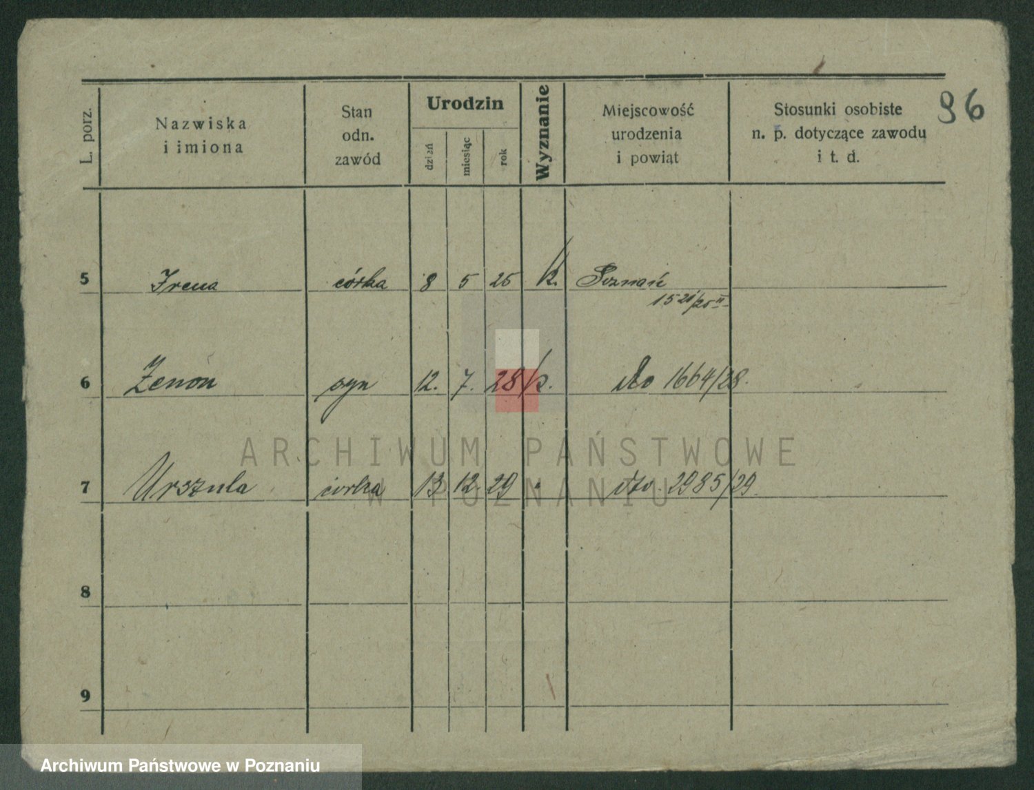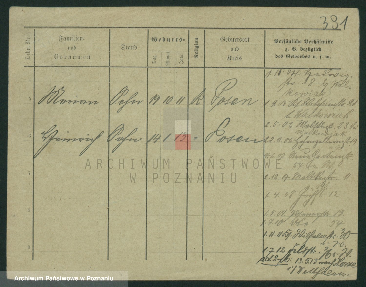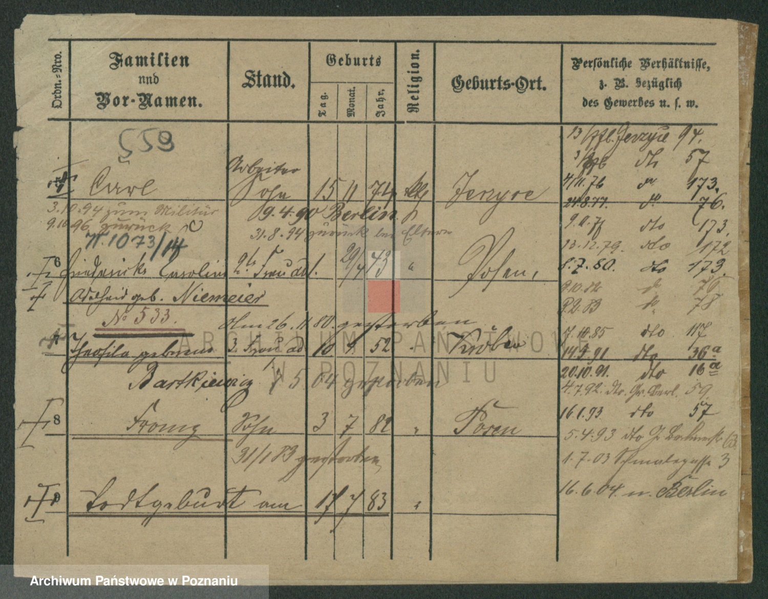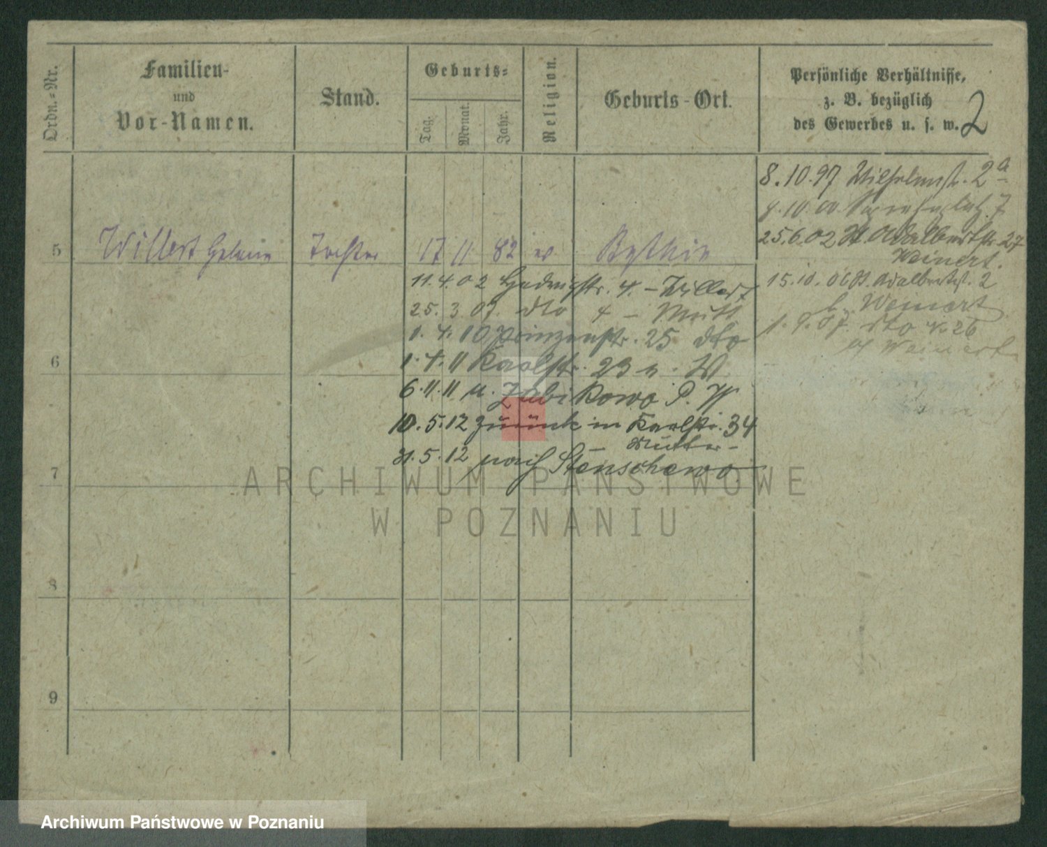 Podgląd karty osobowej dostępny jest po kliknięciu na nazwisko lub ikonkę karty. Można dokonywać powiększenia (ikony na górze) lub przechodzić między kolejnymi skanami (strzałki po bokach).