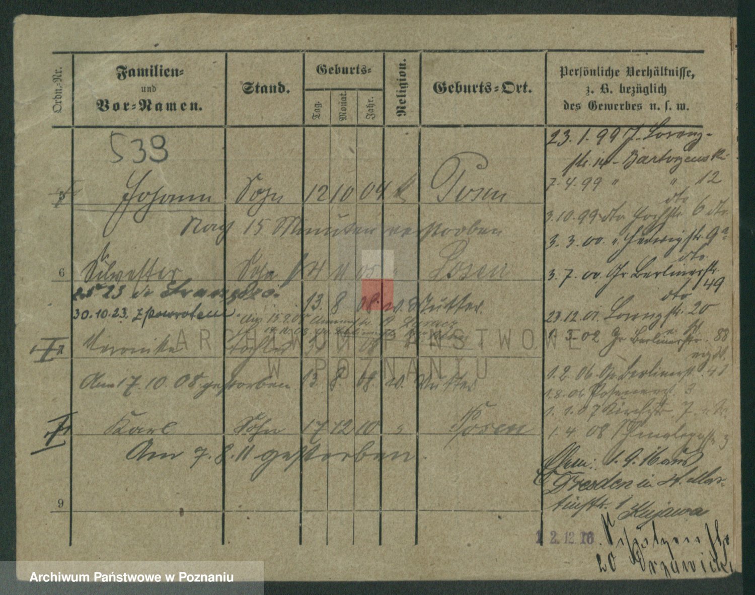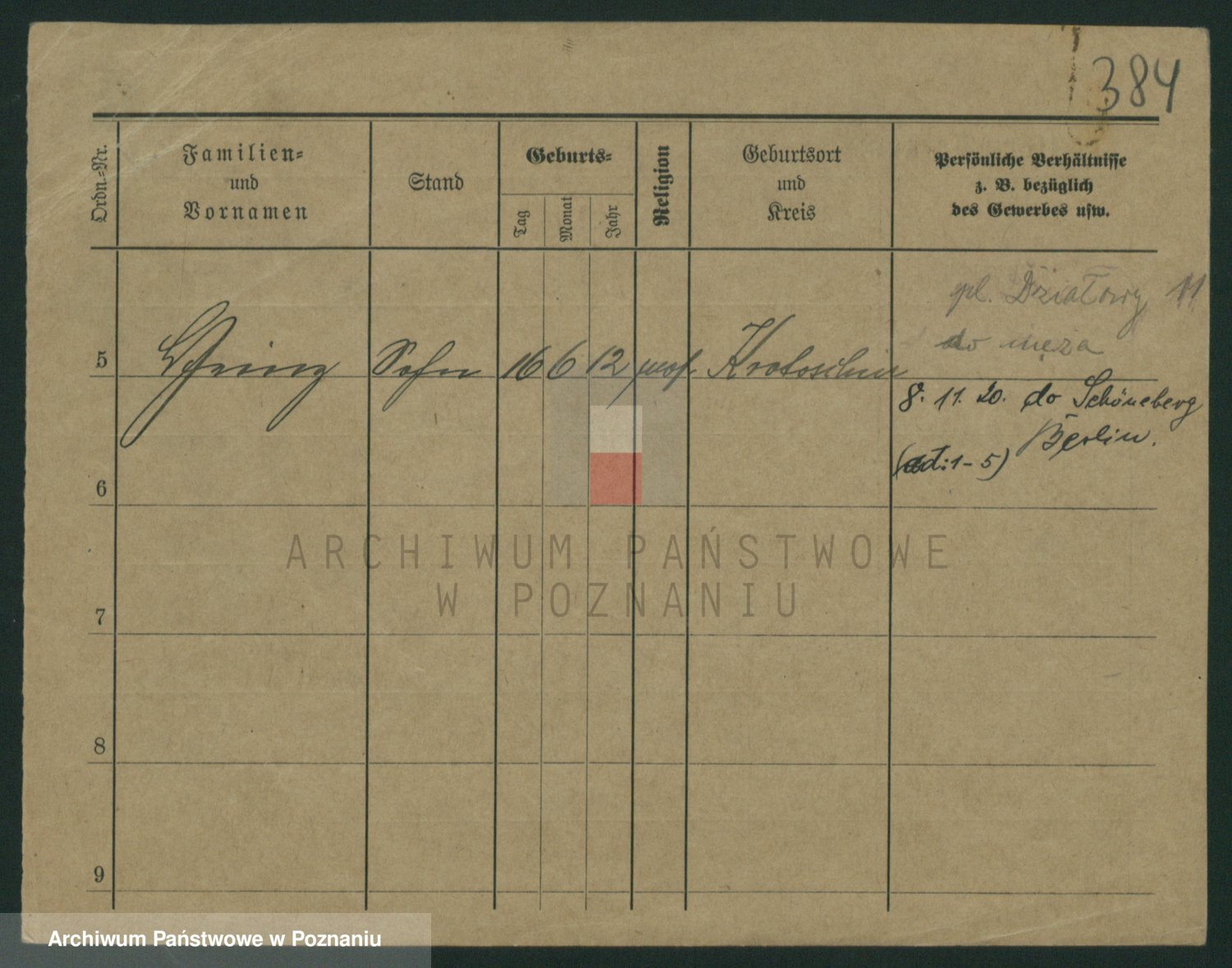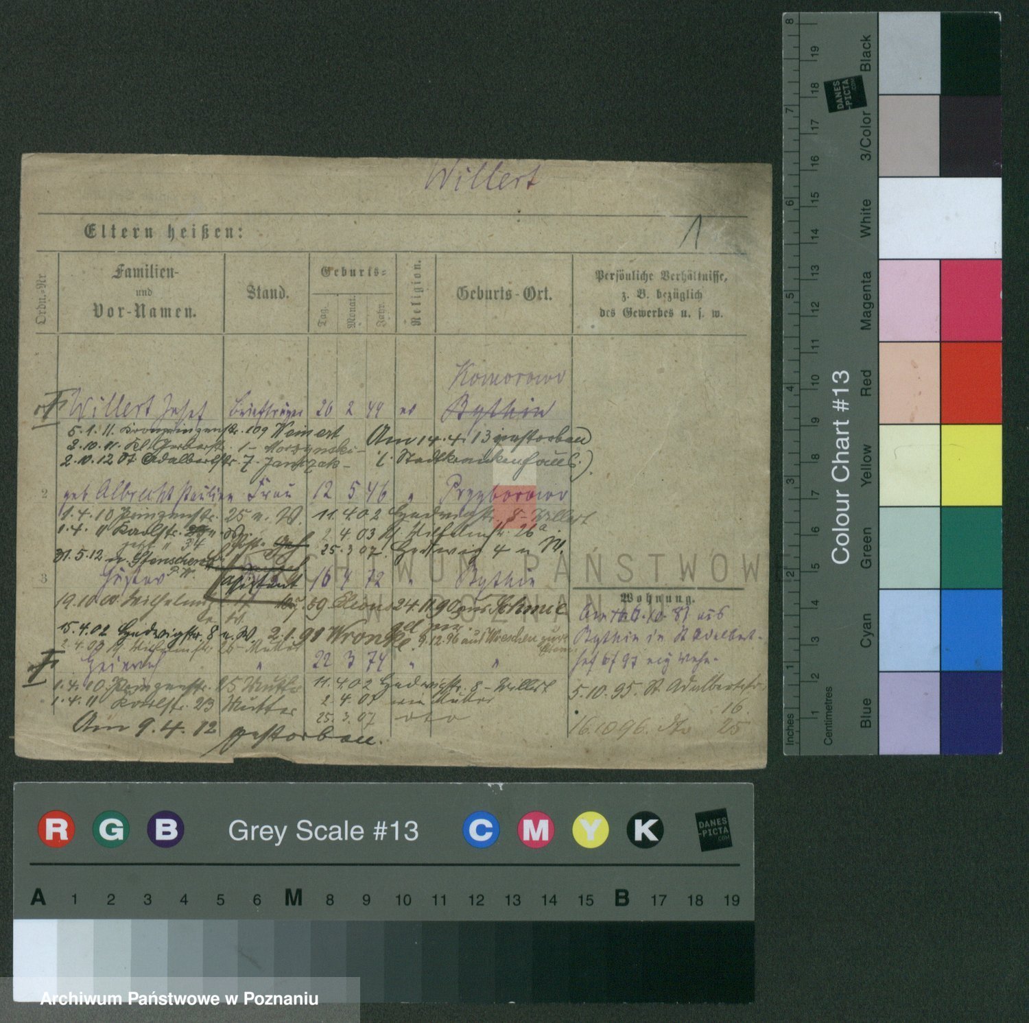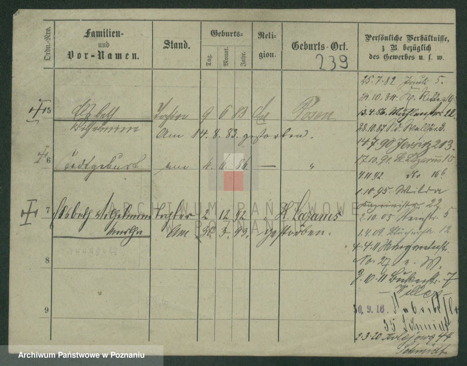 Podgląd karty osobowej dostępny jest po kliknięciu na nazwisko lub ikonkę karty. Można dokonywać powiększenia (ikony na górze) lub przechodzić między kolejnymi skanami (strzałki po bokach).