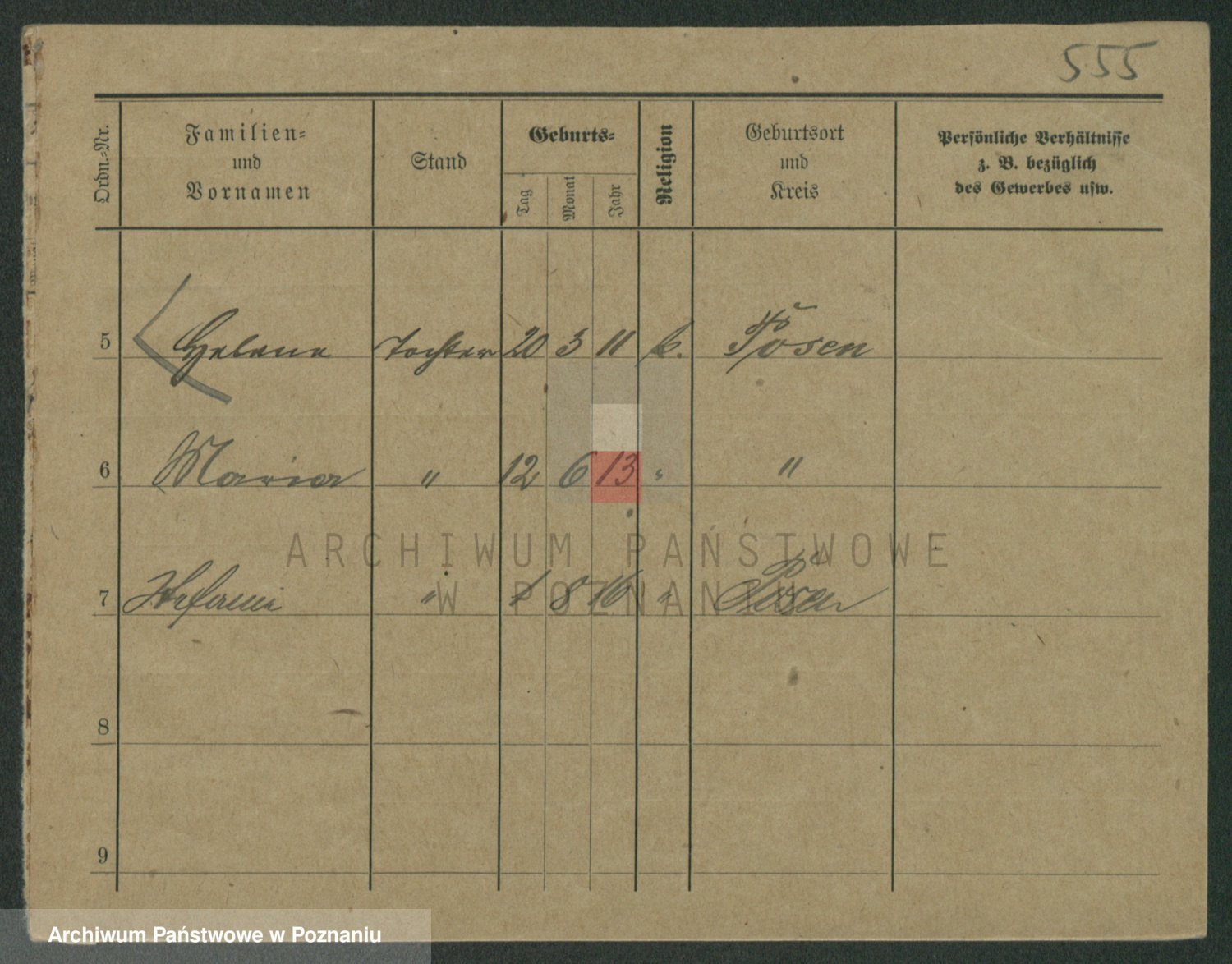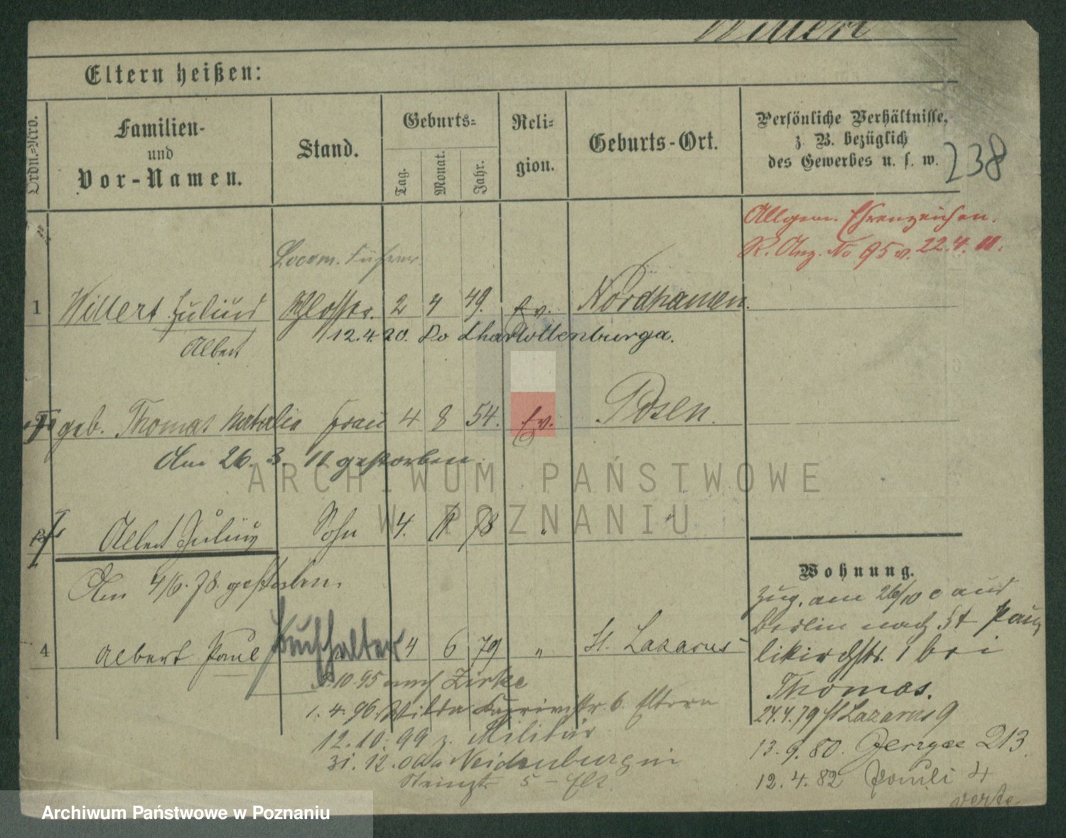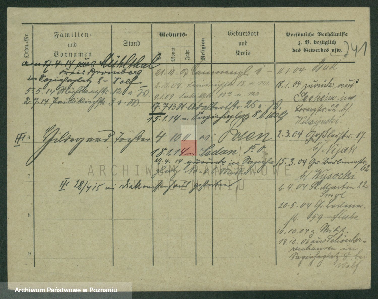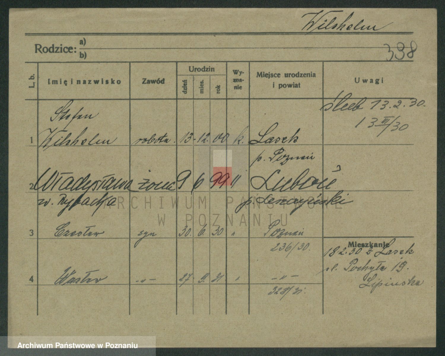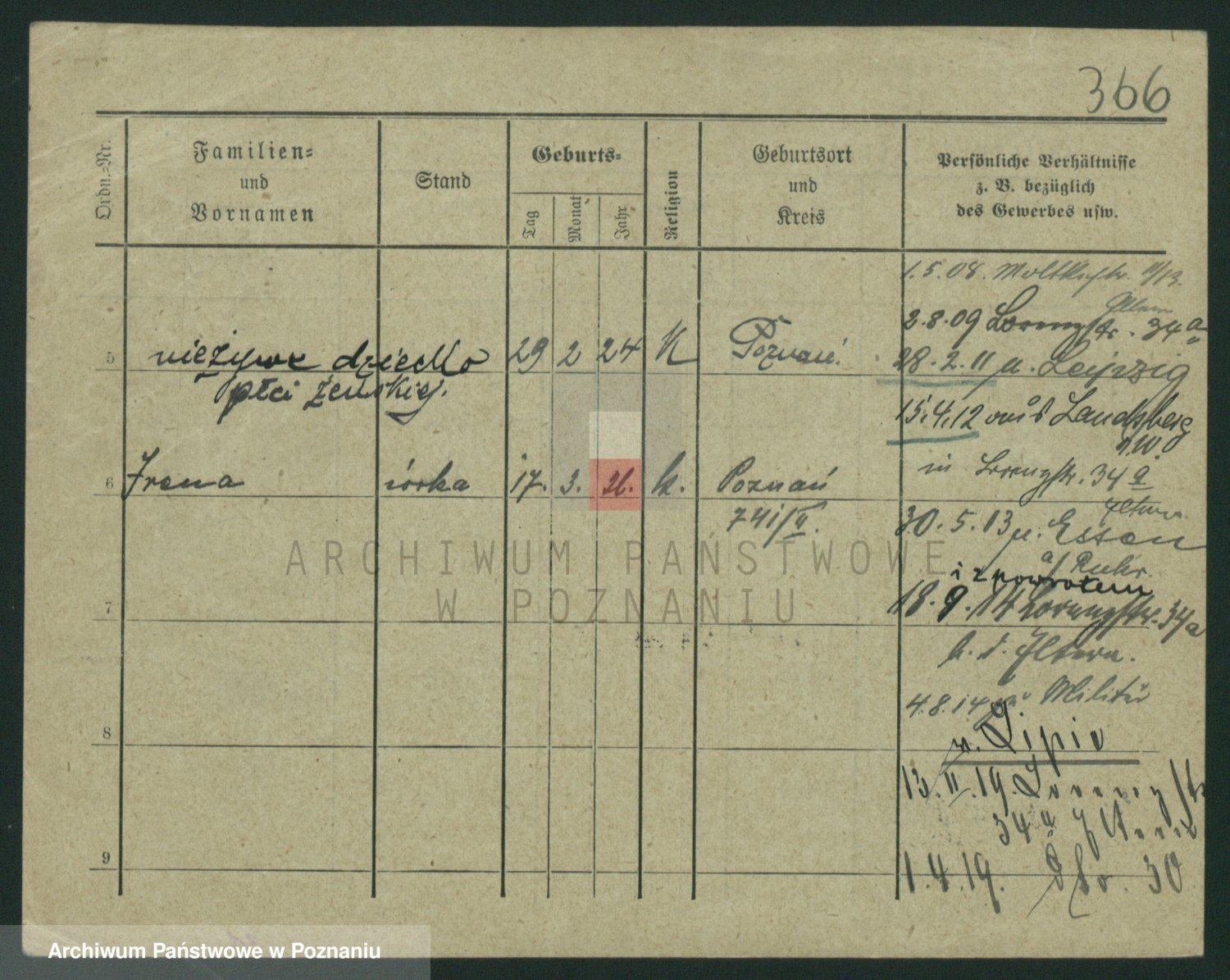 Podgląd karty osobowej dostępny jest po kliknięciu na nazwisko lub ikonkę karty. Można dokonywać powiększenia (ikony na górze) lub przechodzić między kolejnymi skanami (strzałki po bokach).
