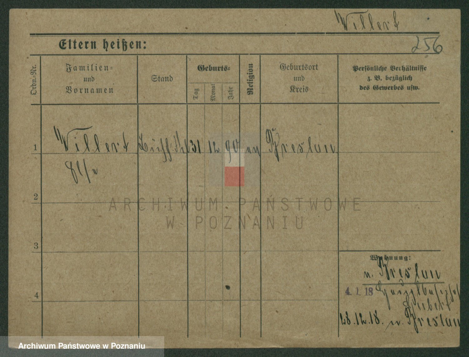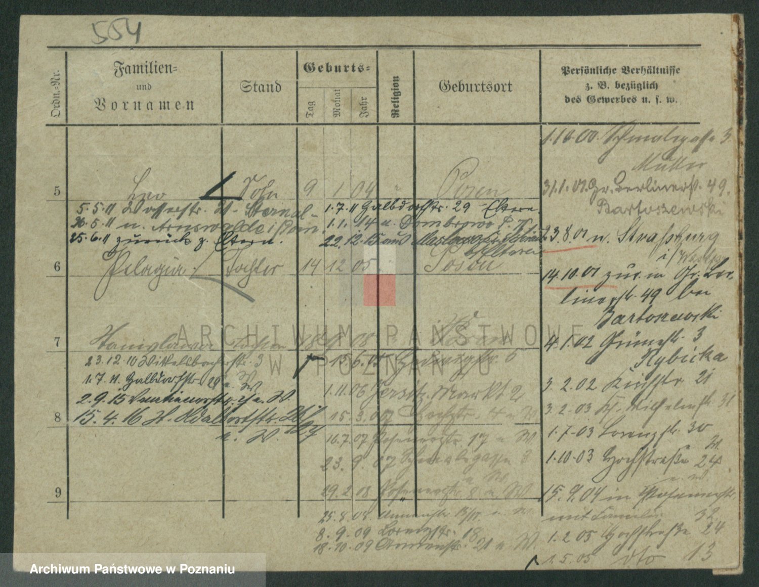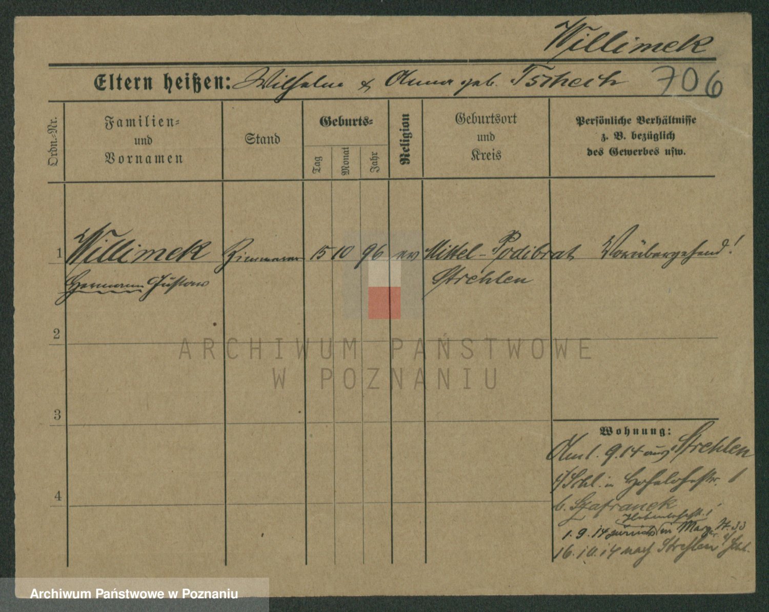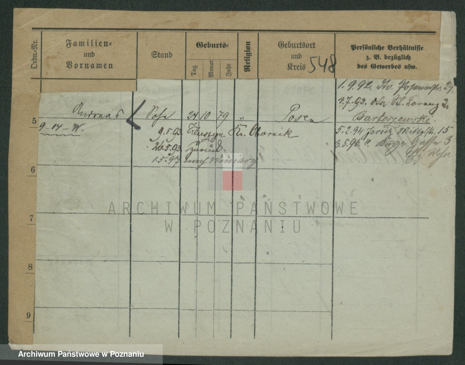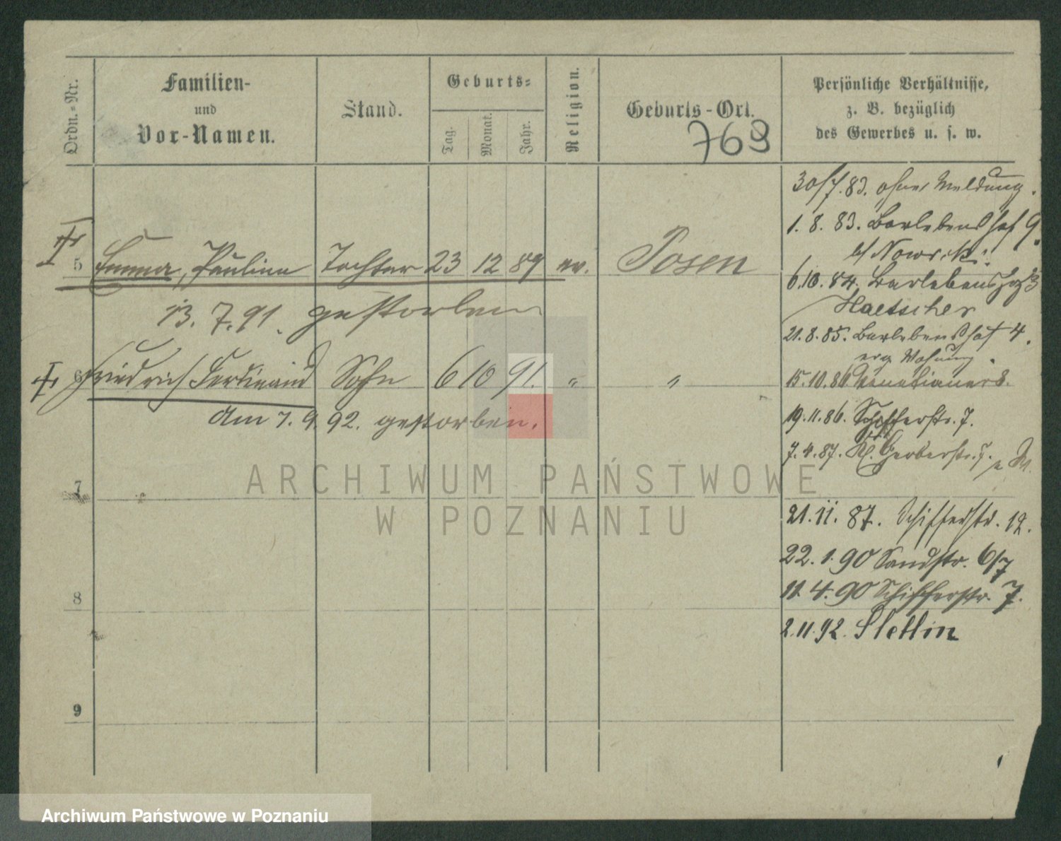 Podgląd karty osobowej dostępny jest po kliknięciu na nazwisko lub ikonkę karty. Można dokonywać powiększenia (ikony na górze) lub przechodzić między kolejnymi skanami (strzałki po bokach).