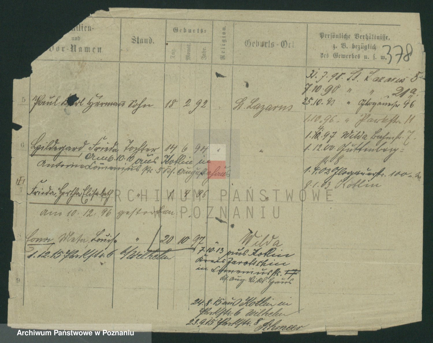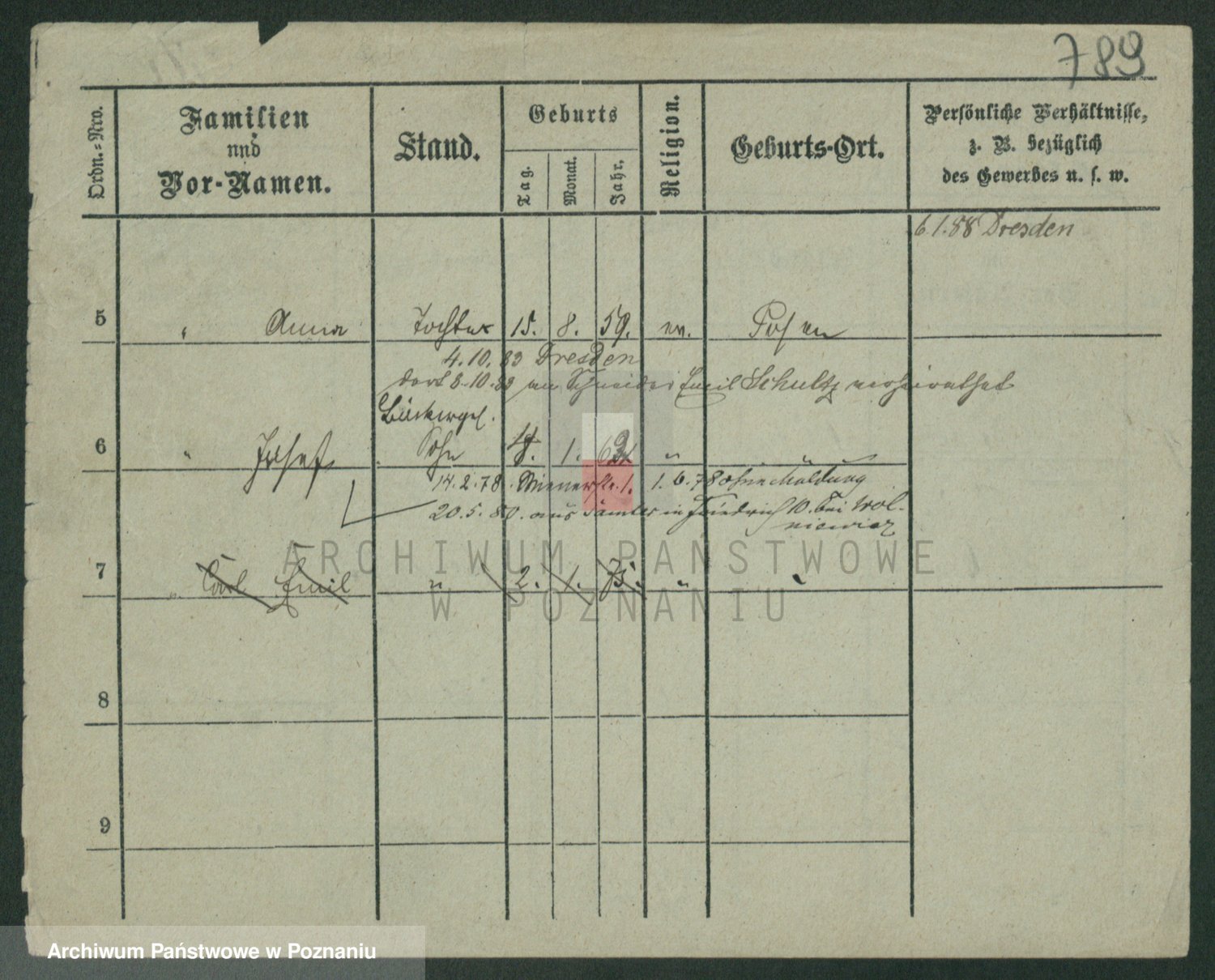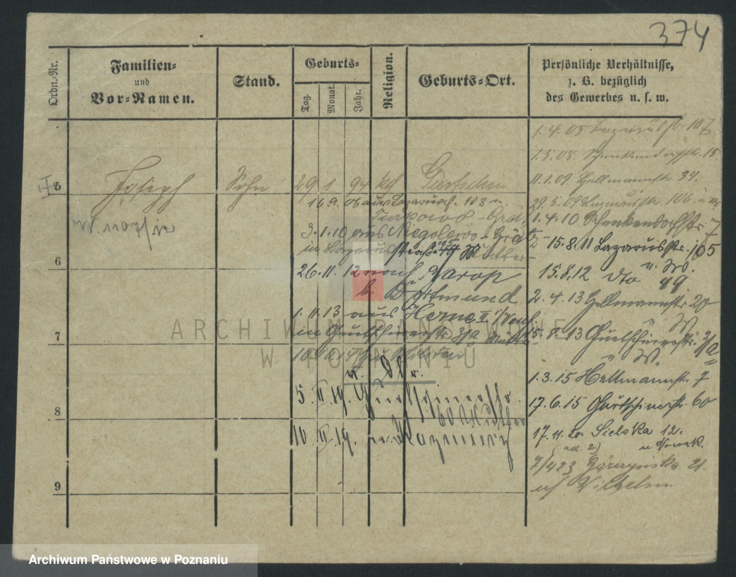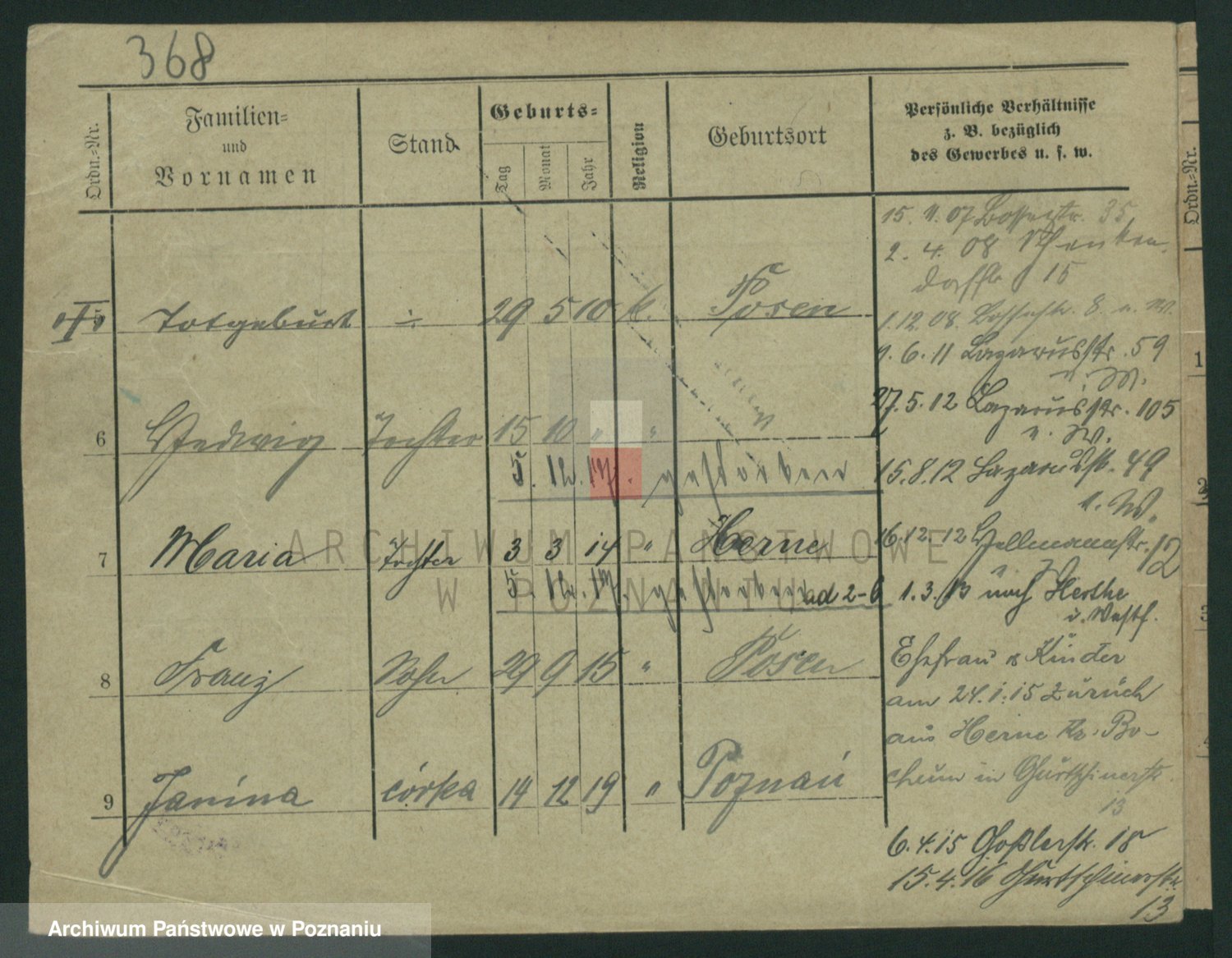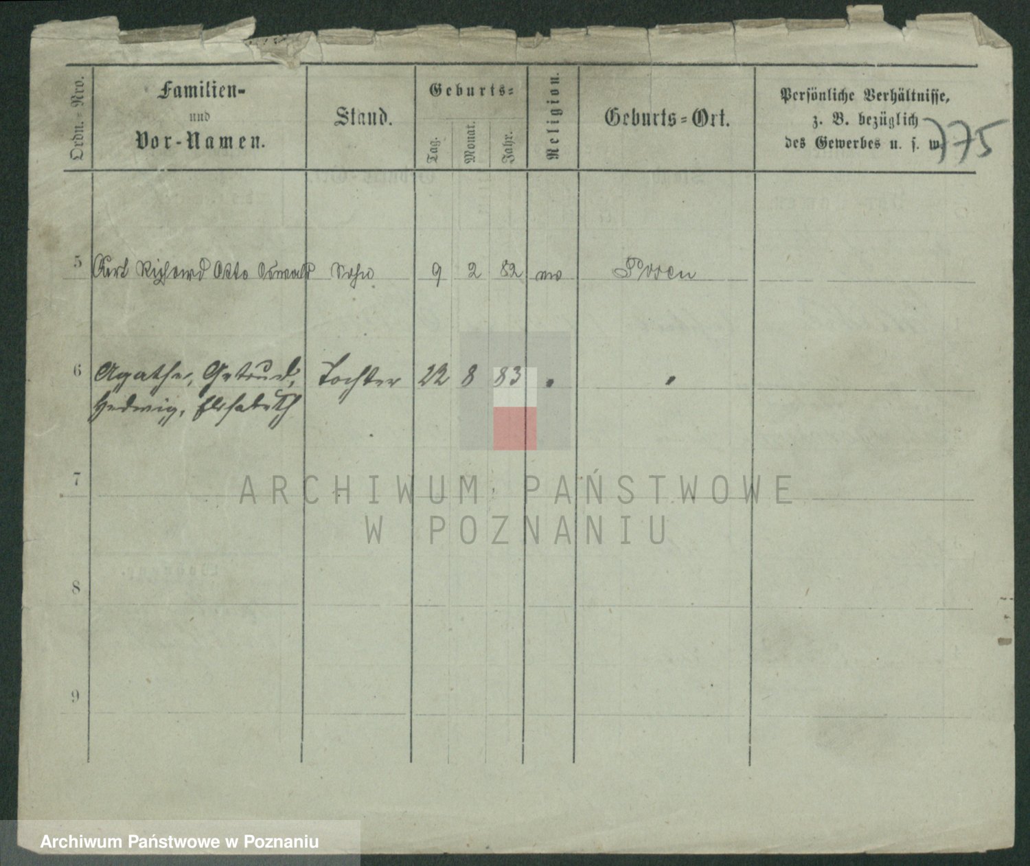 Podgląd karty osobowej dostępny jest po kliknięciu na nazwisko lub ikonkę karty. Można dokonywać powiększenia (ikony na górze) lub przechodzić między kolejnymi skanami (strzałki po bokach).