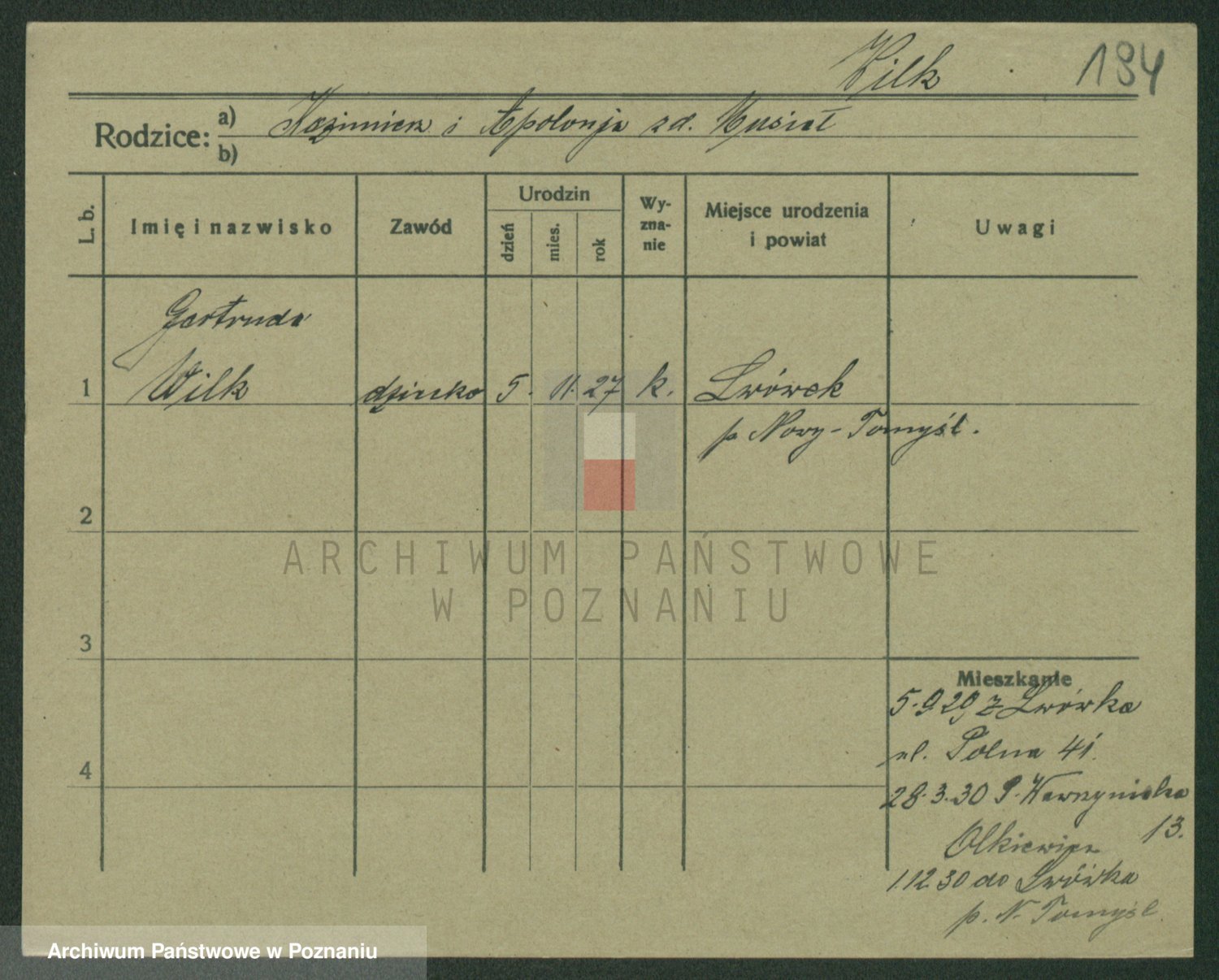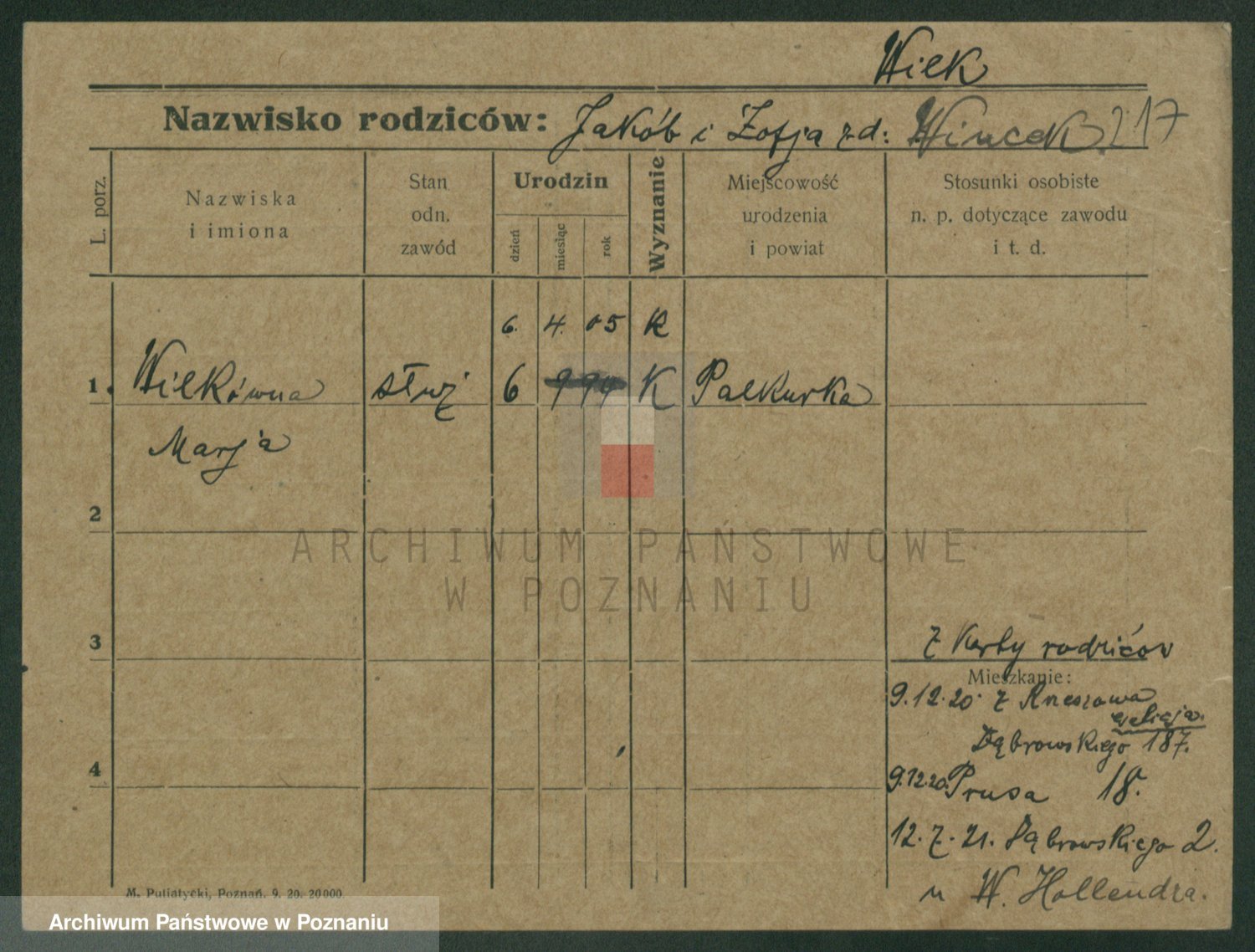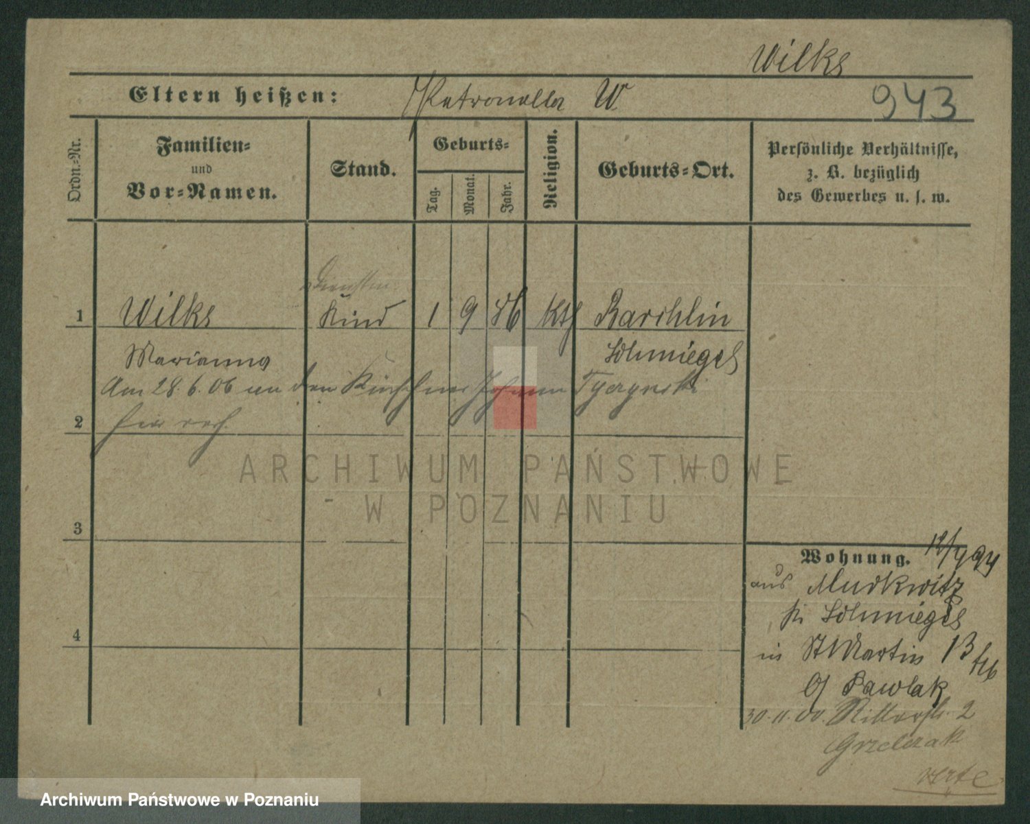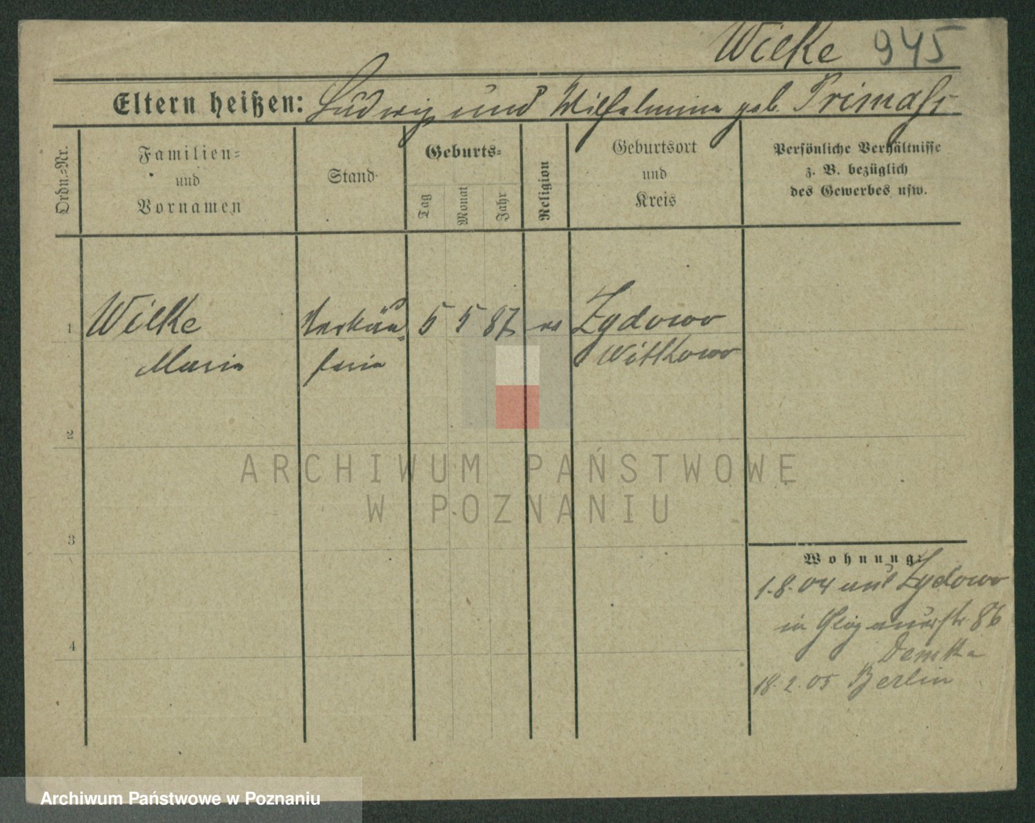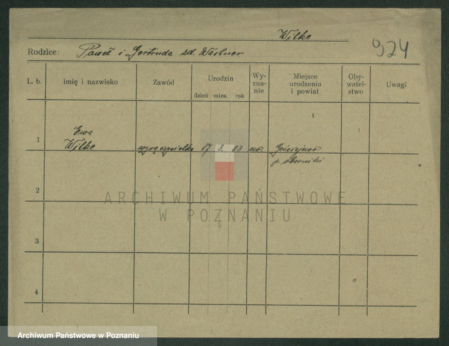 Wilke (albo Wilks) później zam. Tyczynski, Marianna