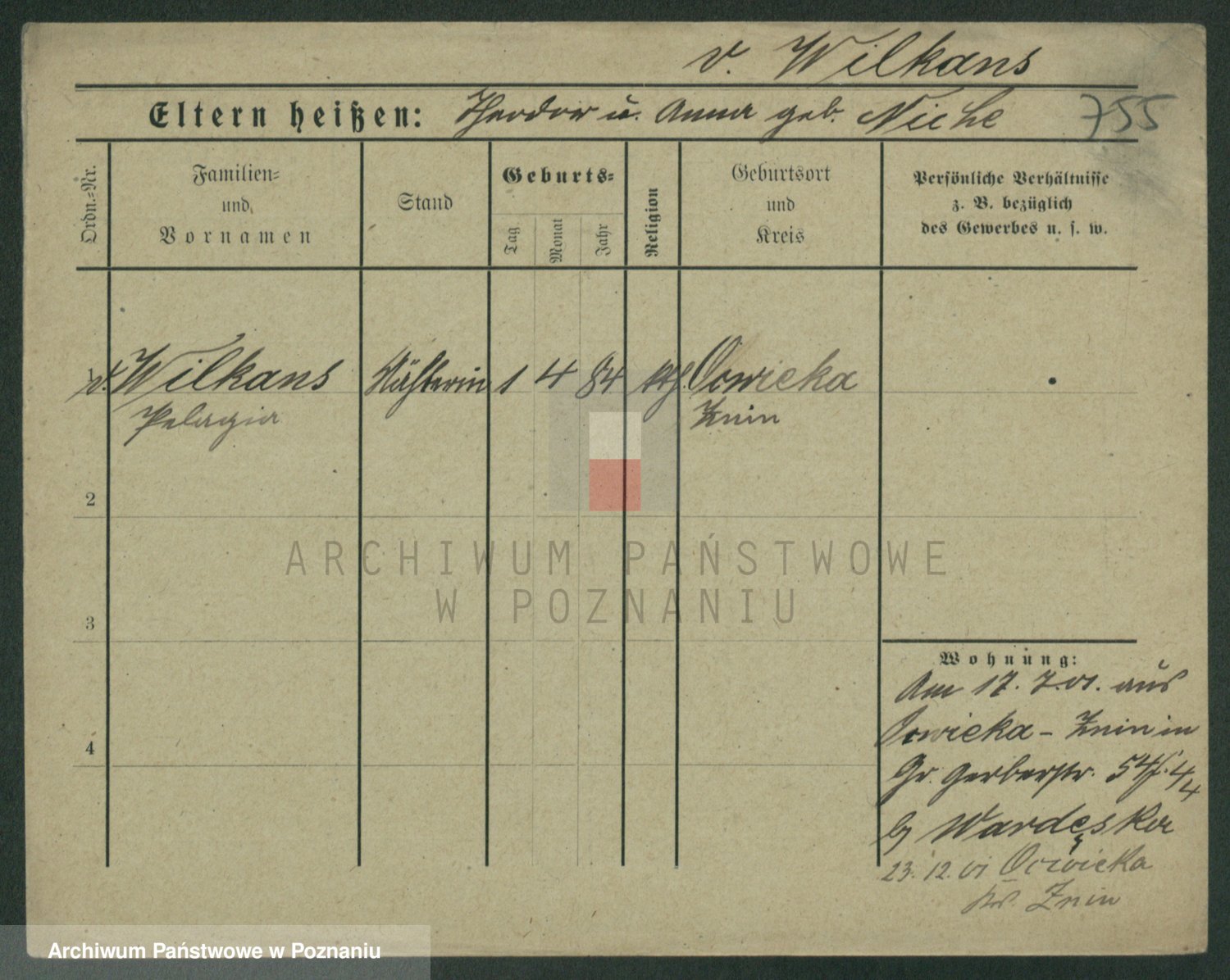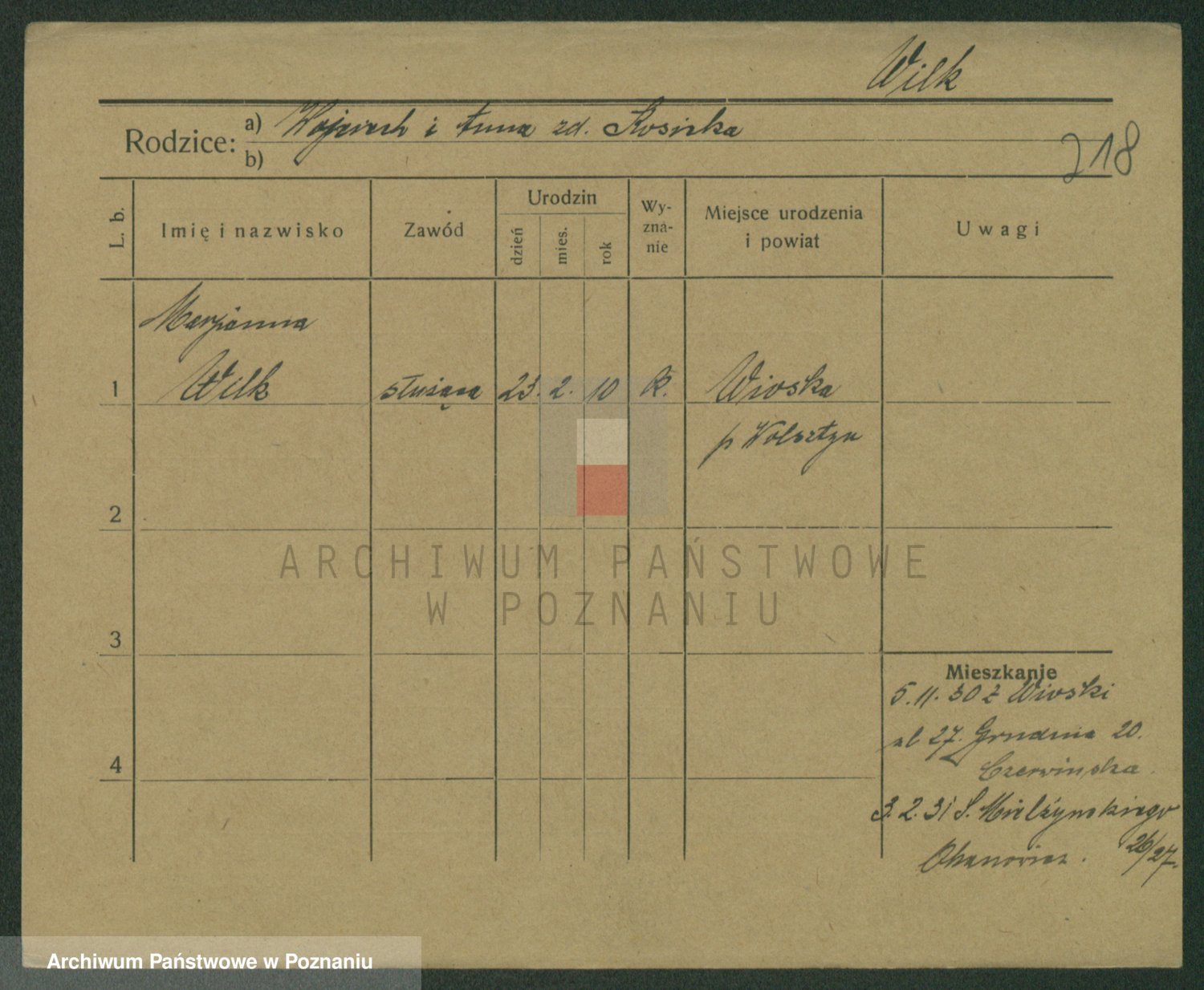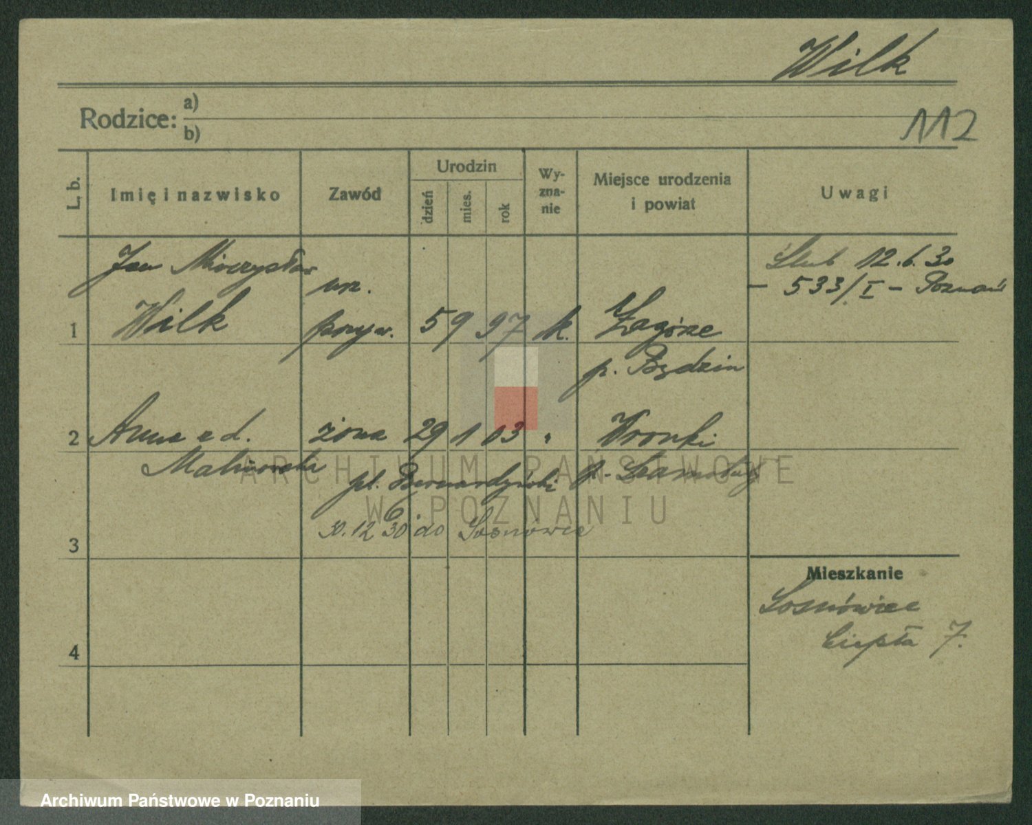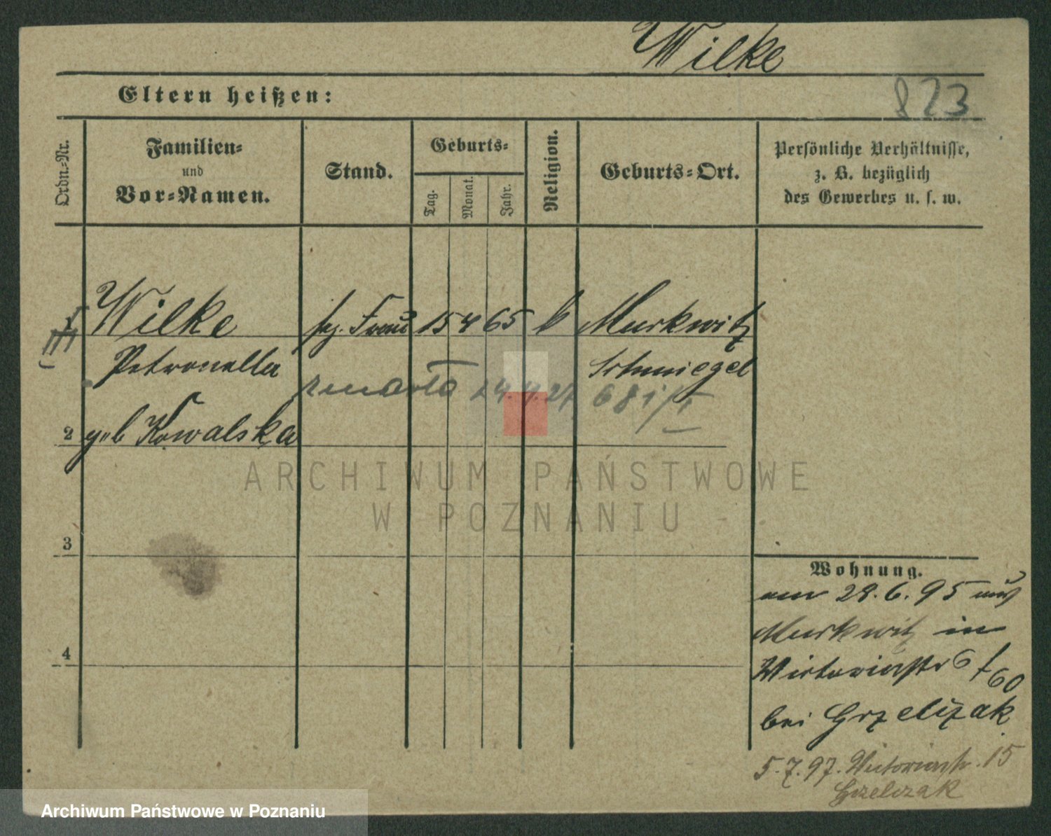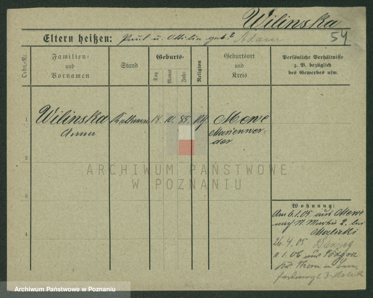 Wilke (albo Wilks) później zam. Tyczynski, Marianna