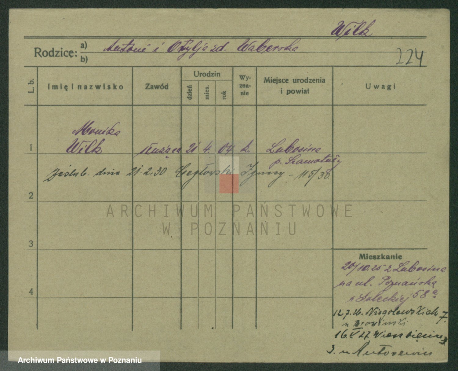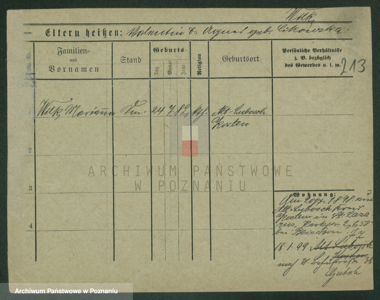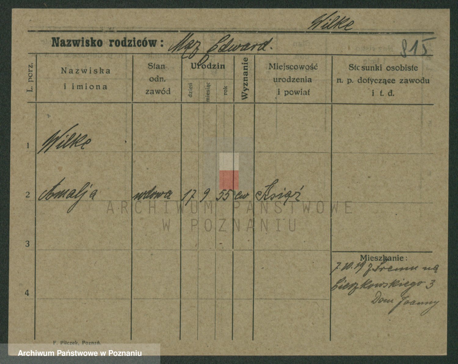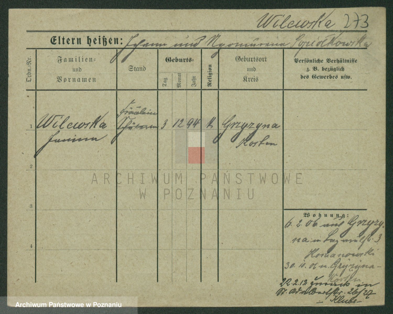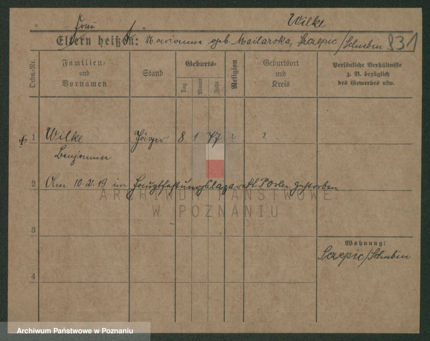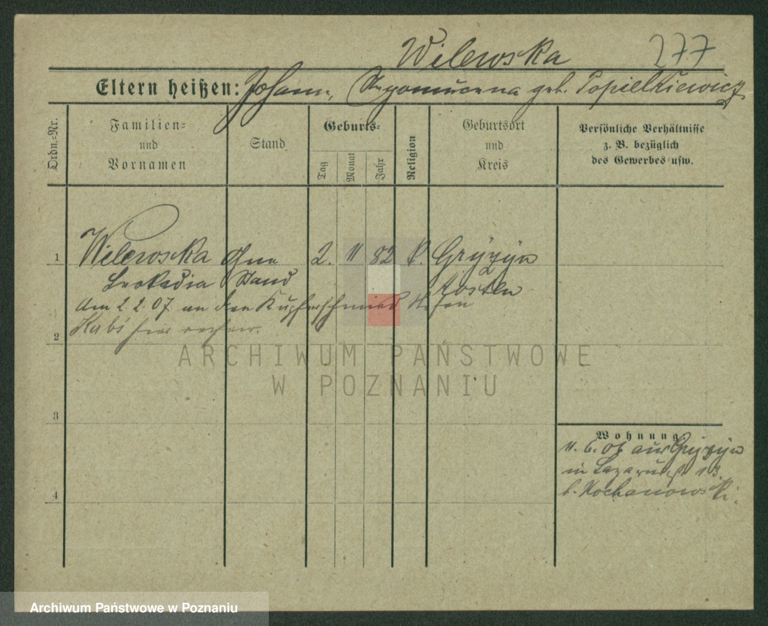 Wilke (albo Wilks) później zam. Tyczynski, Marianna