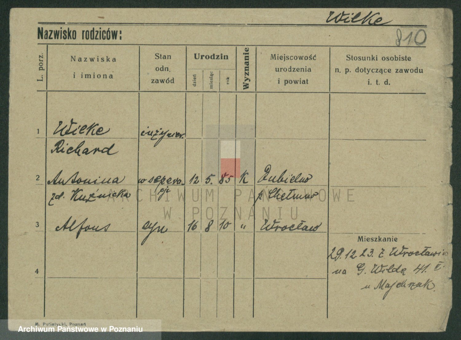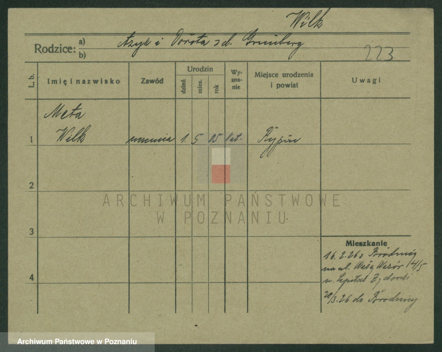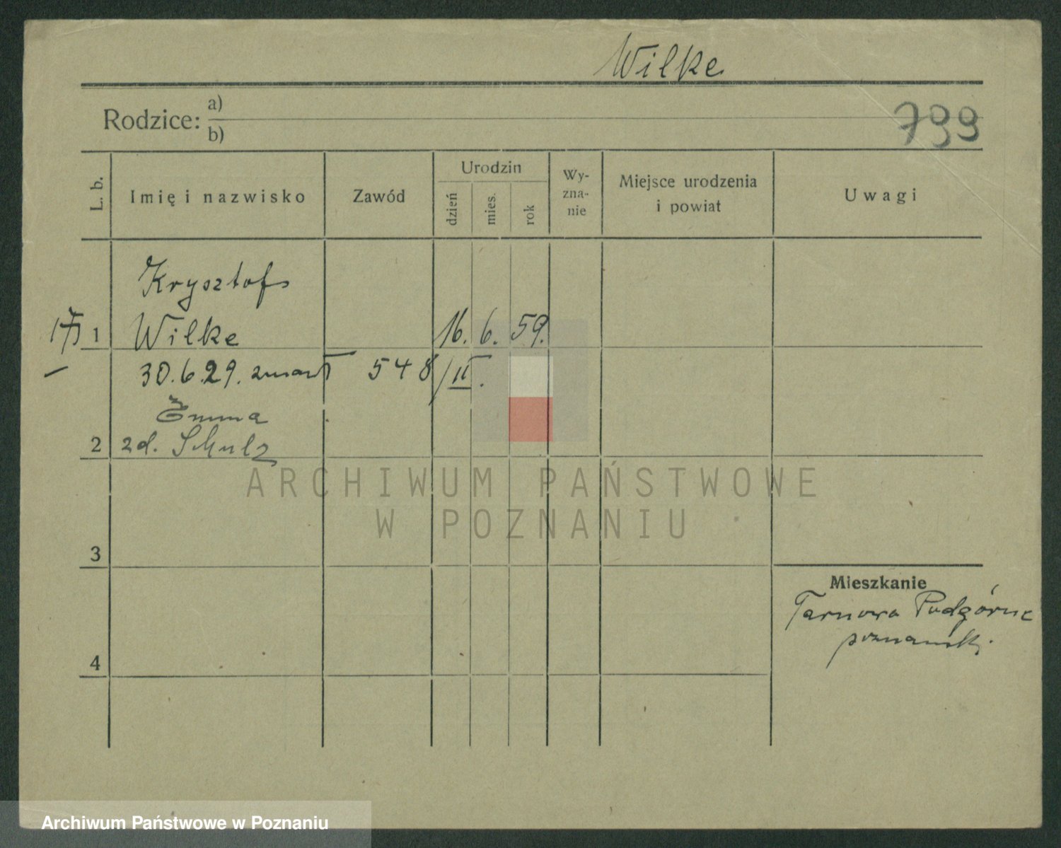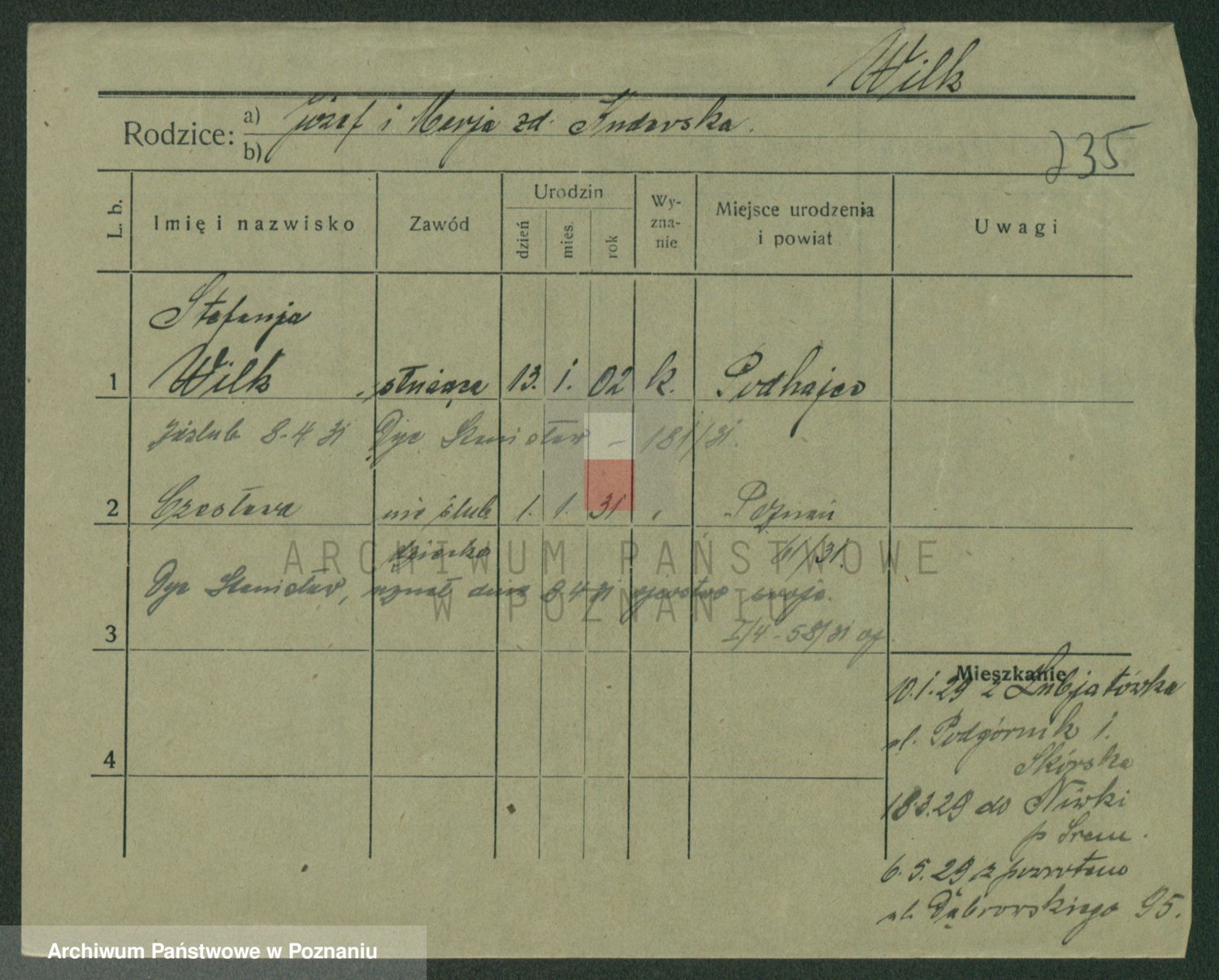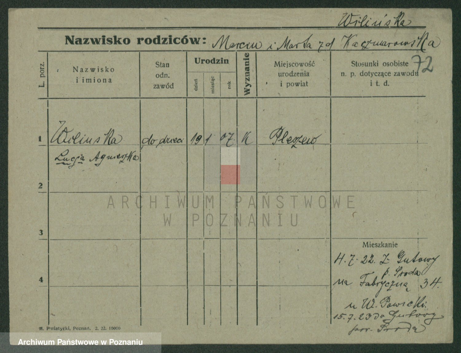 Wilke (albo Wilks) później zam. Tyczynski, Marianna