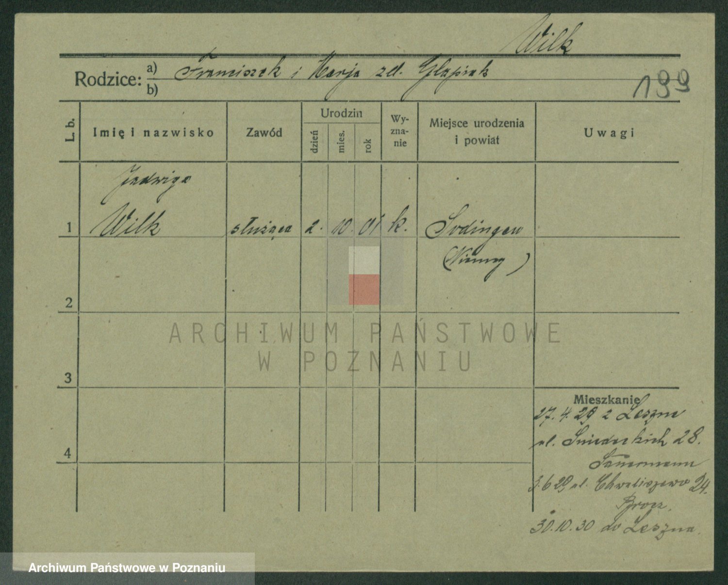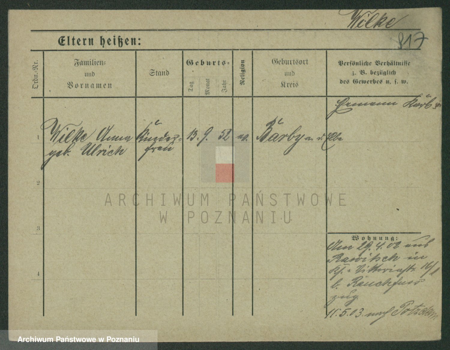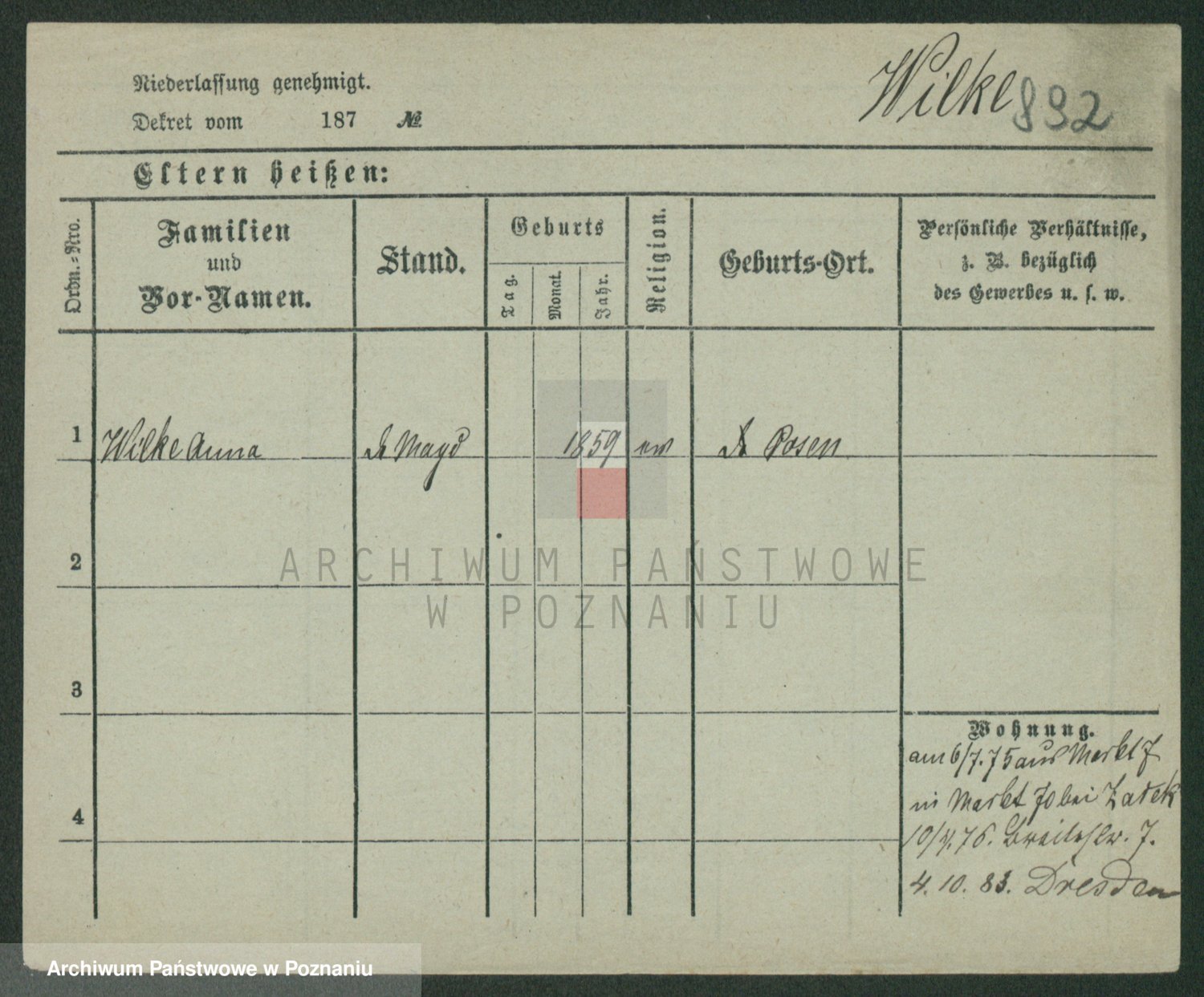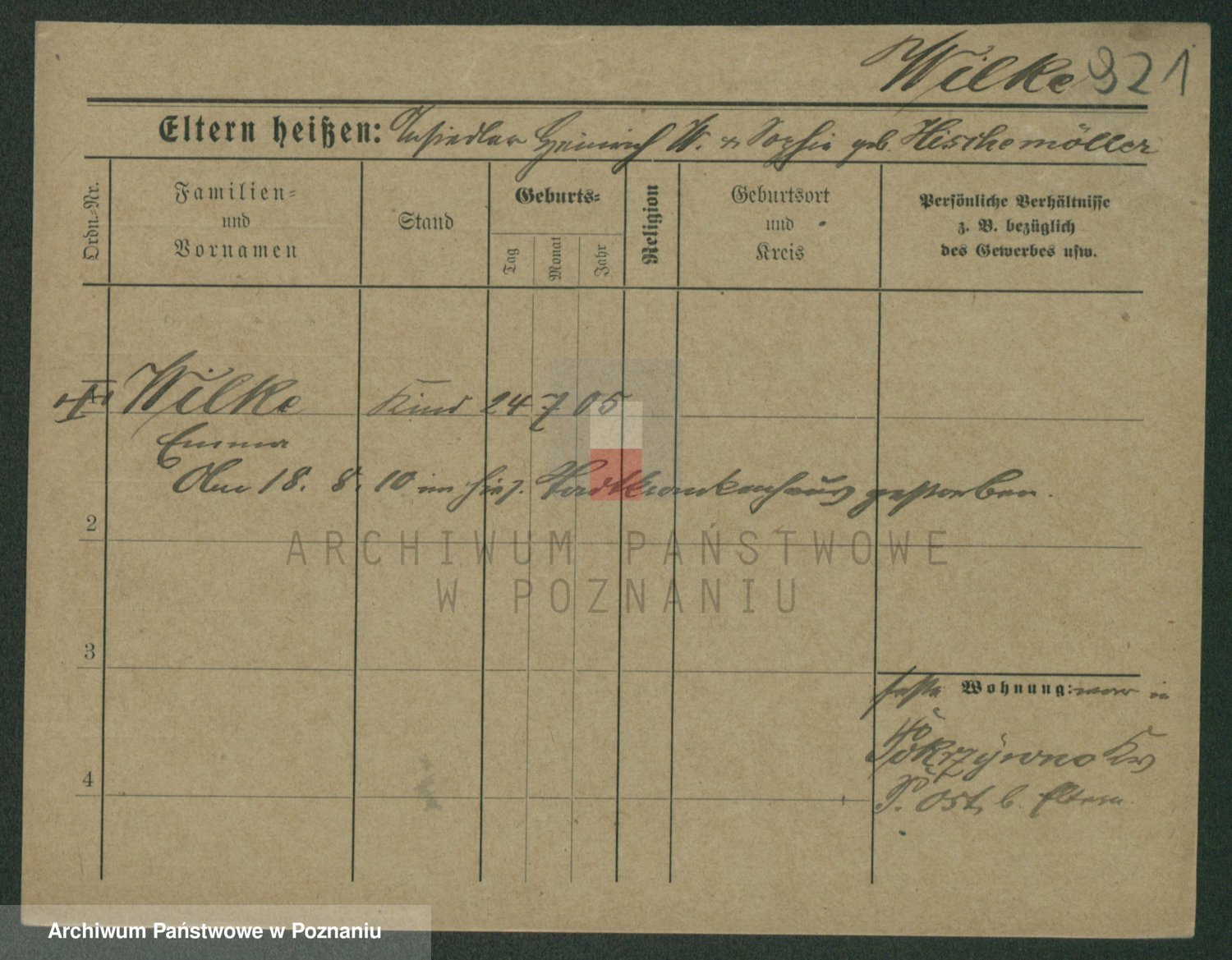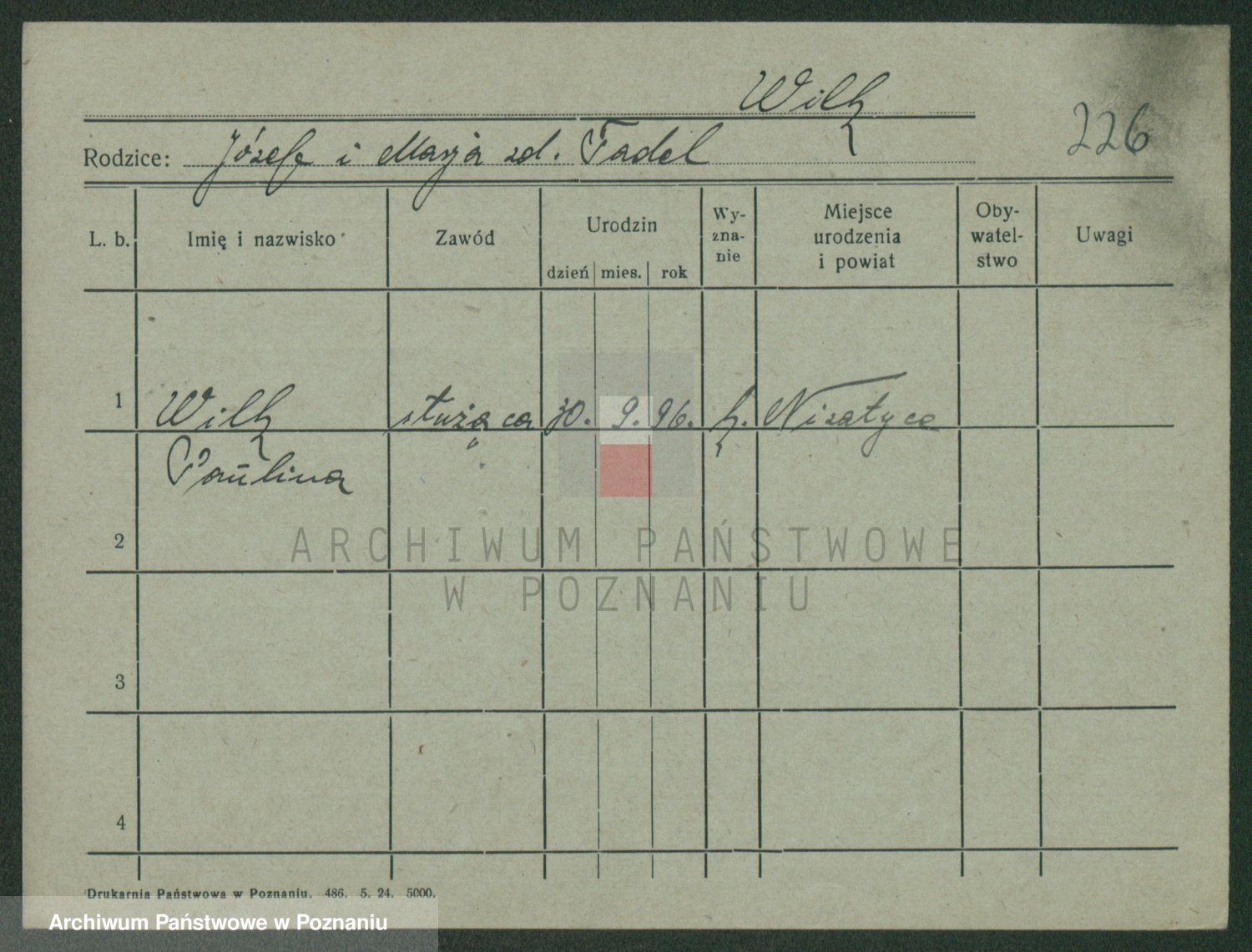 Wilke (albo Wilks) później zam. Tyczynski, Marianna