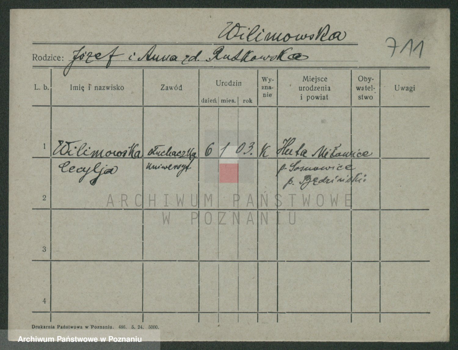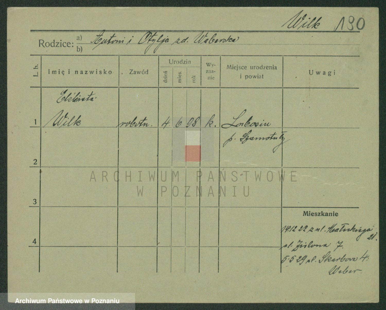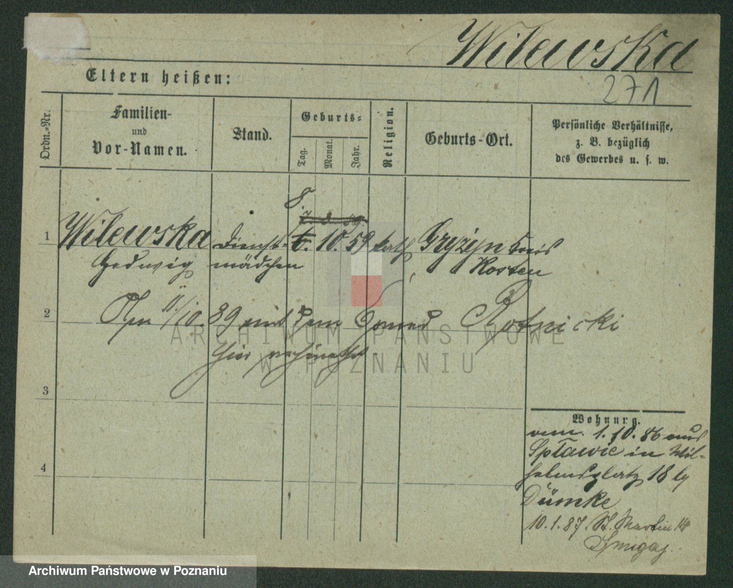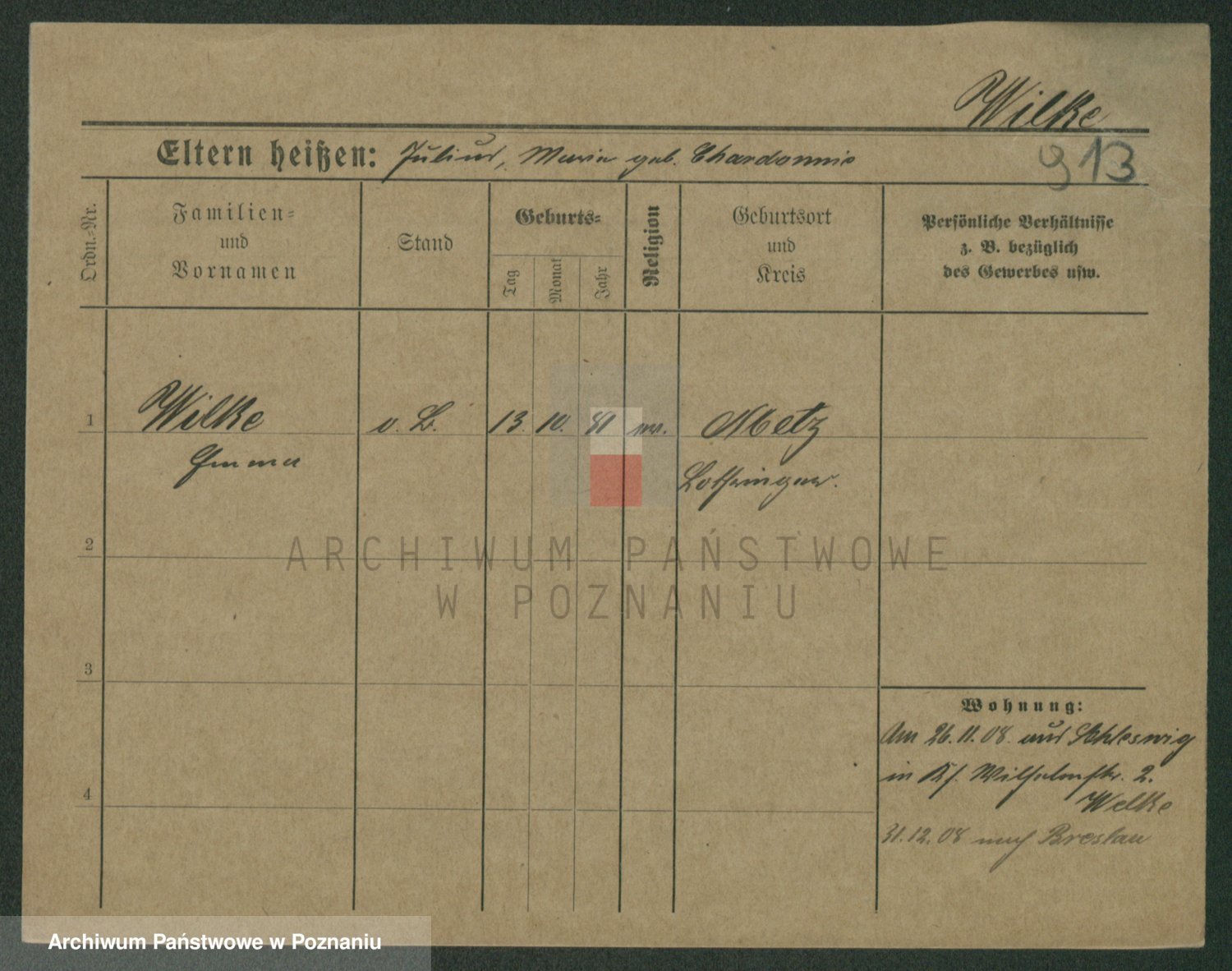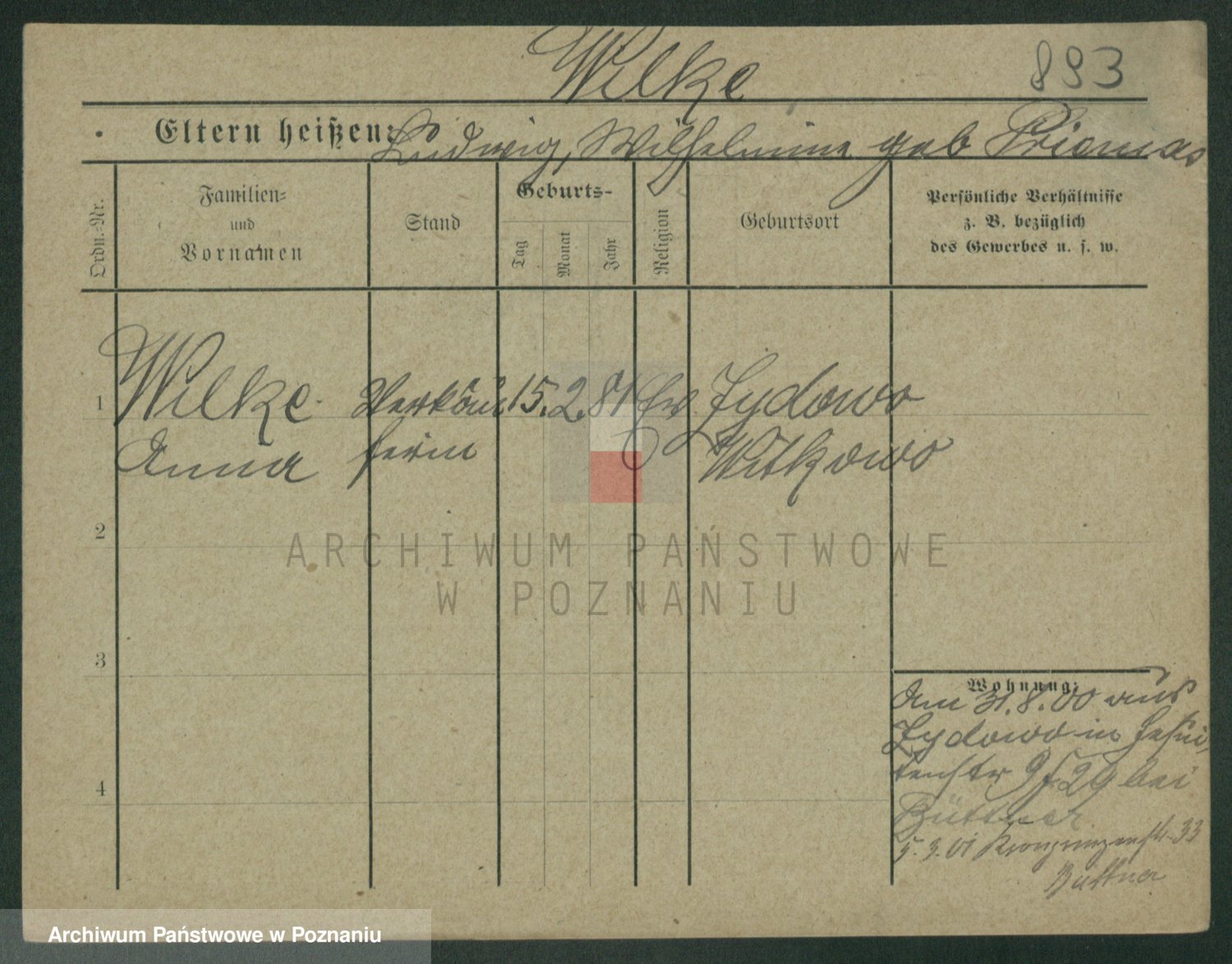 Wilke (albo Wilks) później zam. Tyczynski, Marianna