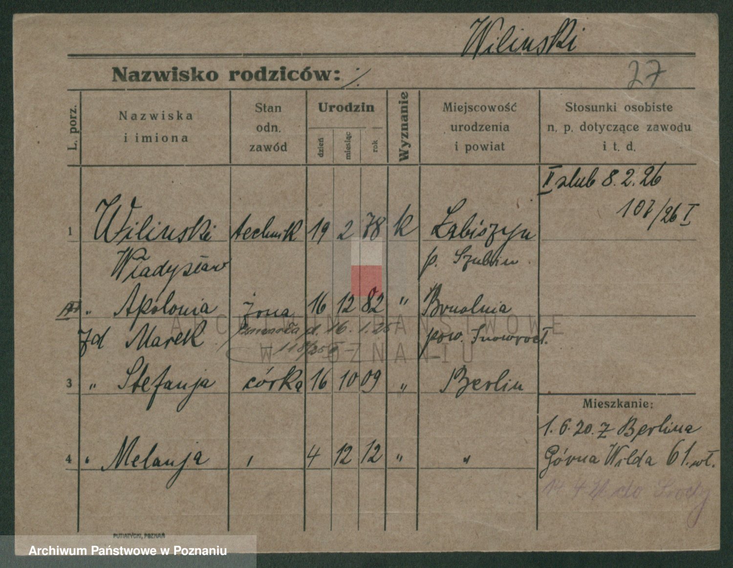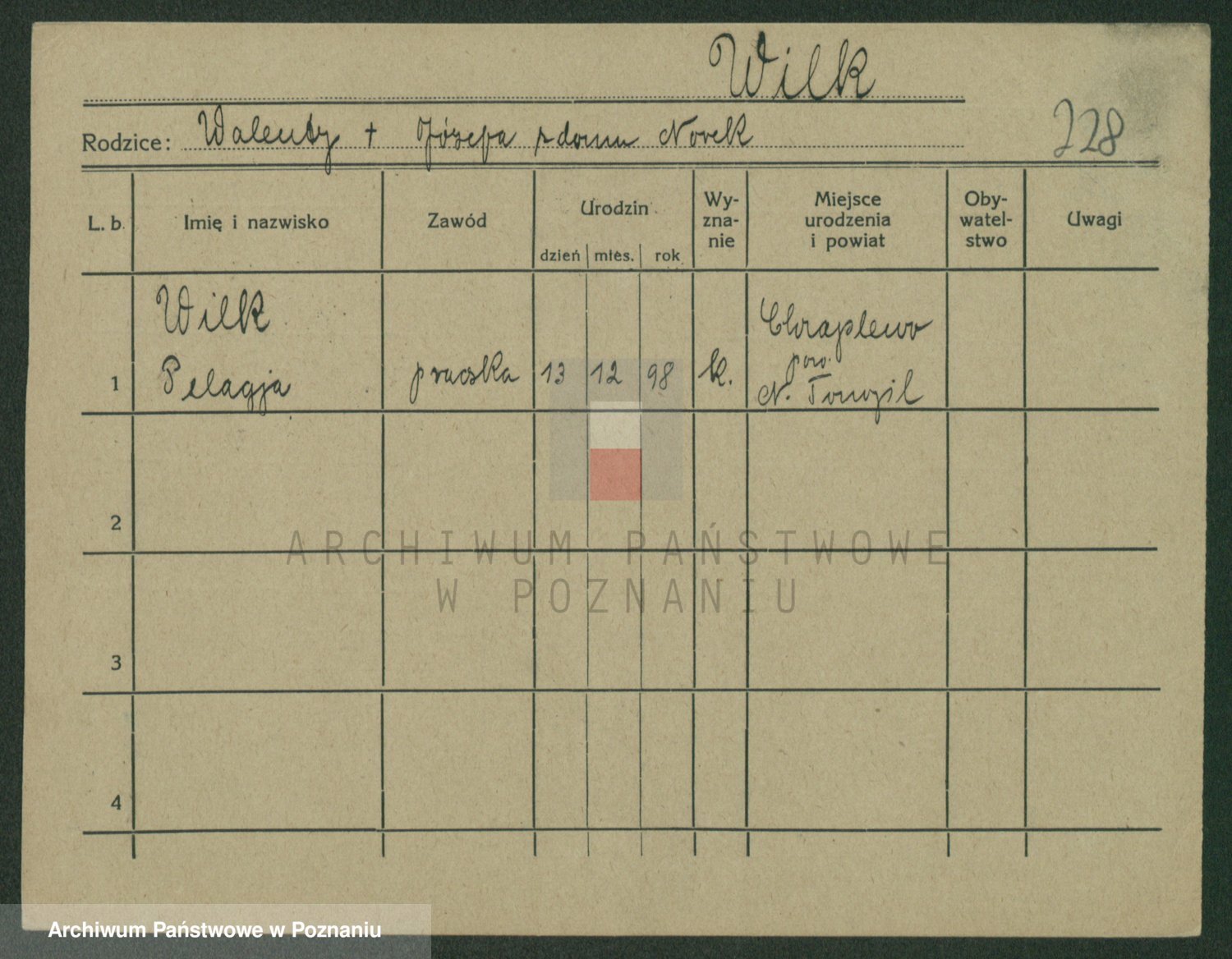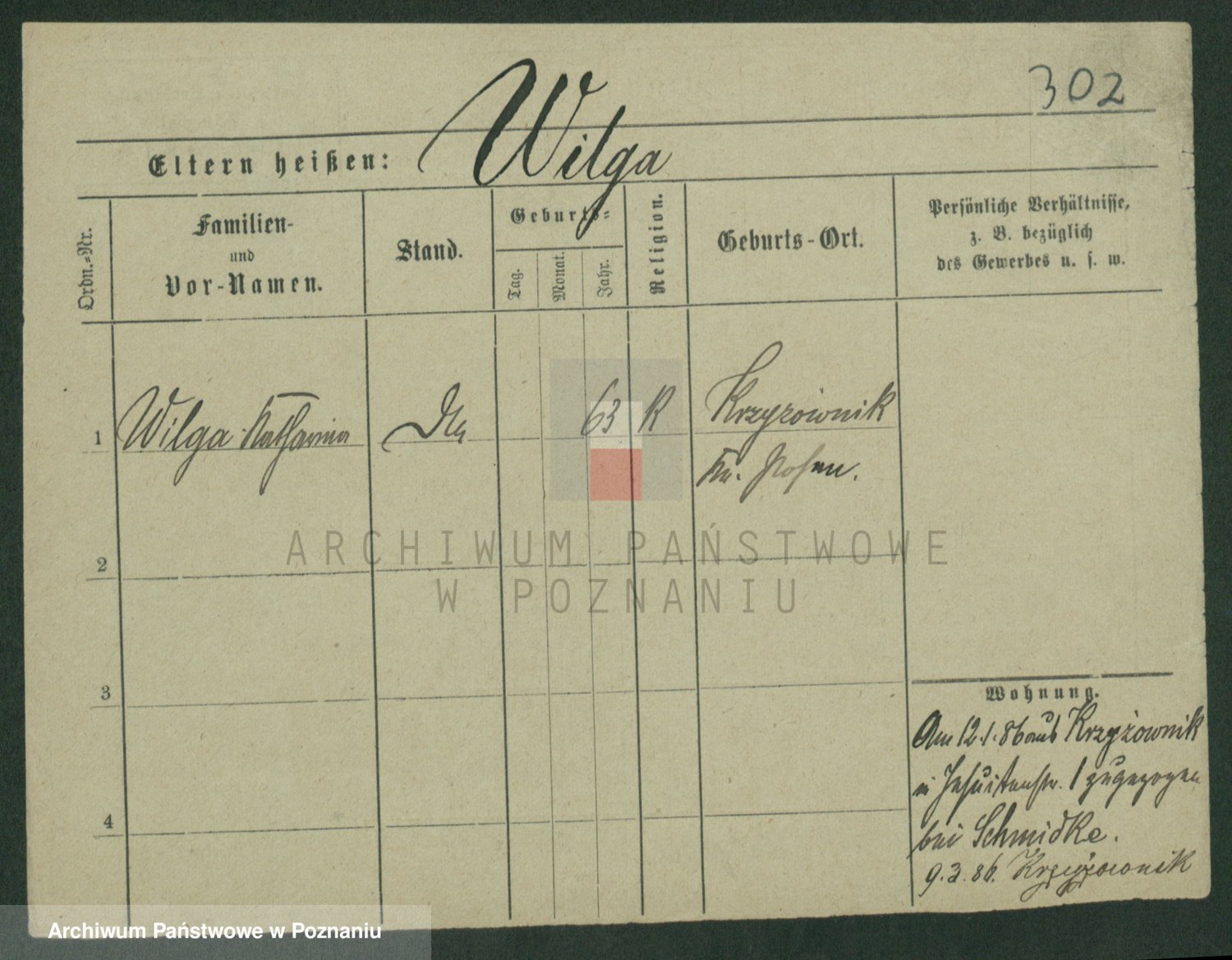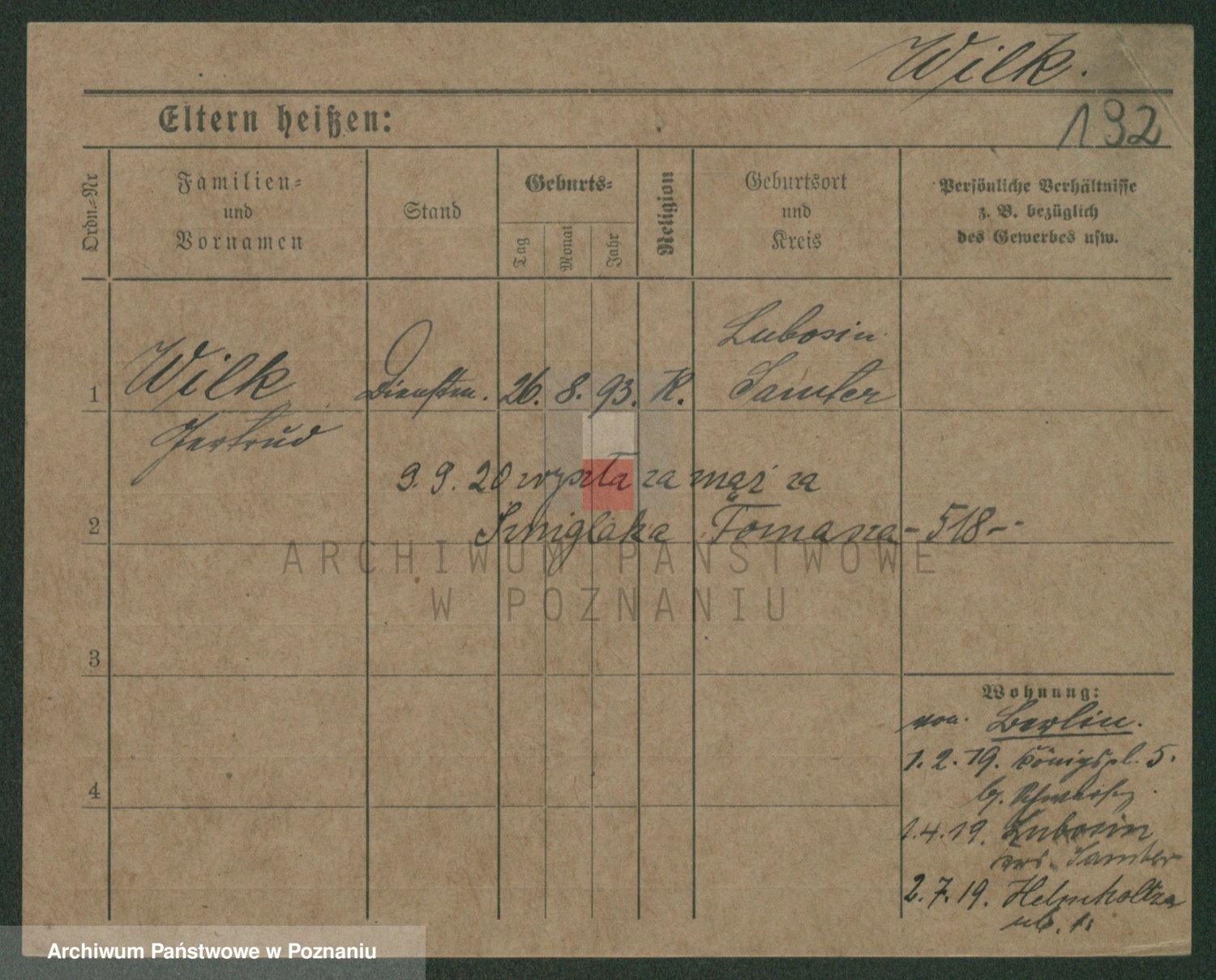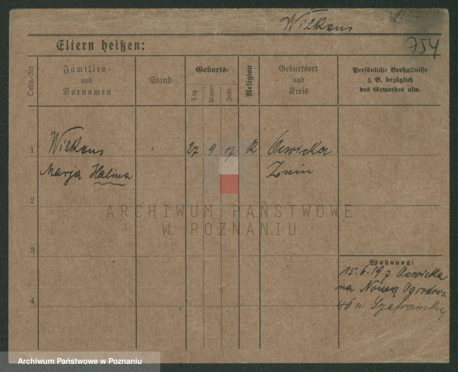 Wilke (albo Wilks) później zam. Tyczynski, Marianna