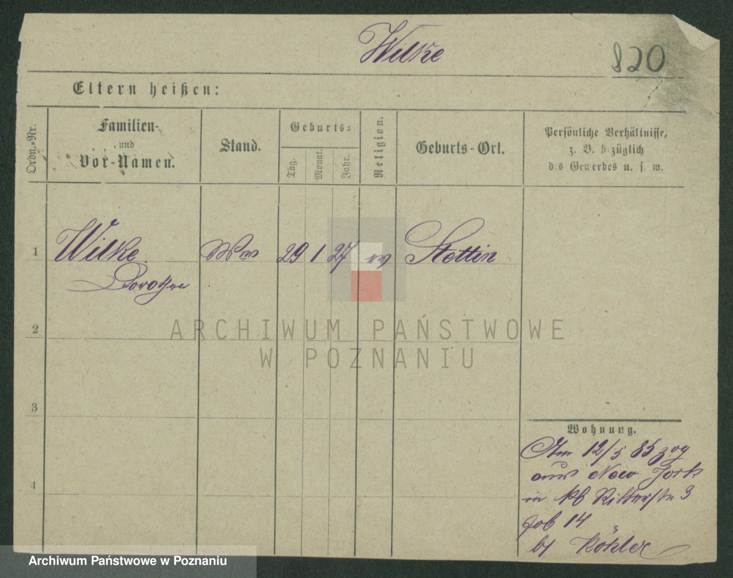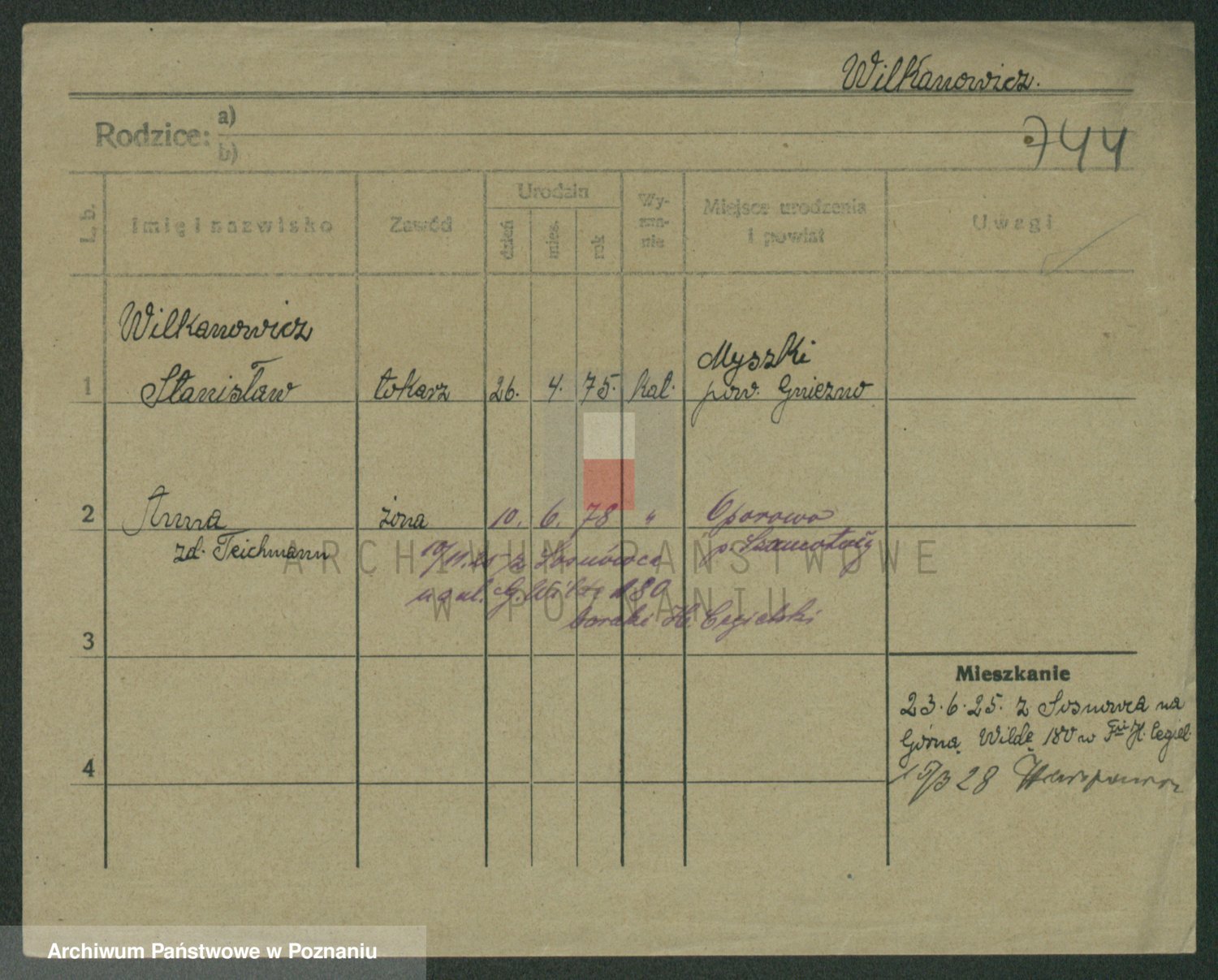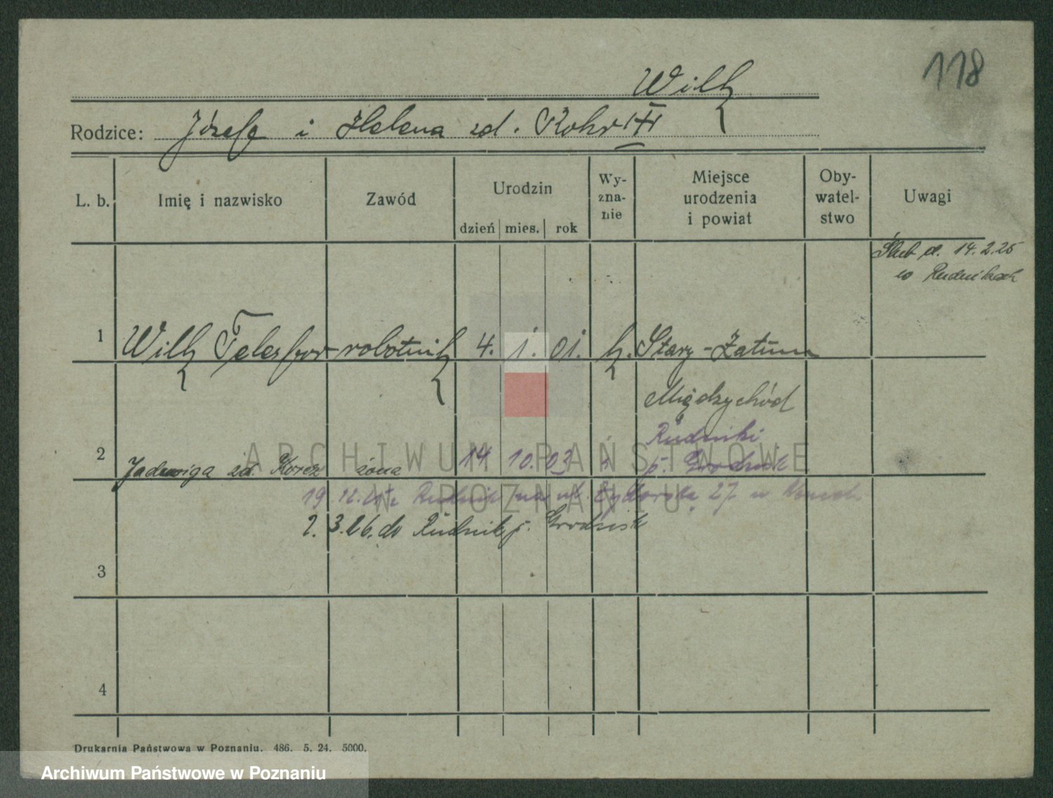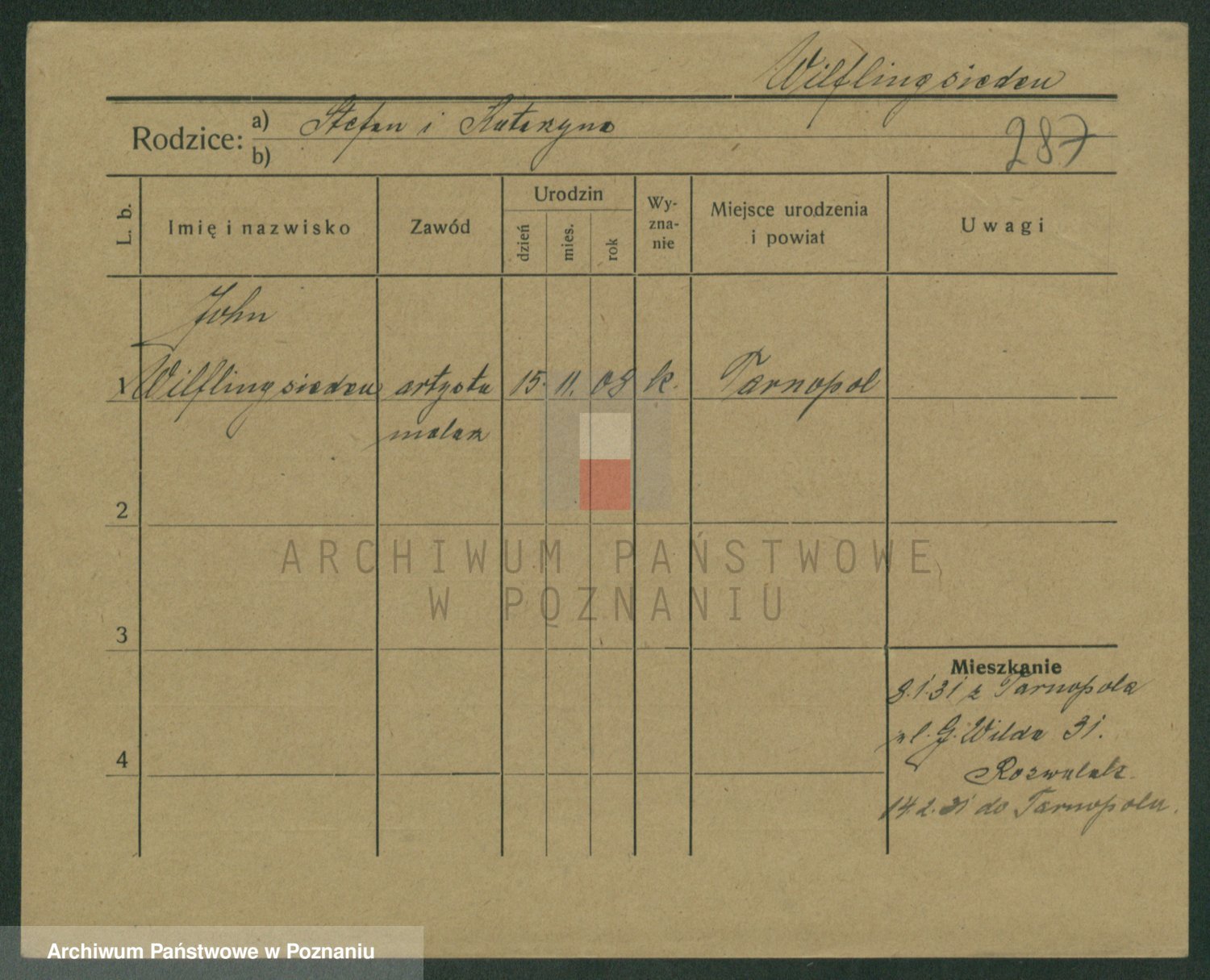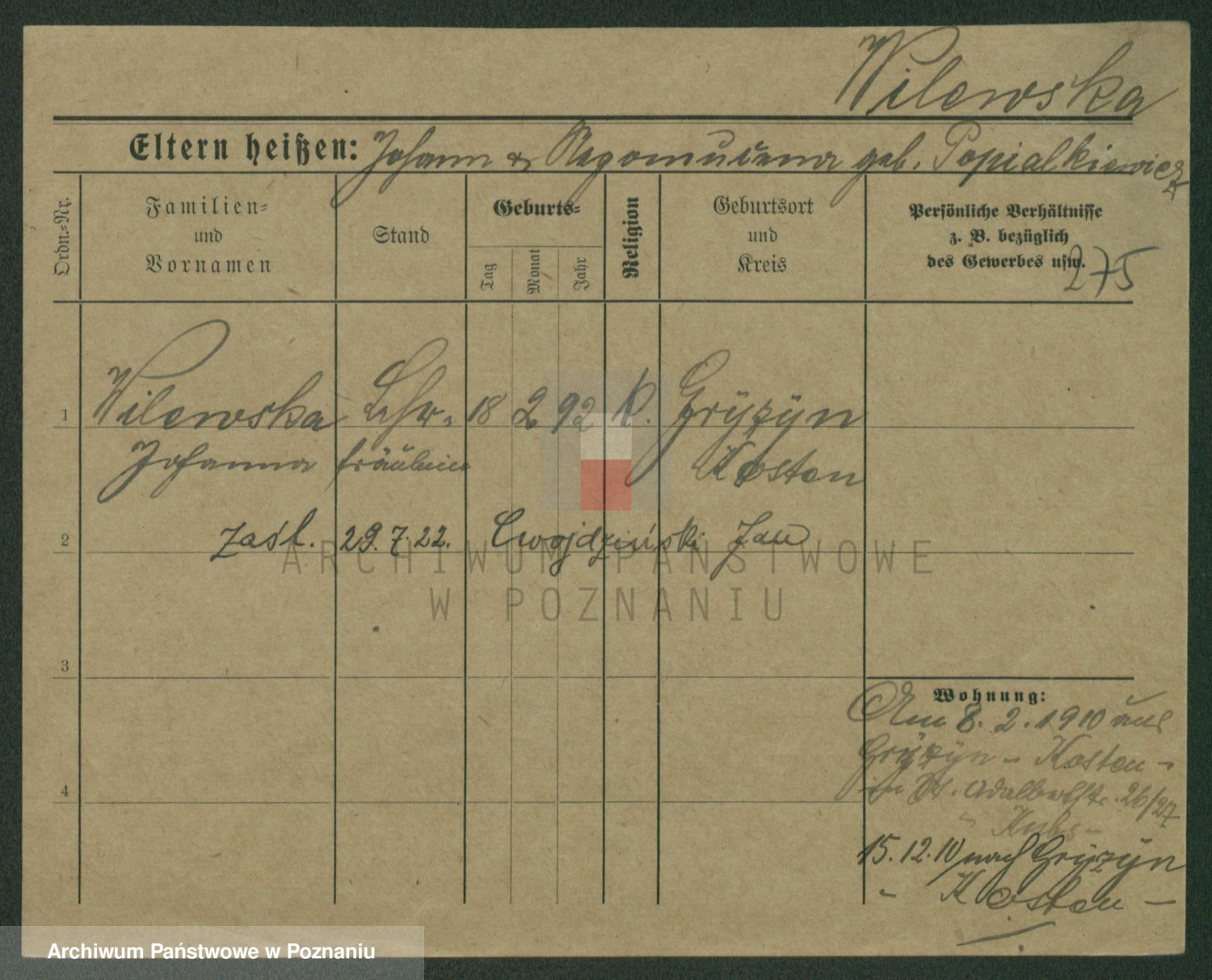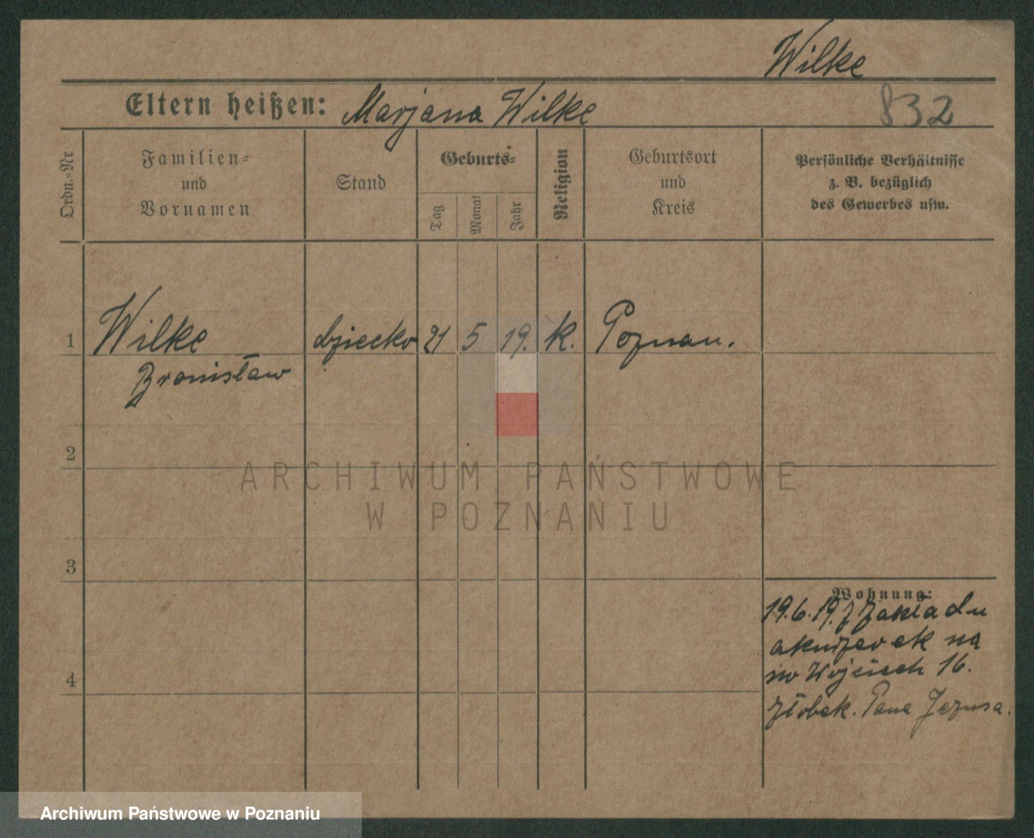 Wilke (albo Wilks) później zam. Tyczynski, Marianna