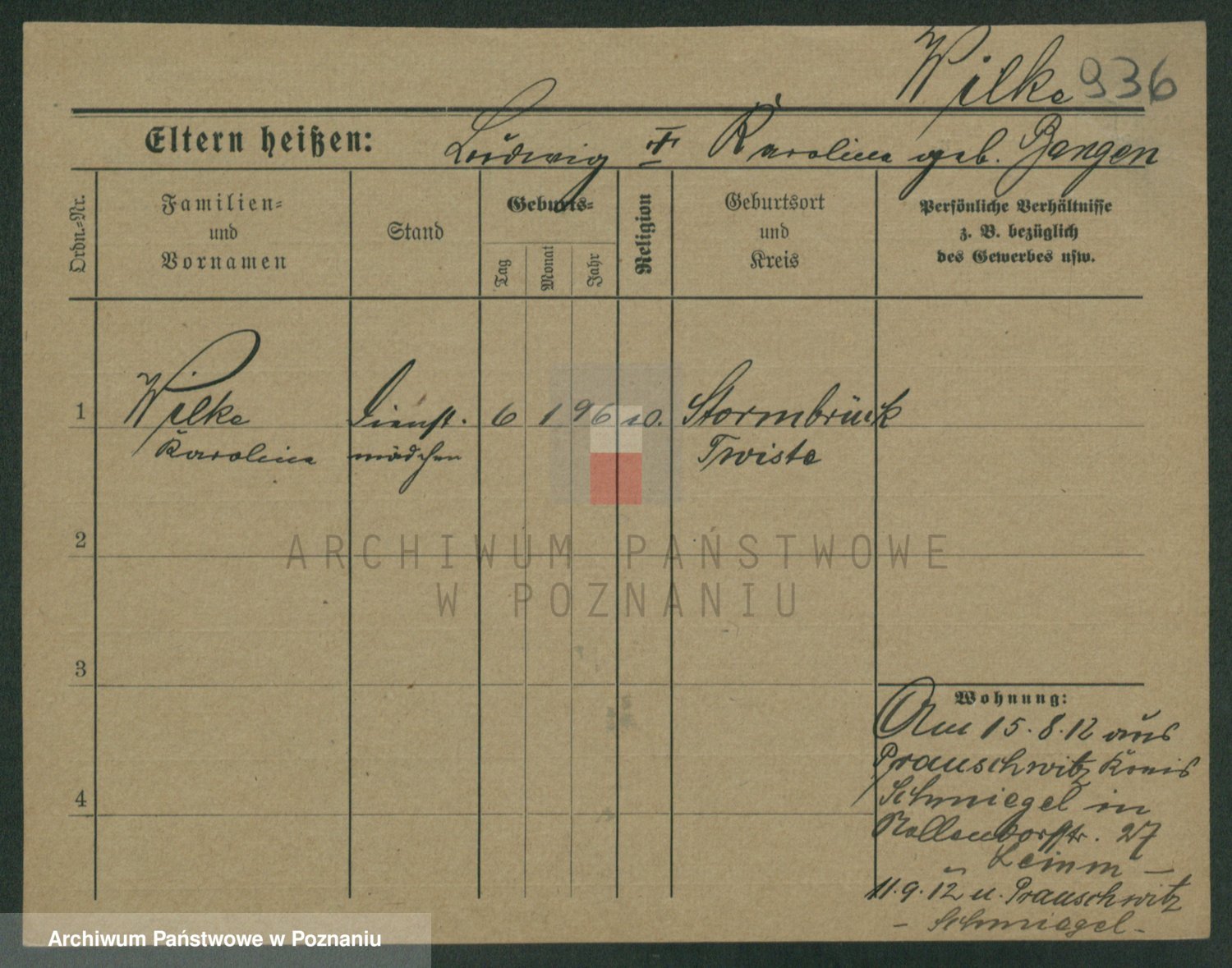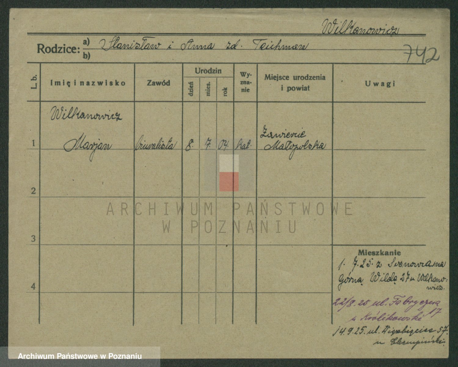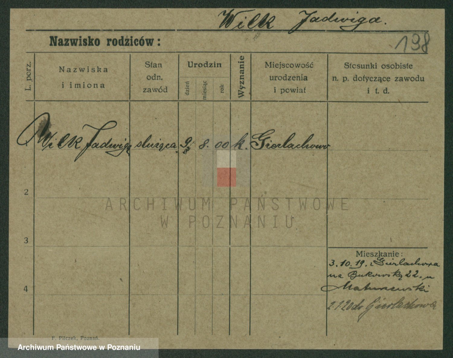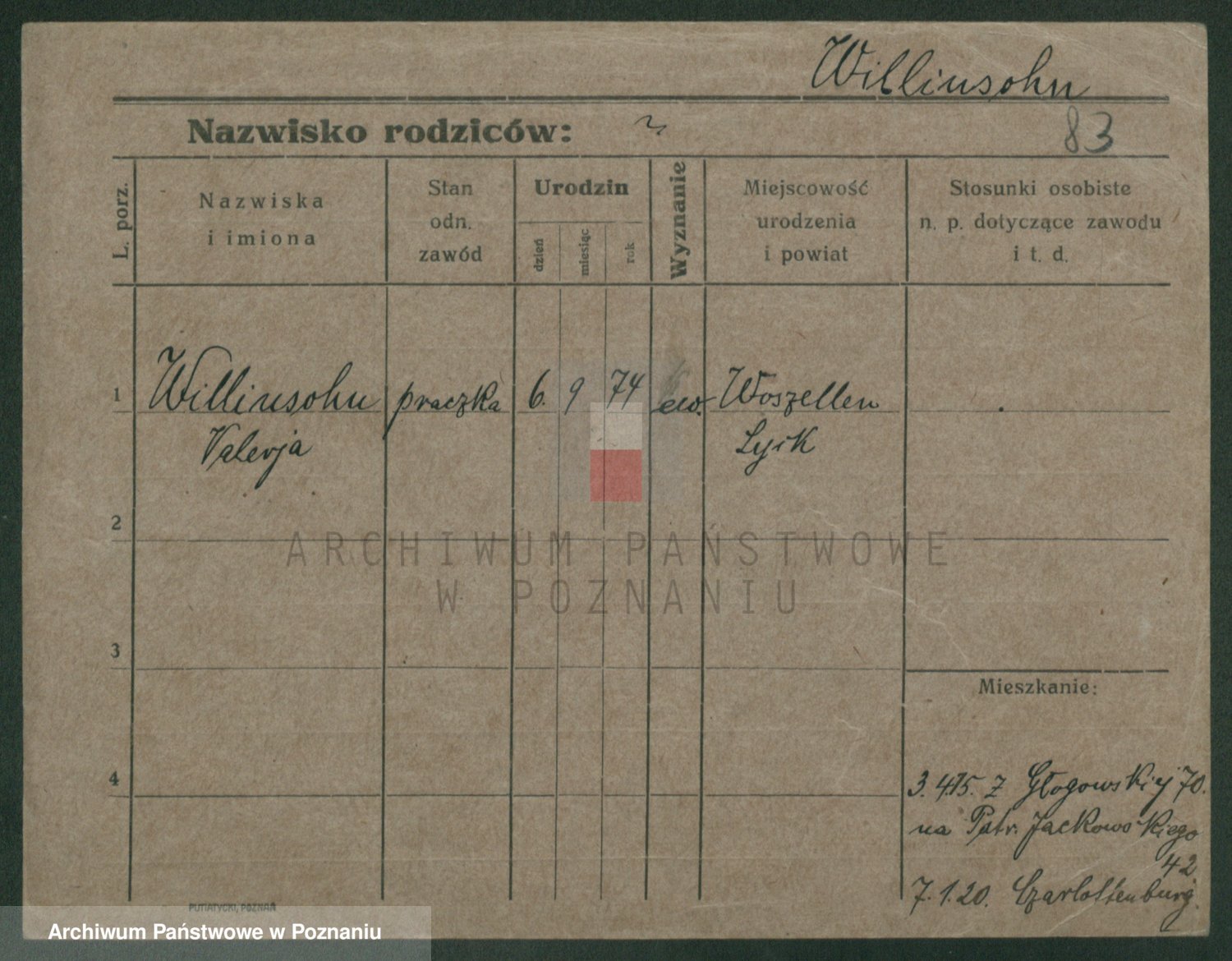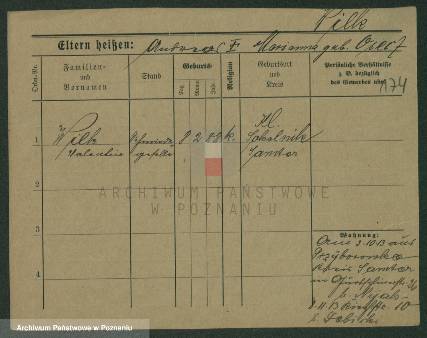 Wilke (albo Wilks) później zam. Tyczynski, Marianna