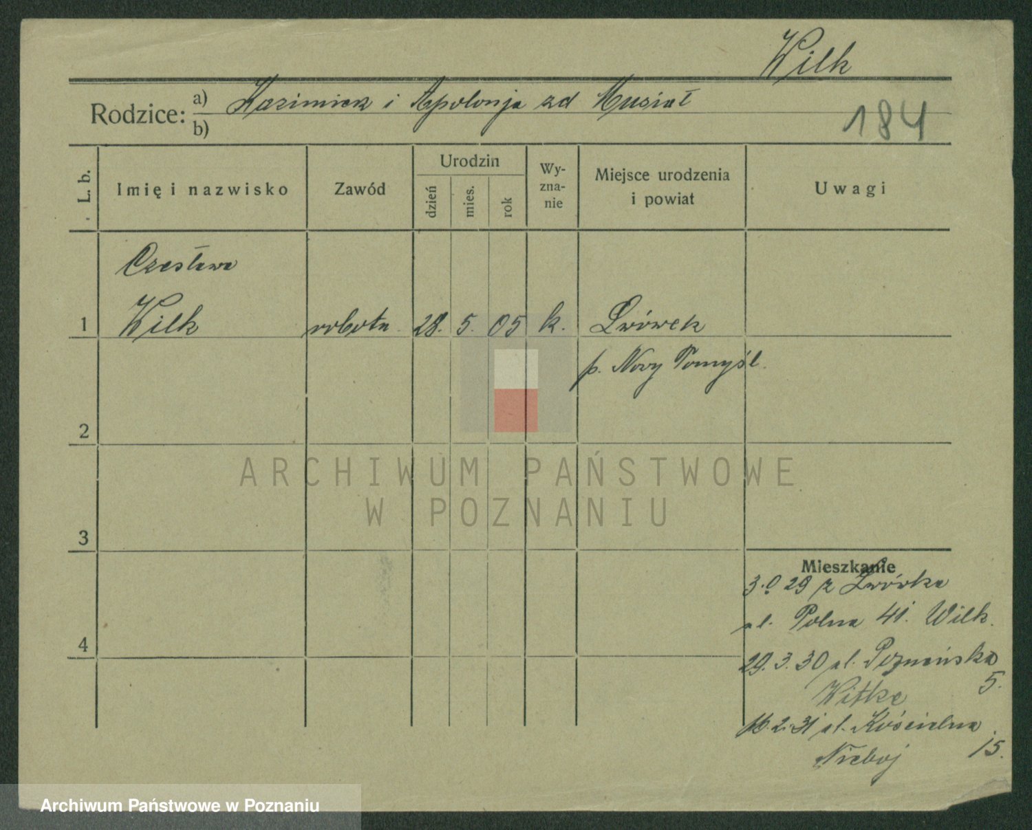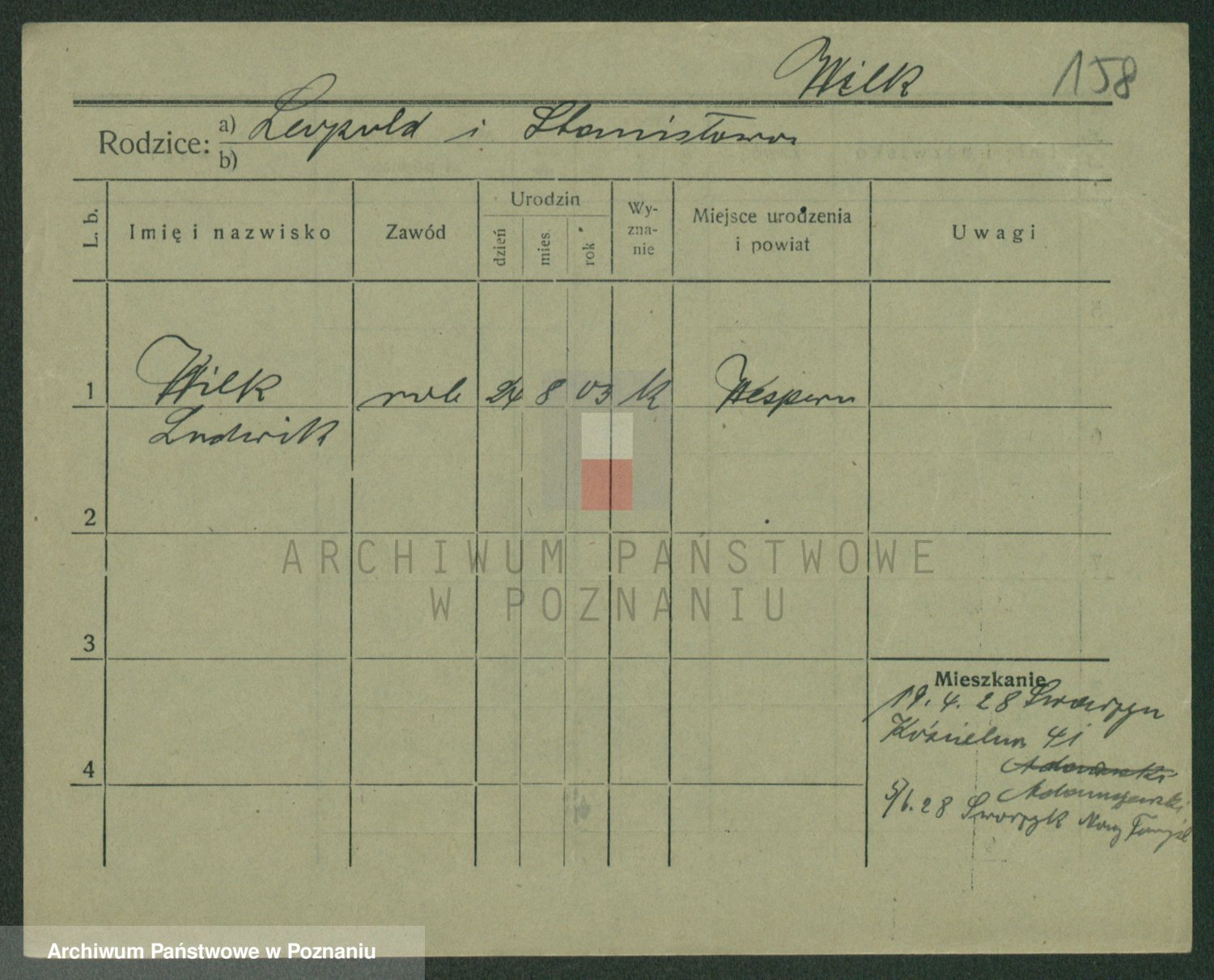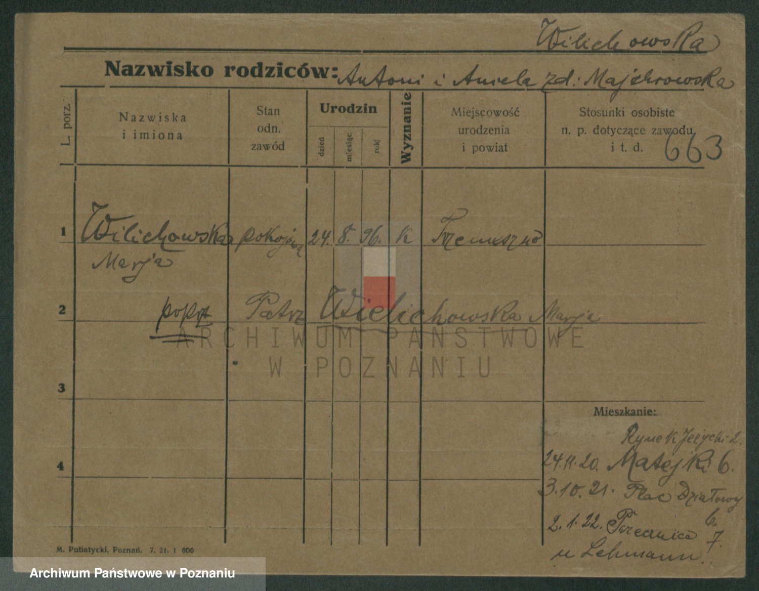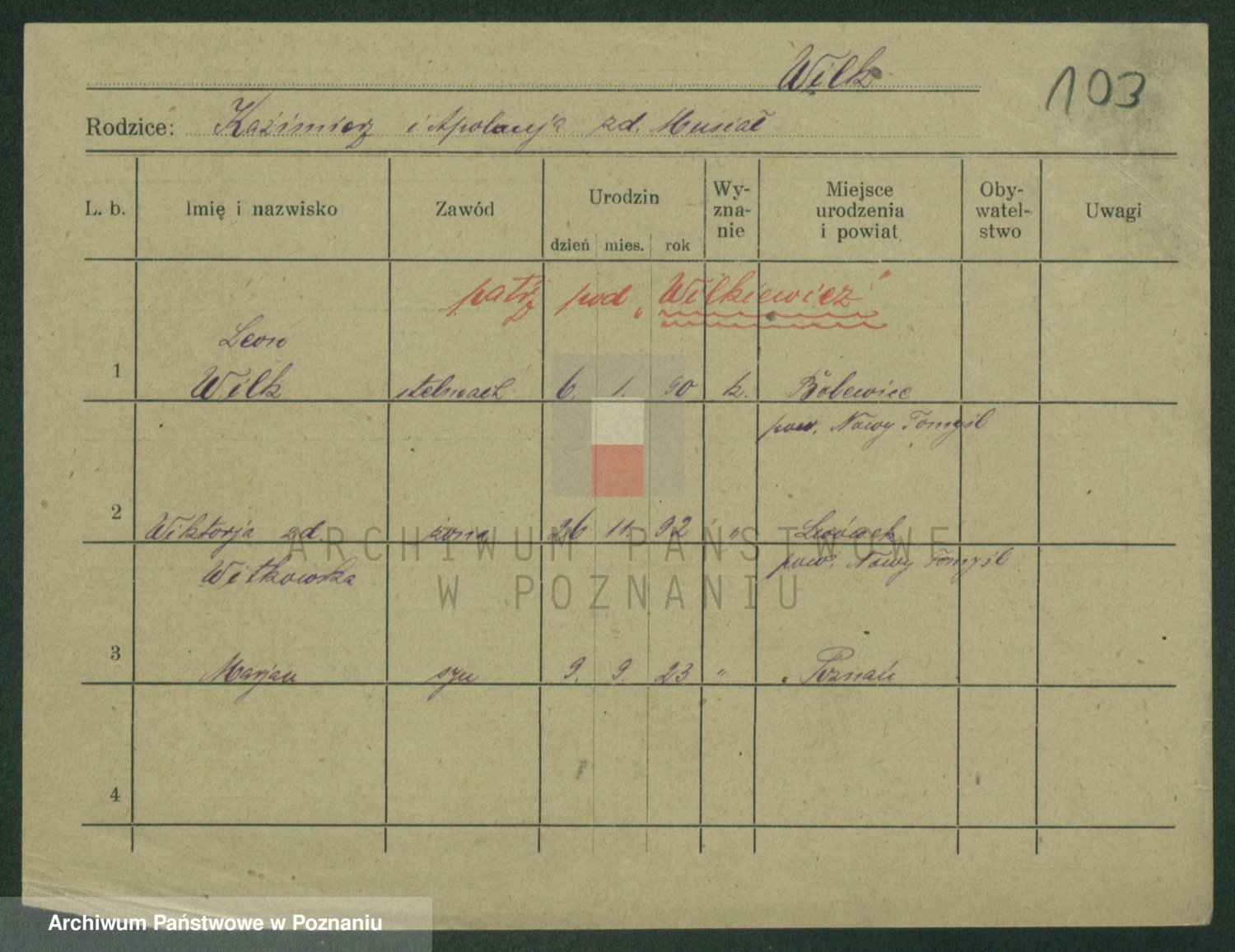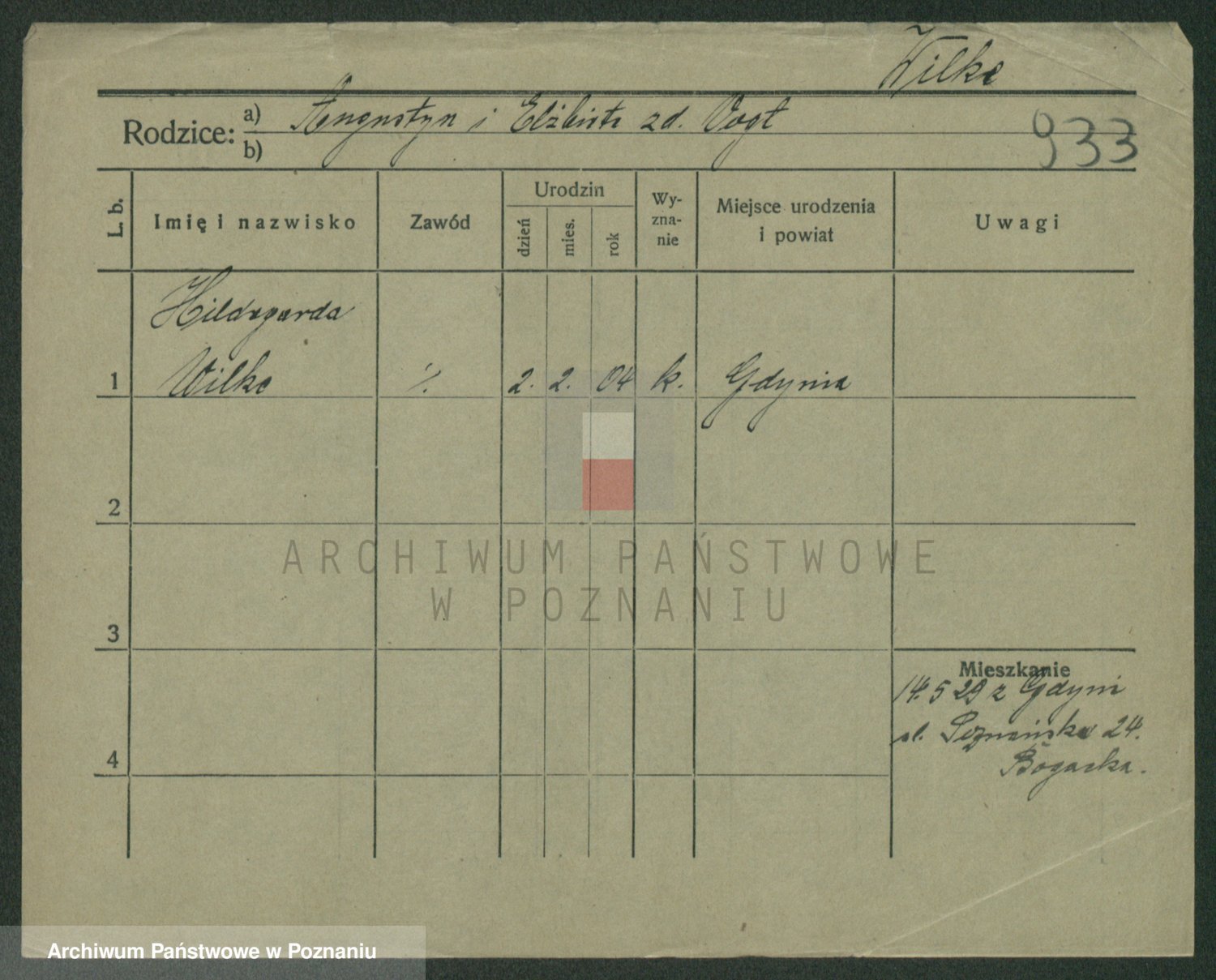 Wilke (albo Wilks) później zam. Tyczynski, Marianna