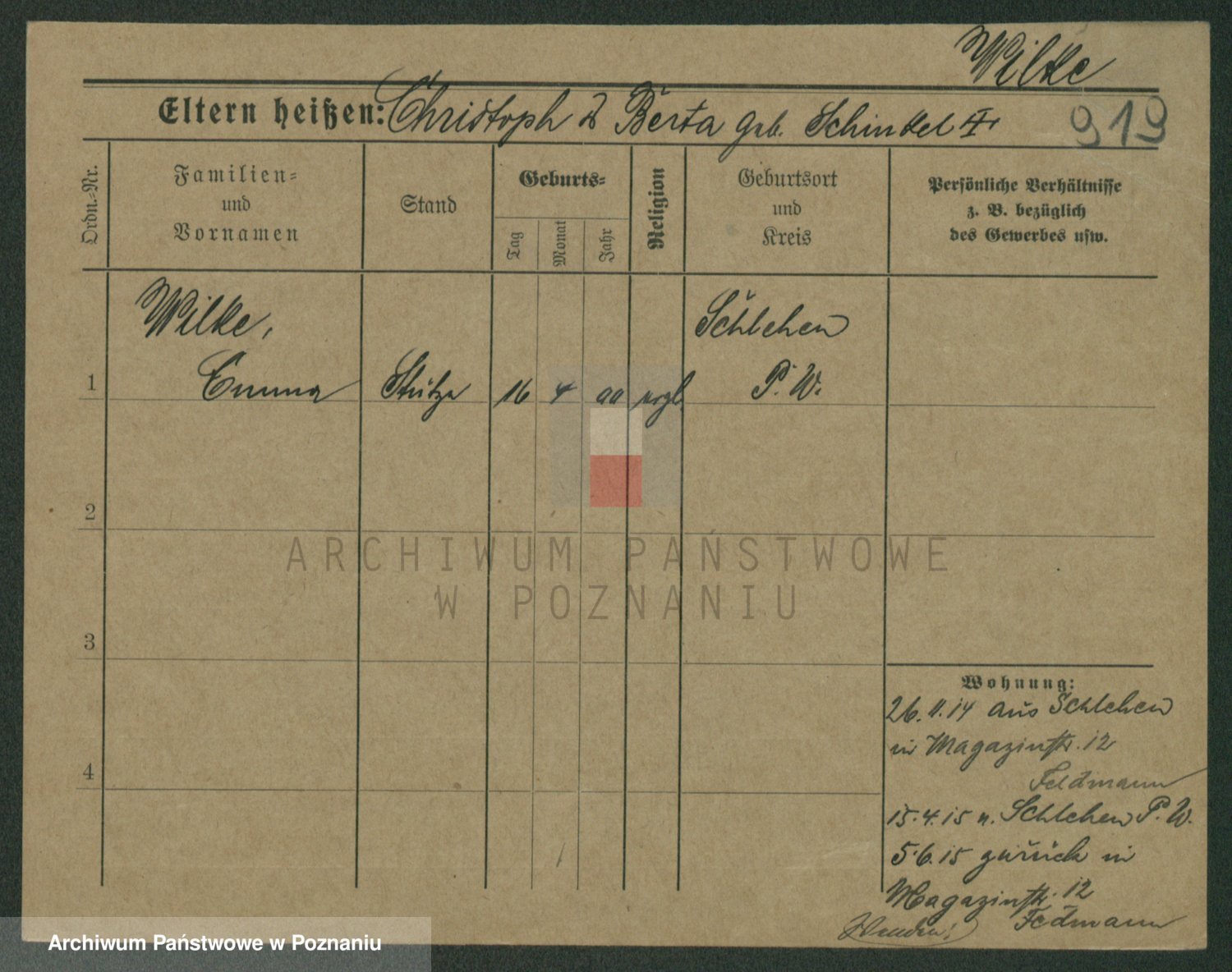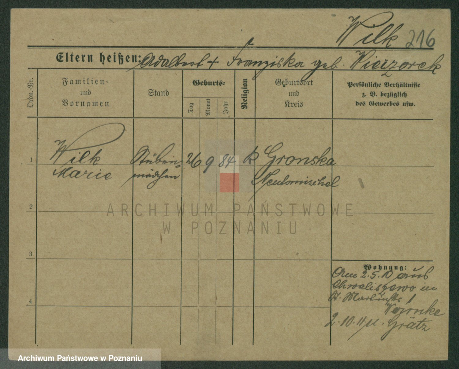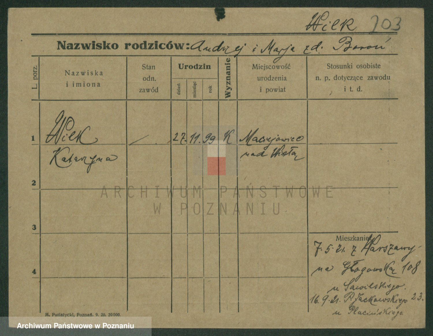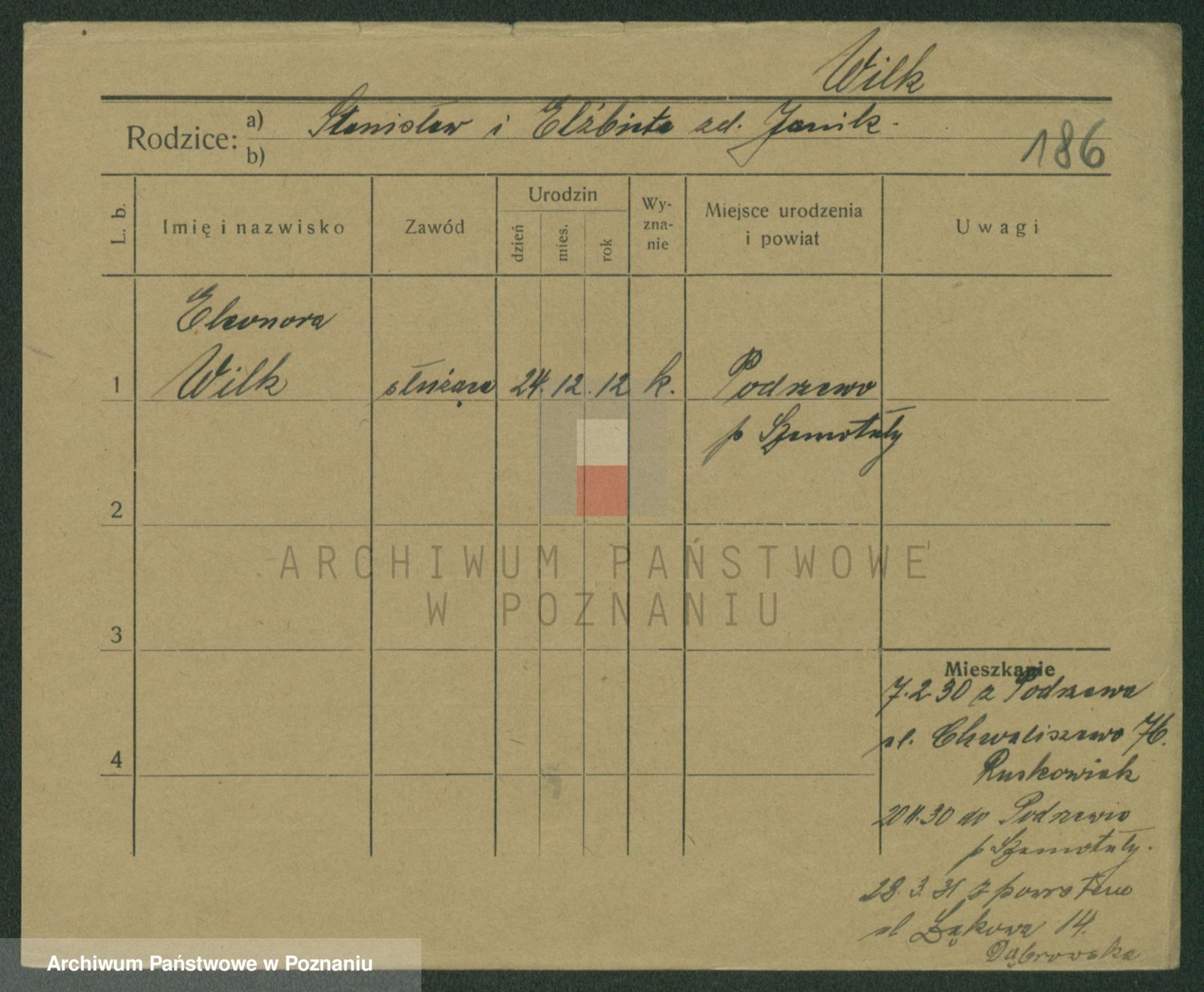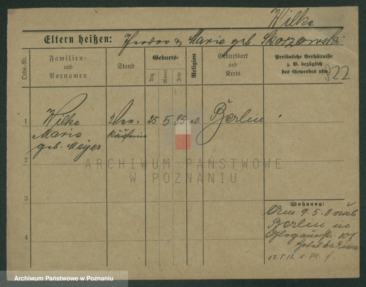 Wilke (albo Wilks) później zam. Tyczynski, Marianna