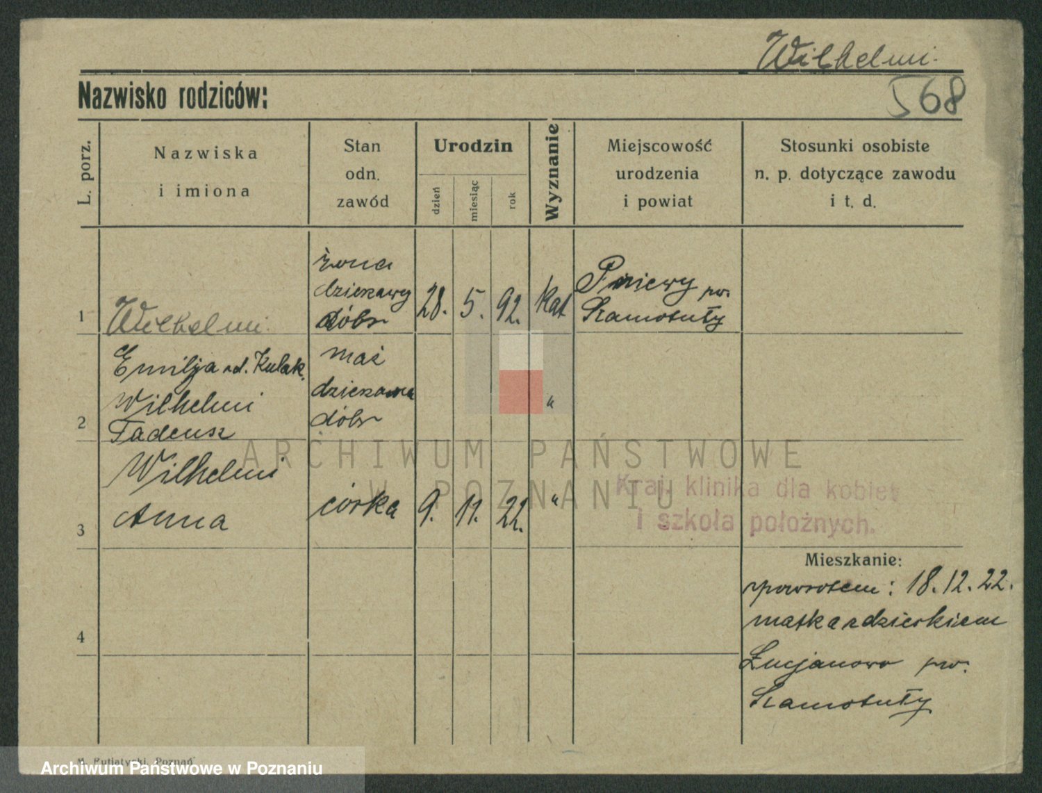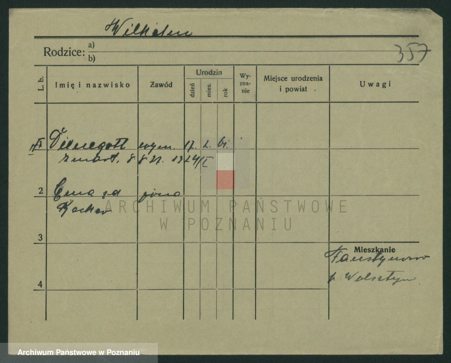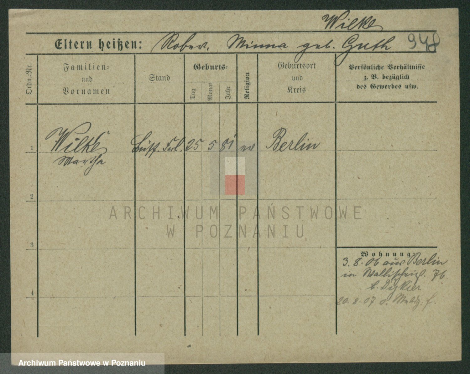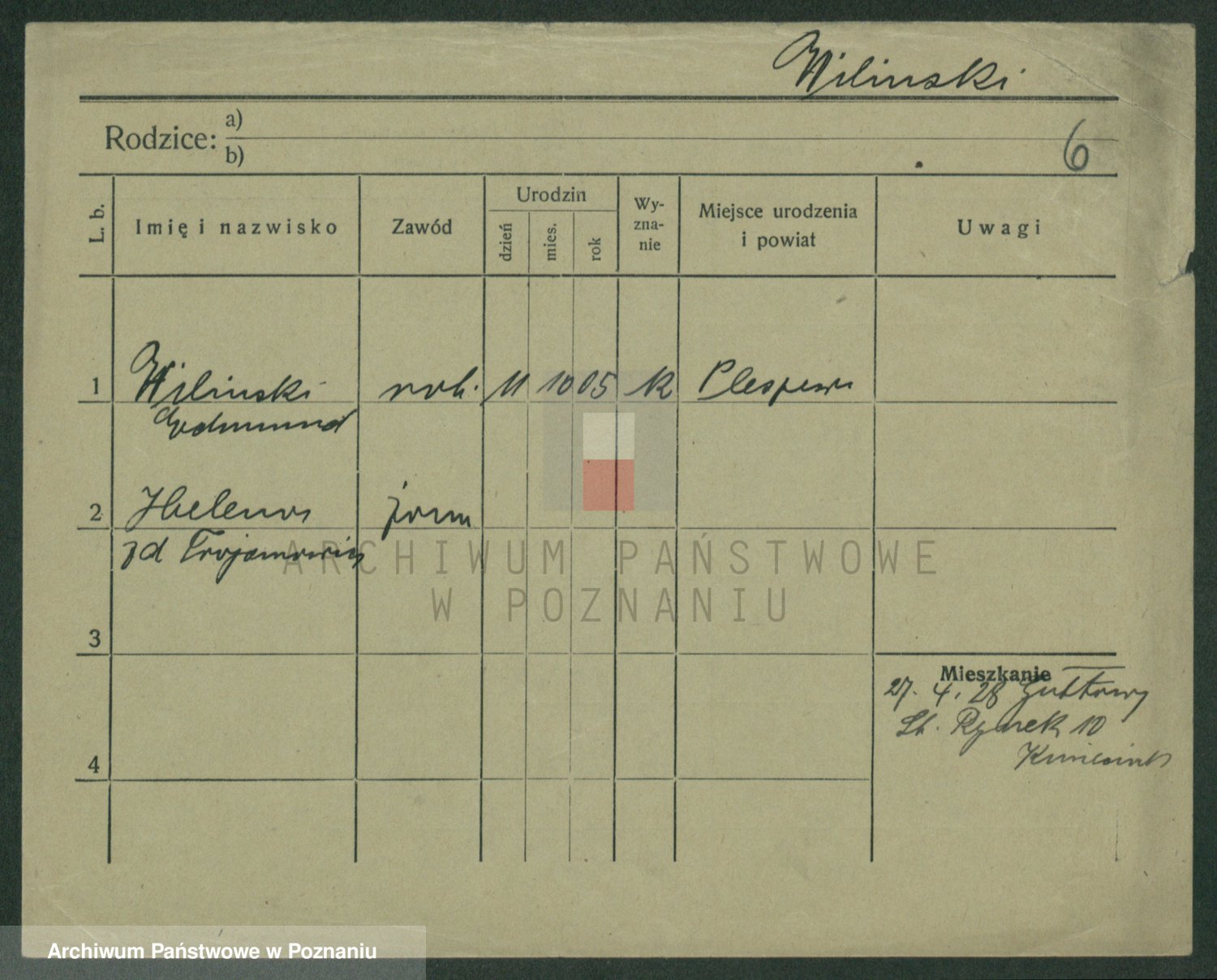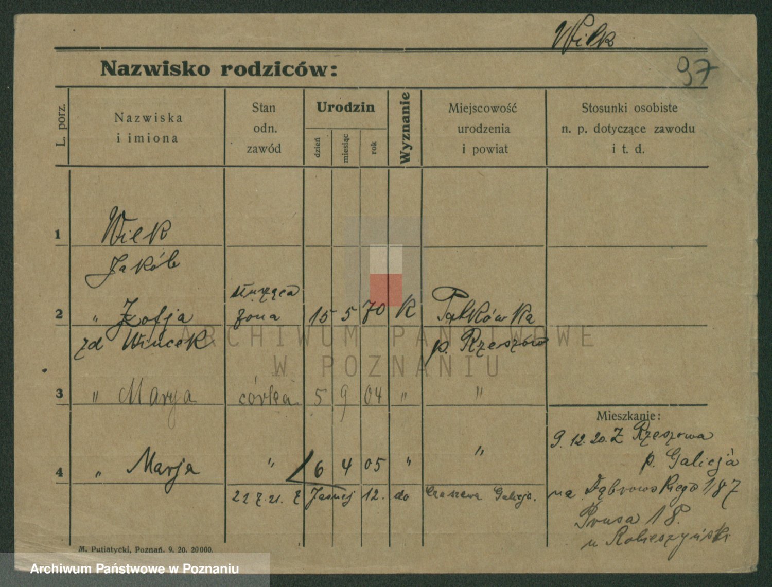 Wilke (albo Wilks) później zam. Tyczynski, Marianna