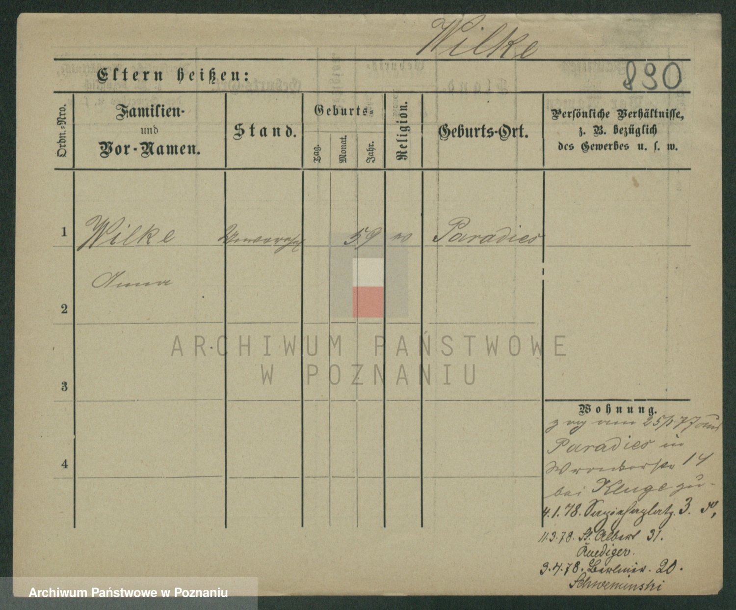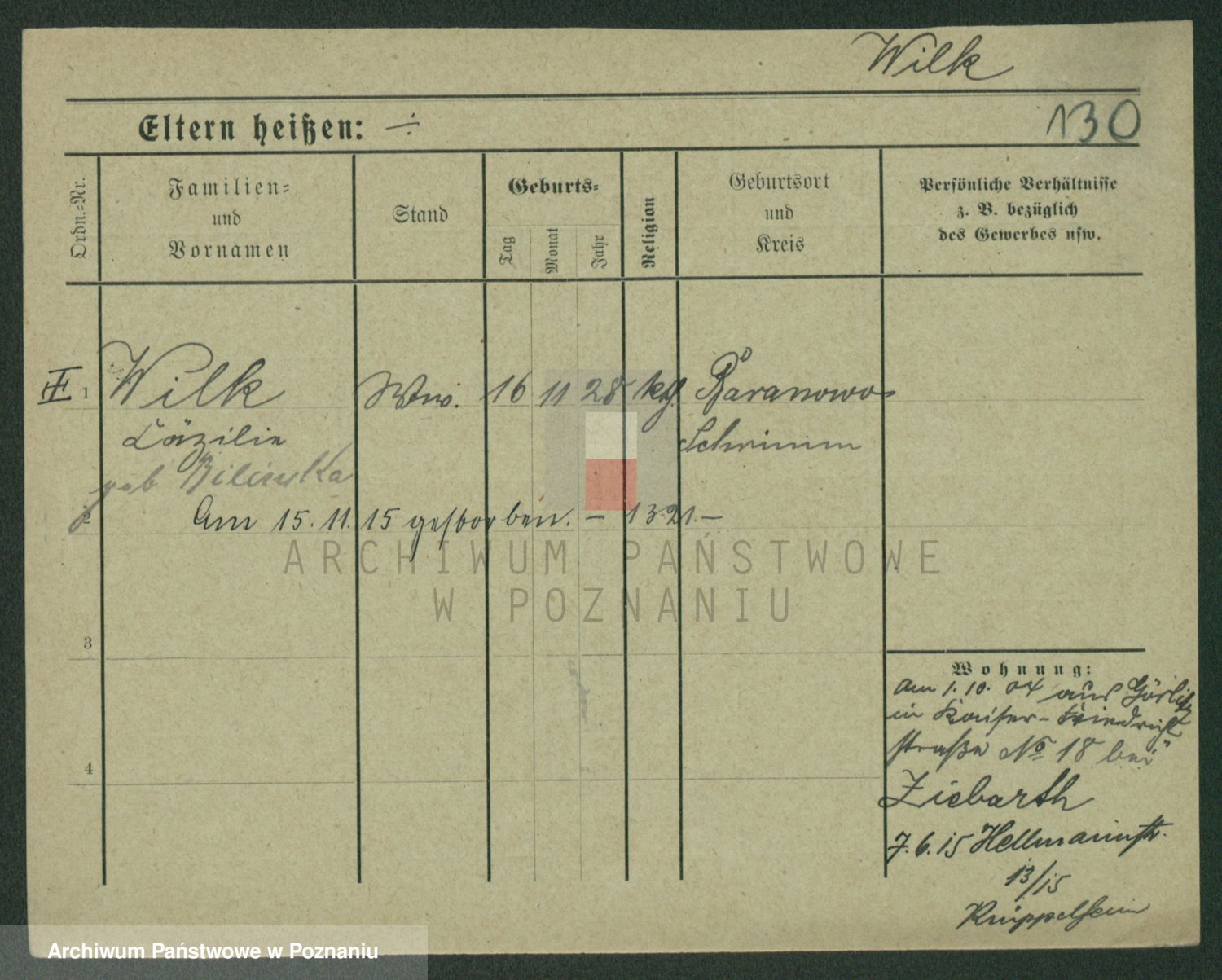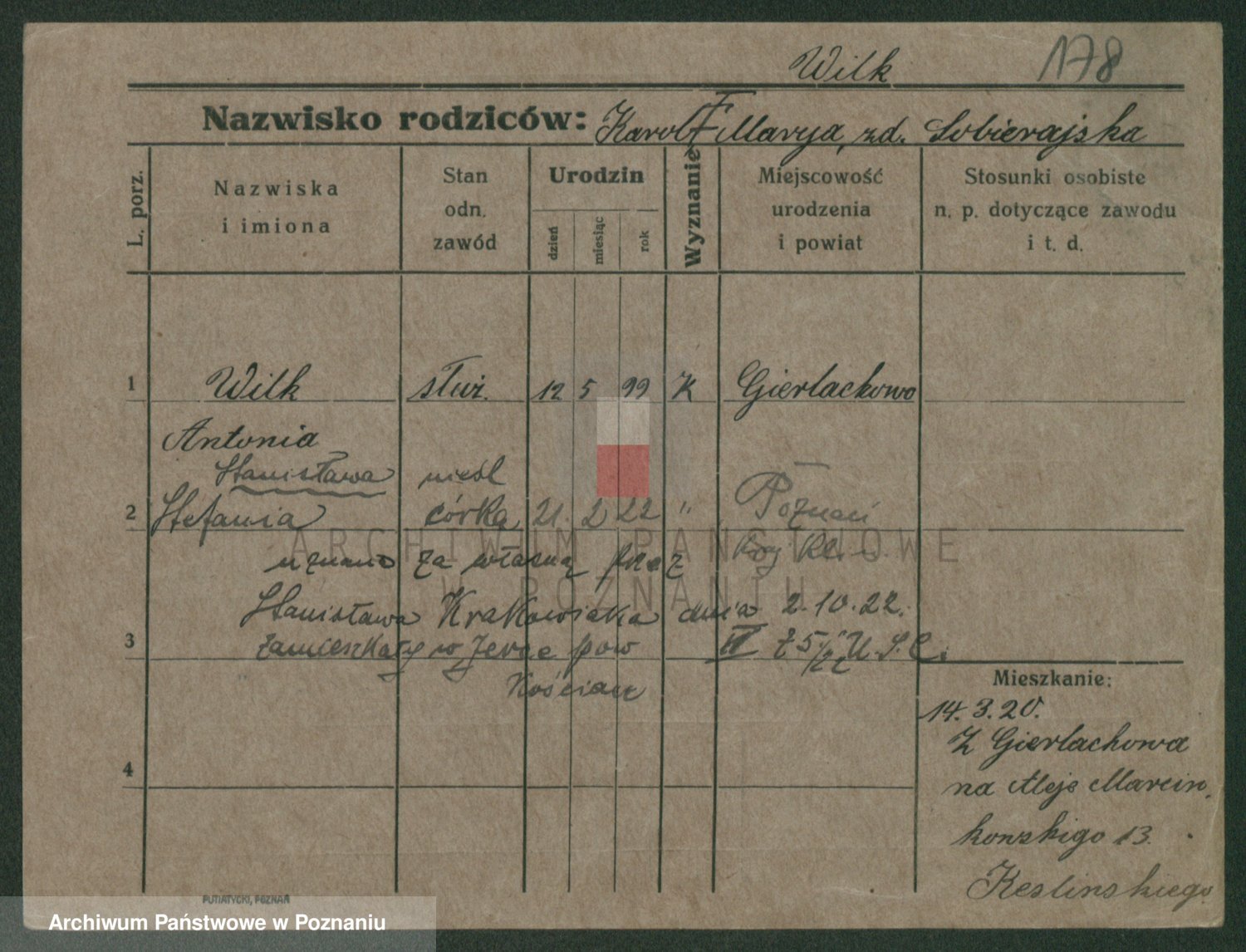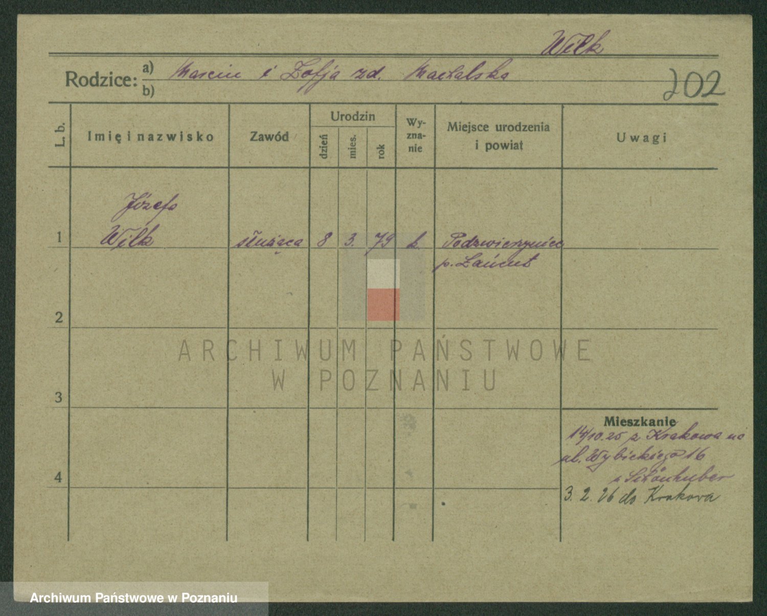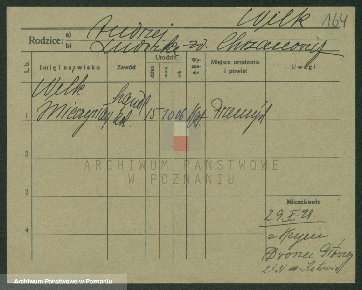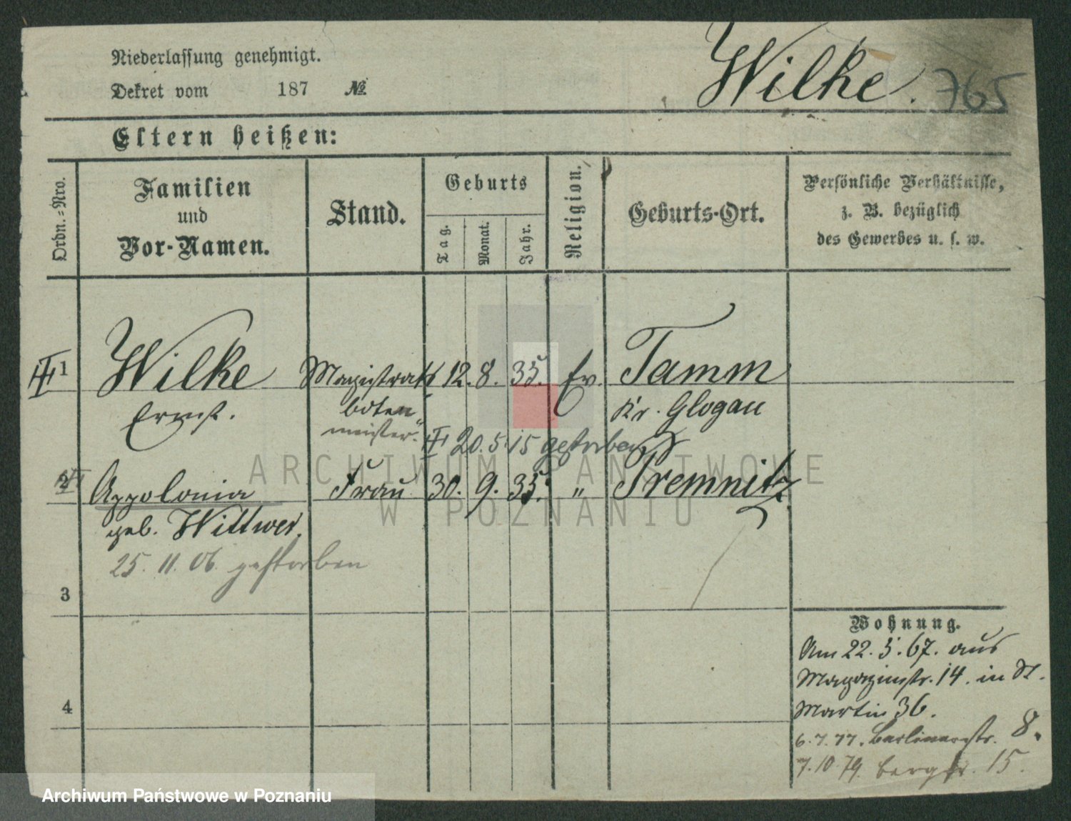 Wilke (albo Wilks) później zam. Tyczynski, Marianna