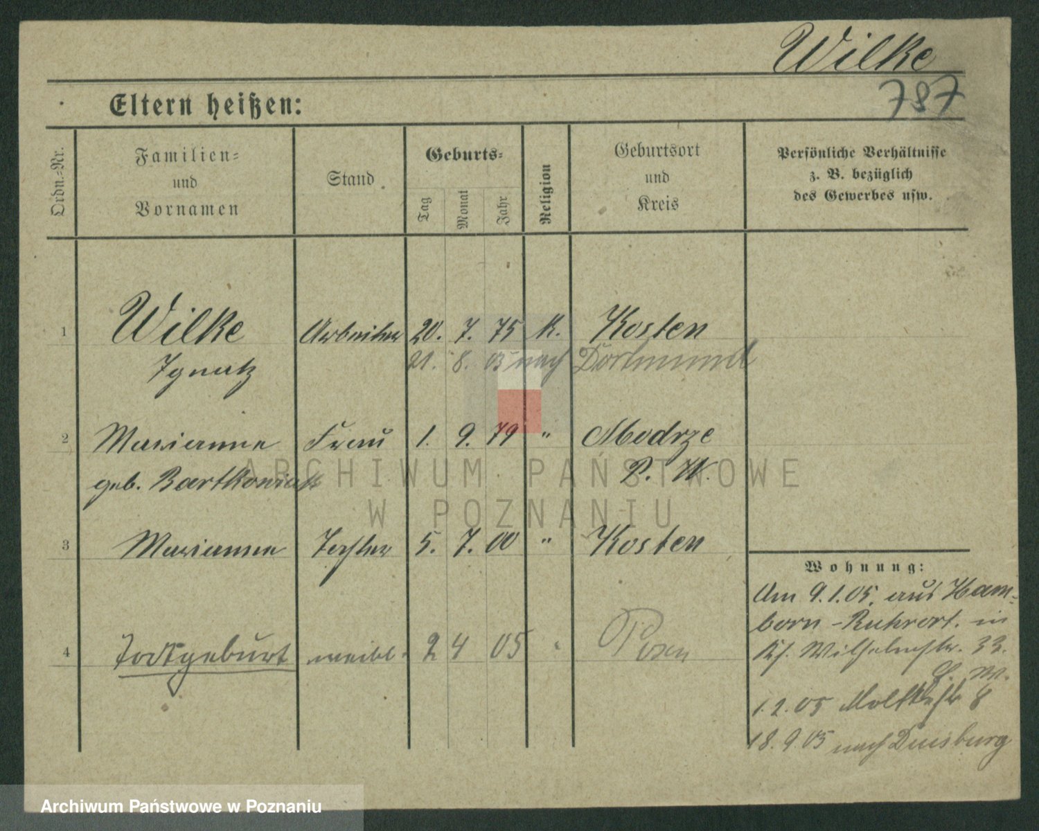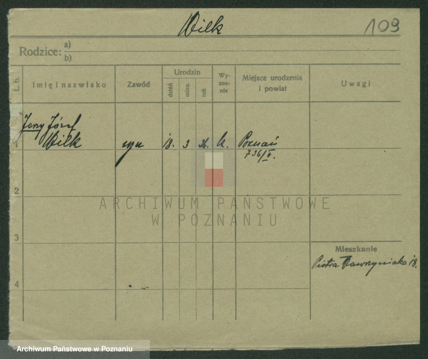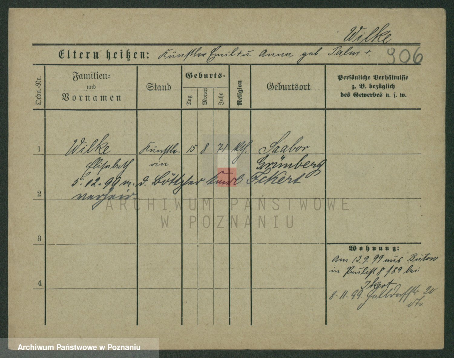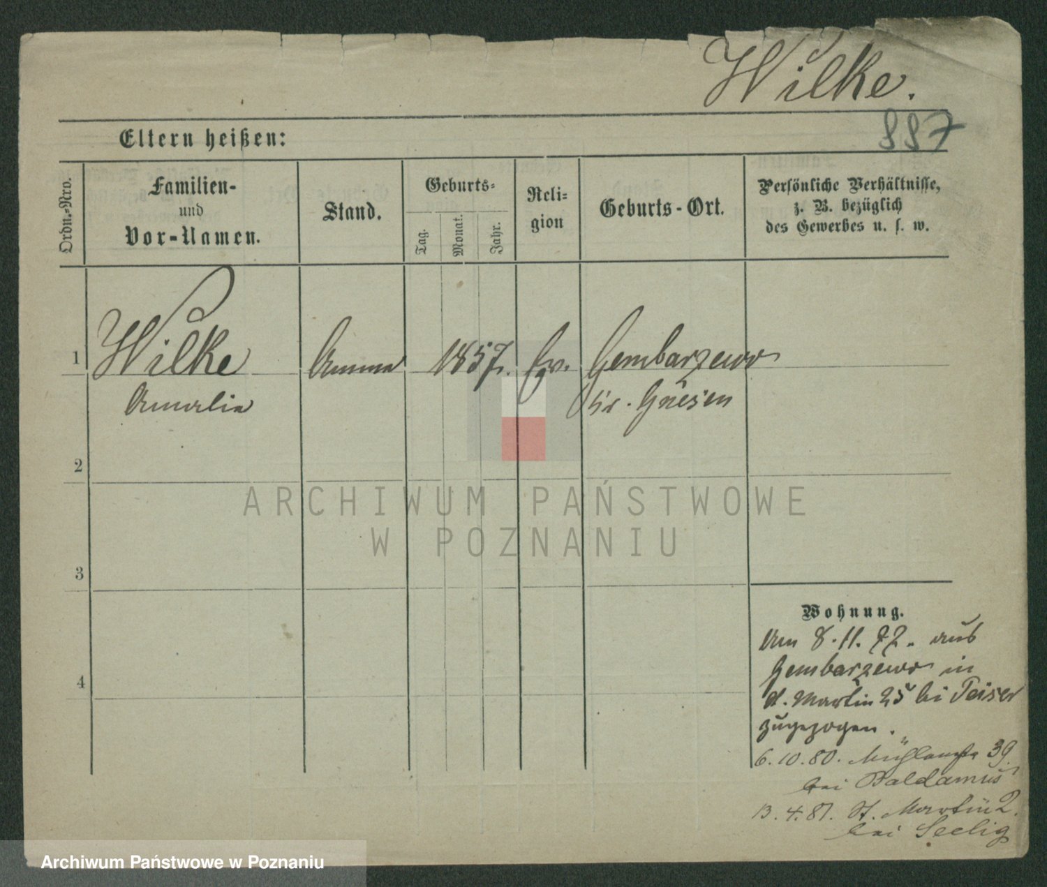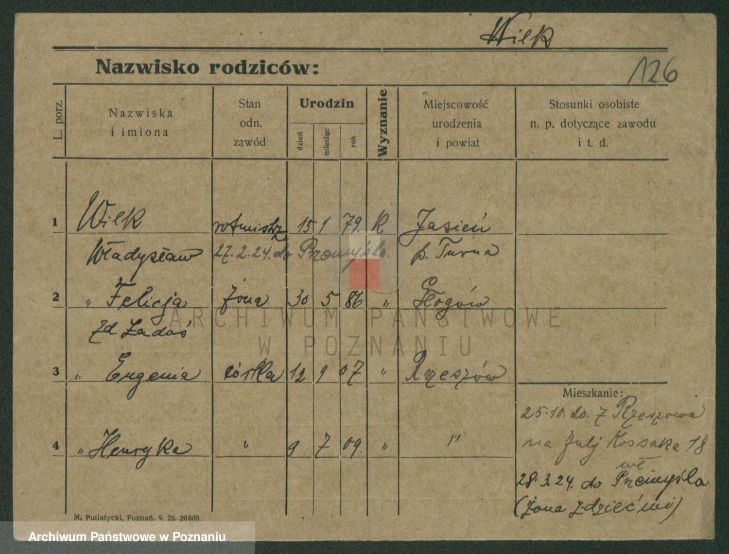 Wilke (albo Wilks) później zam. Tyczynski, Marianna