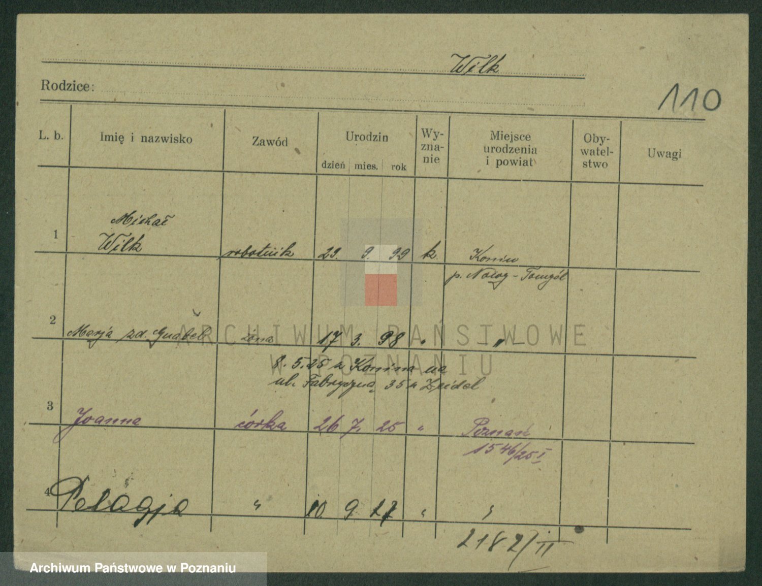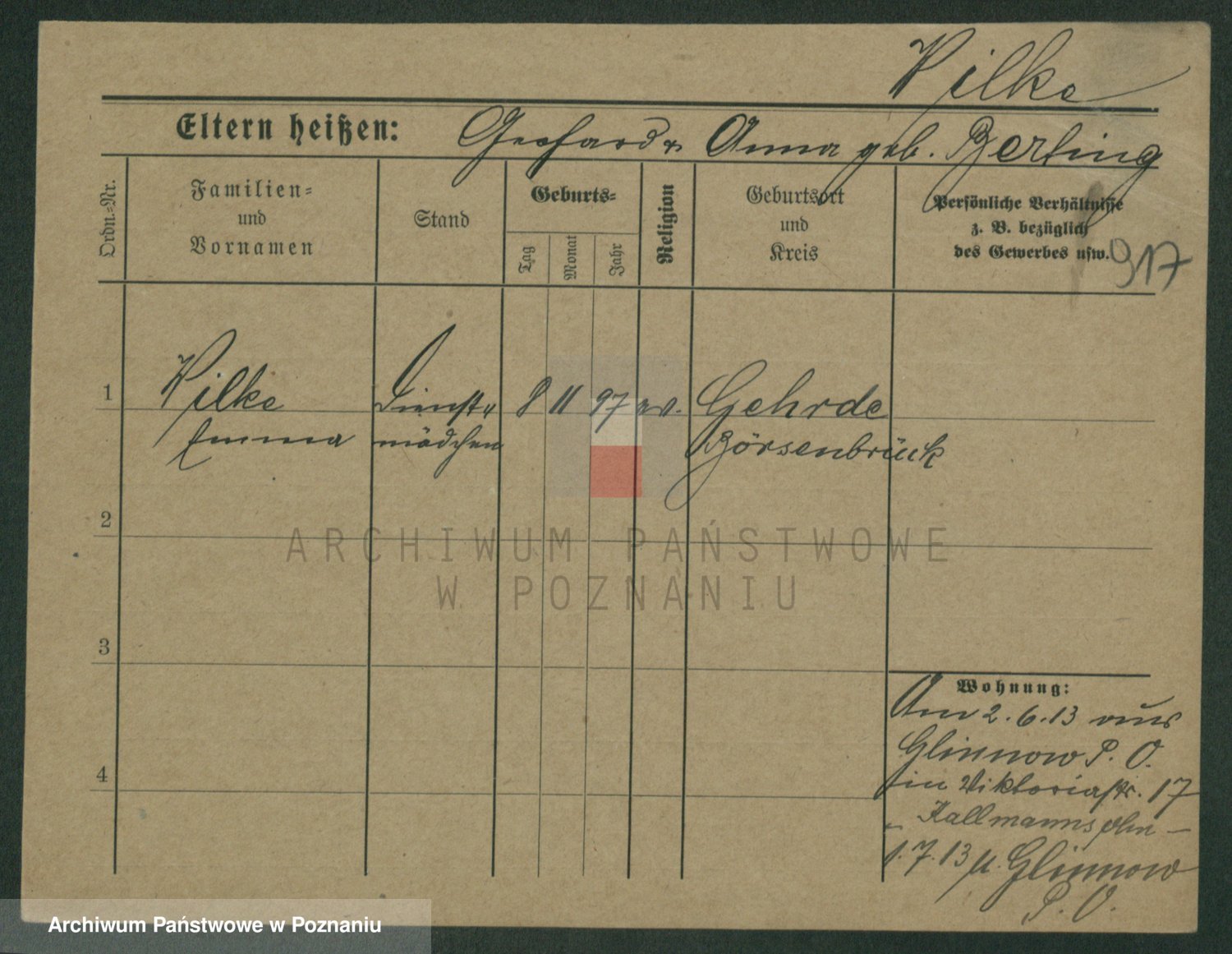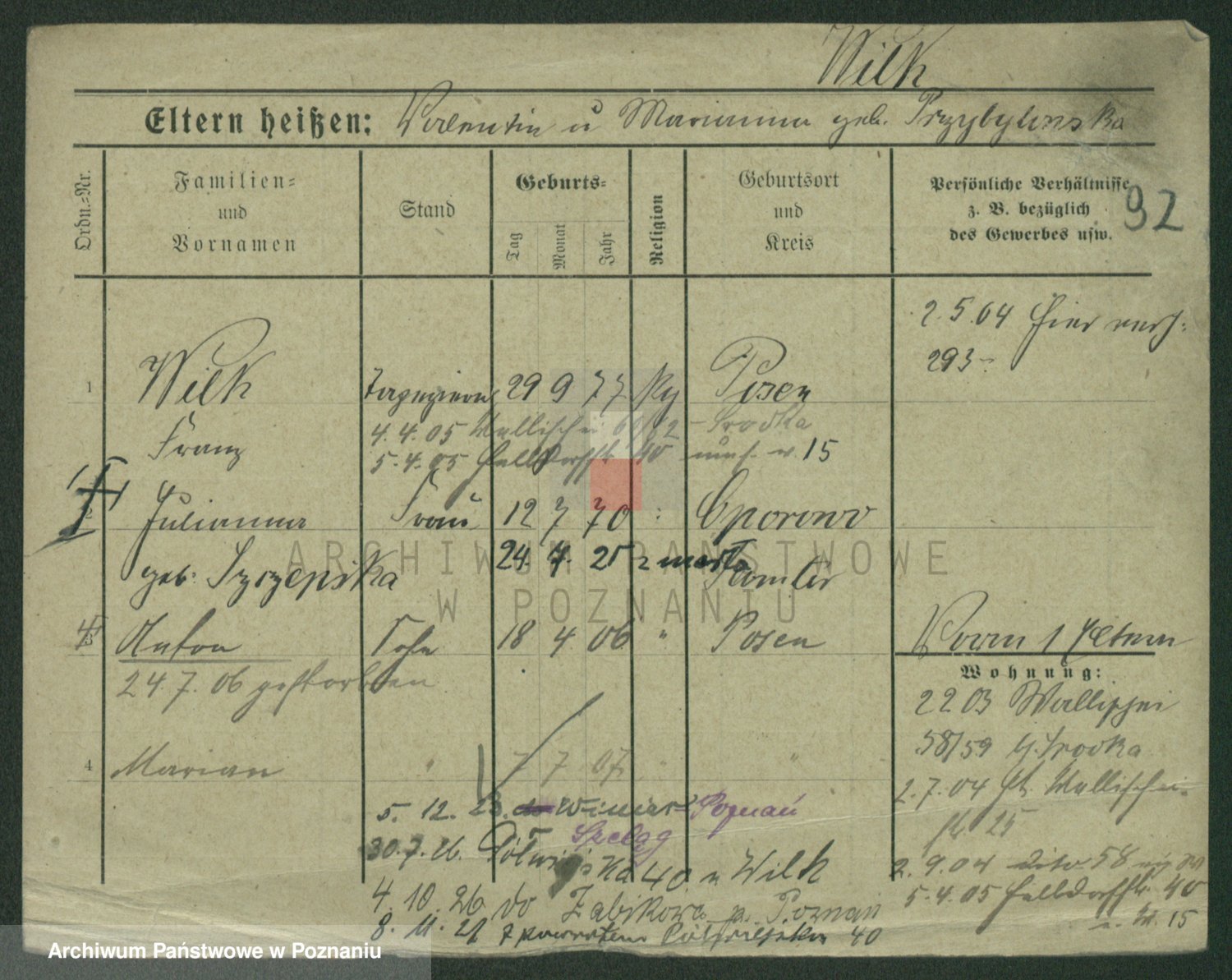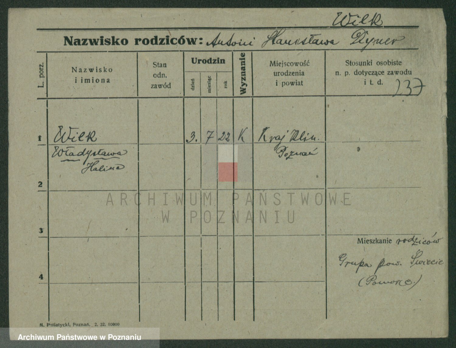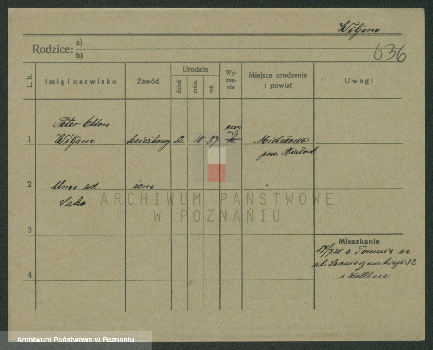 Wilke (albo Wilks) później zam. Tyczynski, Marianna