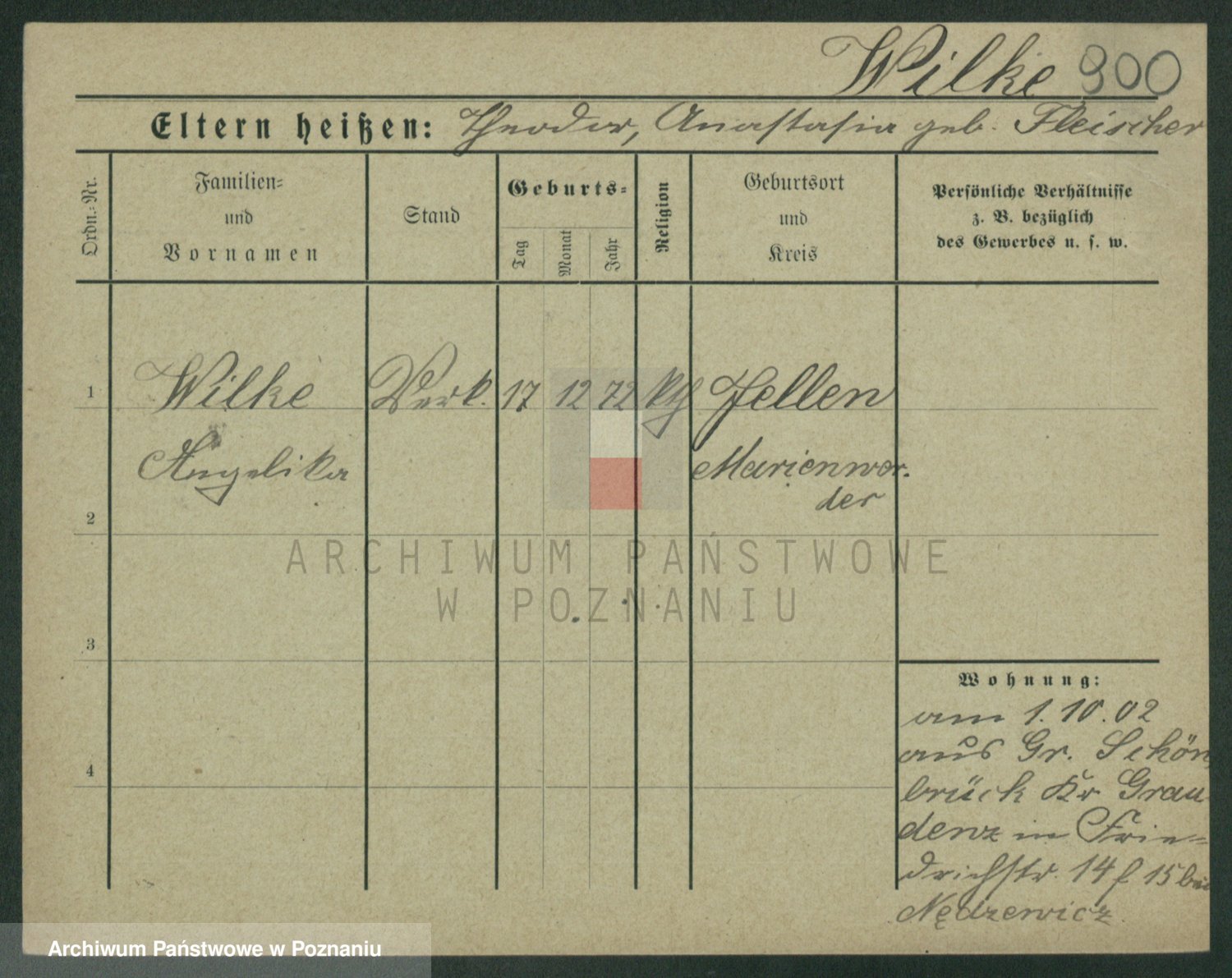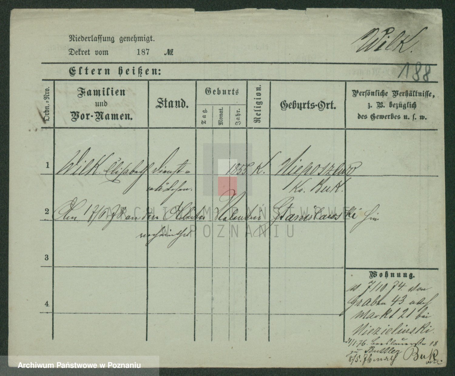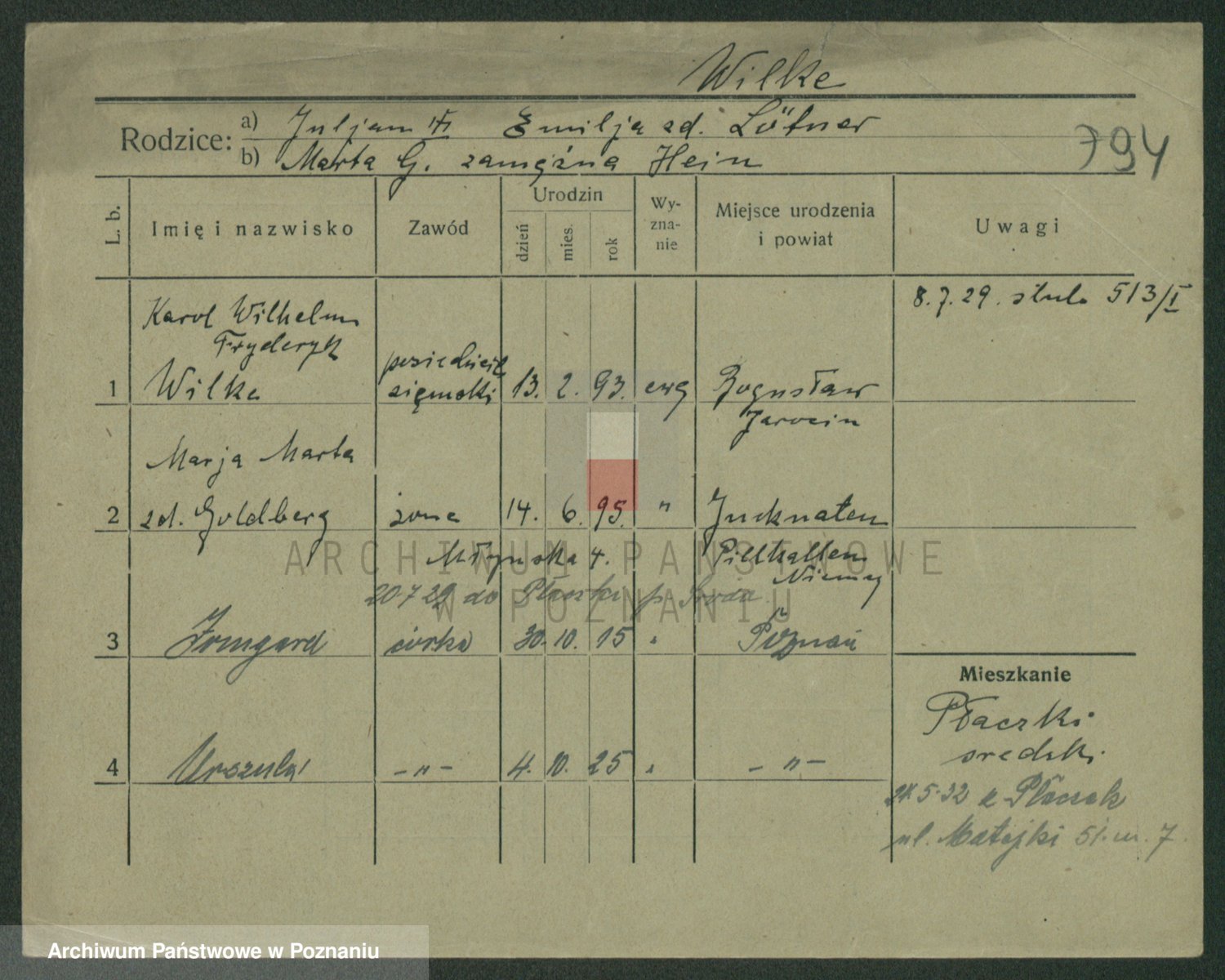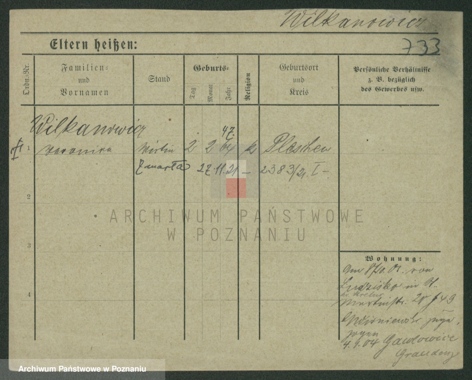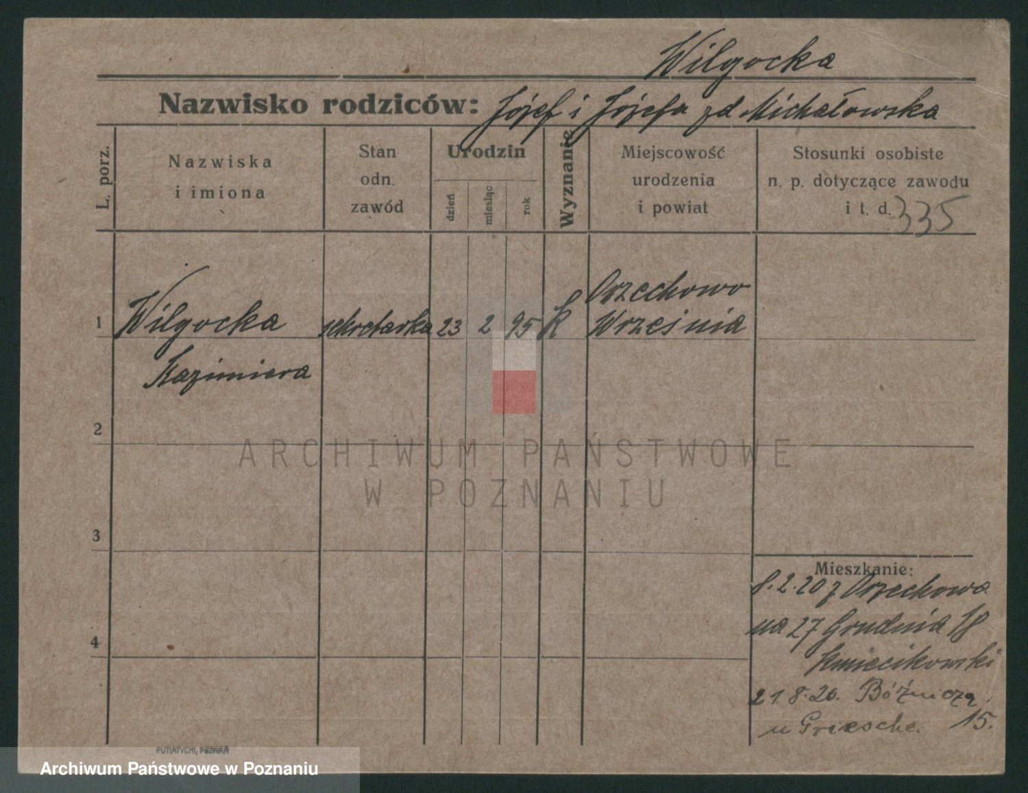Wilke (albo Wilks) później zam. Tyczynski, Marianna