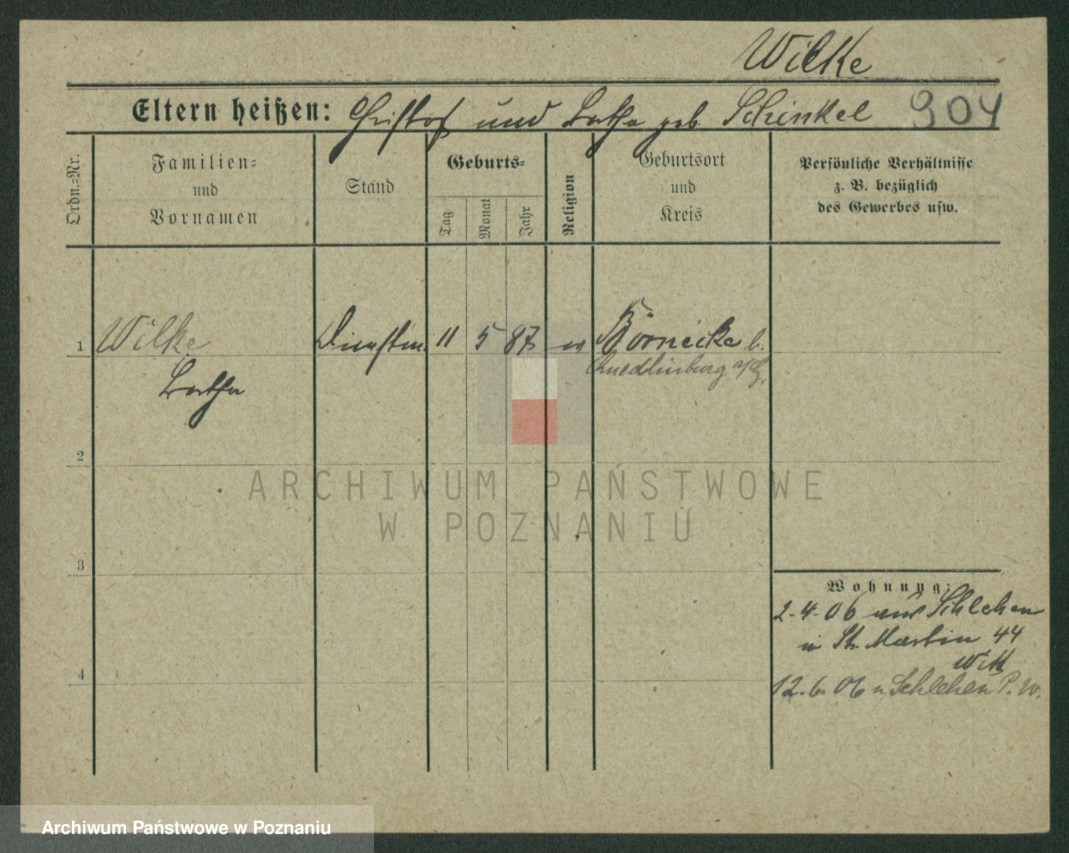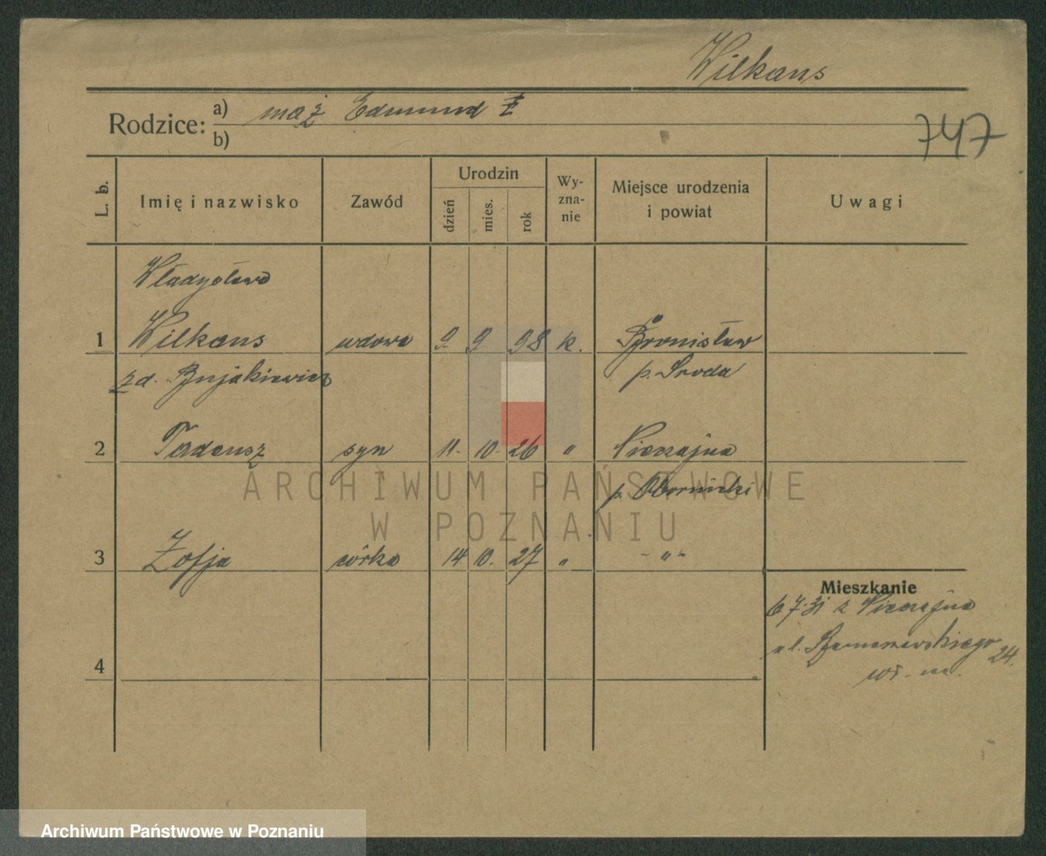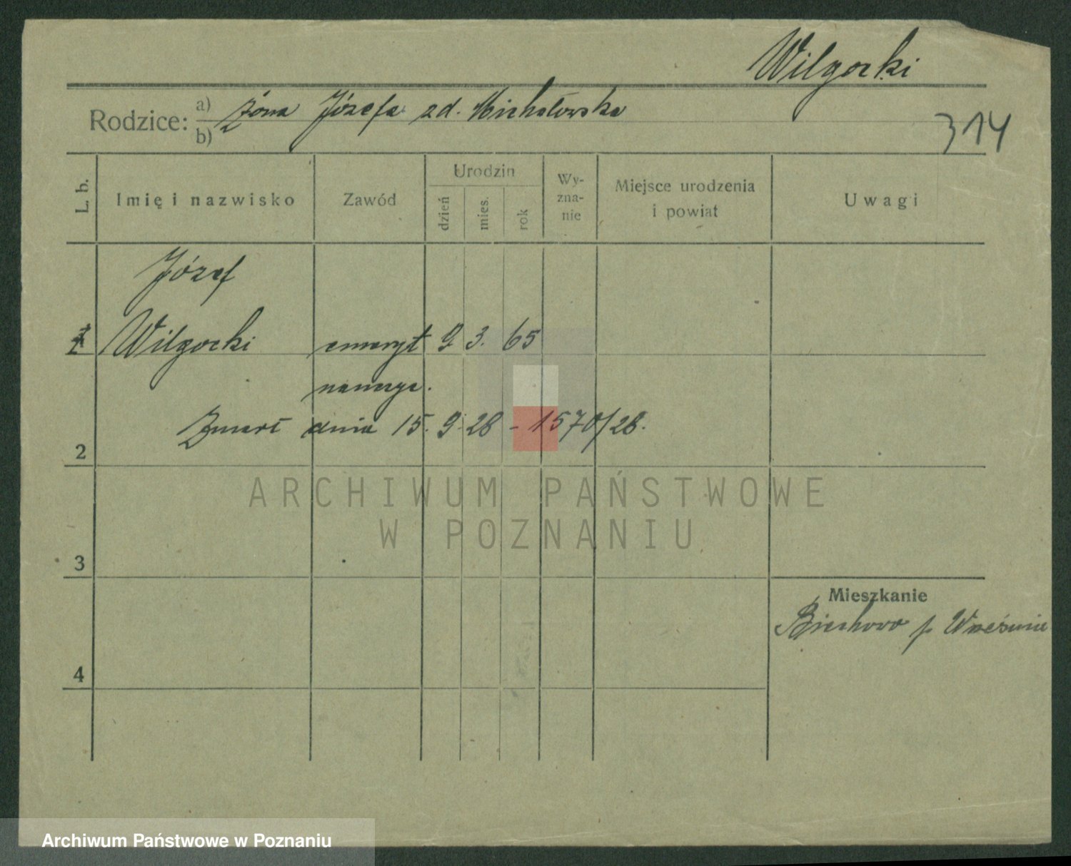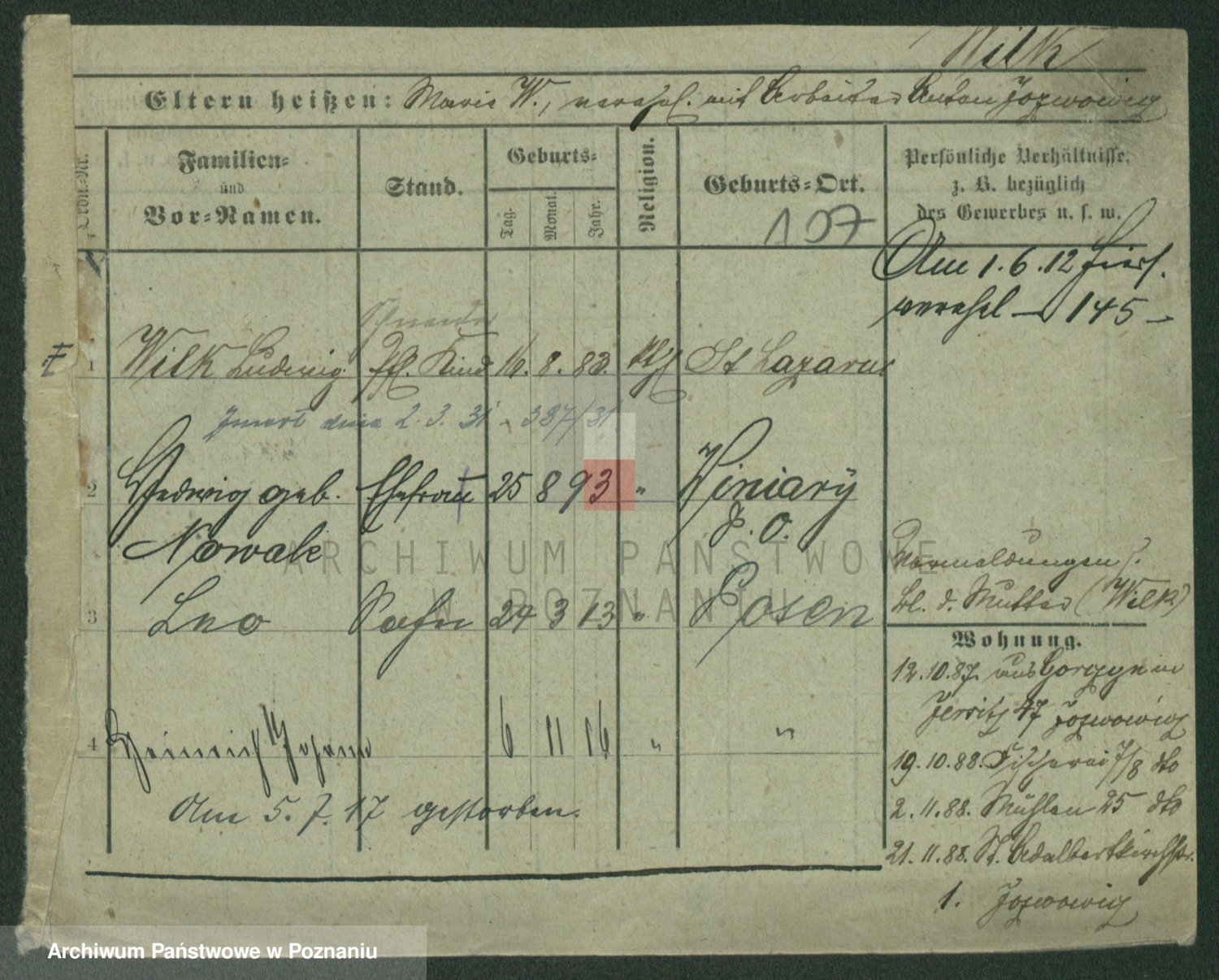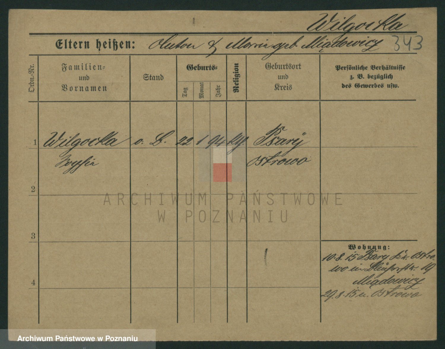 Wilke (albo Wilks) później zam. Tyczynski, Marianna