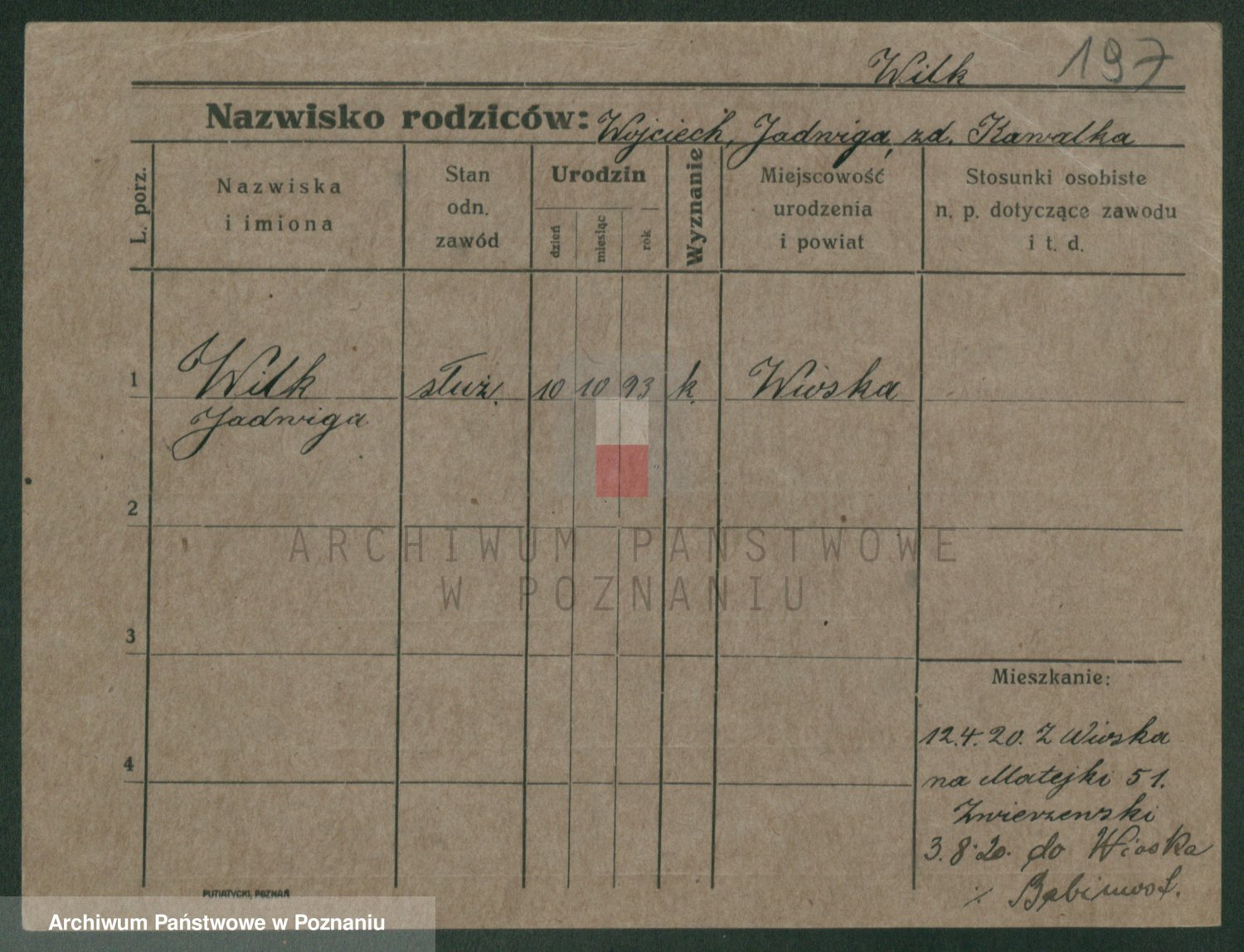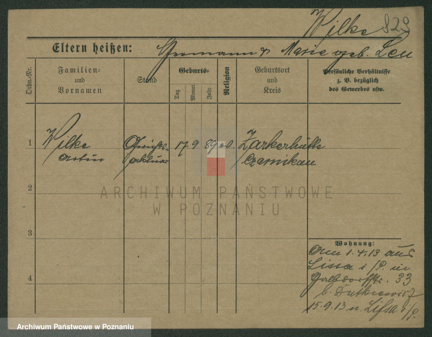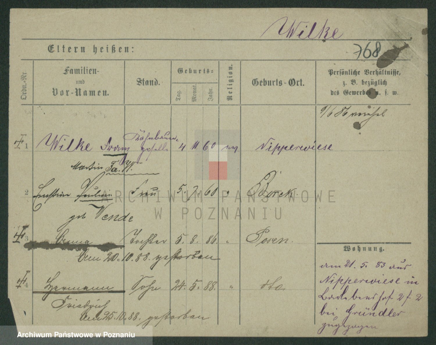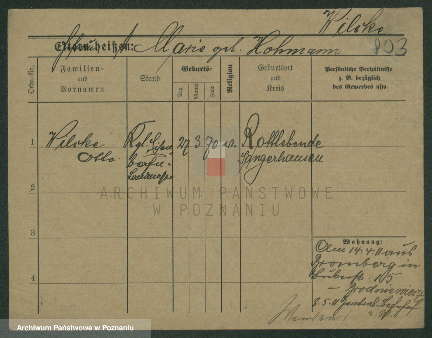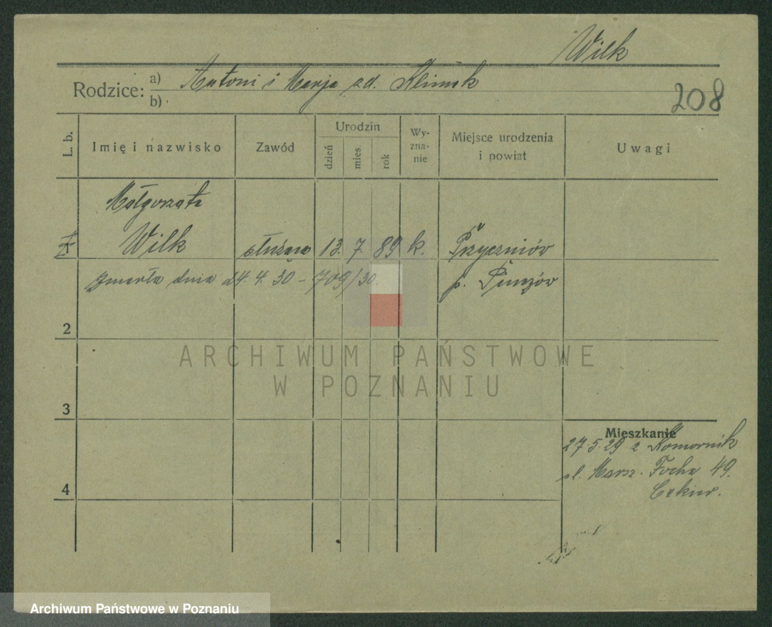 Wilke (albo Wilks) później zam. Tyczynski, Marianna