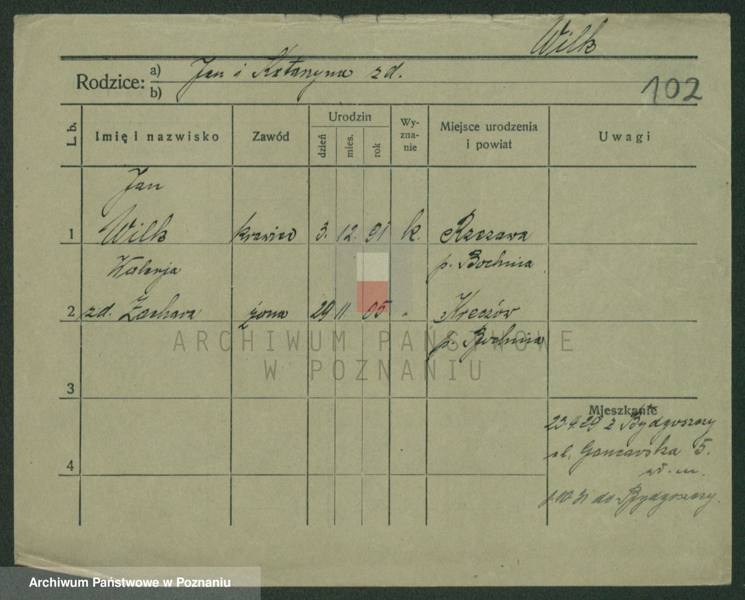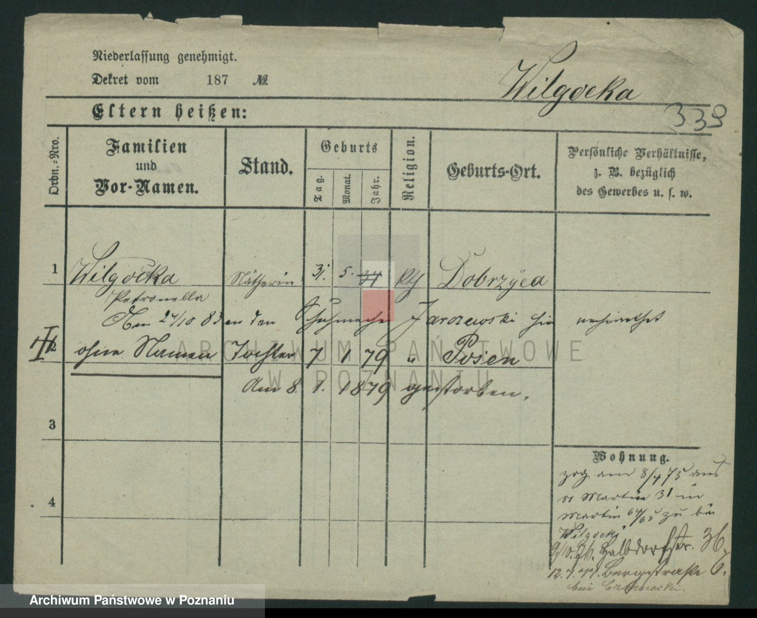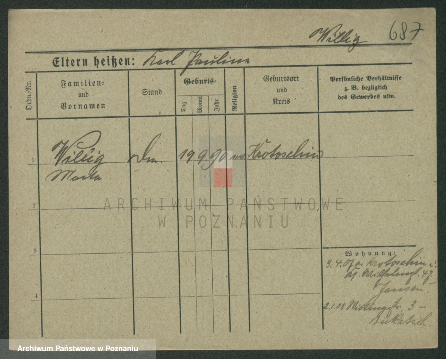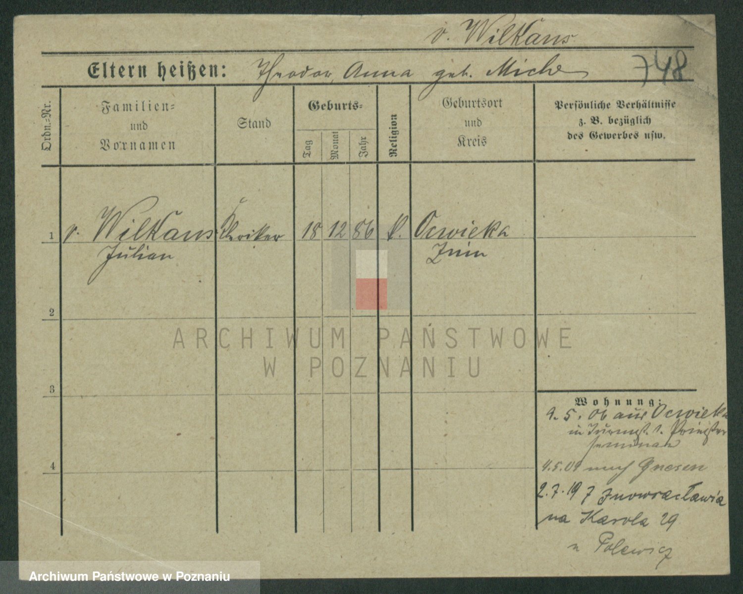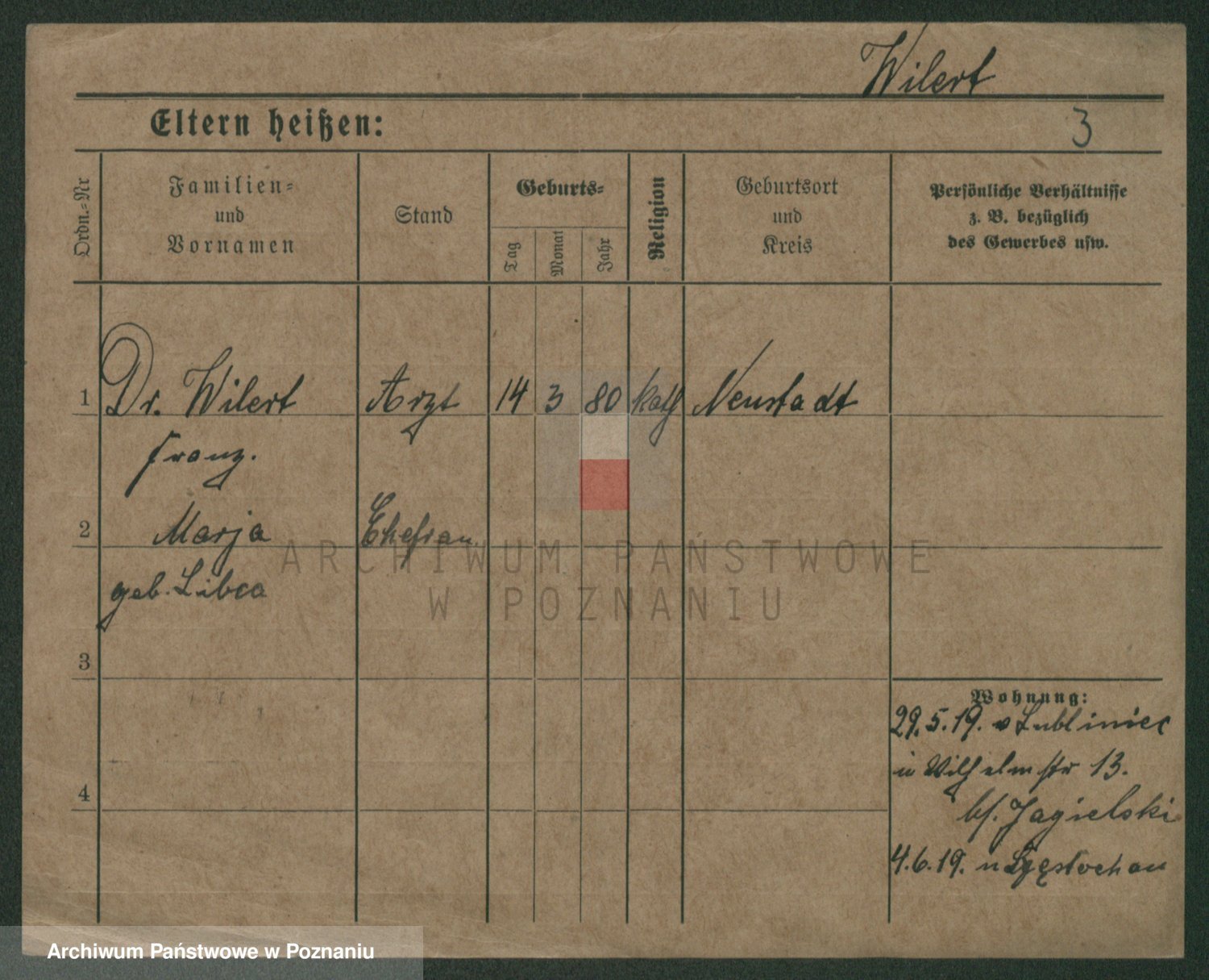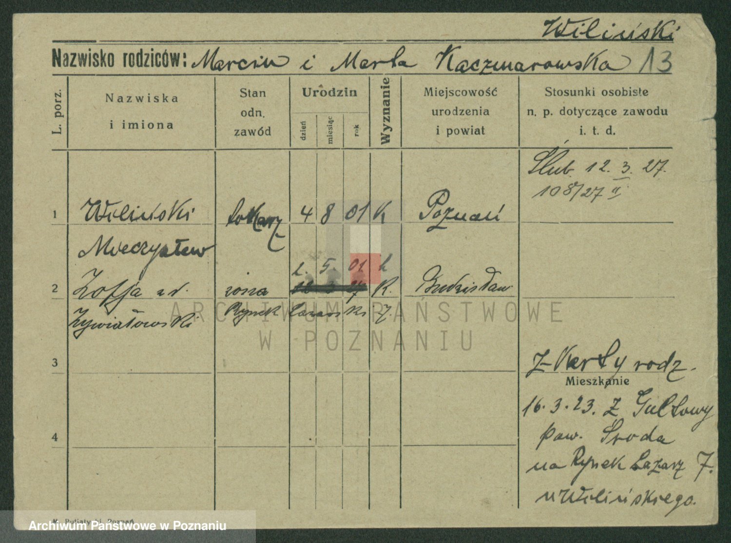 Wilke (albo Wilks) później zam. Tyczynski, Marianna