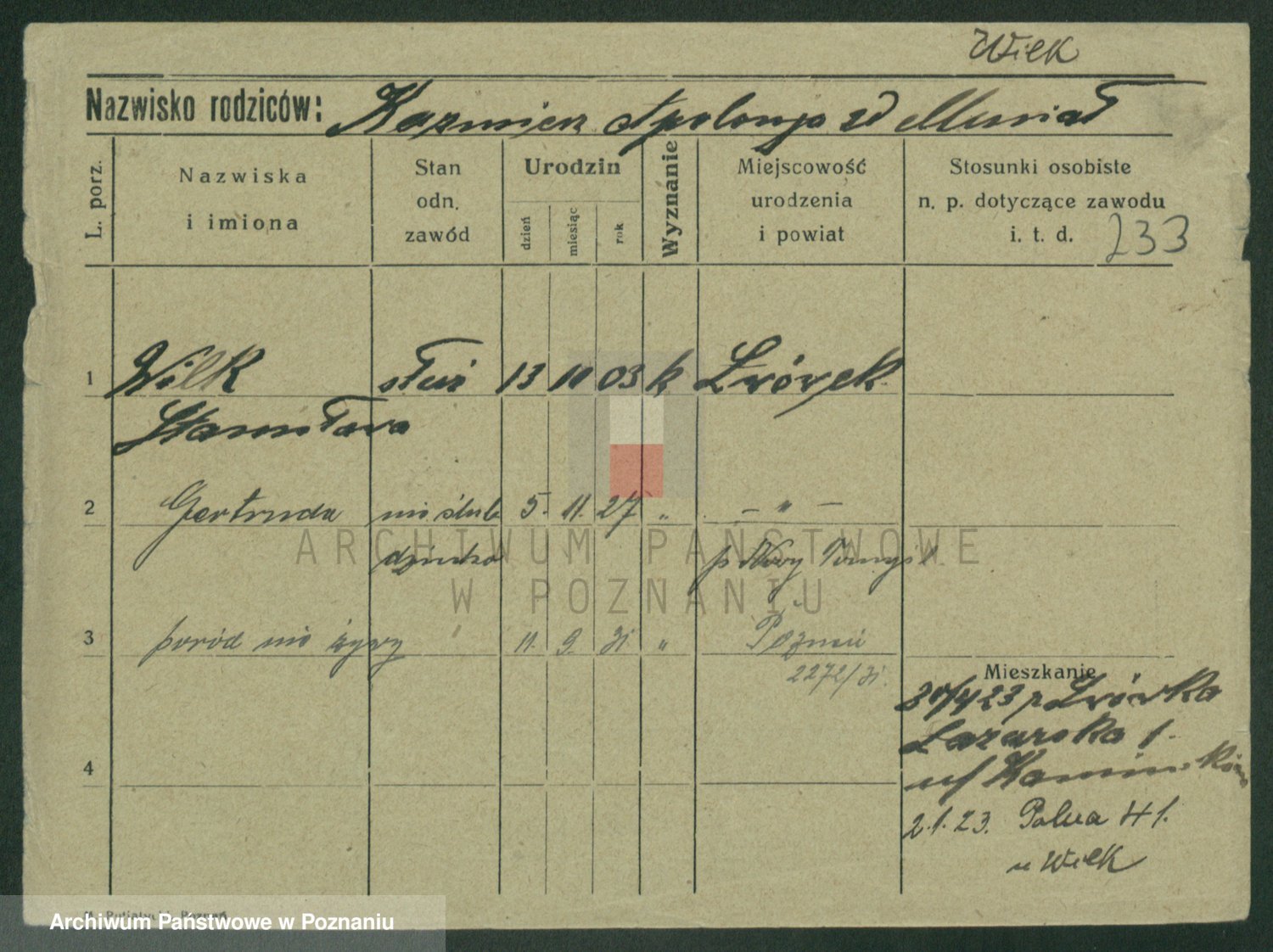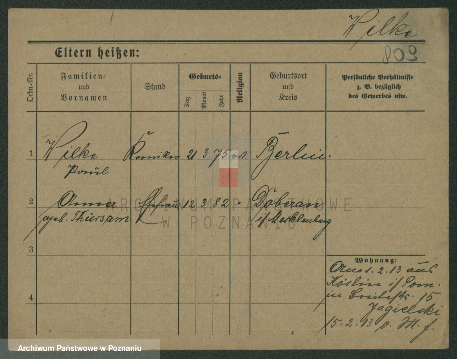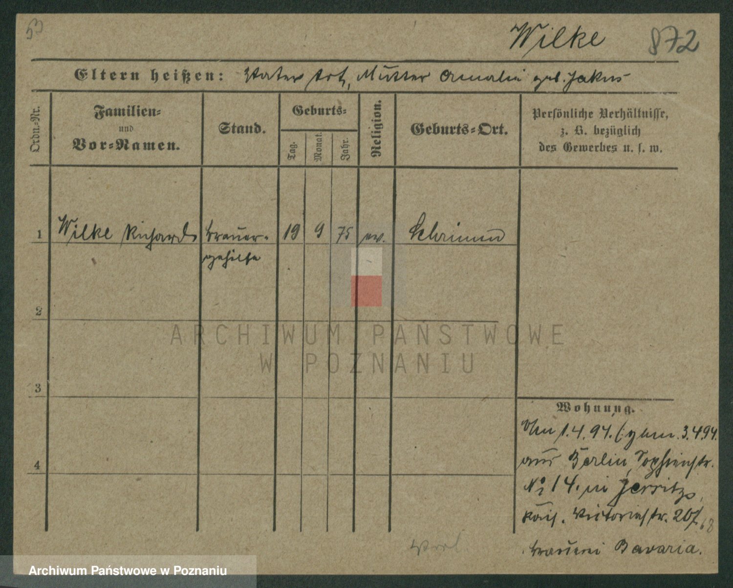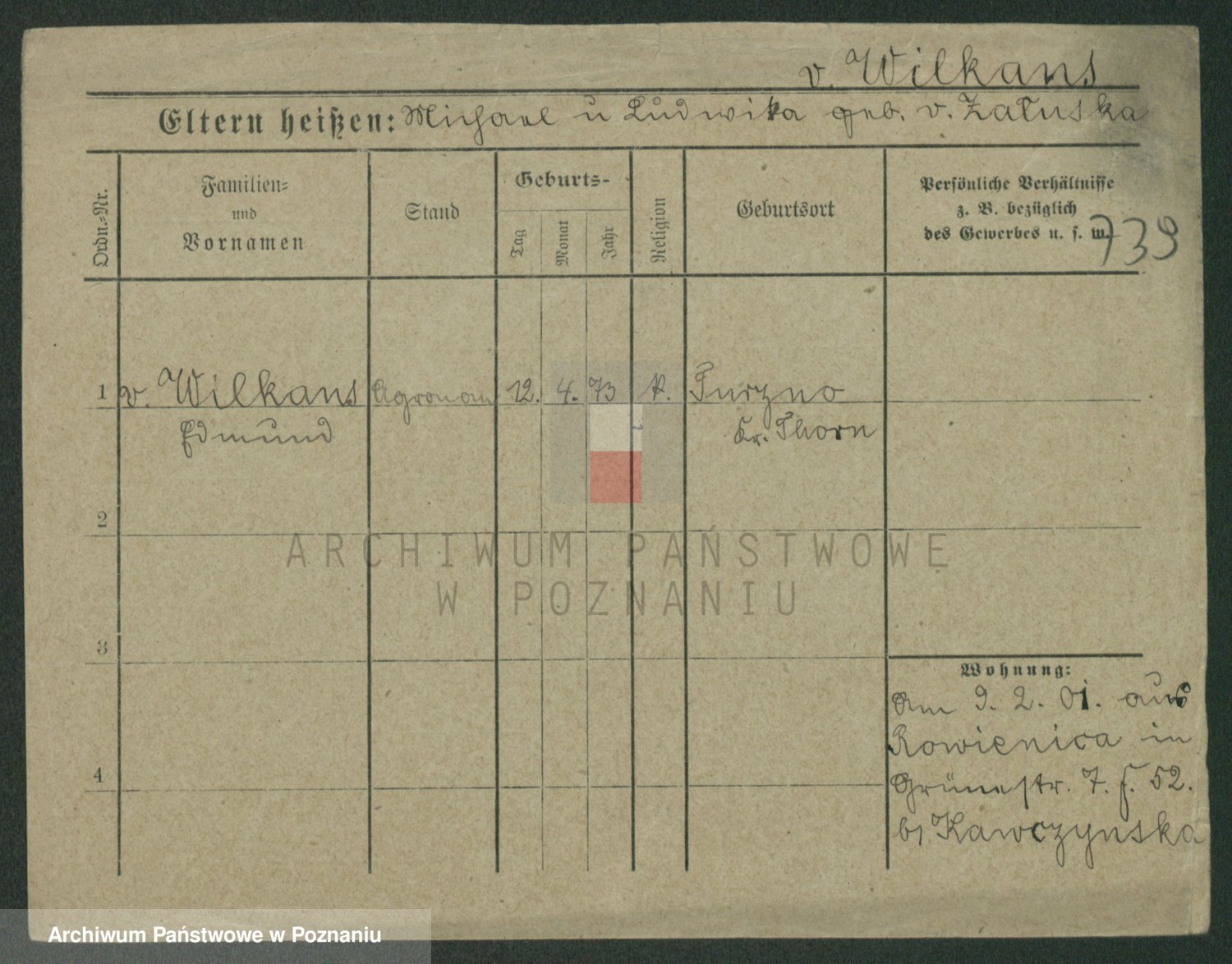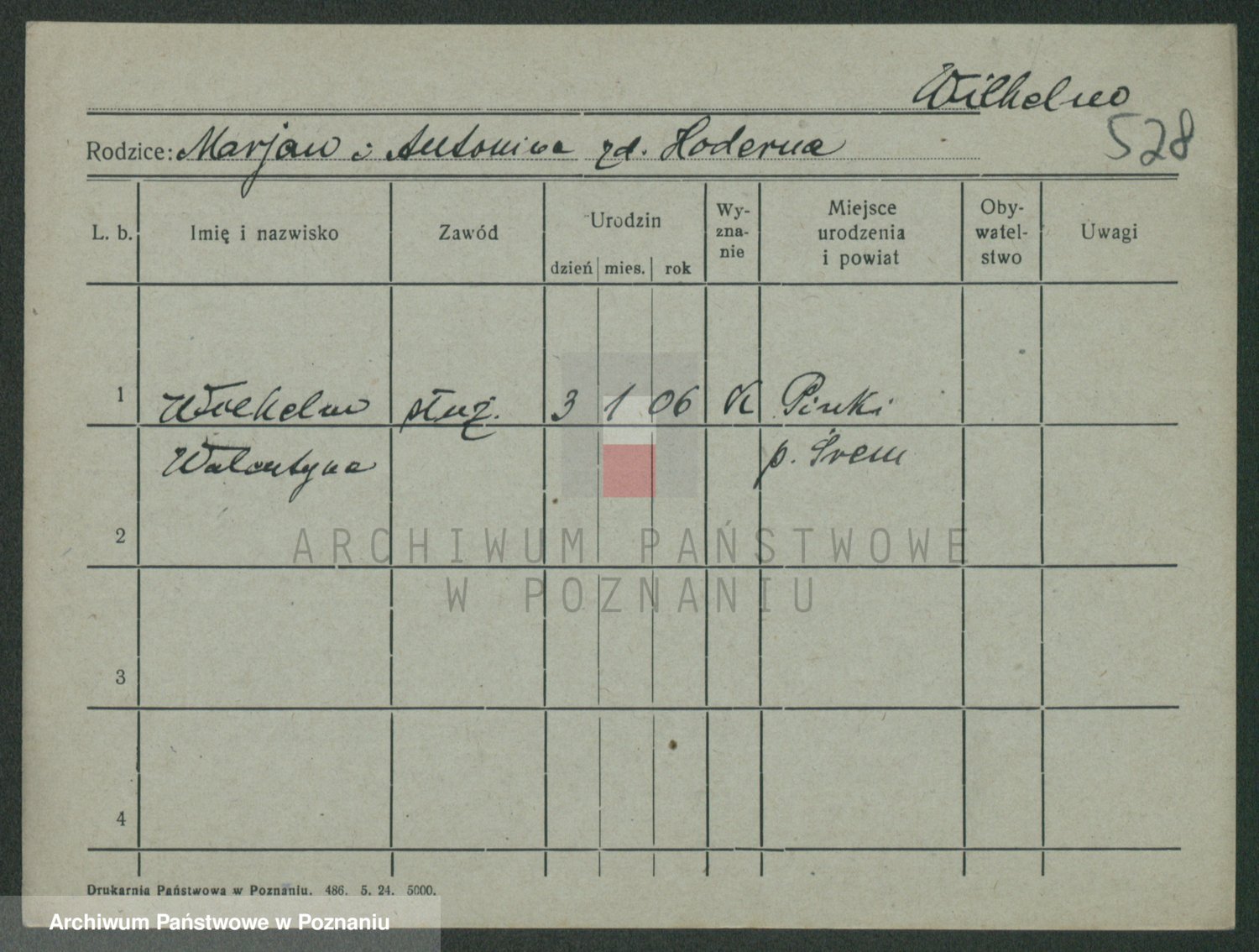 Wilke (albo Wilks) później zam. Tyczynski, Marianna
