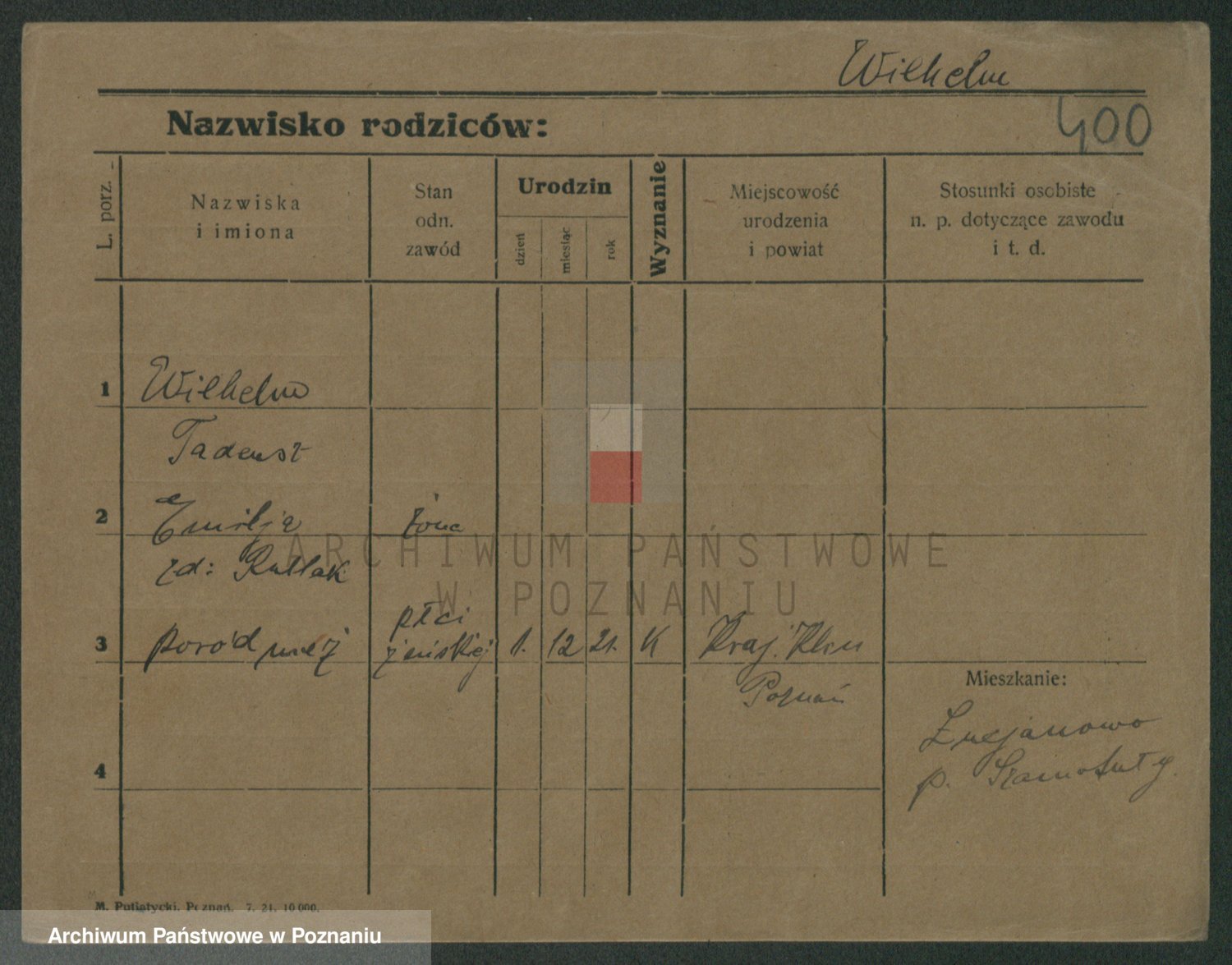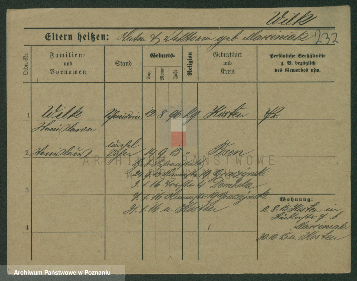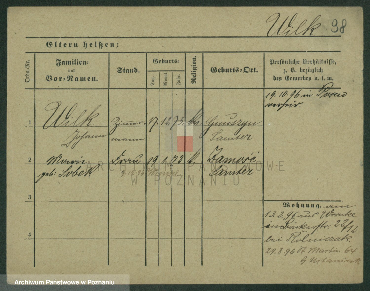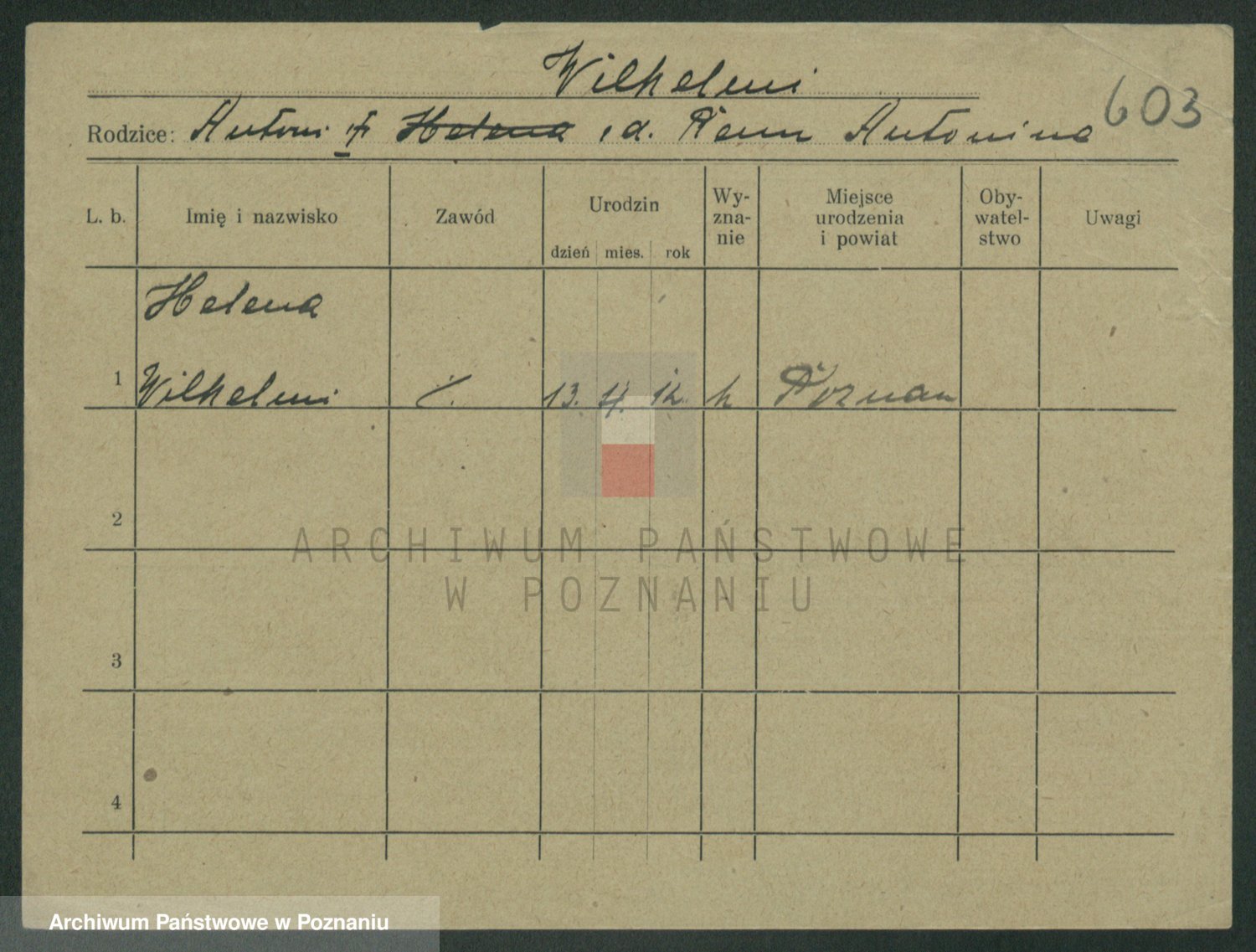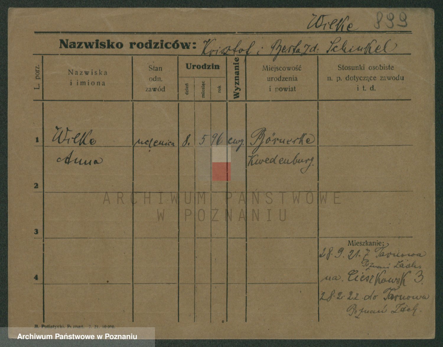 Wilke (albo Wilks) później zam. Tyczynski, Marianna