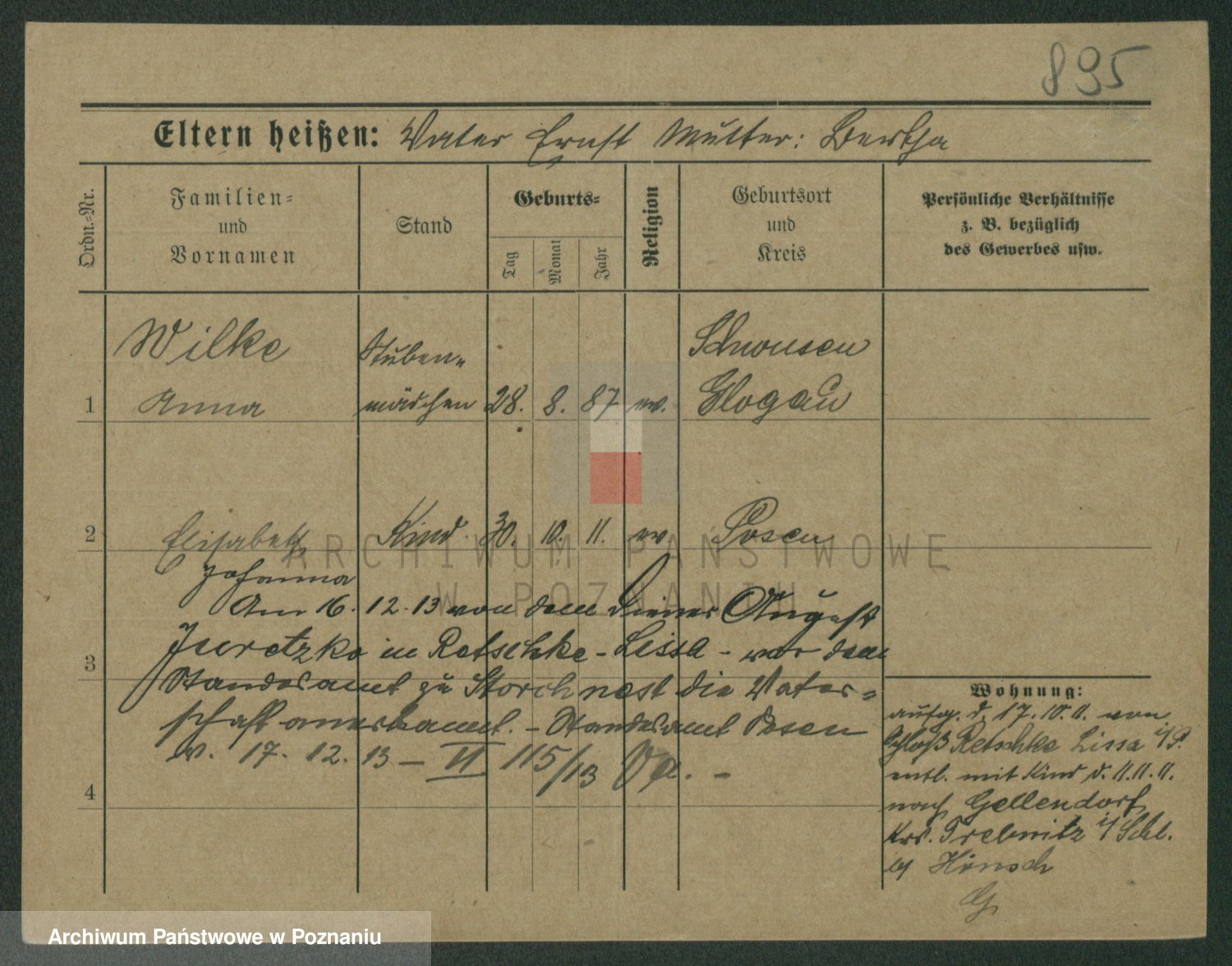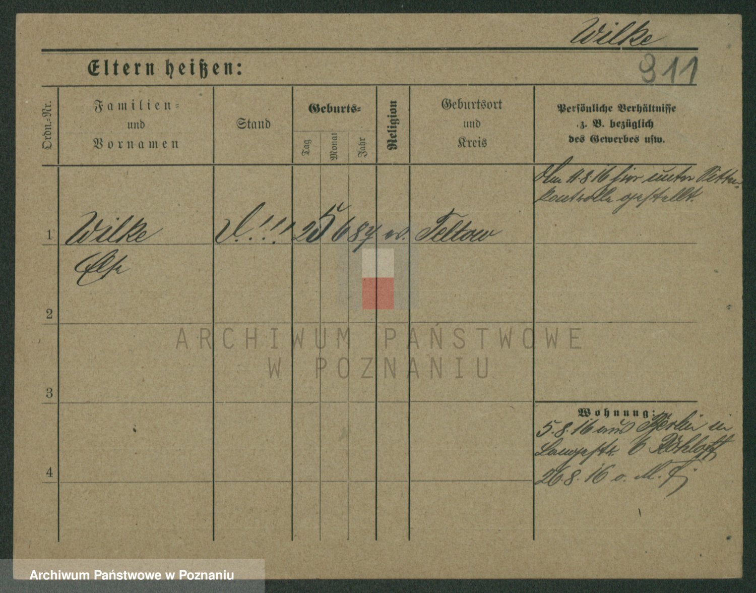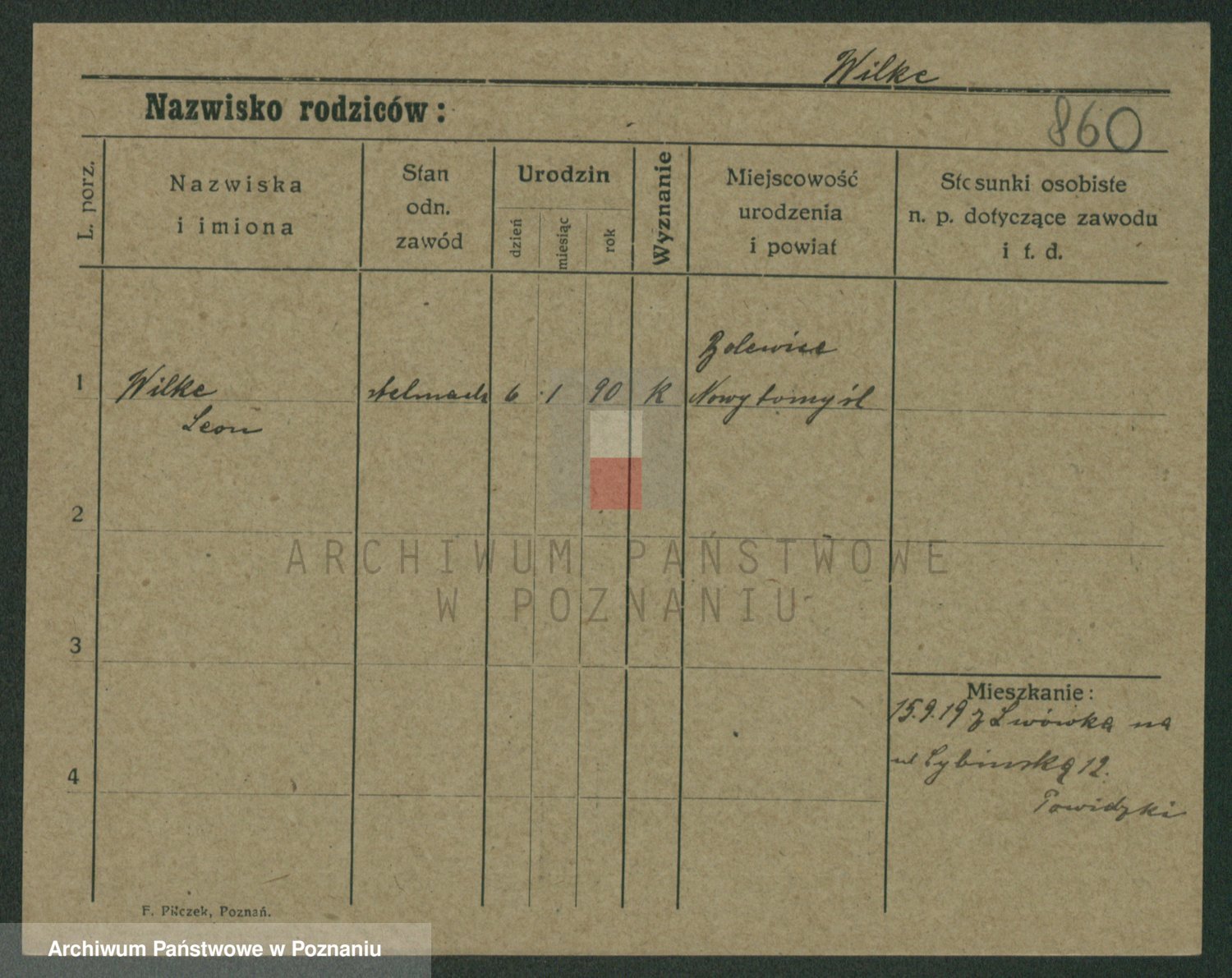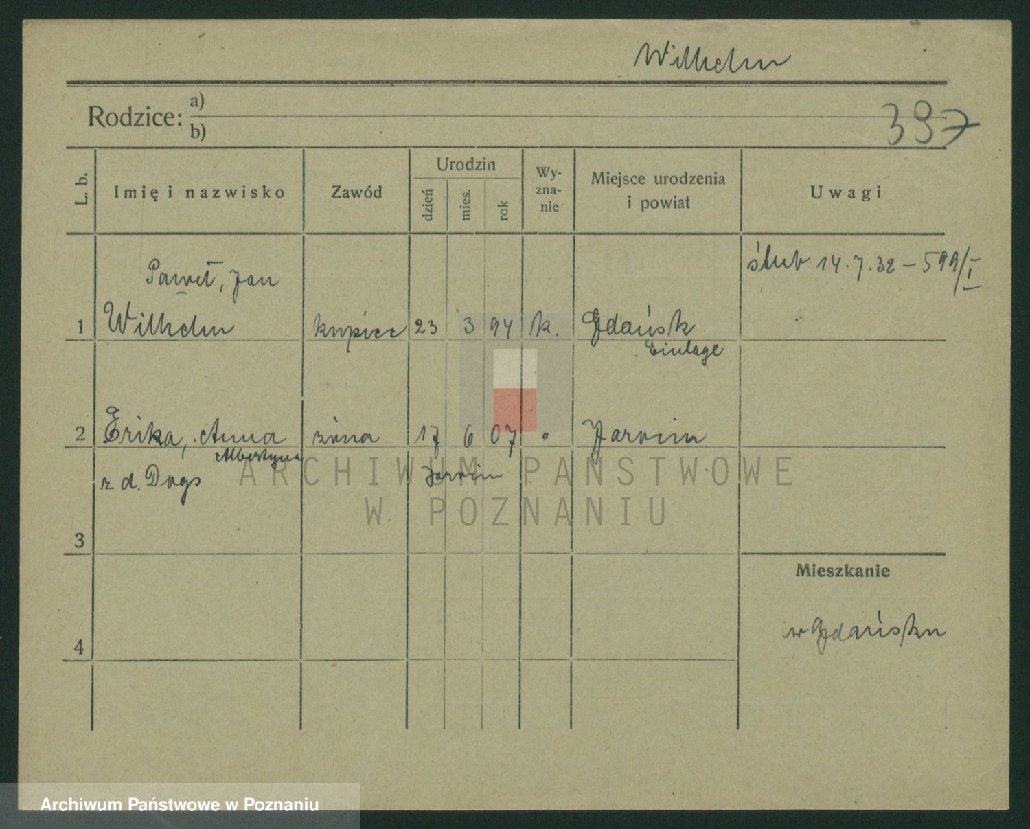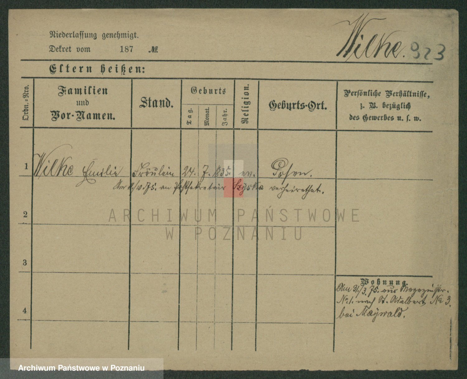 Wilke (albo Wilks) później zam. Tyczynski, Marianna