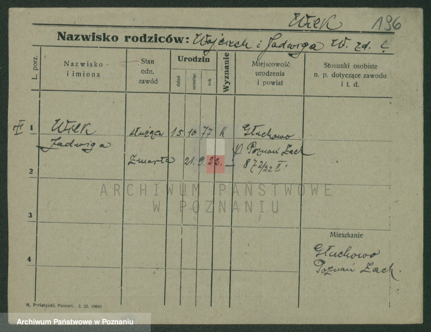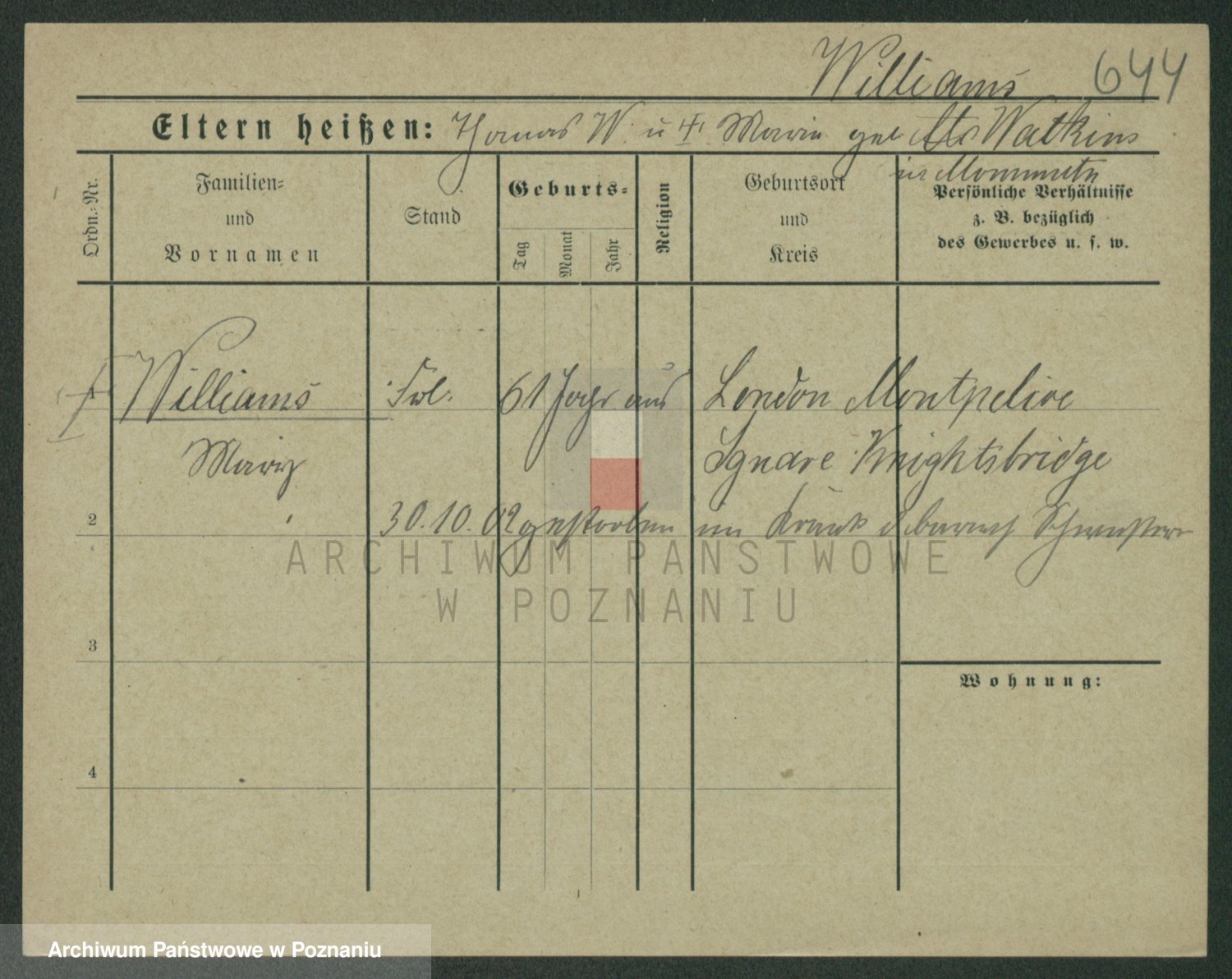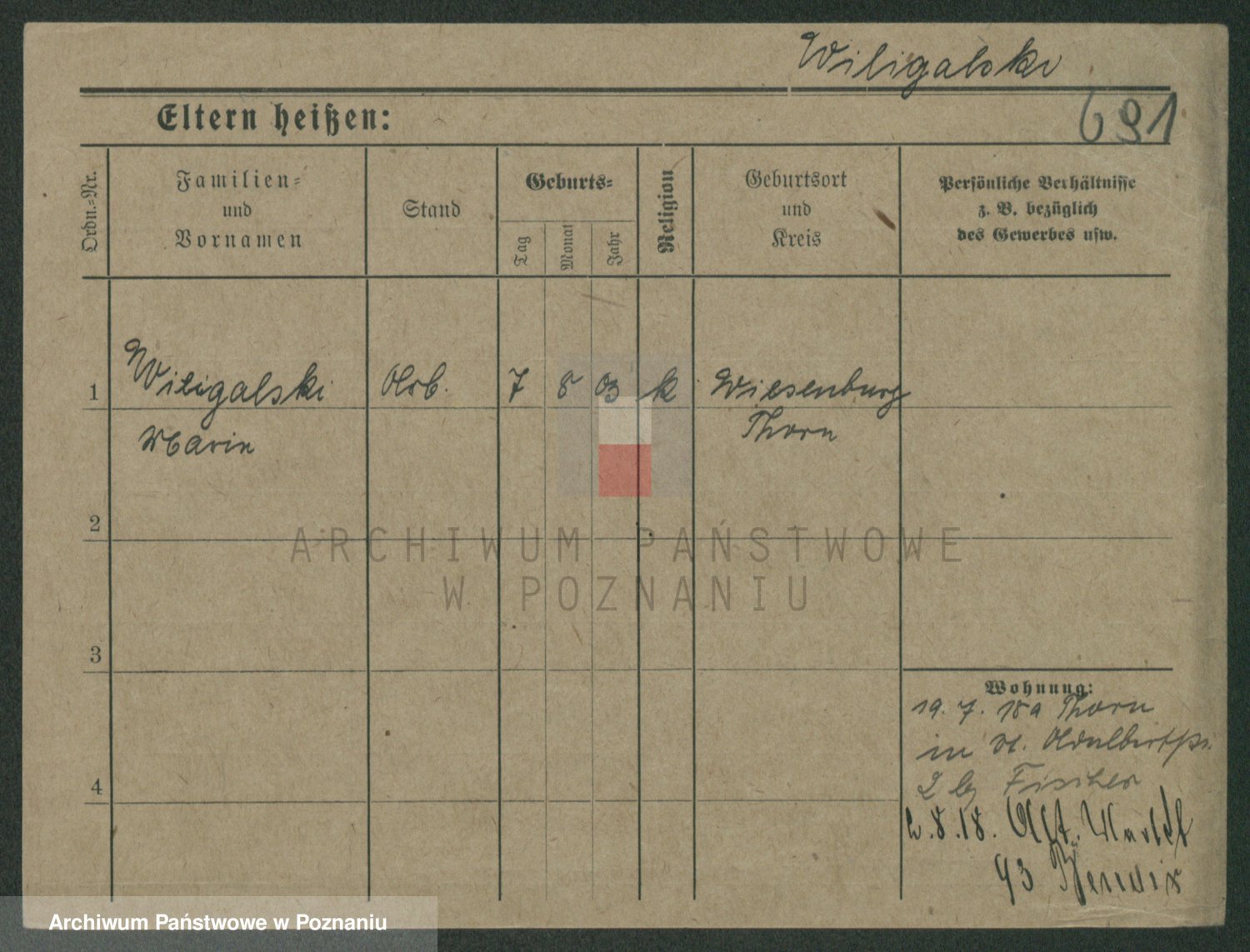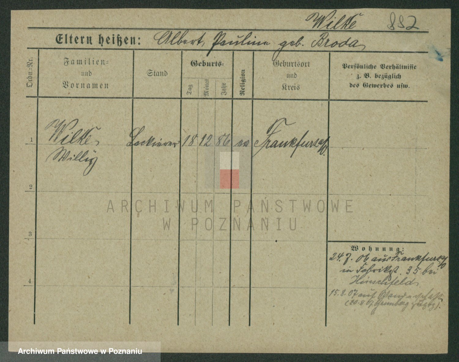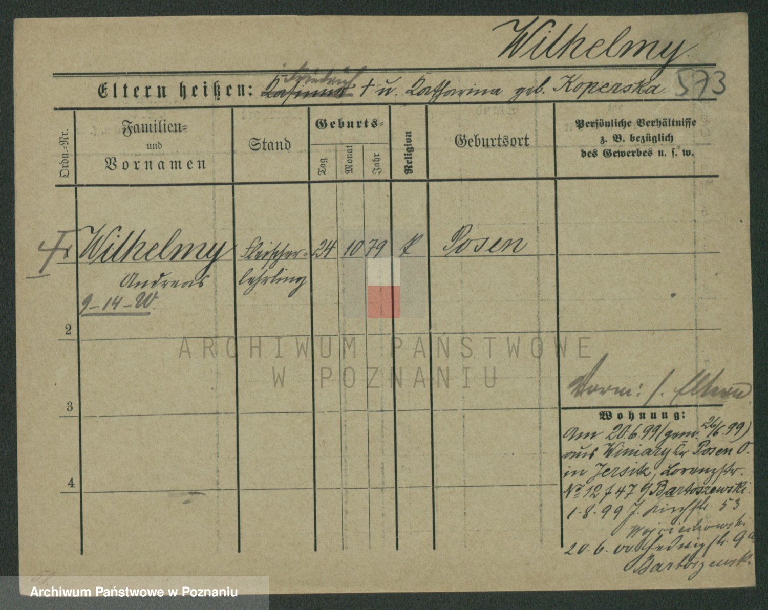 Wilke (albo Wilks) później zam. Tyczynski, Marianna