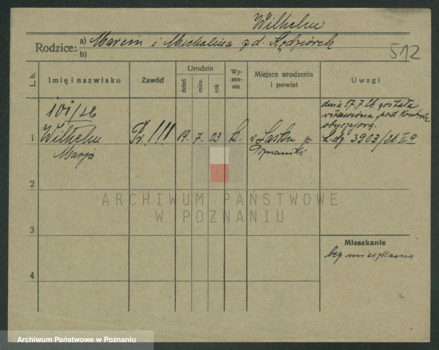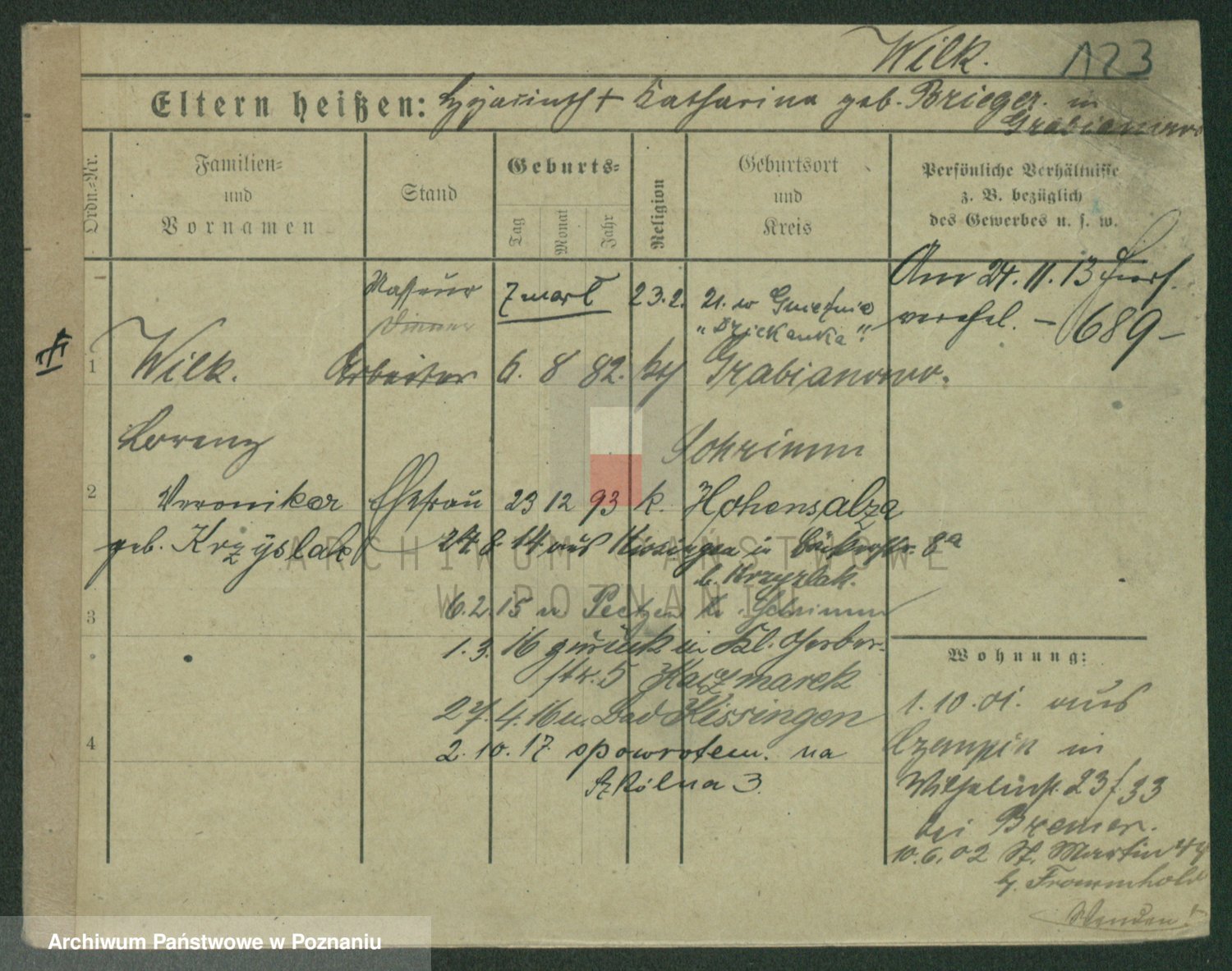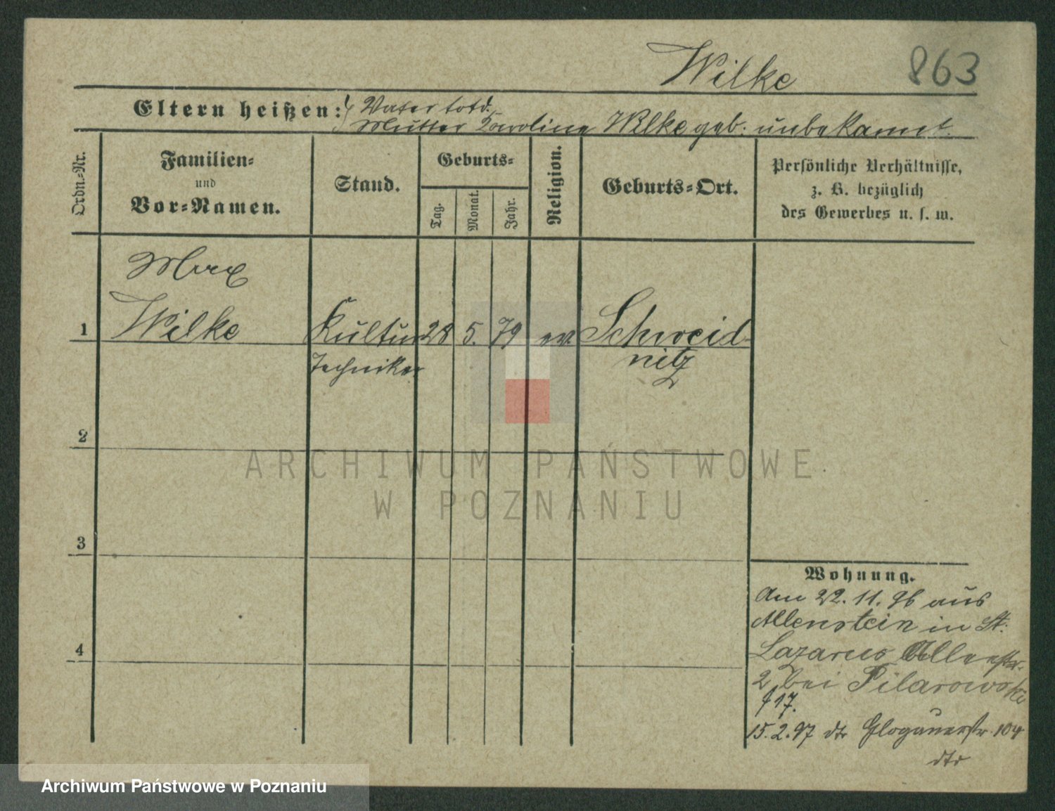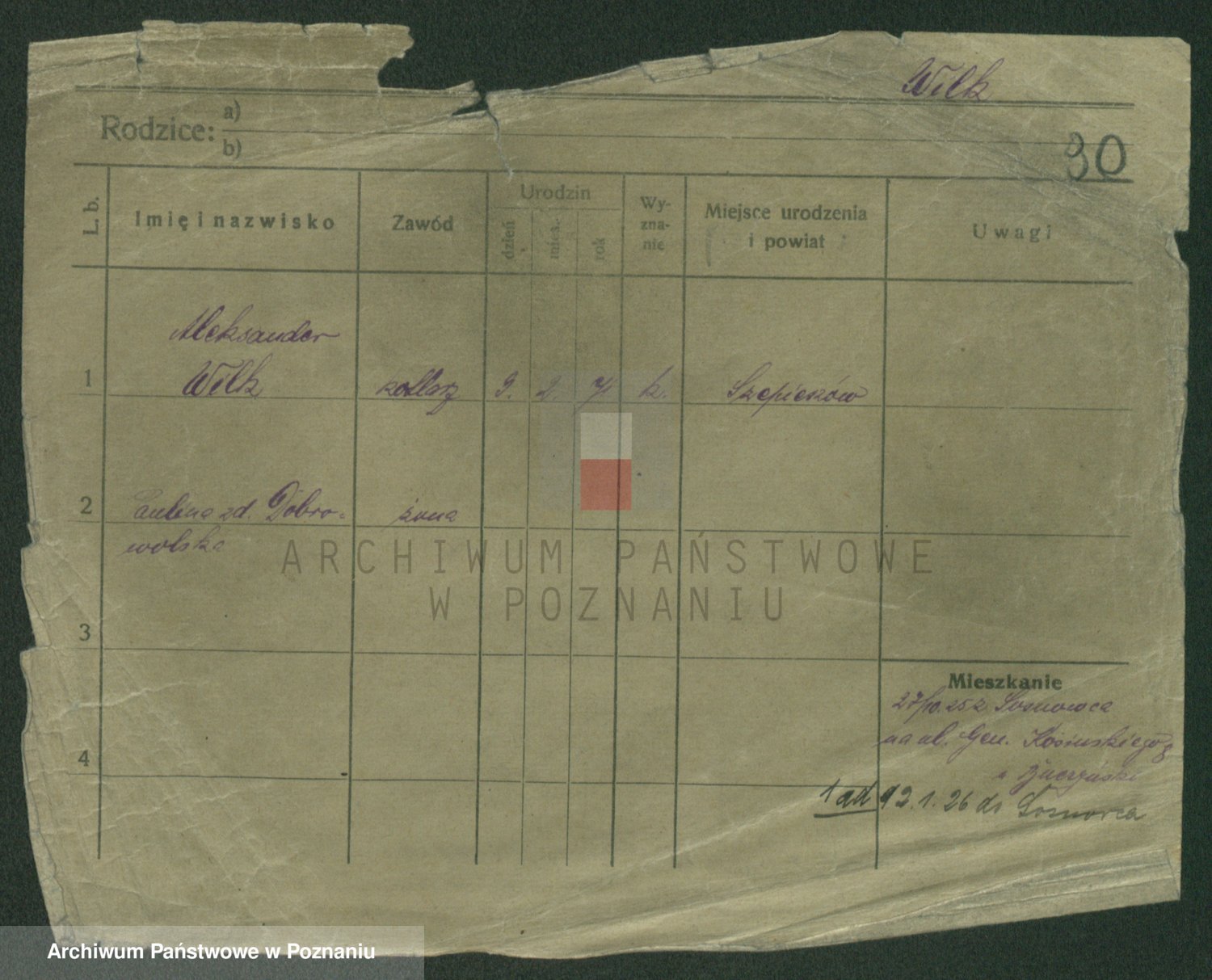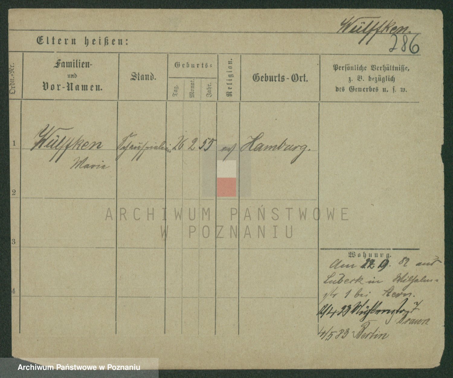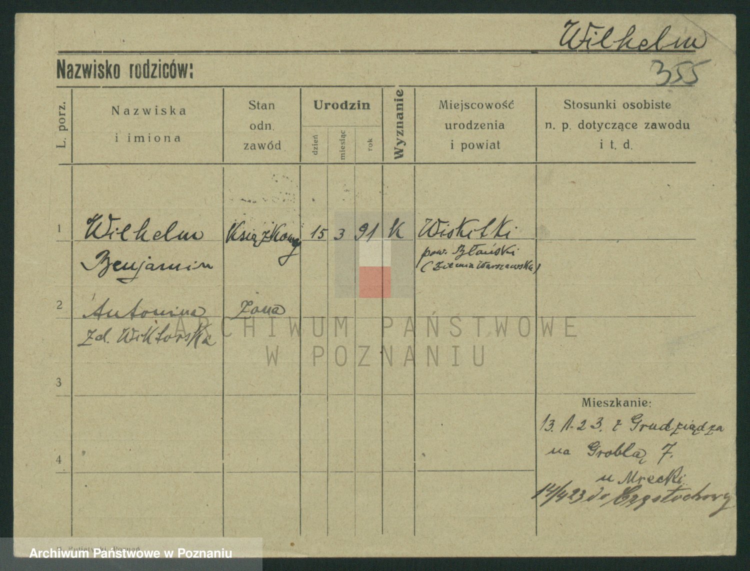 Wilke (albo Wilks) później zam. Tyczynski, Marianna