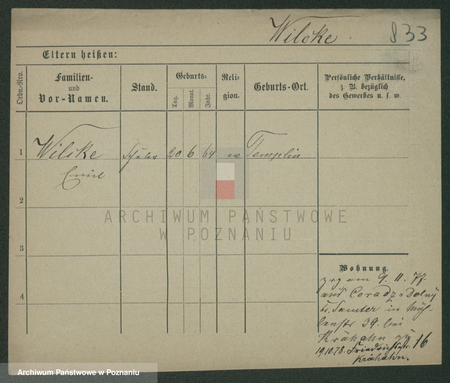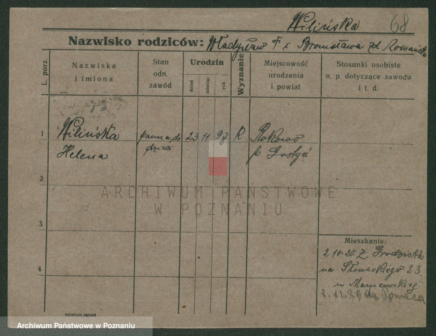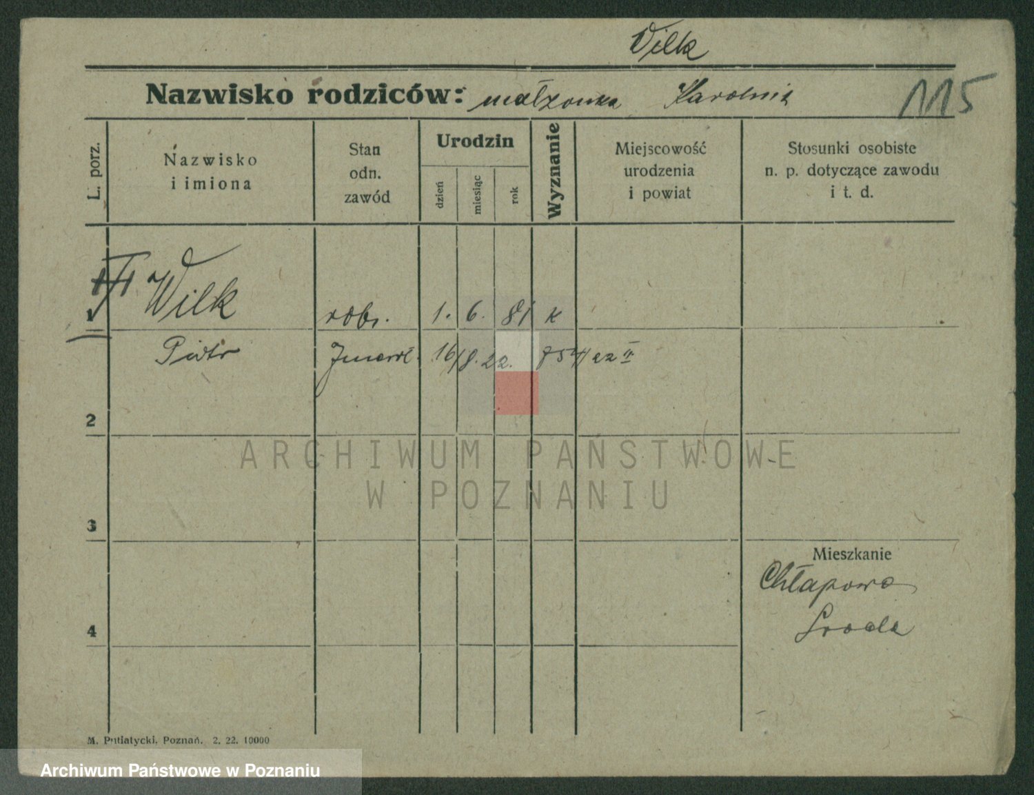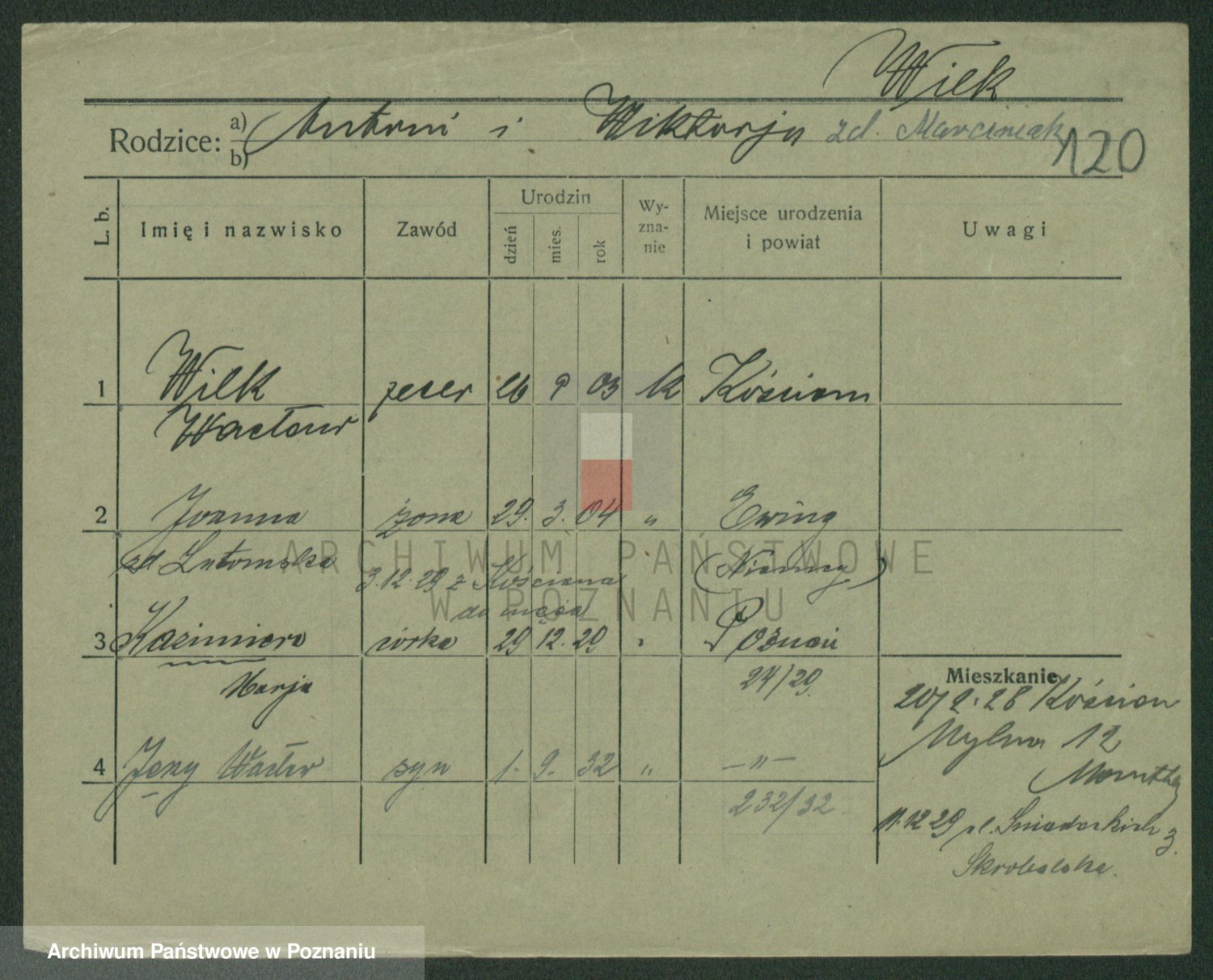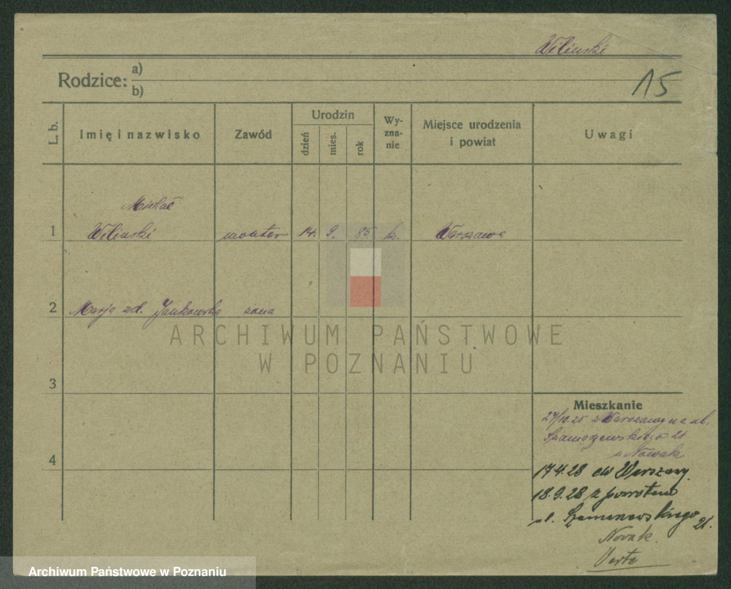 Wilke (albo Wilks) później zam. Tyczynski, Marianna