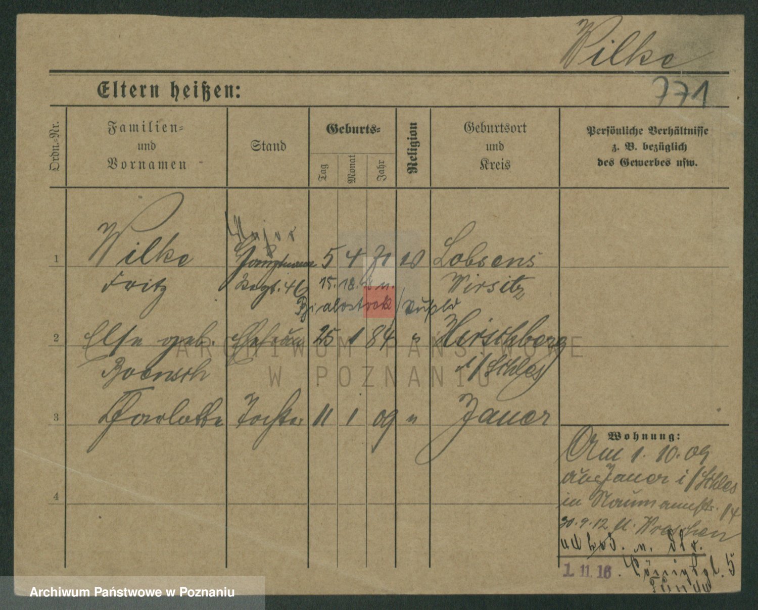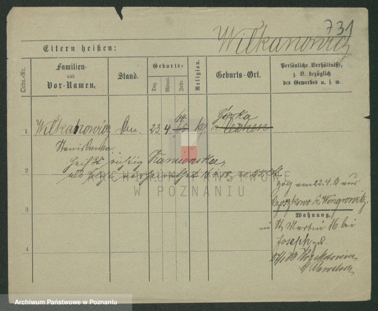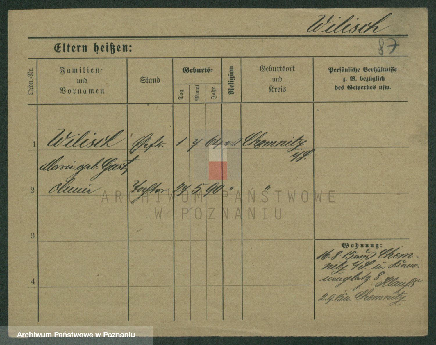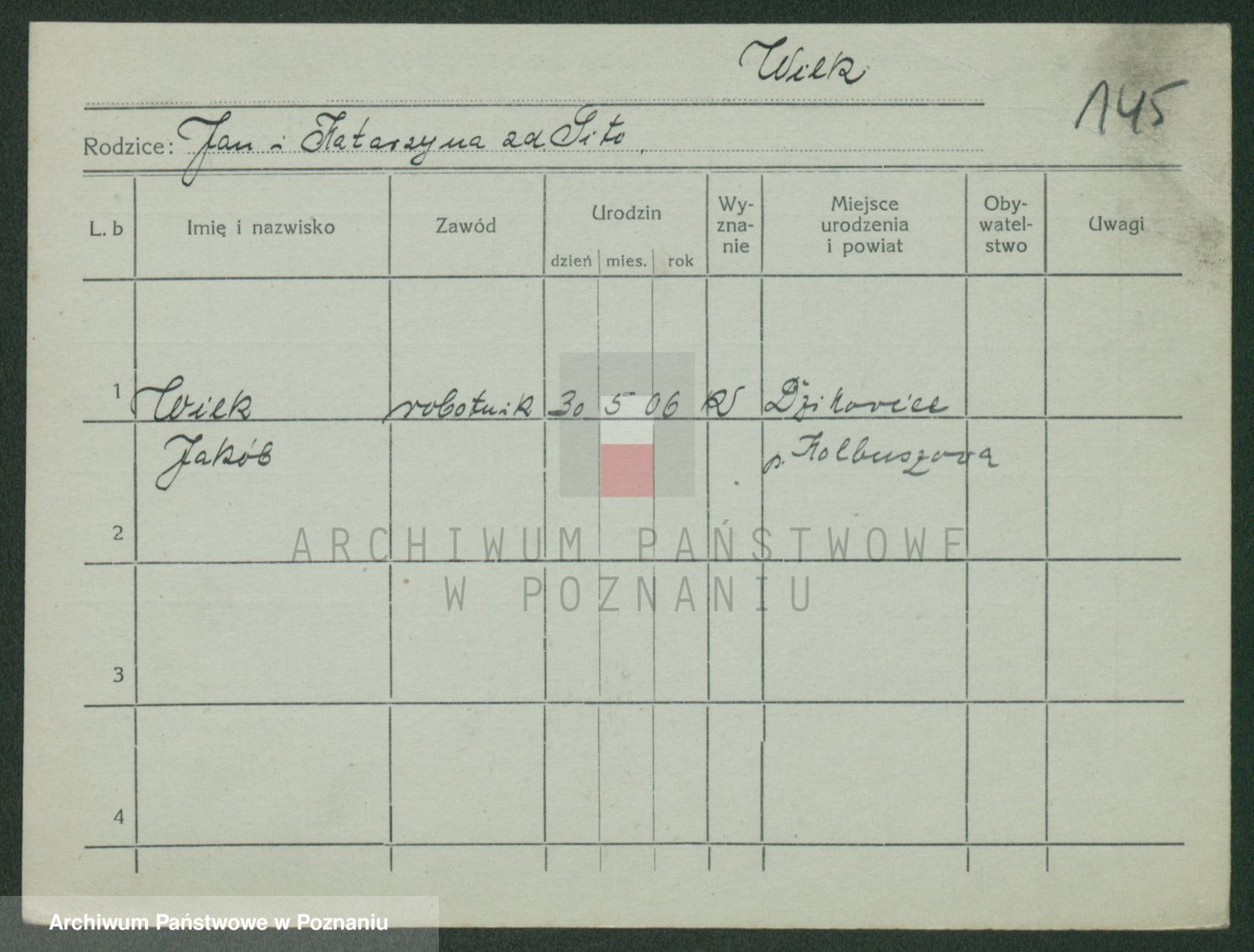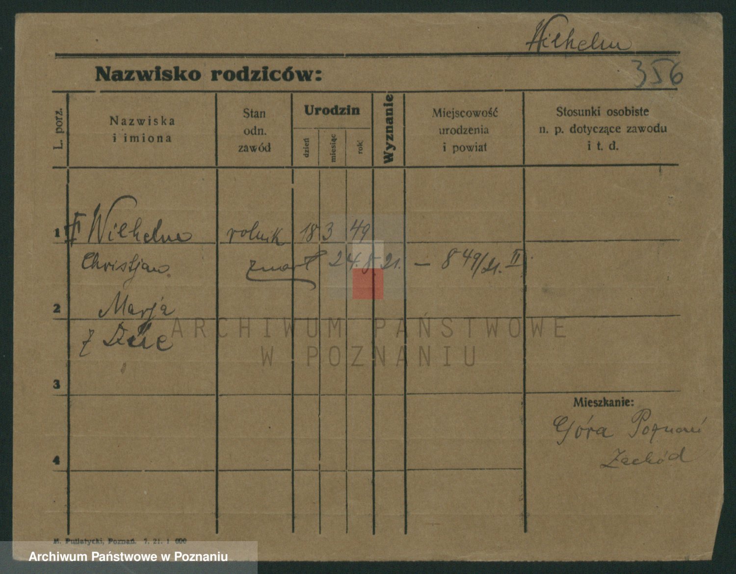 Wilke (albo Wilks) później zam. Tyczynski, Marianna