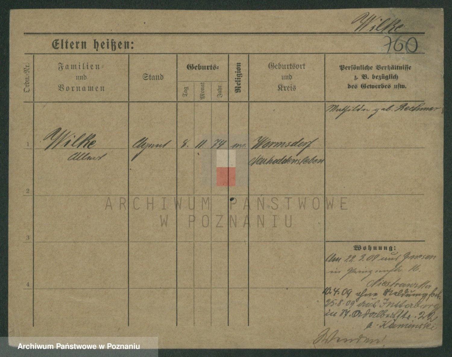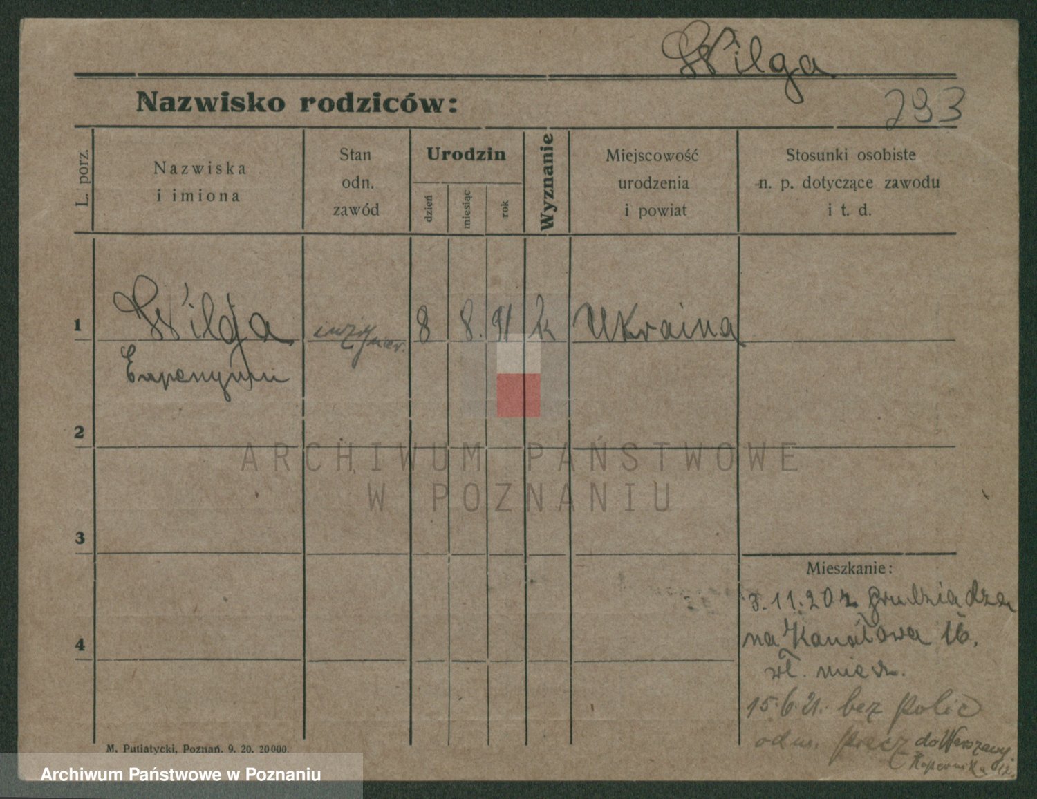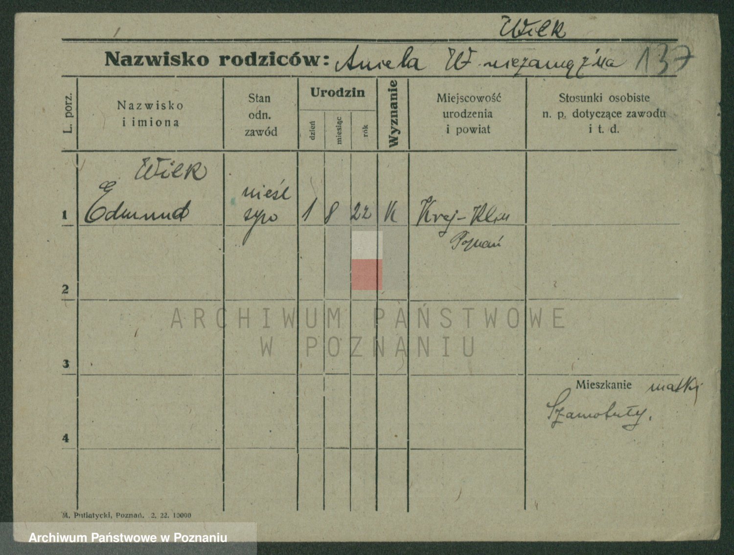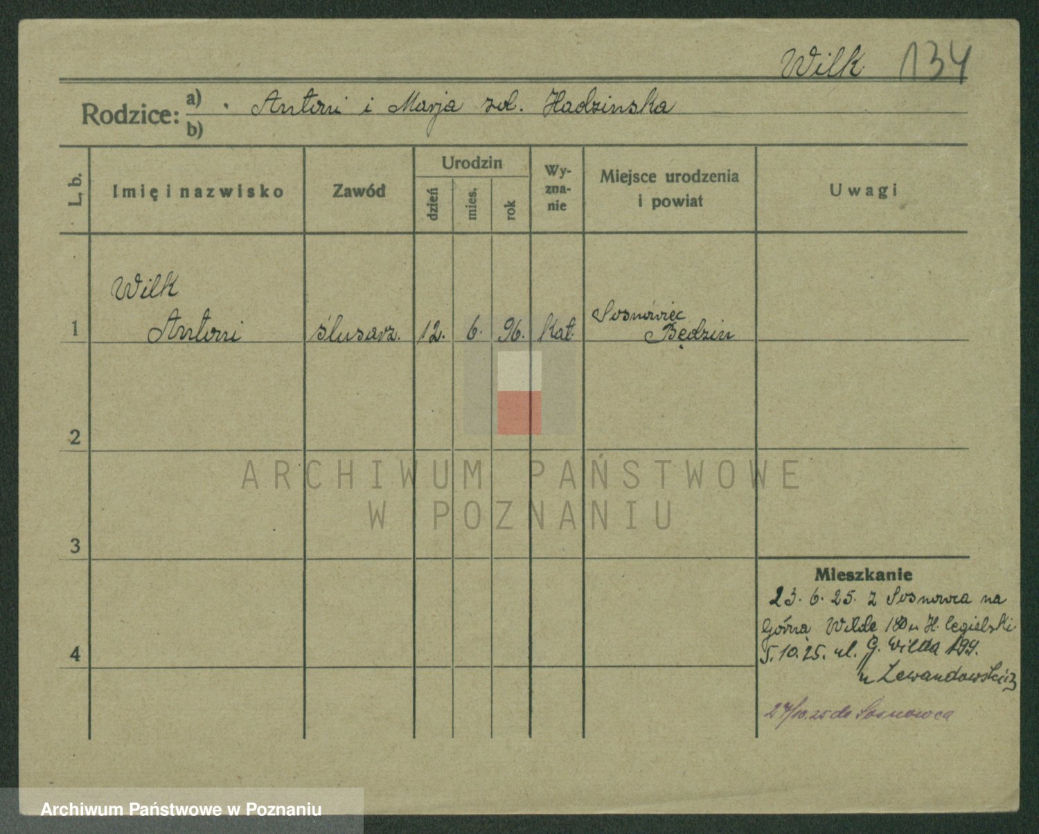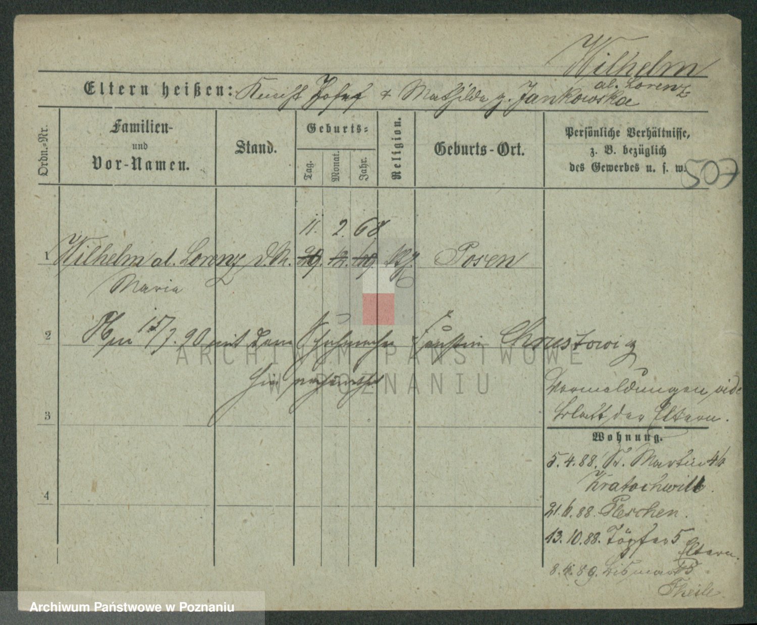 Wilke (albo Wilks) później zam. Tyczynski, Marianna