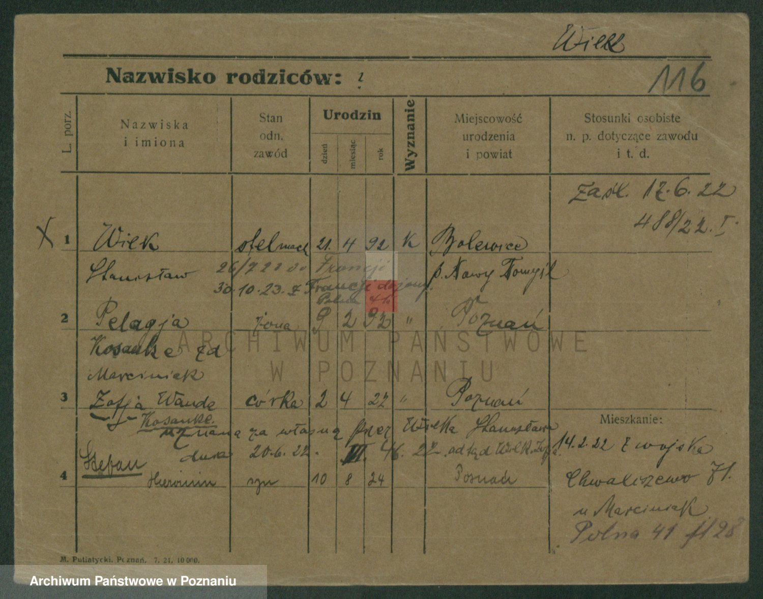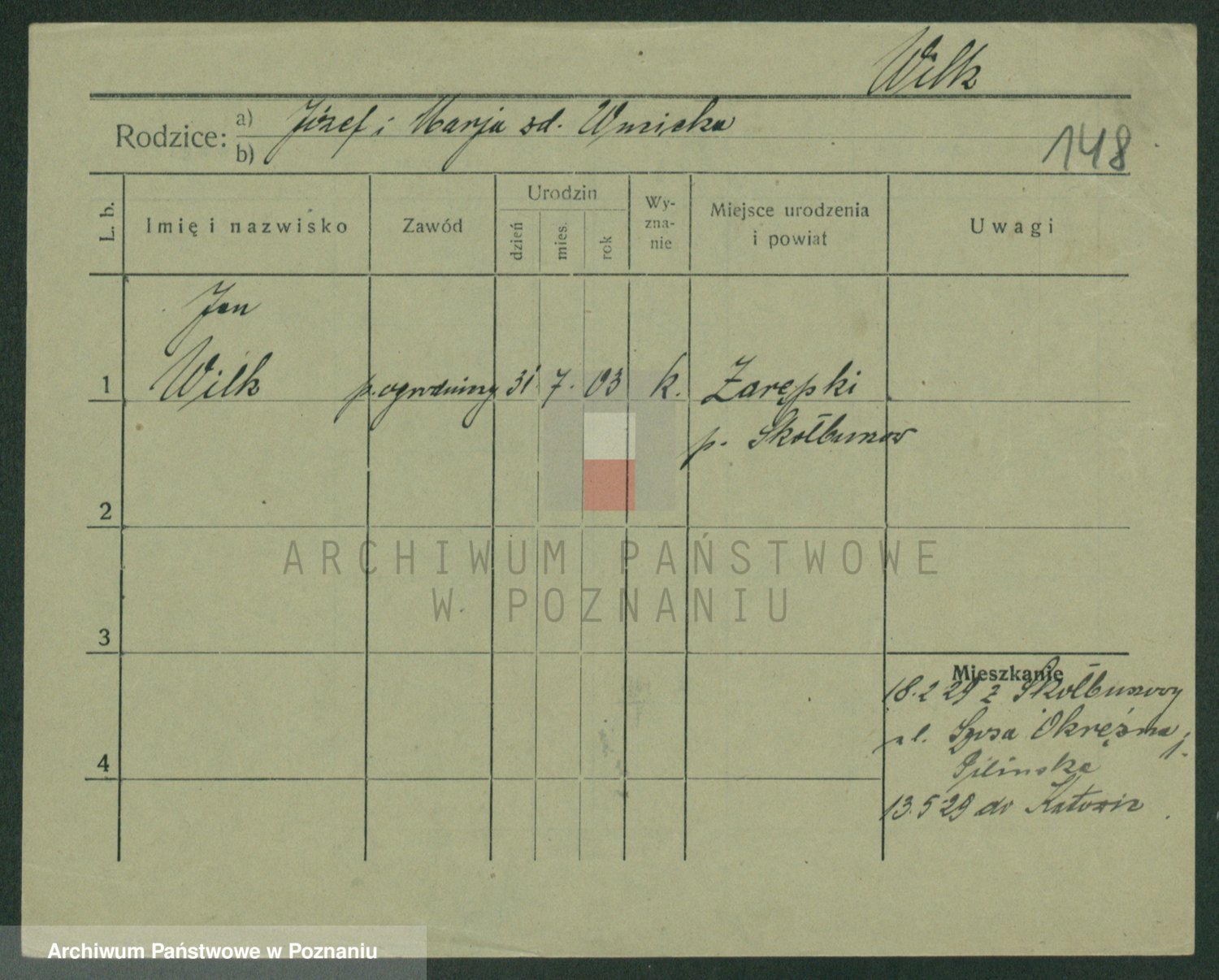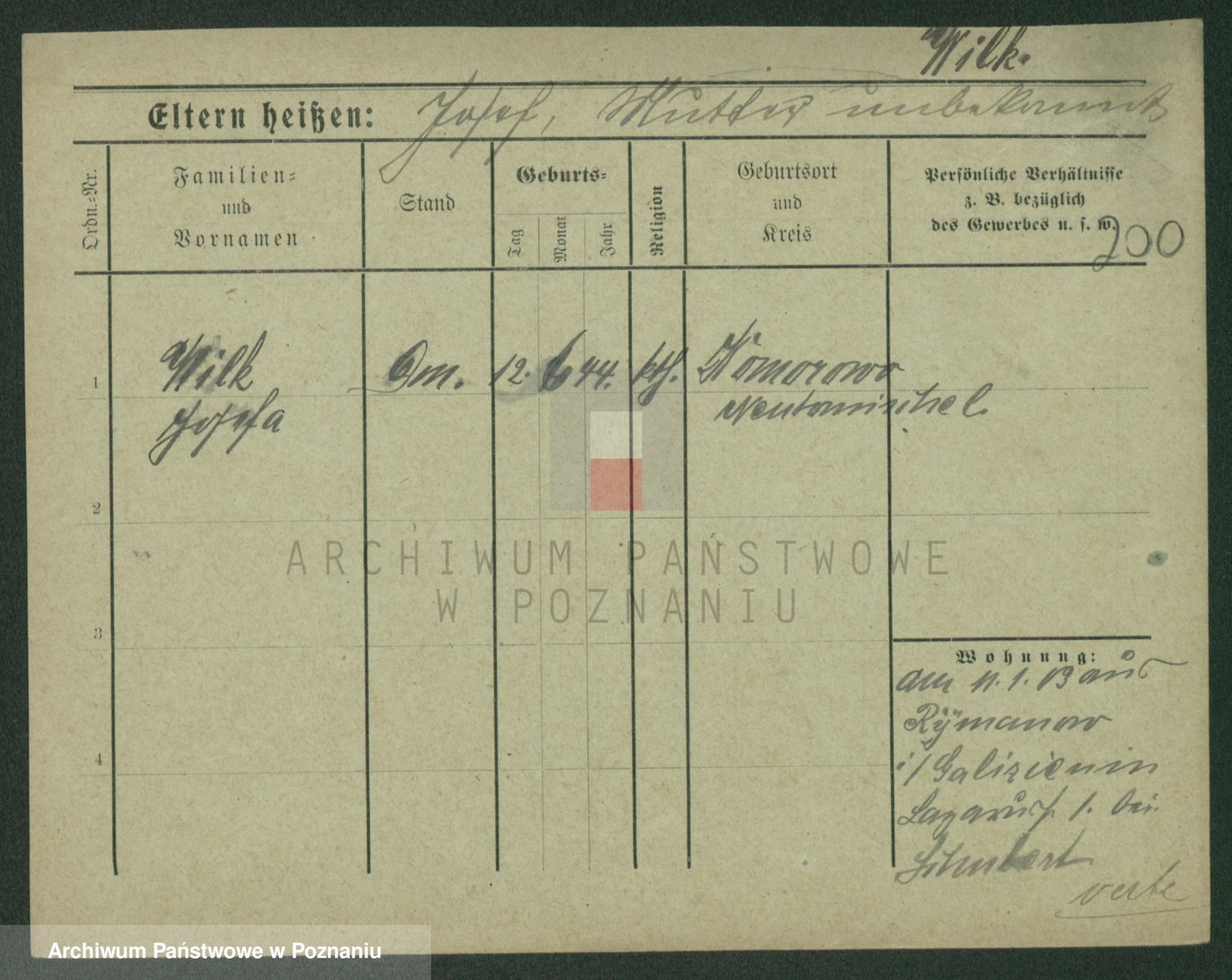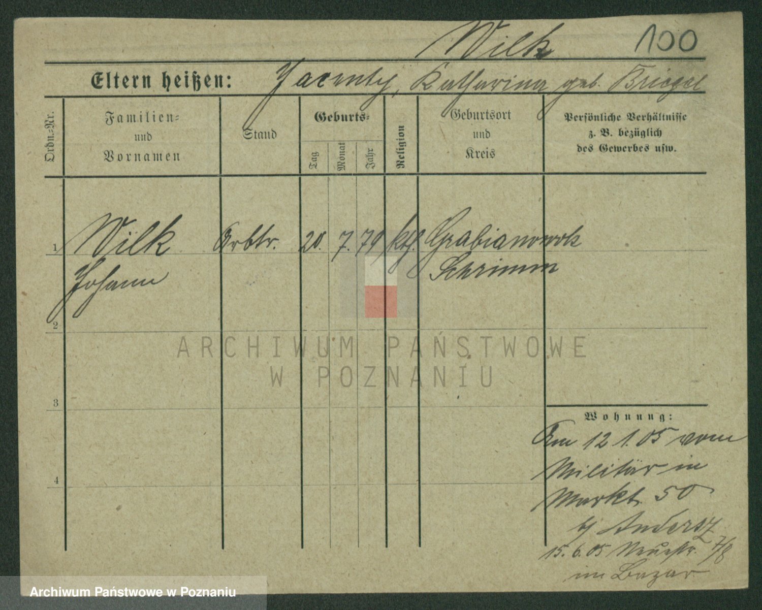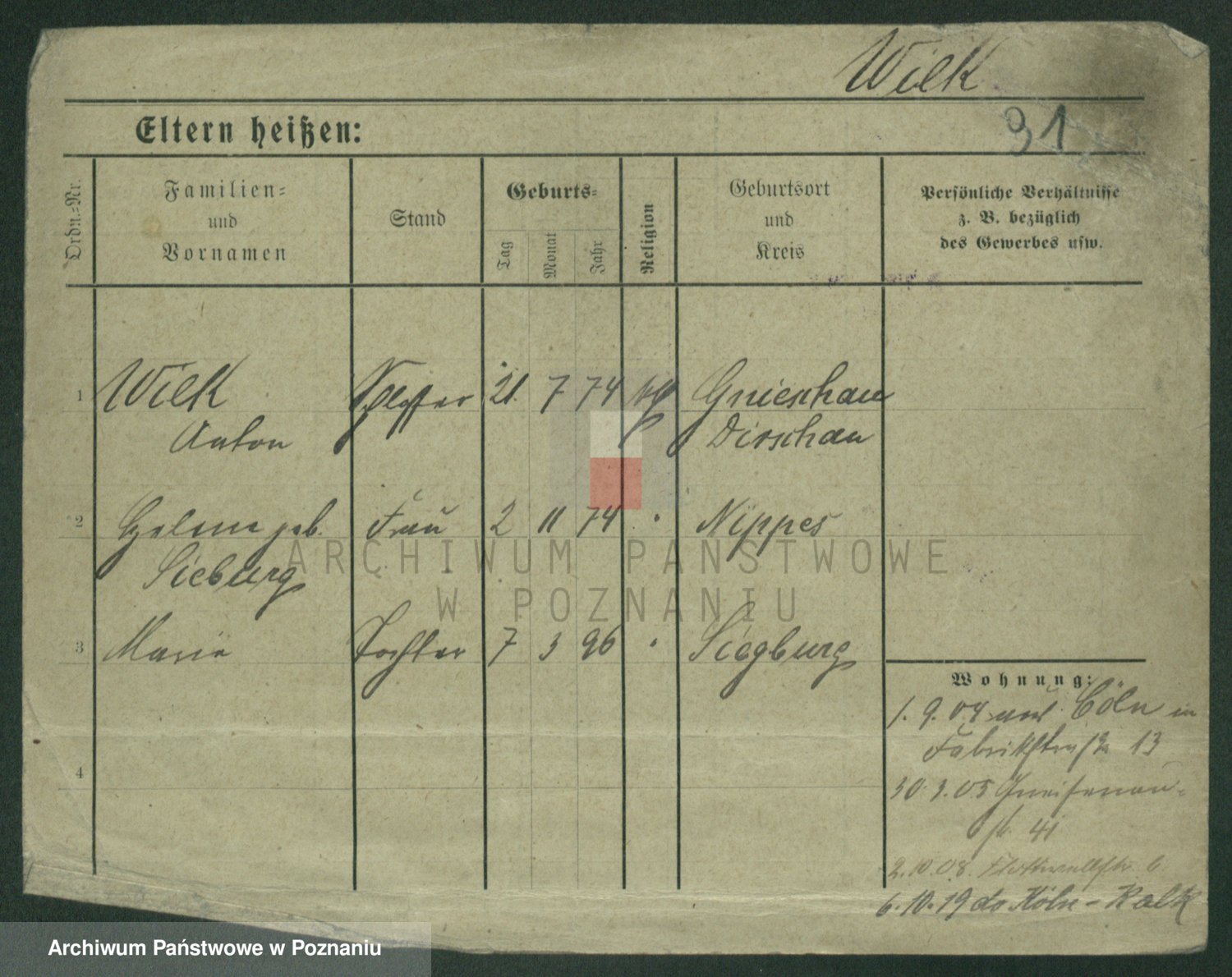 Wilke (albo Wilks) później zam. Tyczynski, Marianna