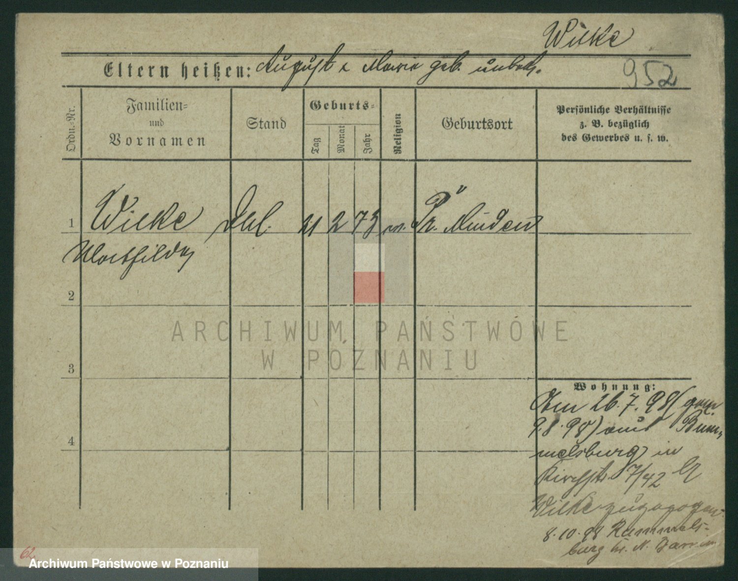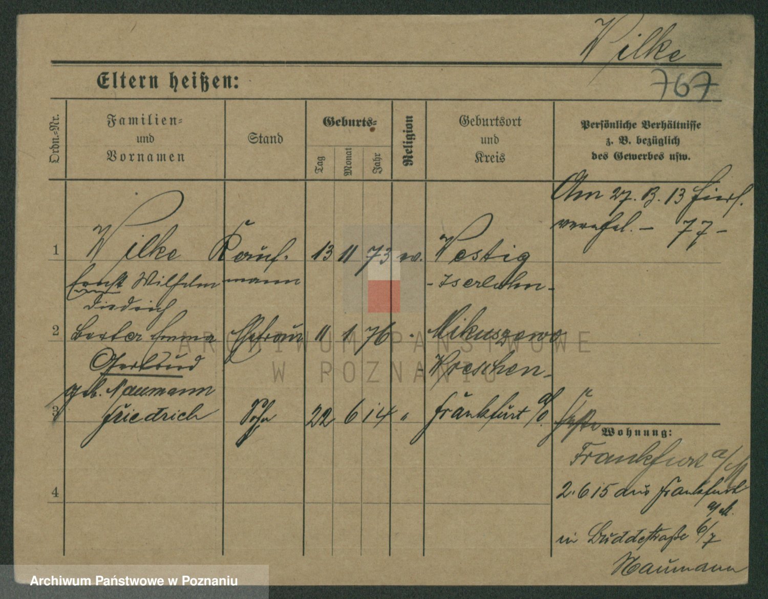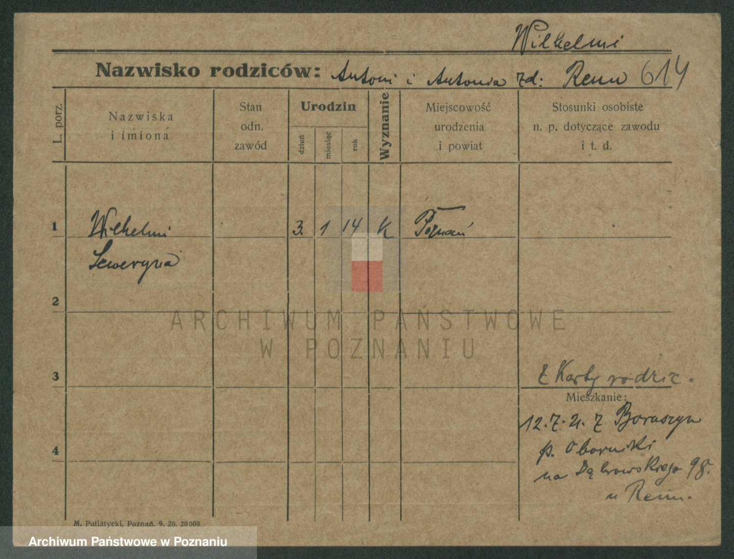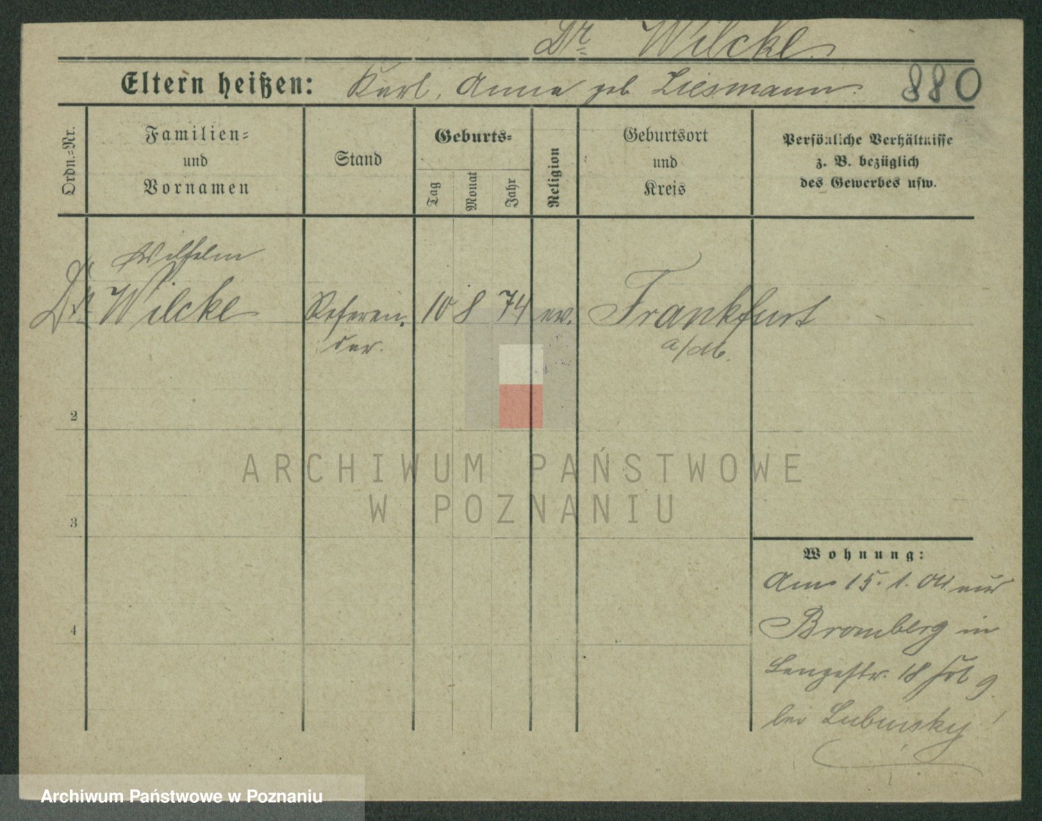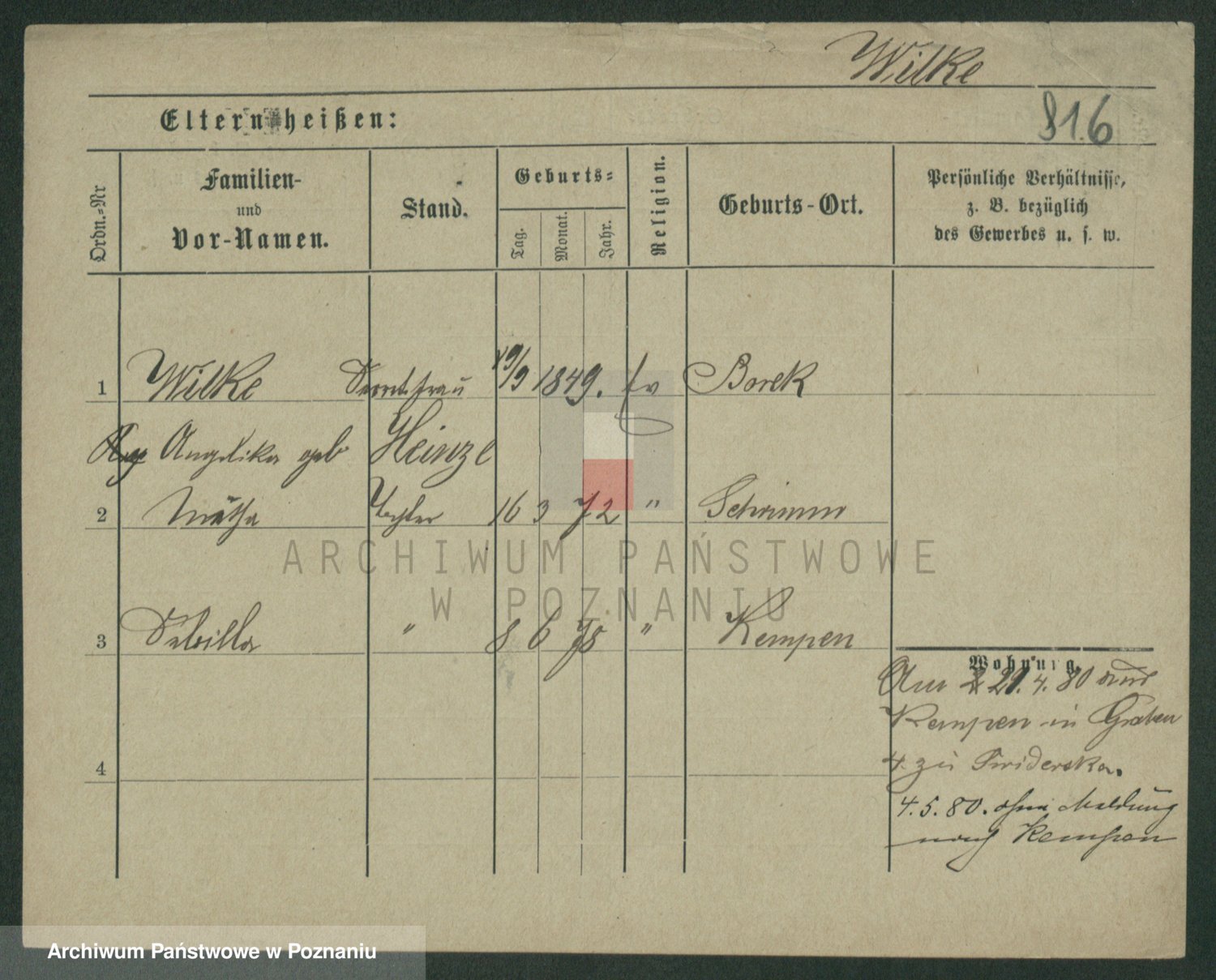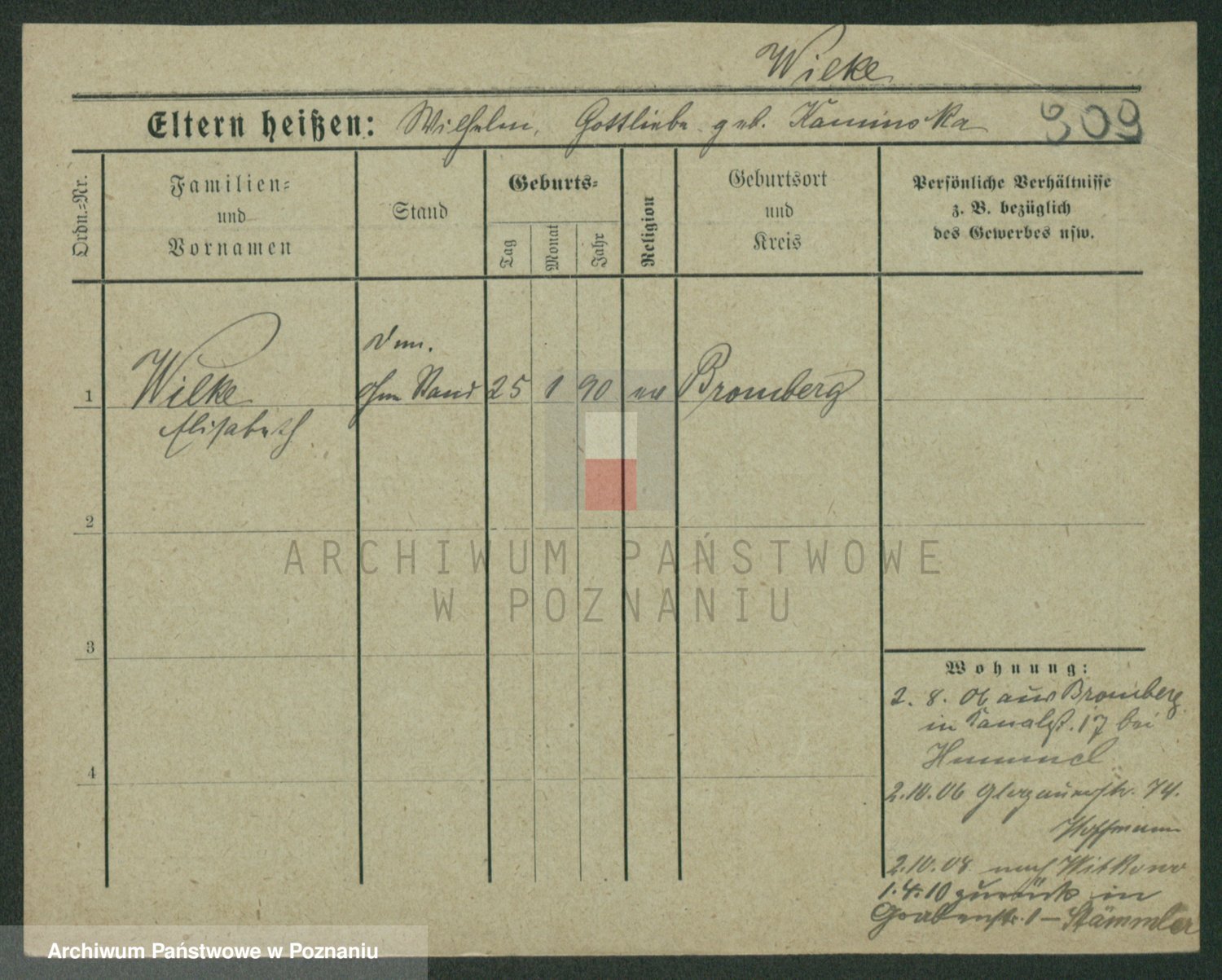 Wilke (albo Wilks) później zam. Tyczynski, Marianna