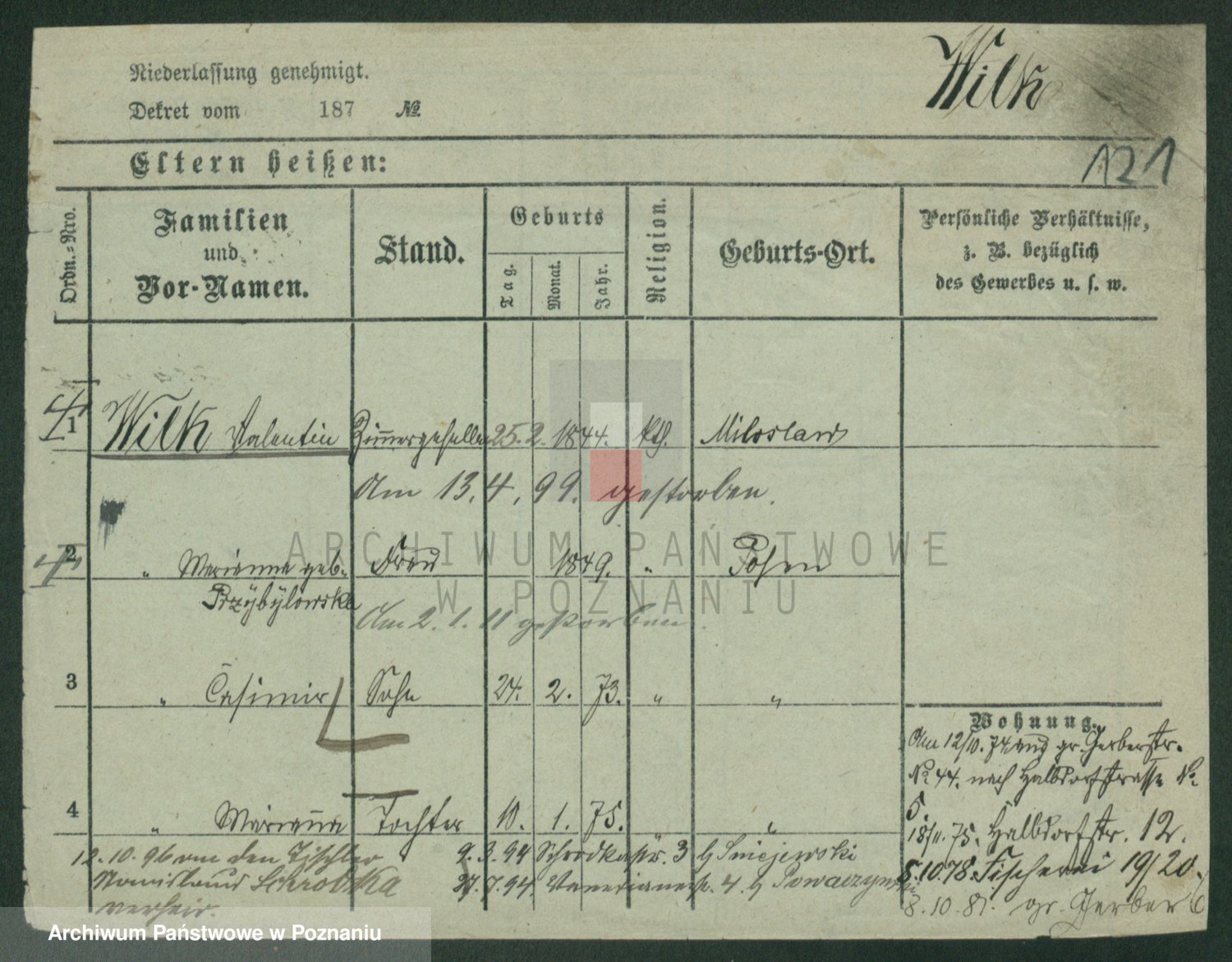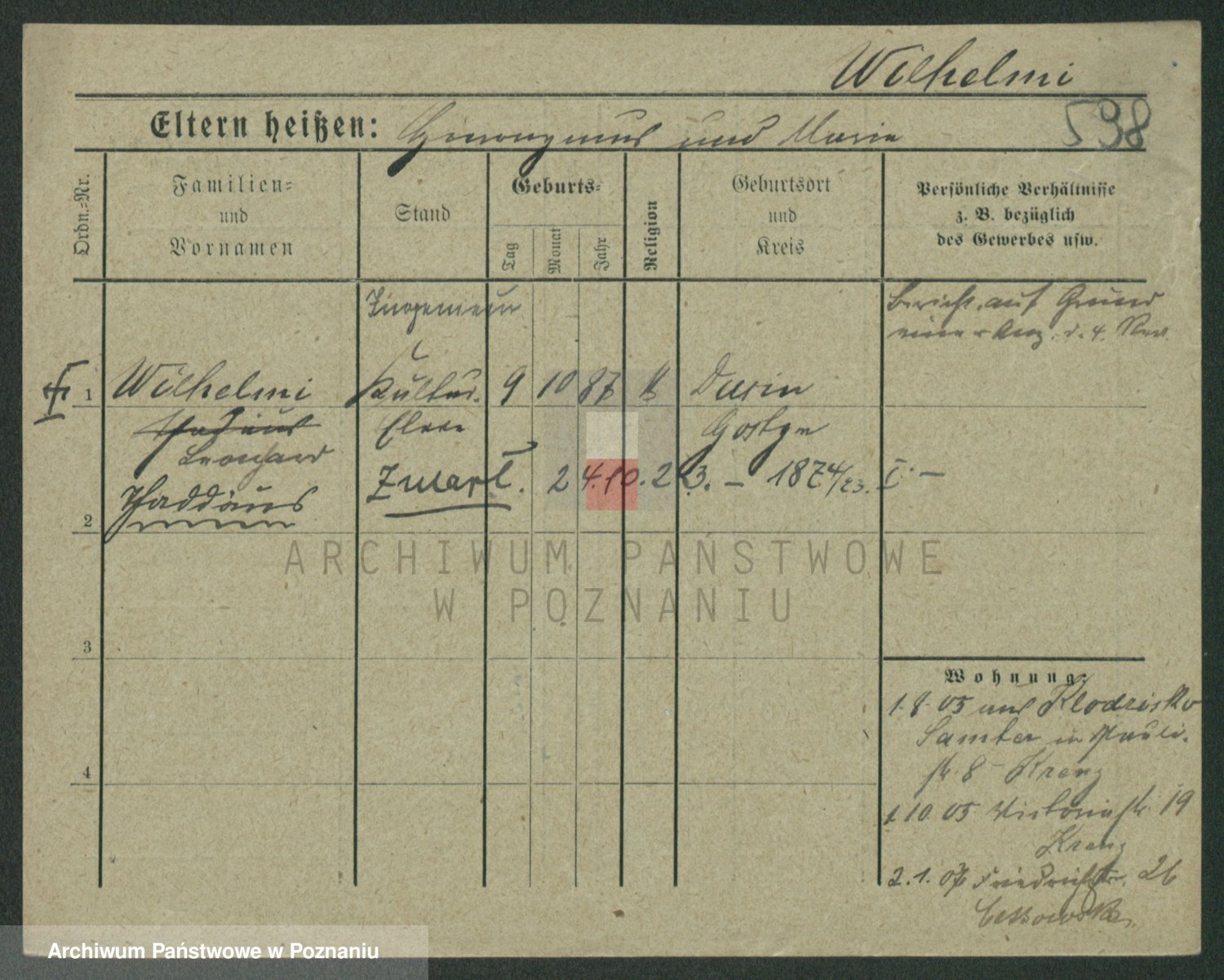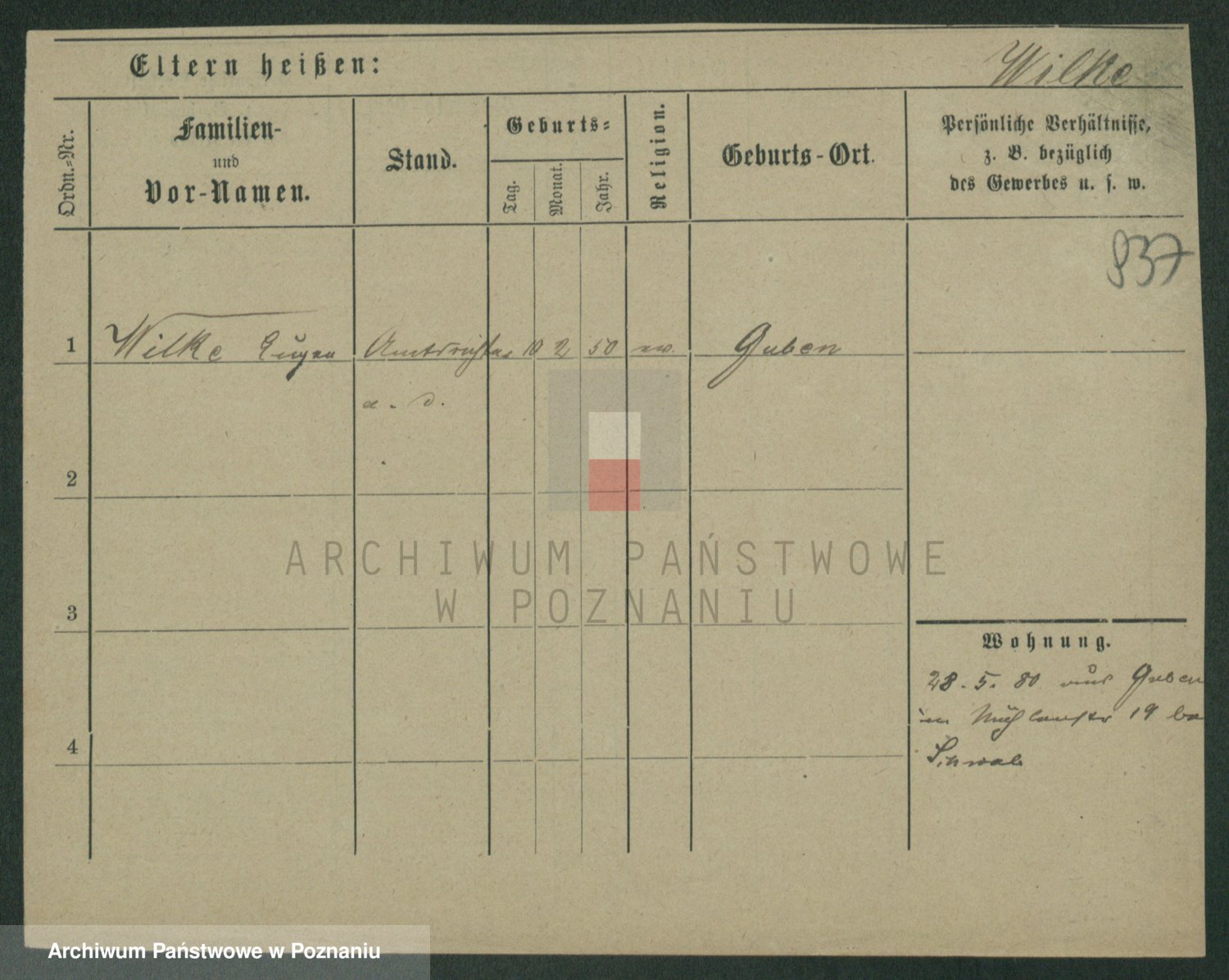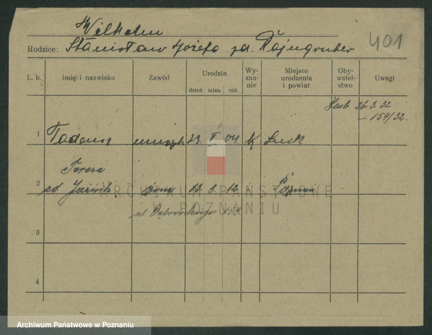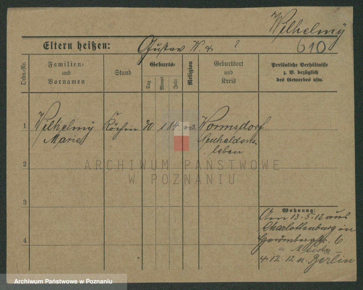 Wilke (albo Wilks) później zam. Tyczynski, Marianna