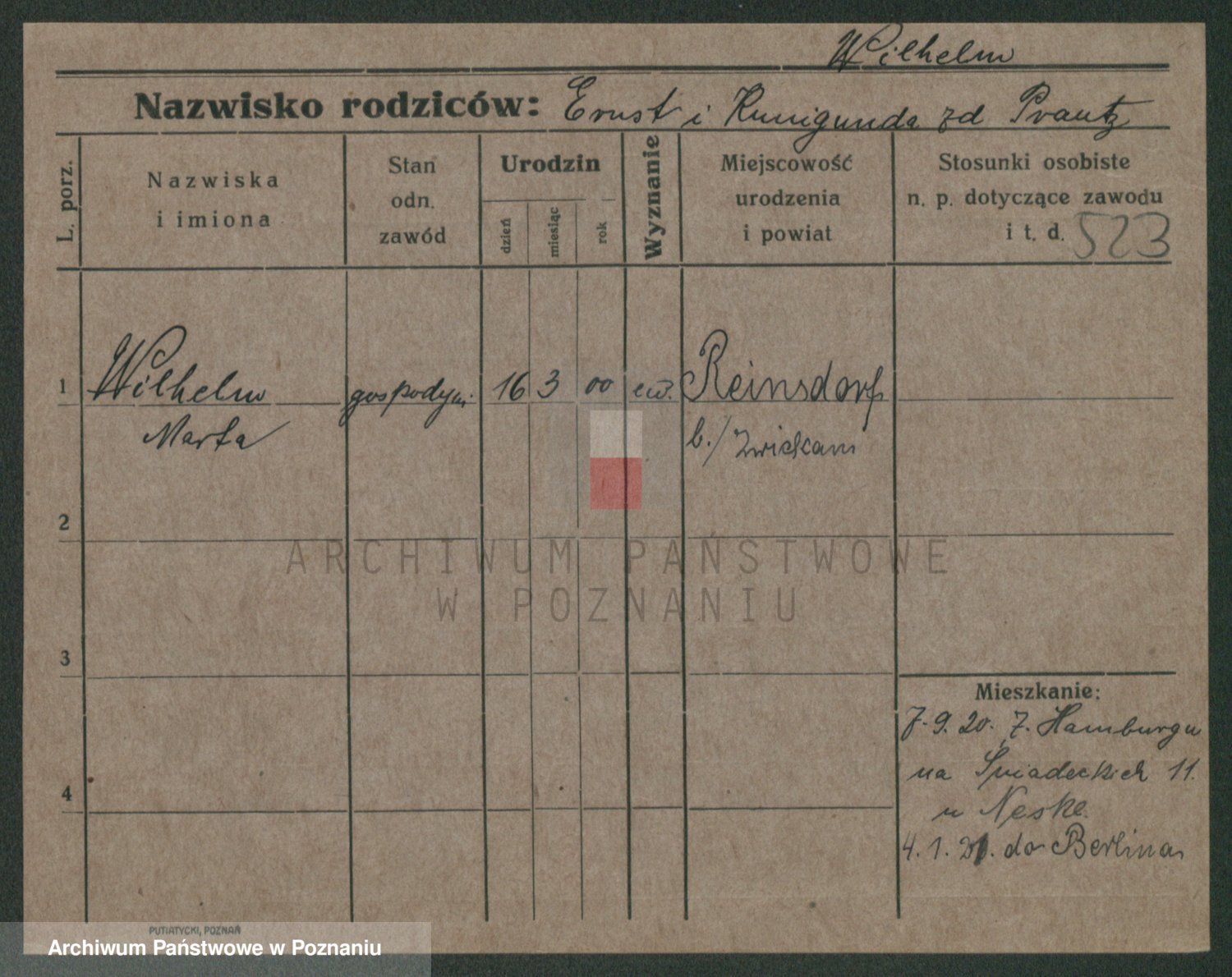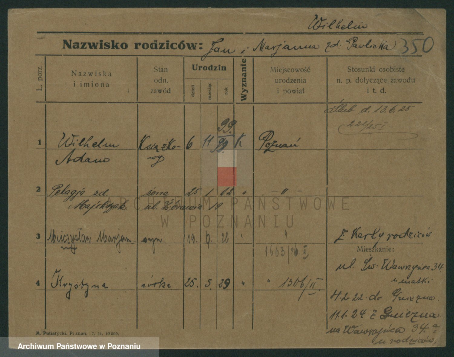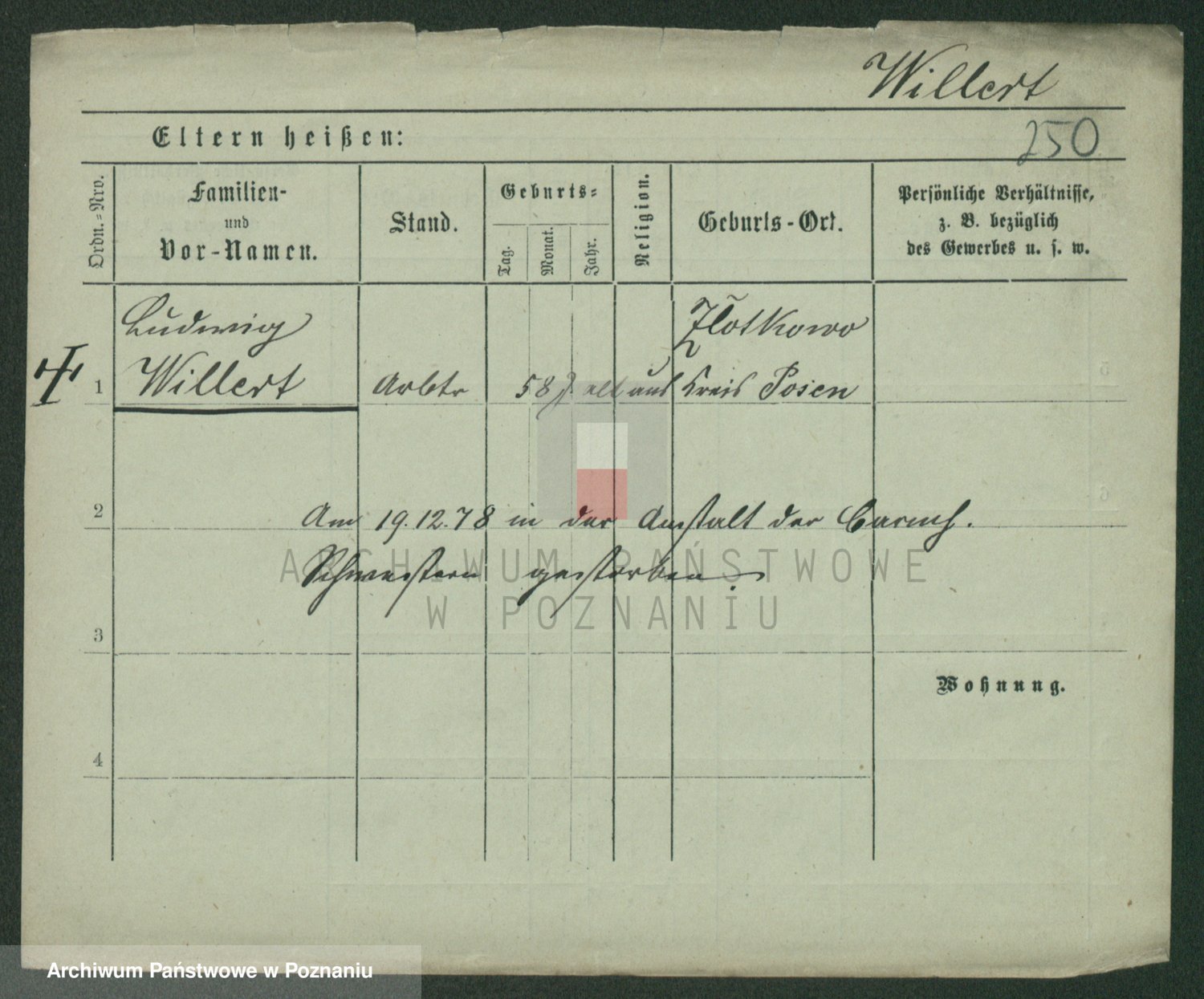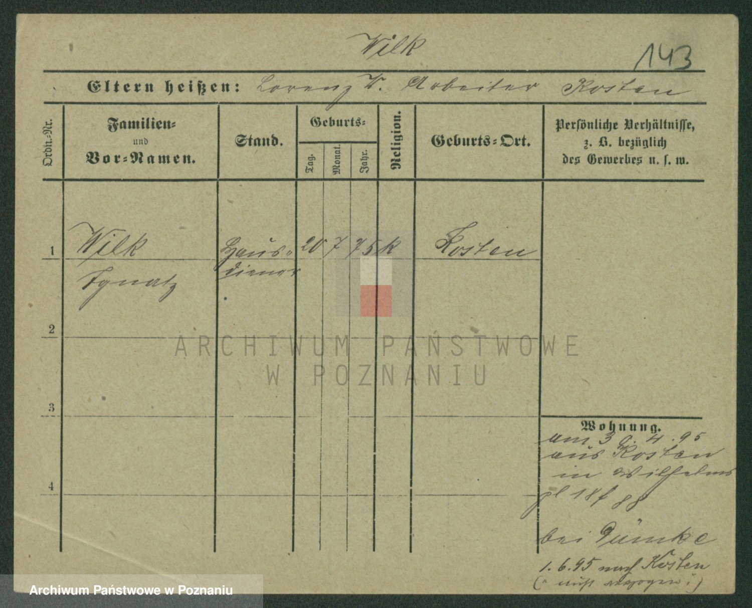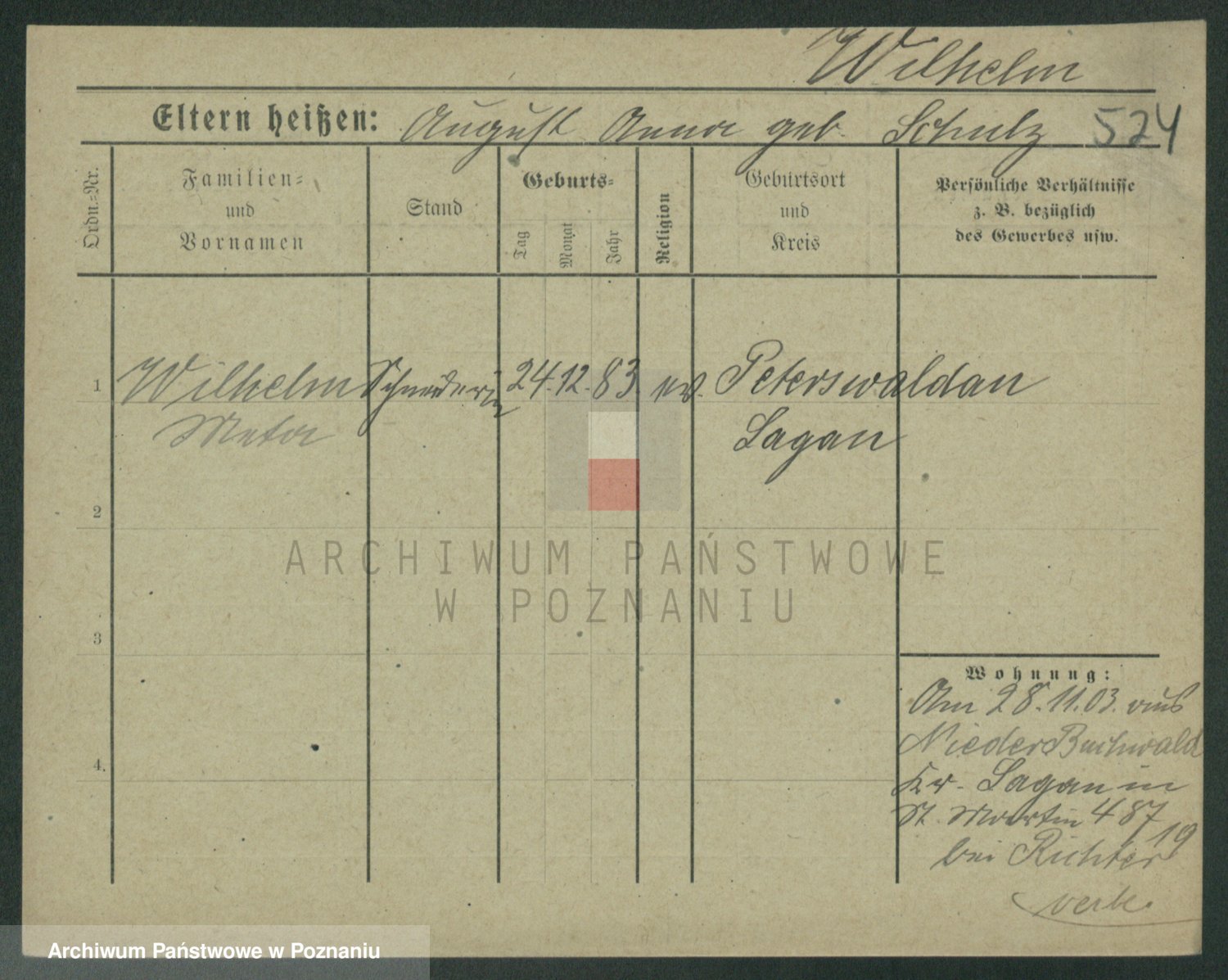 Wilke (albo Wilks) później zam. Tyczynski, Marianna