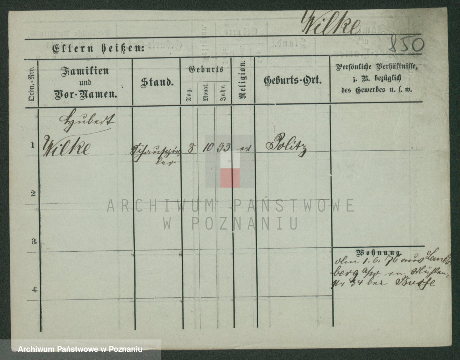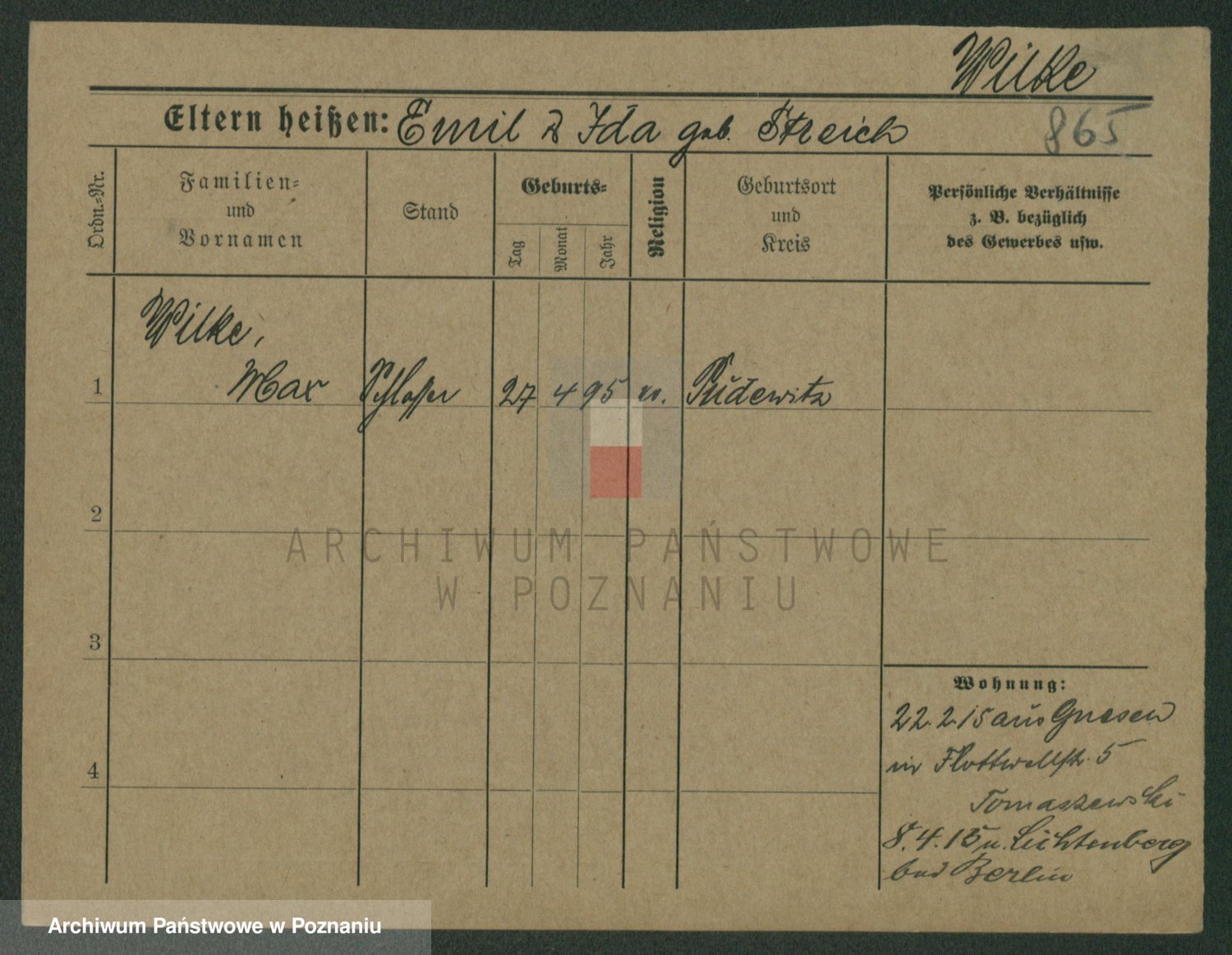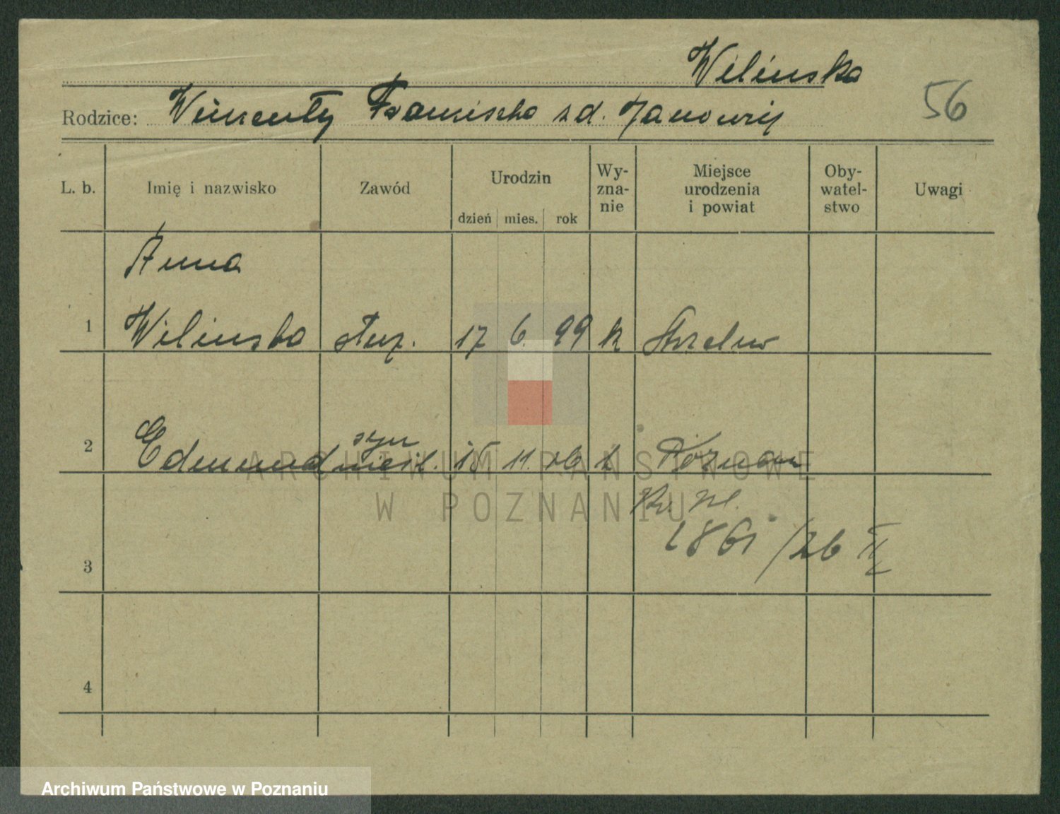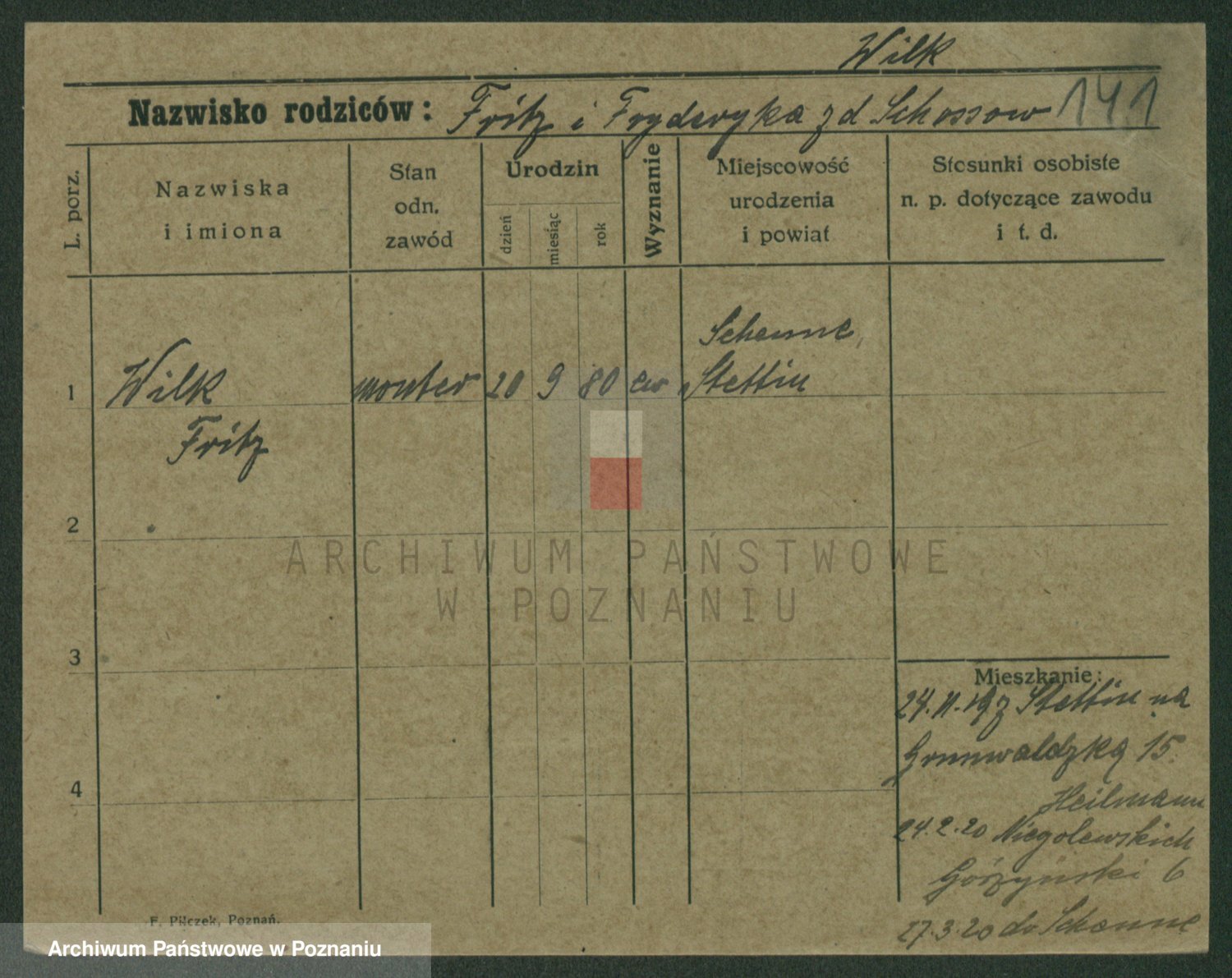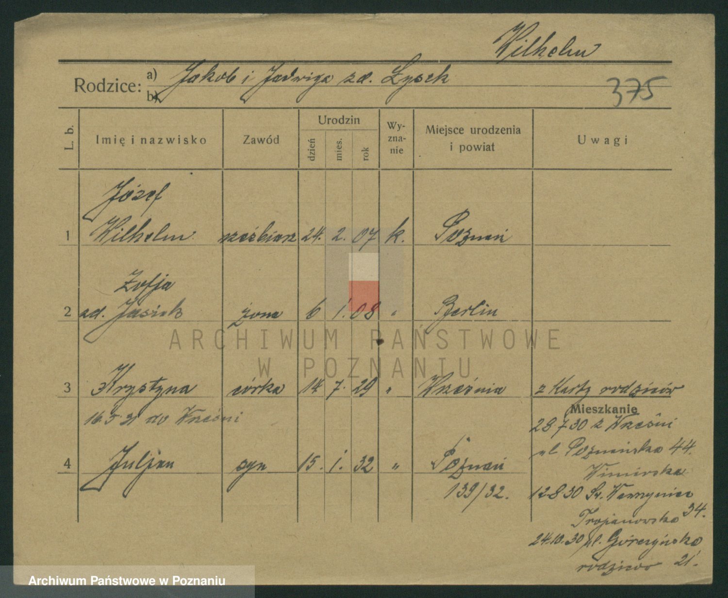 Wilke (albo Wilks) później zam. Tyczynski, Marianna