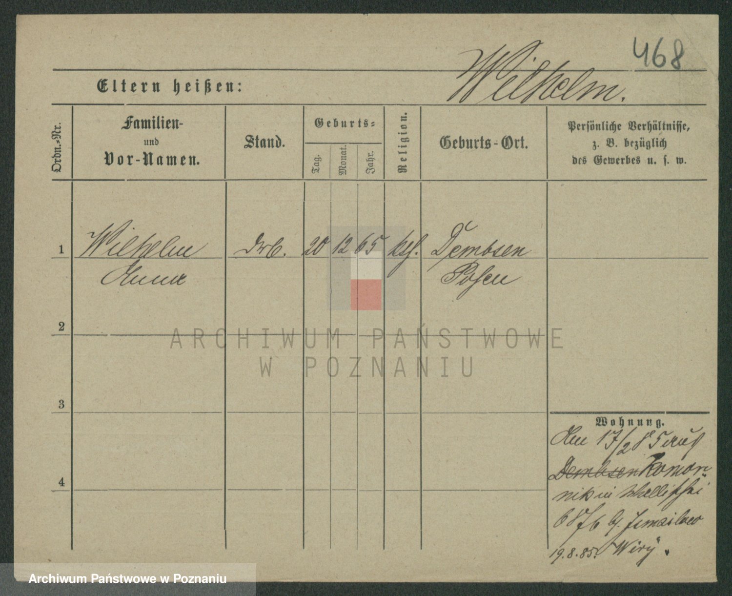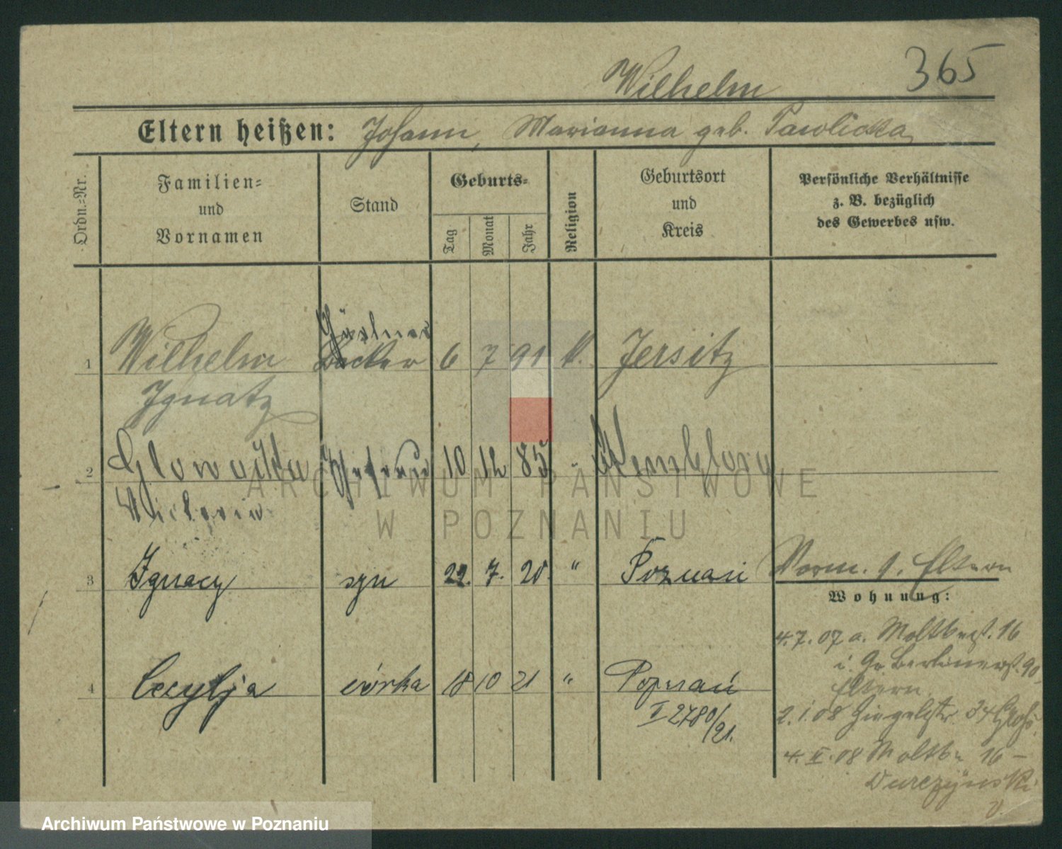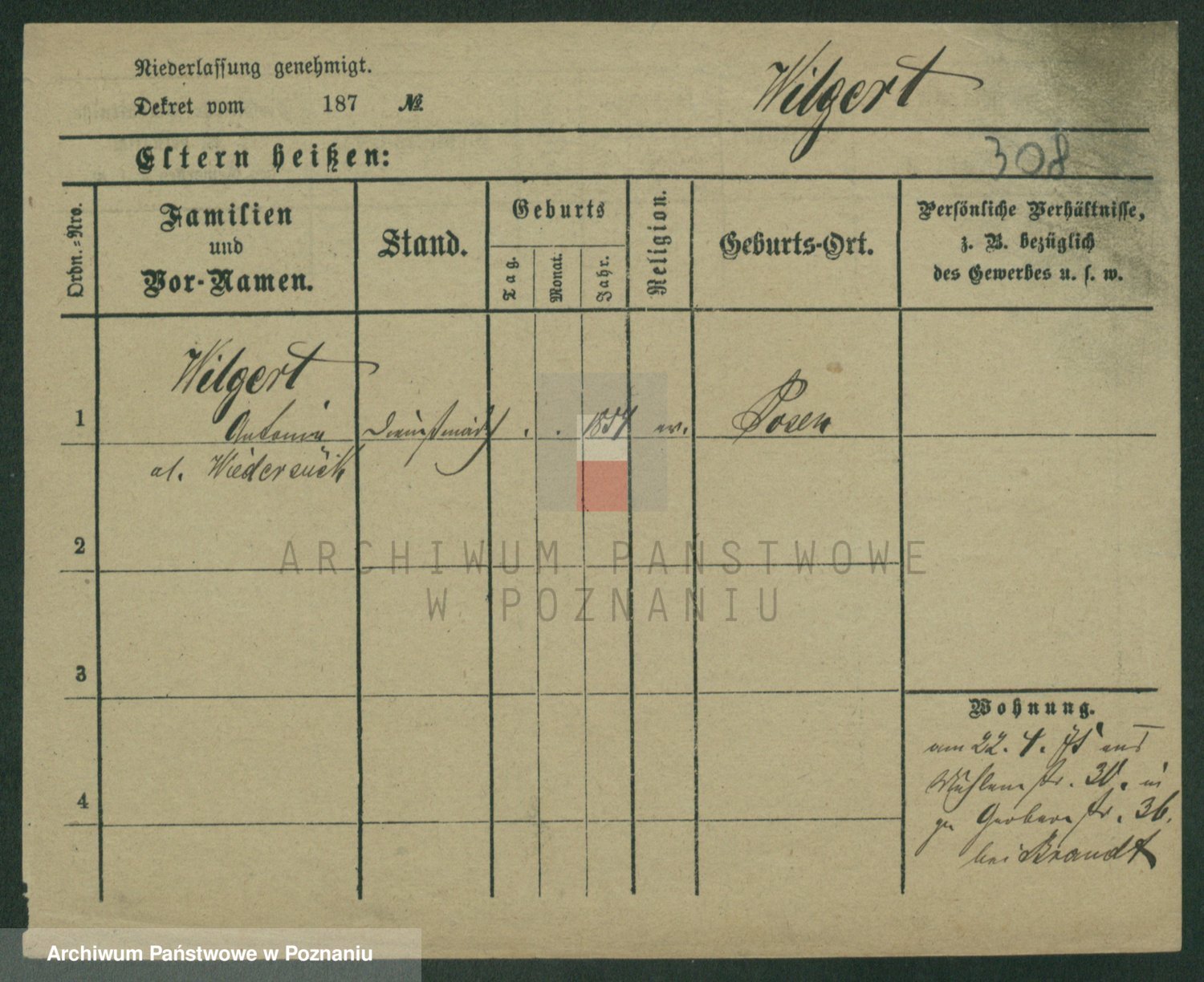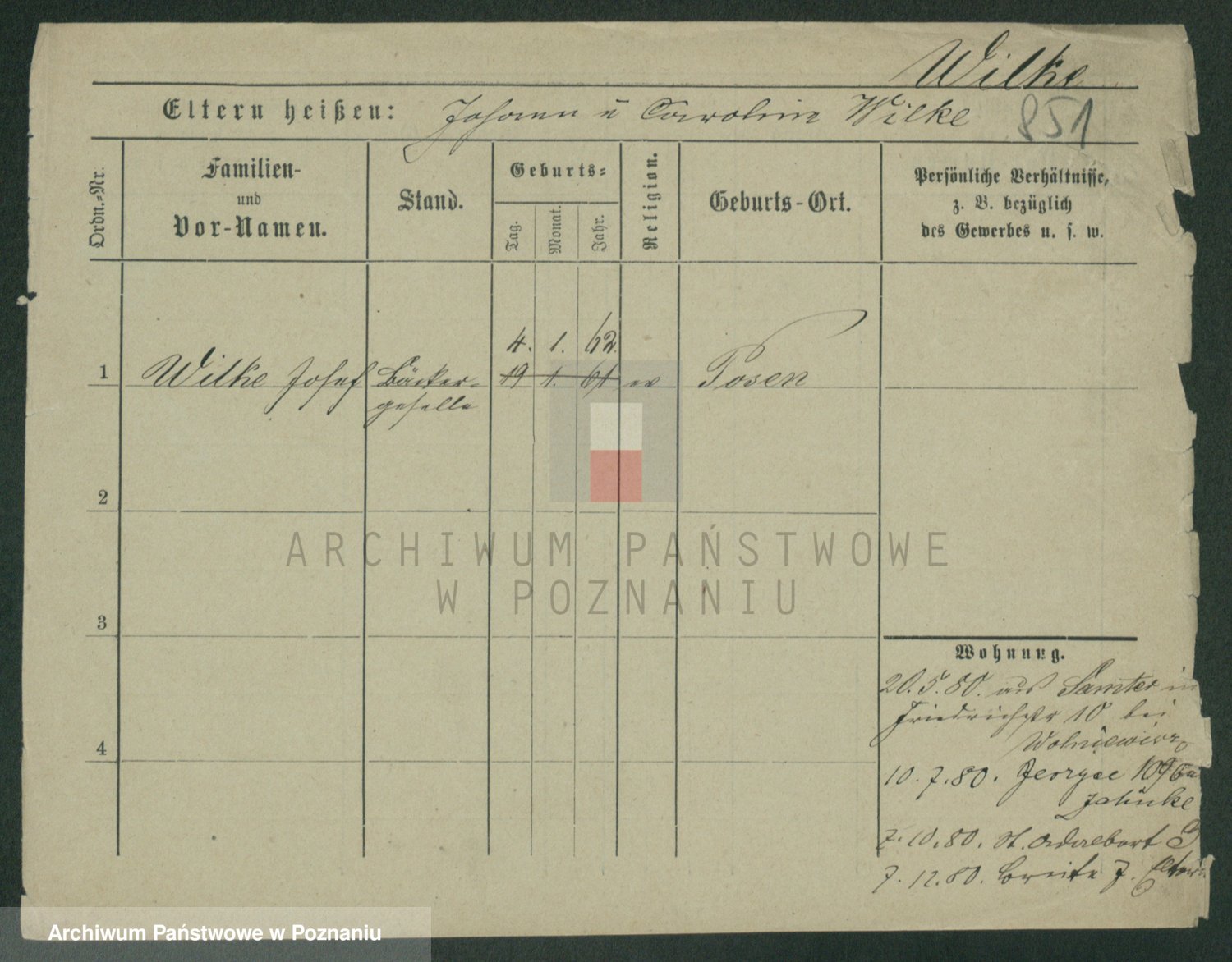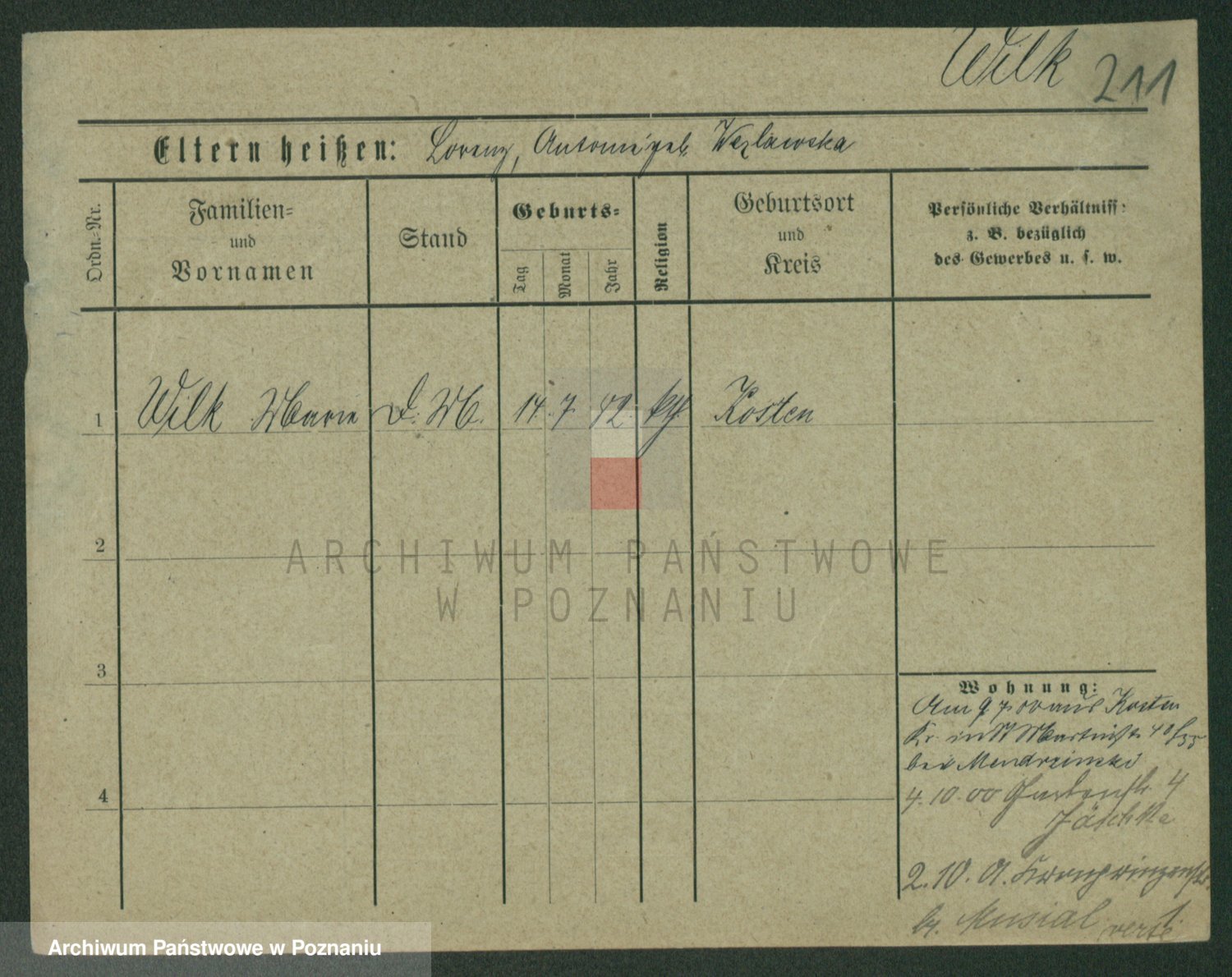 Wilke (albo Wilks) później zam. Tyczynski, Marianna
