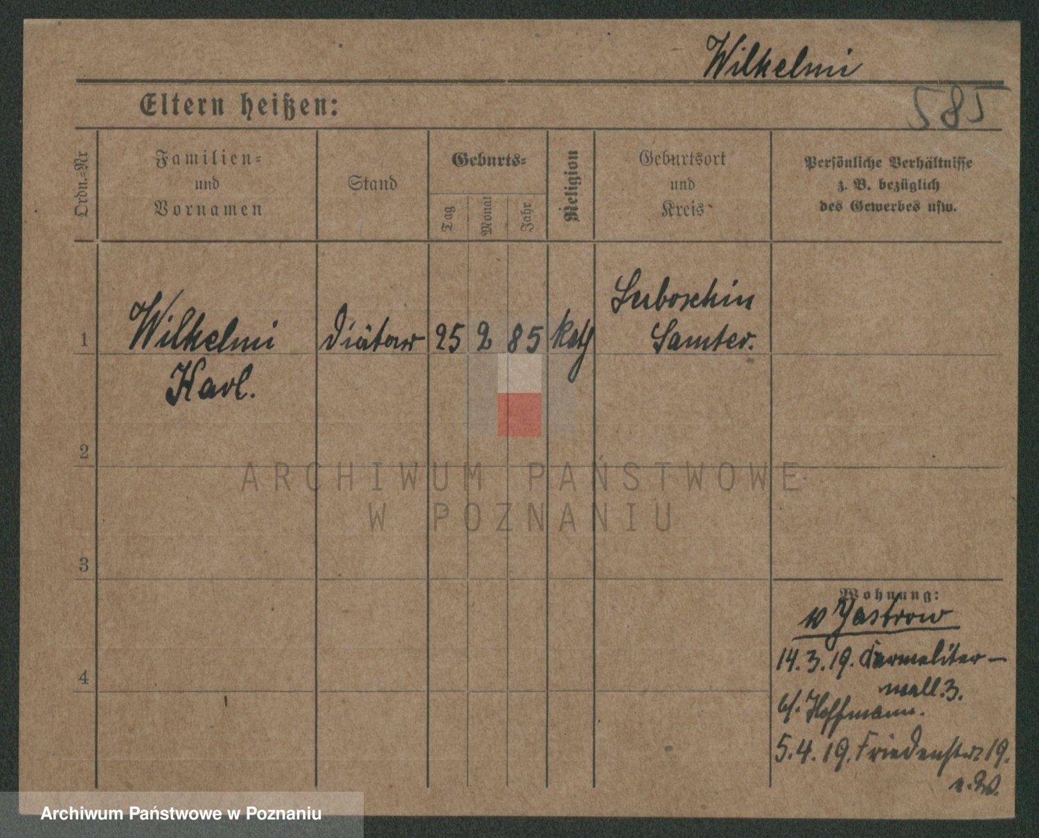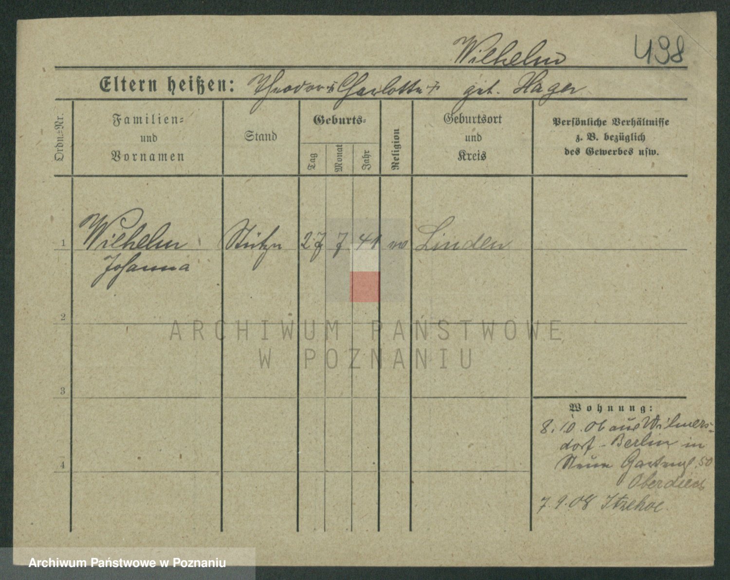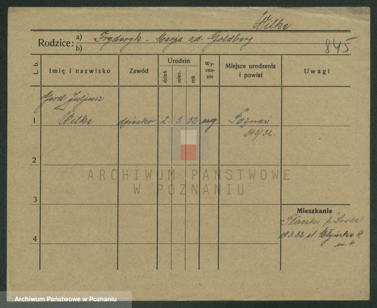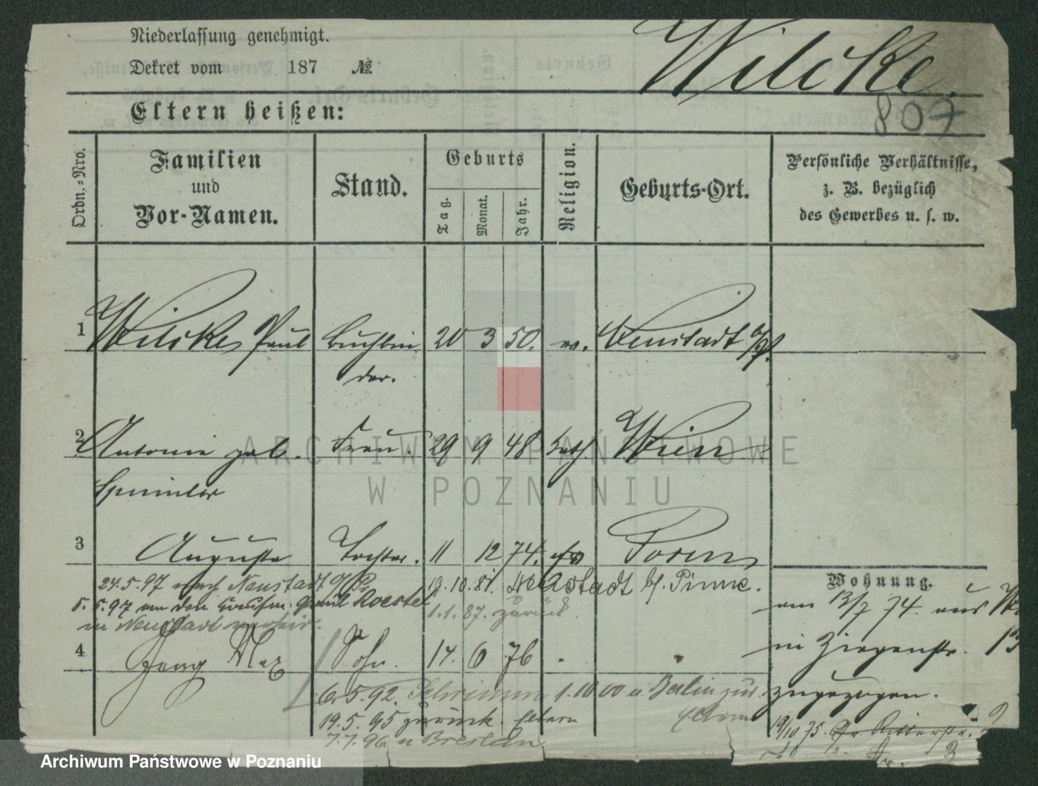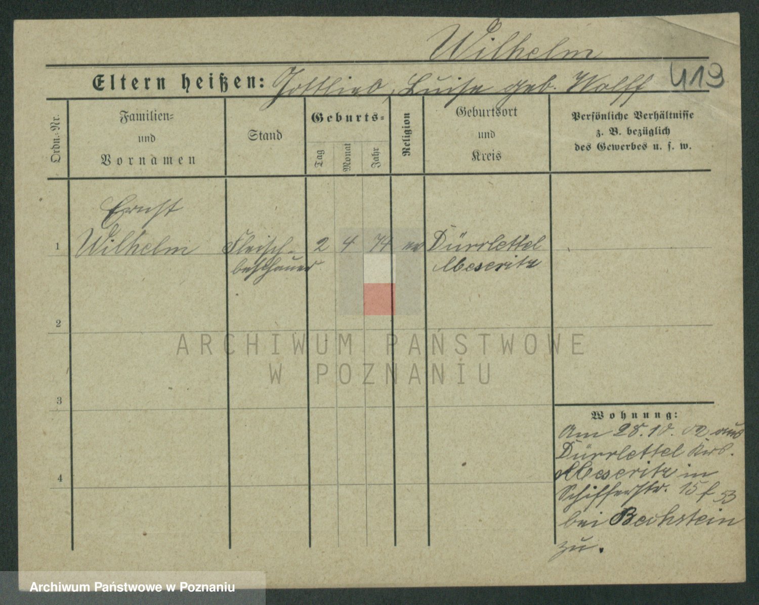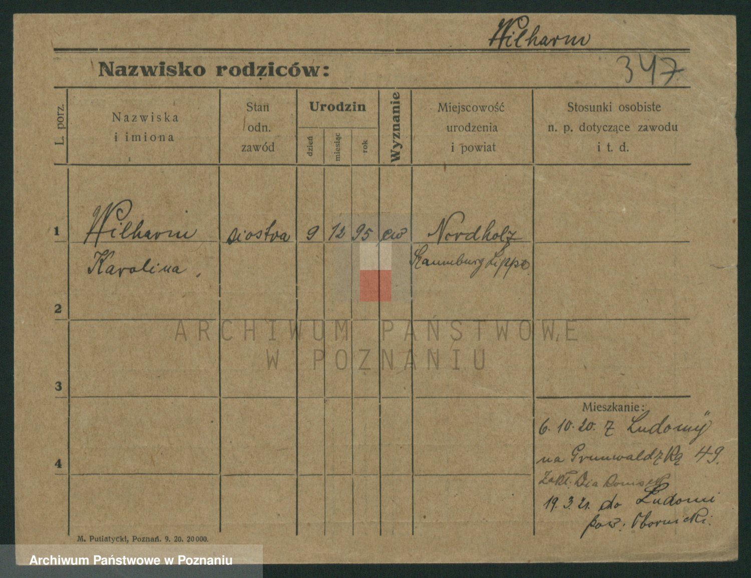 Wilke (albo Wilks) później zam. Tyczynski, Marianna