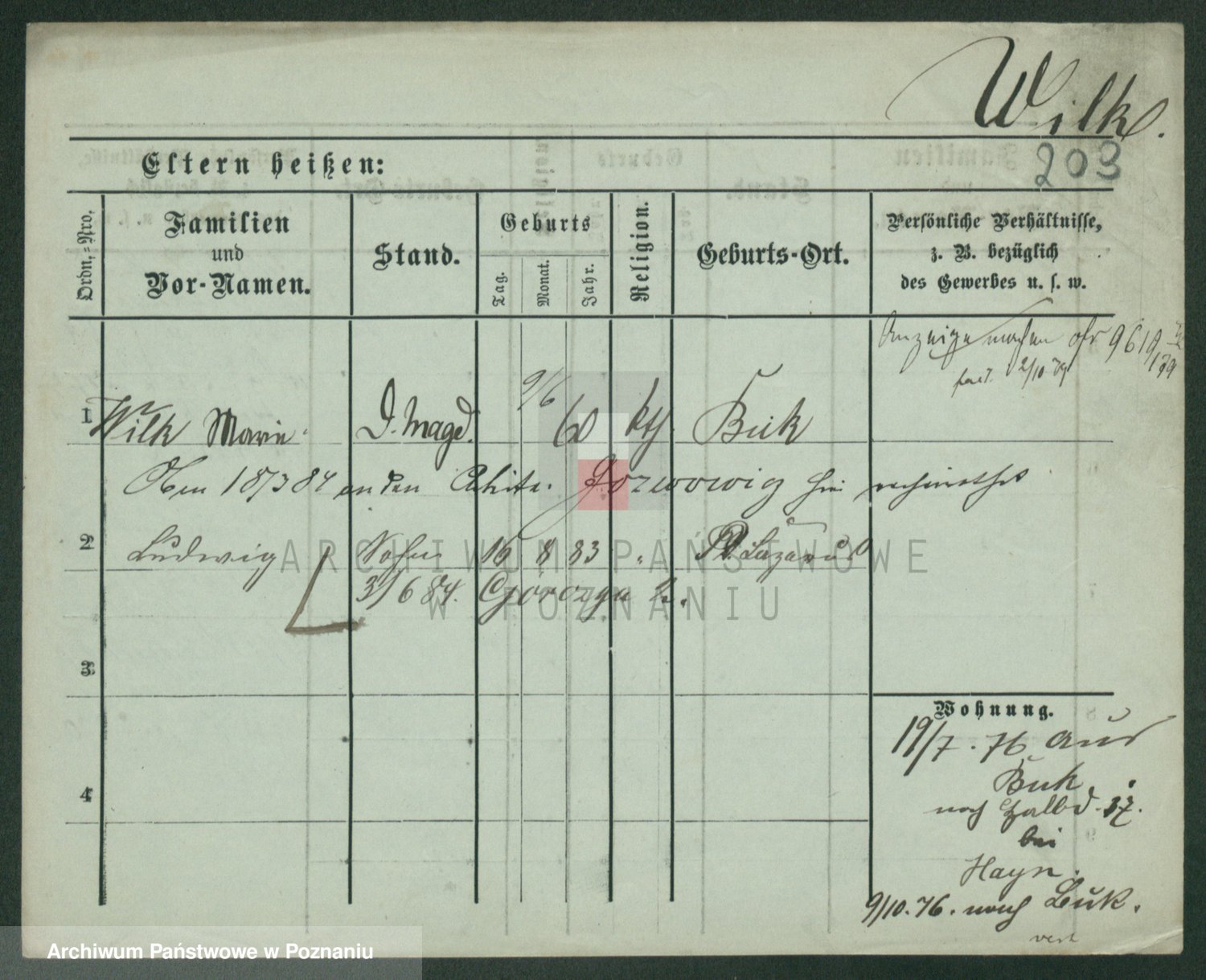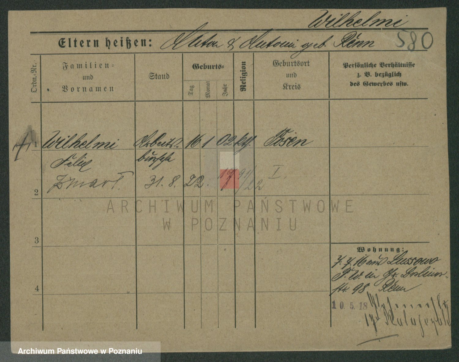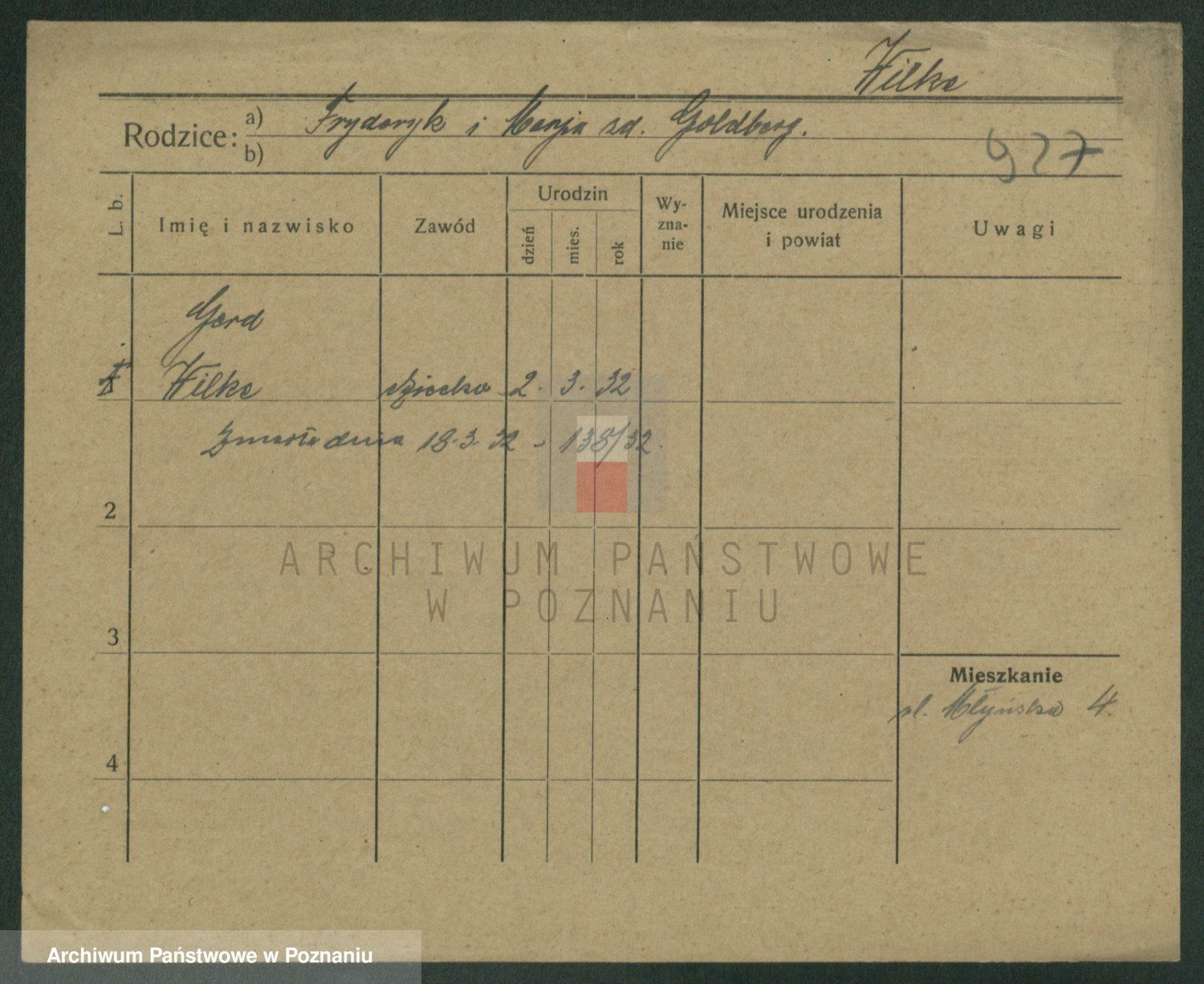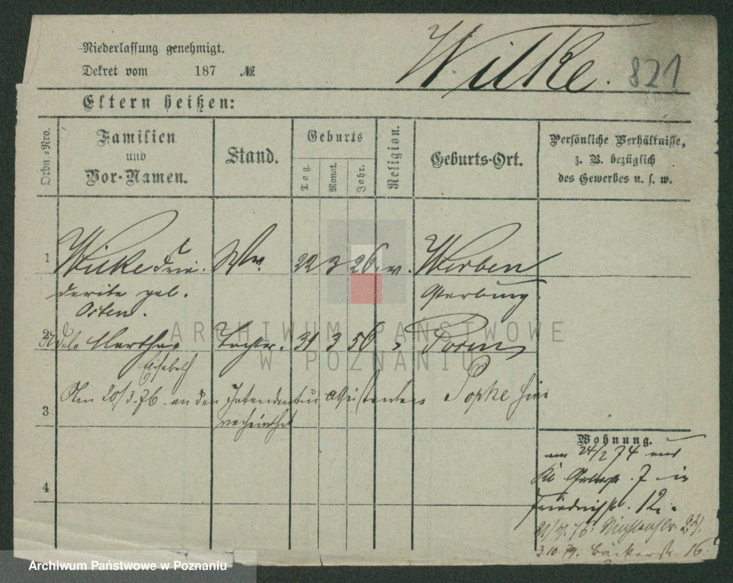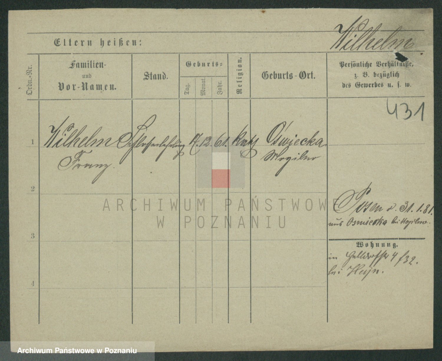 Wilke (albo Wilks) później zam. Tyczynski, Marianna