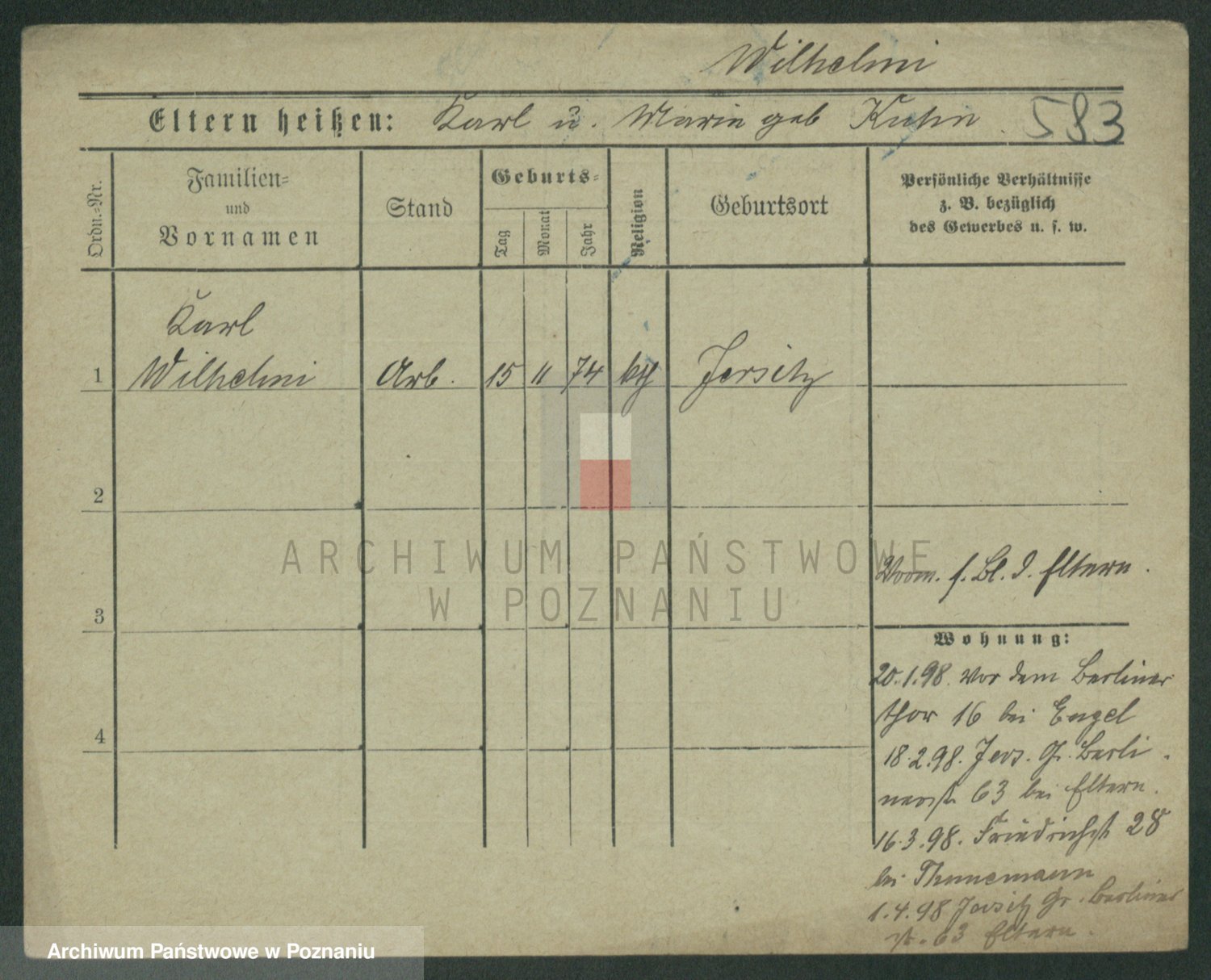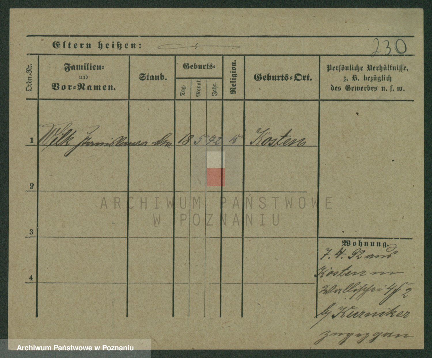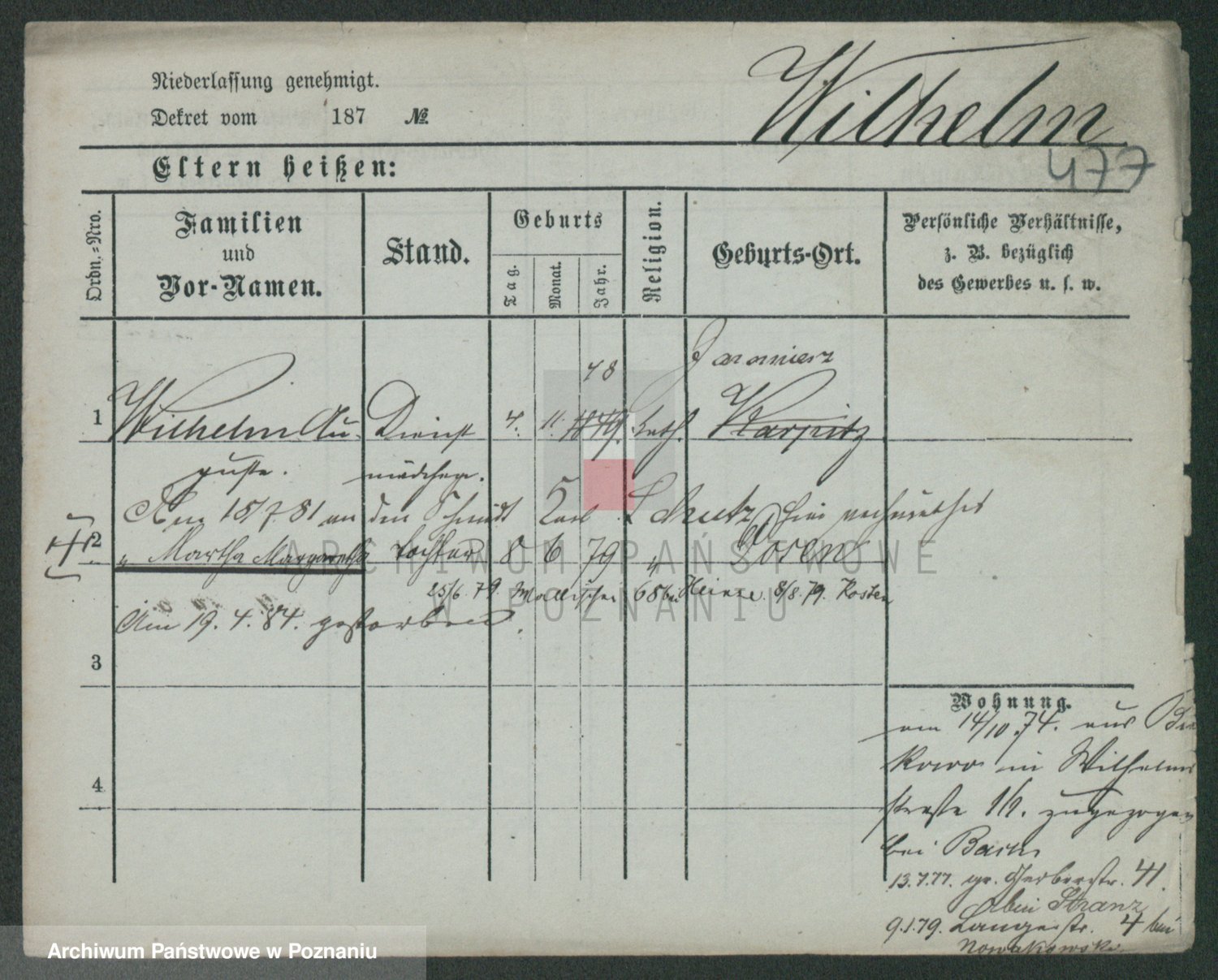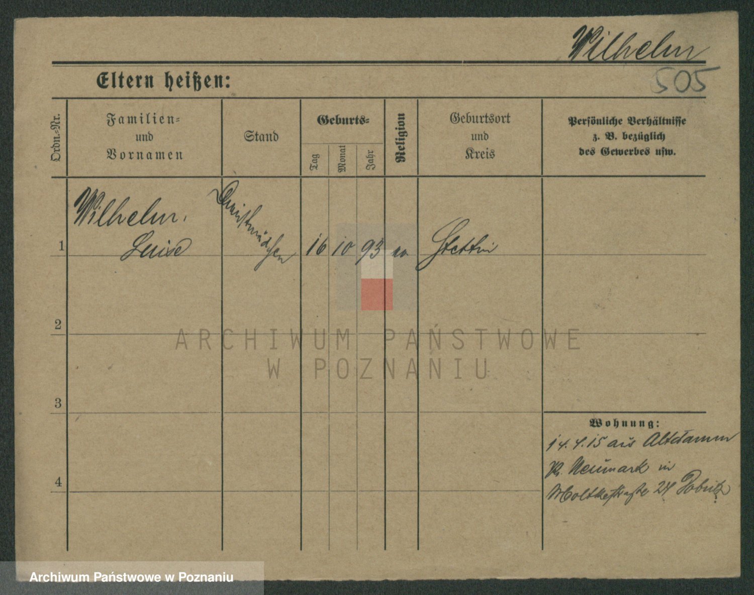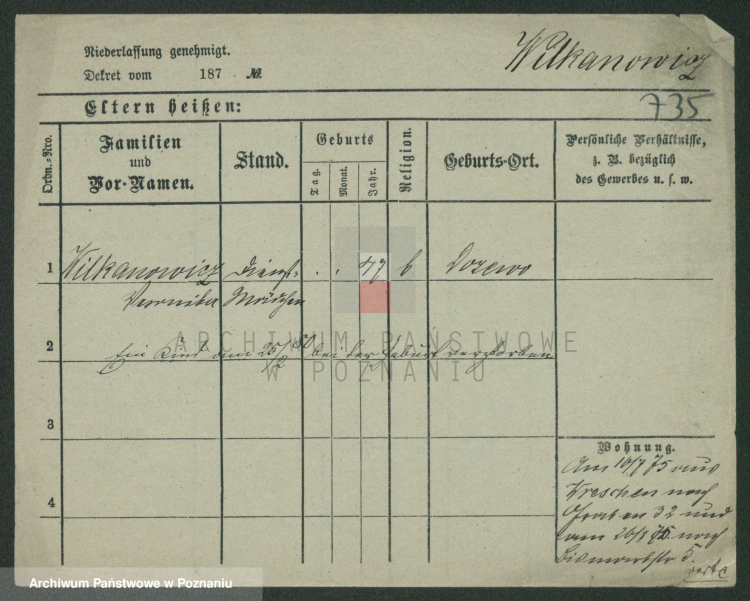 Wilke (albo Wilks) później zam. Tyczynski, Marianna